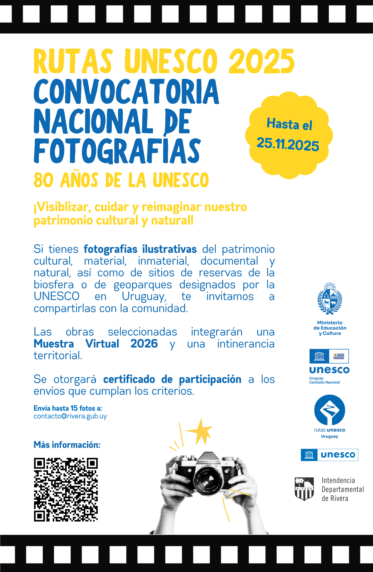 Las obras seleccionadas integrarán la Muestra Virtual “Rutas UNESCO Uruguay” y participarán en una itinerancia nacional en 2026. Todos los participantes recibirán certificado digital.