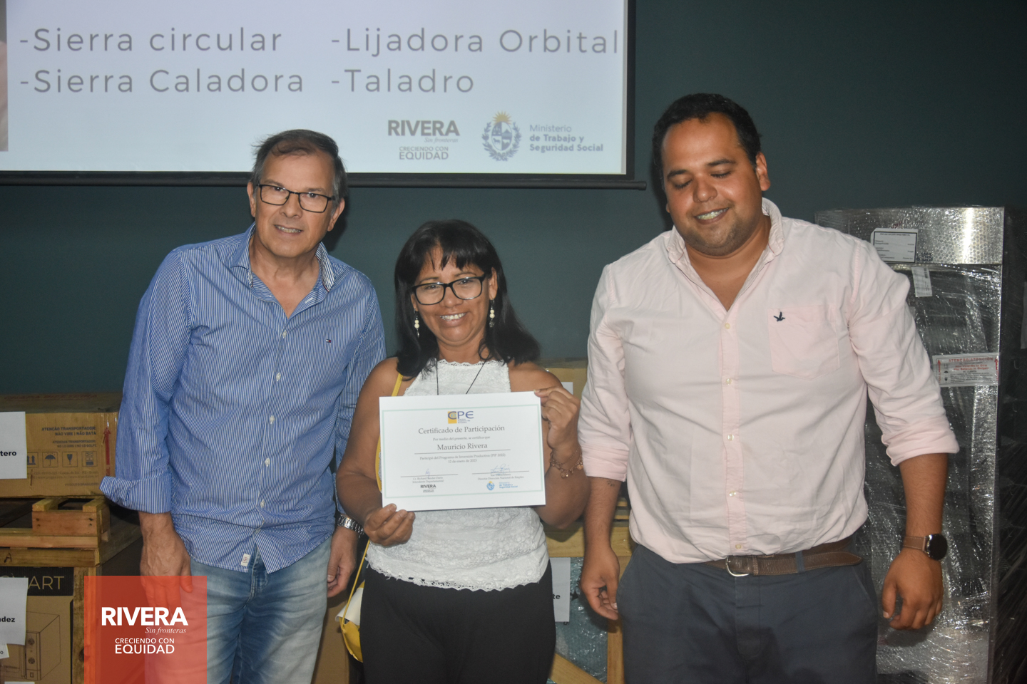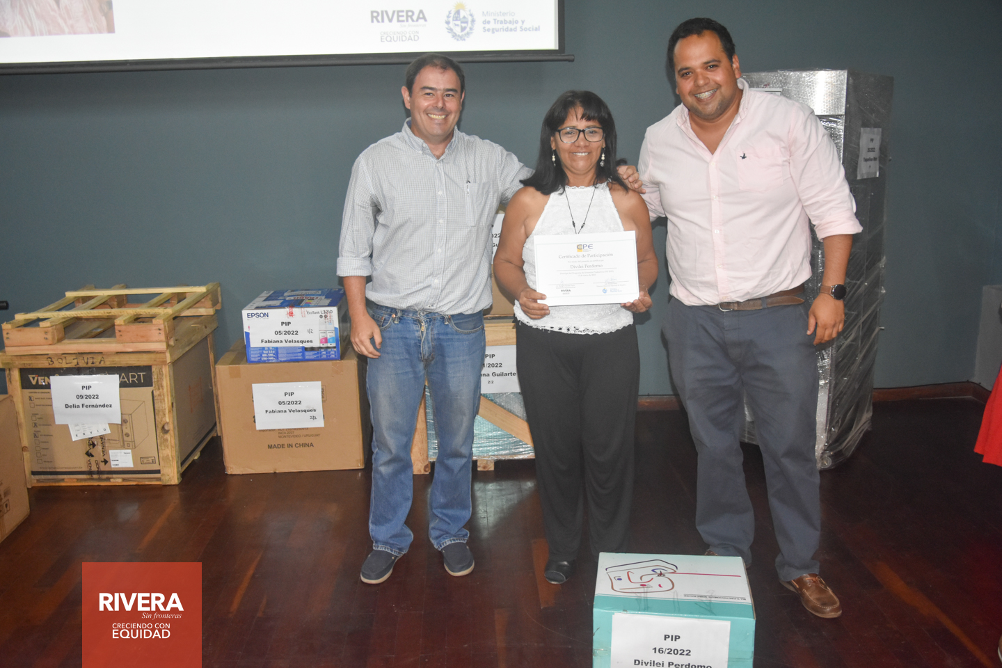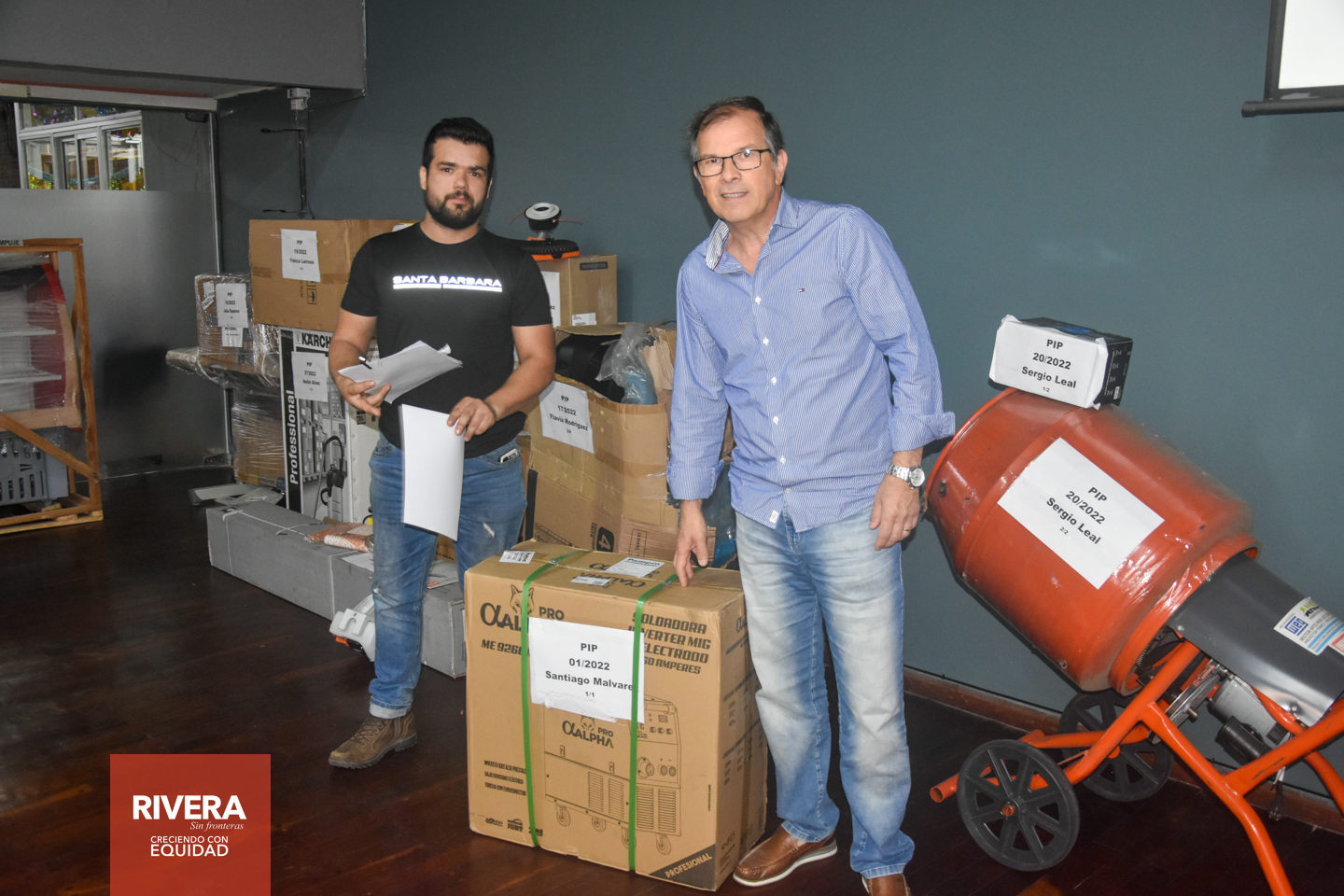 El jueves 12 de enero el Intendente de Rivera, junto a Director (l) General de Desarrollo y Medio Ambiente; representante del Ministerio de Trabajo y Seguridad Social; y el coordinador del CEPE; realizó la entrega de maquinarias y herramientas a 27 emprendedores financiados a través del Programa de Inversión Productiva (PIP-2022).