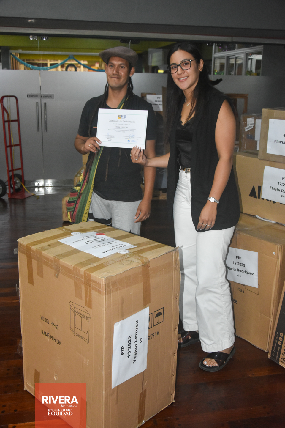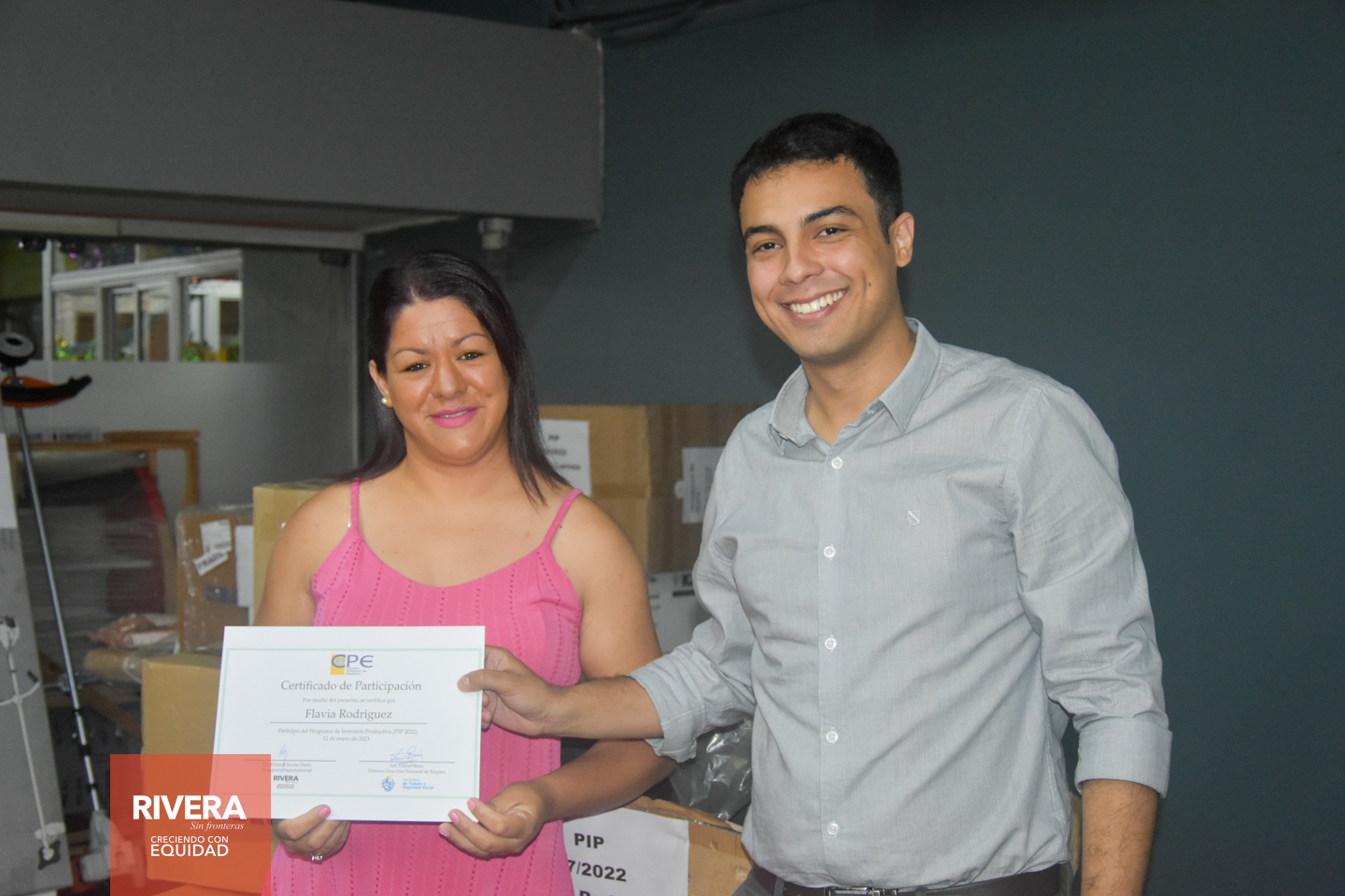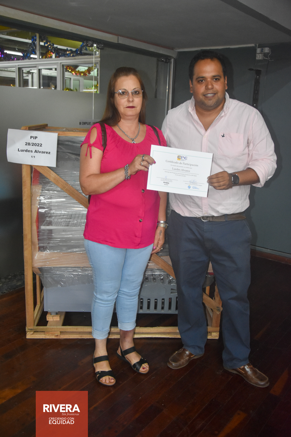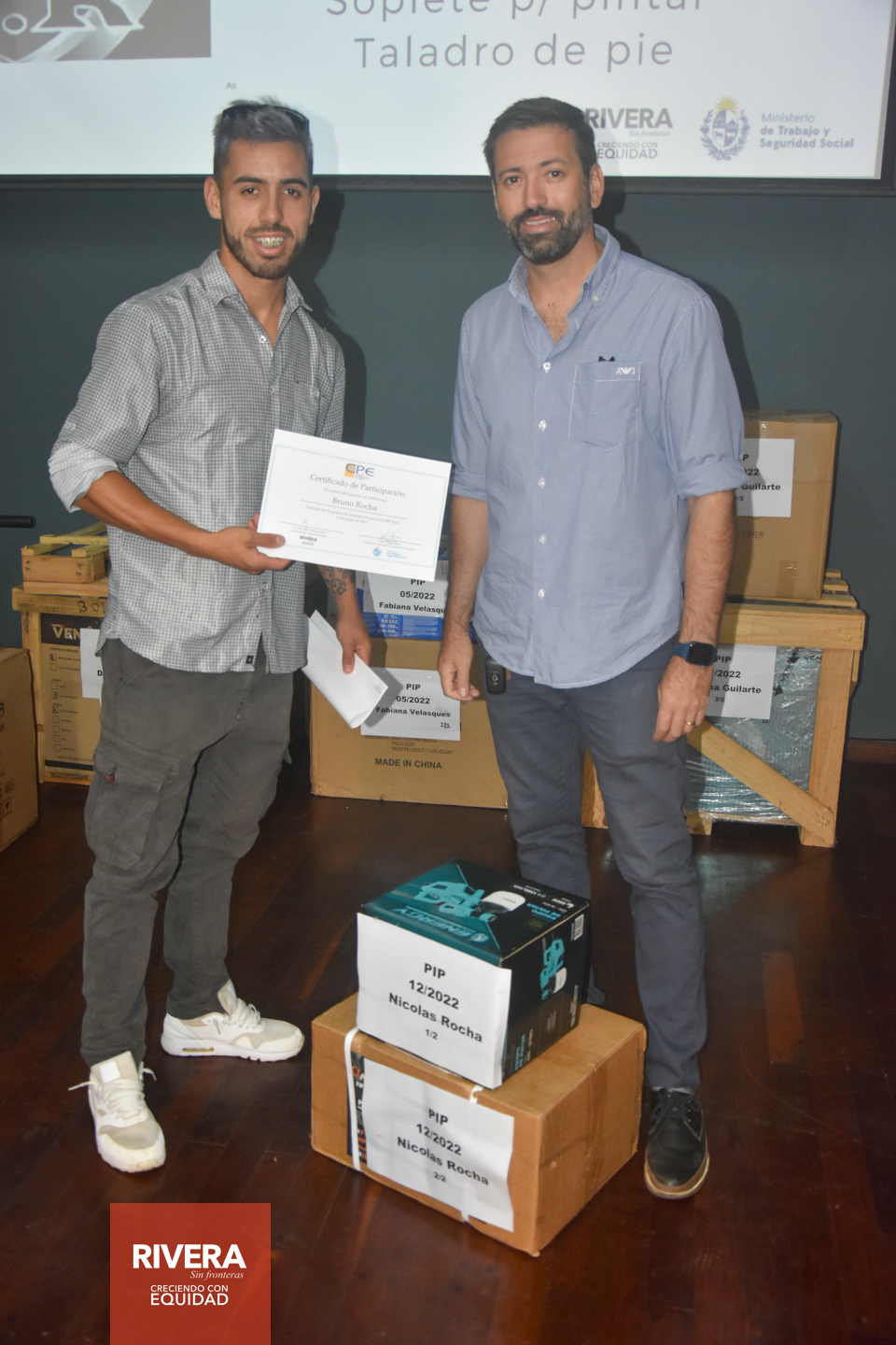 El jueves 12 de enero el Intendente de Rivera, junto a Director (l) General de Desarrollo y Medio Ambiente; representante del Ministerio de Trabajo y Seguridad Social; y el coordinador del CEPE; realizó la entrega de maquinarias y herramientas a 27 emprendedores financiados a través del Programa de Inversión Productiva (PIP-2022).