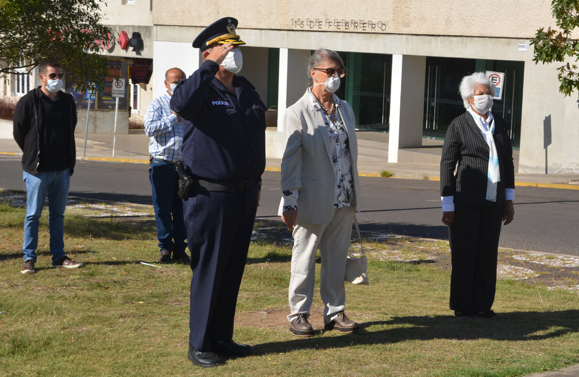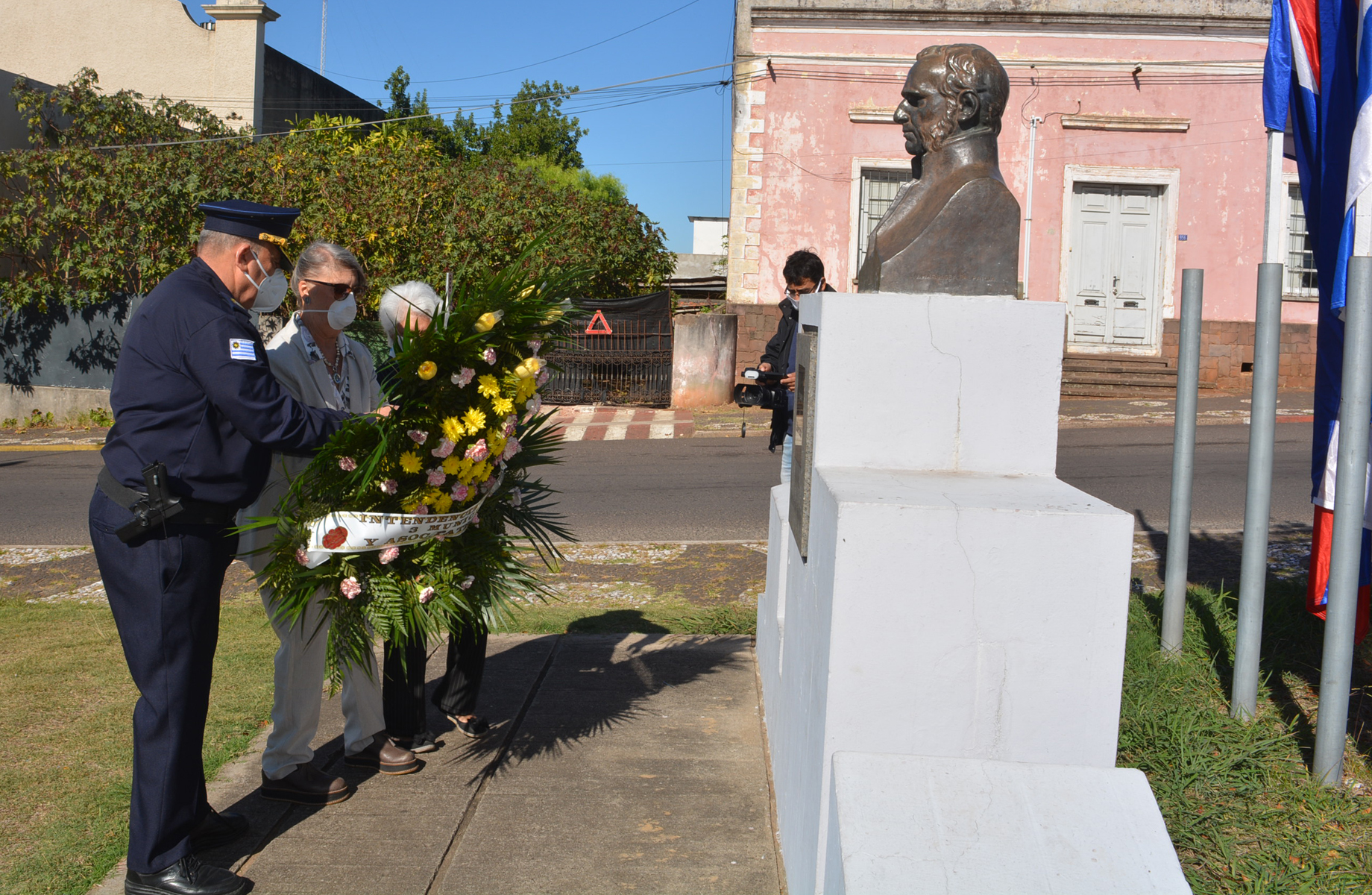 Participaron de la ceremonia la Intendente Departamental de Rivera, Alma Galup Migliarini, el Jefe de Policía de Rivera, Crio. Gral. (R) Wilfredo Rodríguez Caraballo y la Presidente de la Asociación Patriótica de Rivera, Teresa Guedes Damaceno.