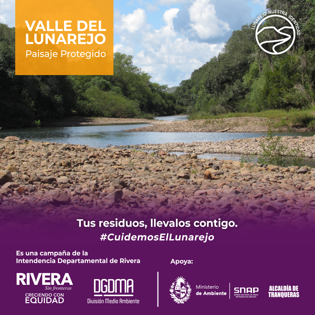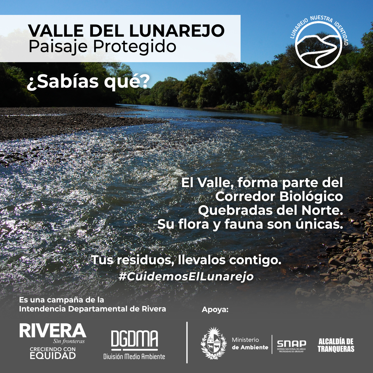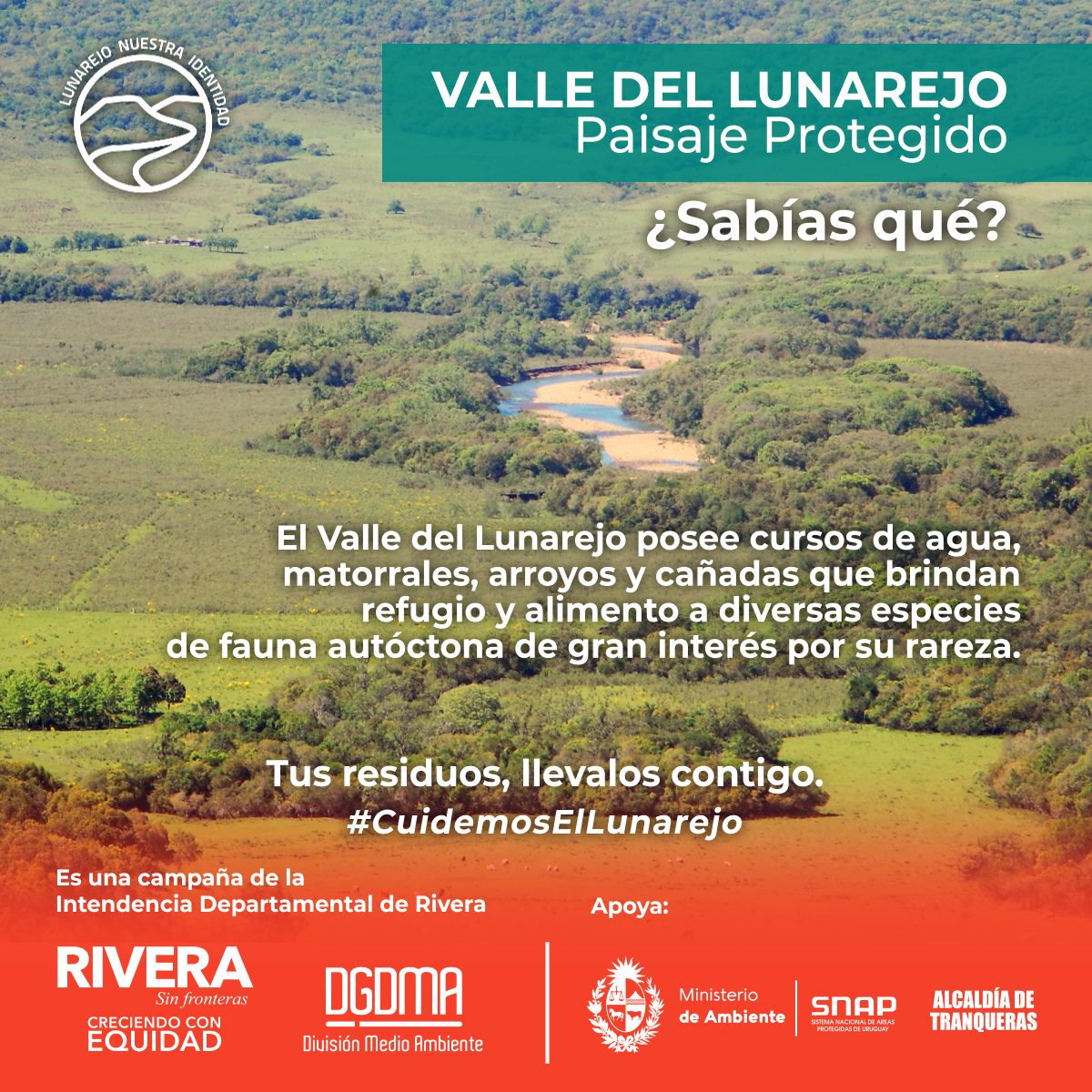 La Intendencia Departamental impulsa una campaña de sensibilización para el cuidado del Valle del Lunarejo, apuntando a la concientización y el despertar el interés para el cuidado de su fauna, flora y toda la belleza que ofrece el lugar.