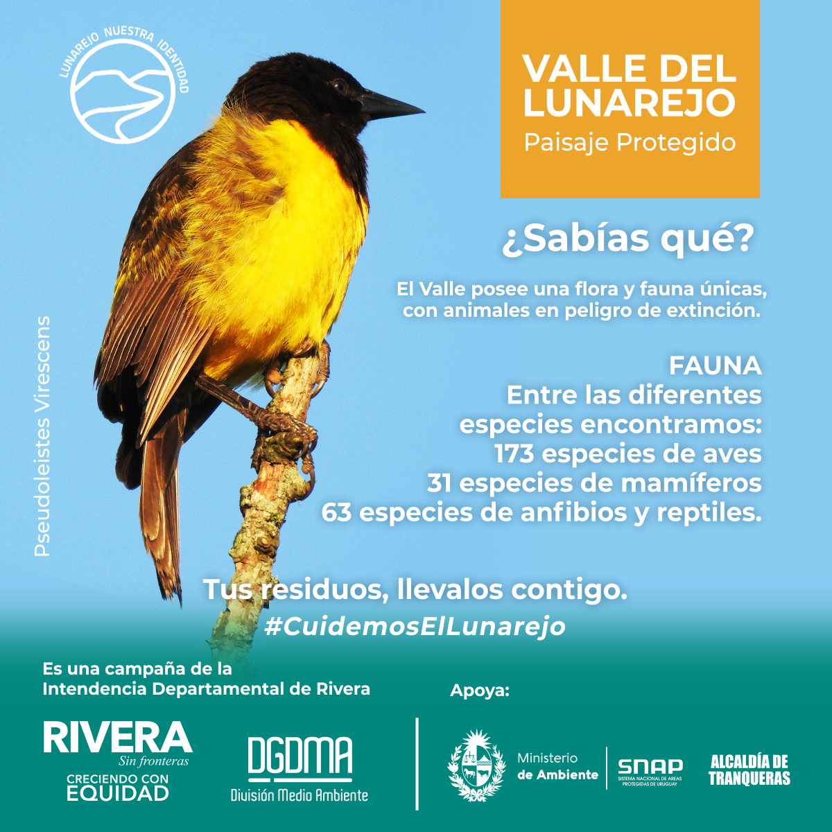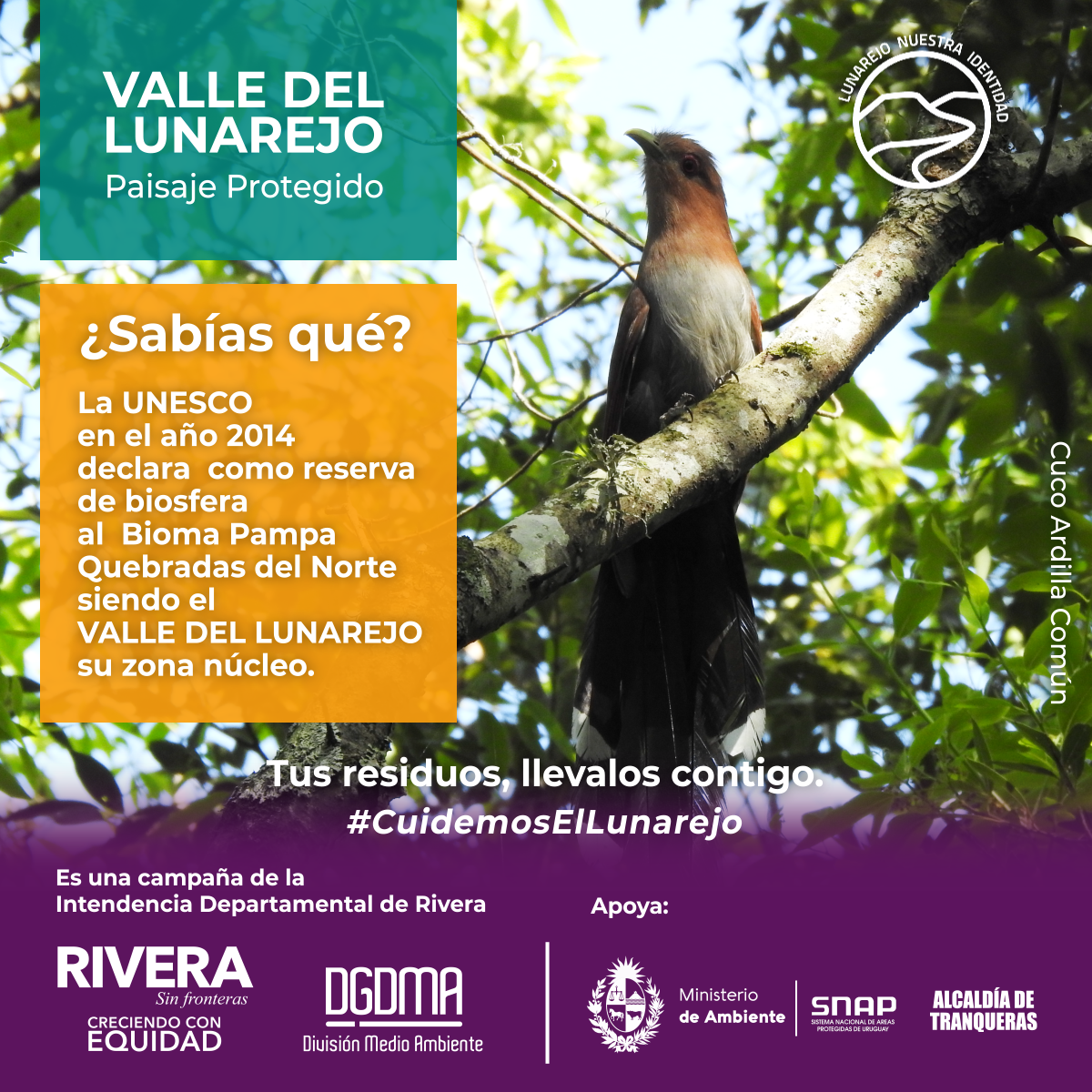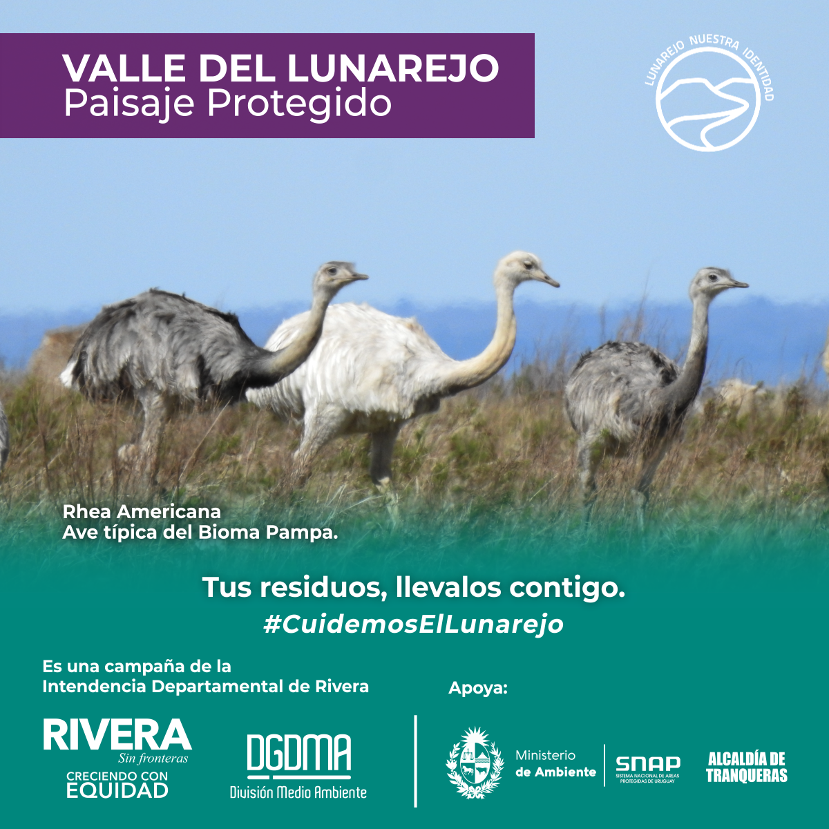 La Intendencia Departamental impulsa una campaña de sensibilización para el cuidado del Valle del Lunarejo, apuntando a la concientización y el despertar el interés para el cuidado de su fauna, flora y toda la belleza que ofrece el lugar.