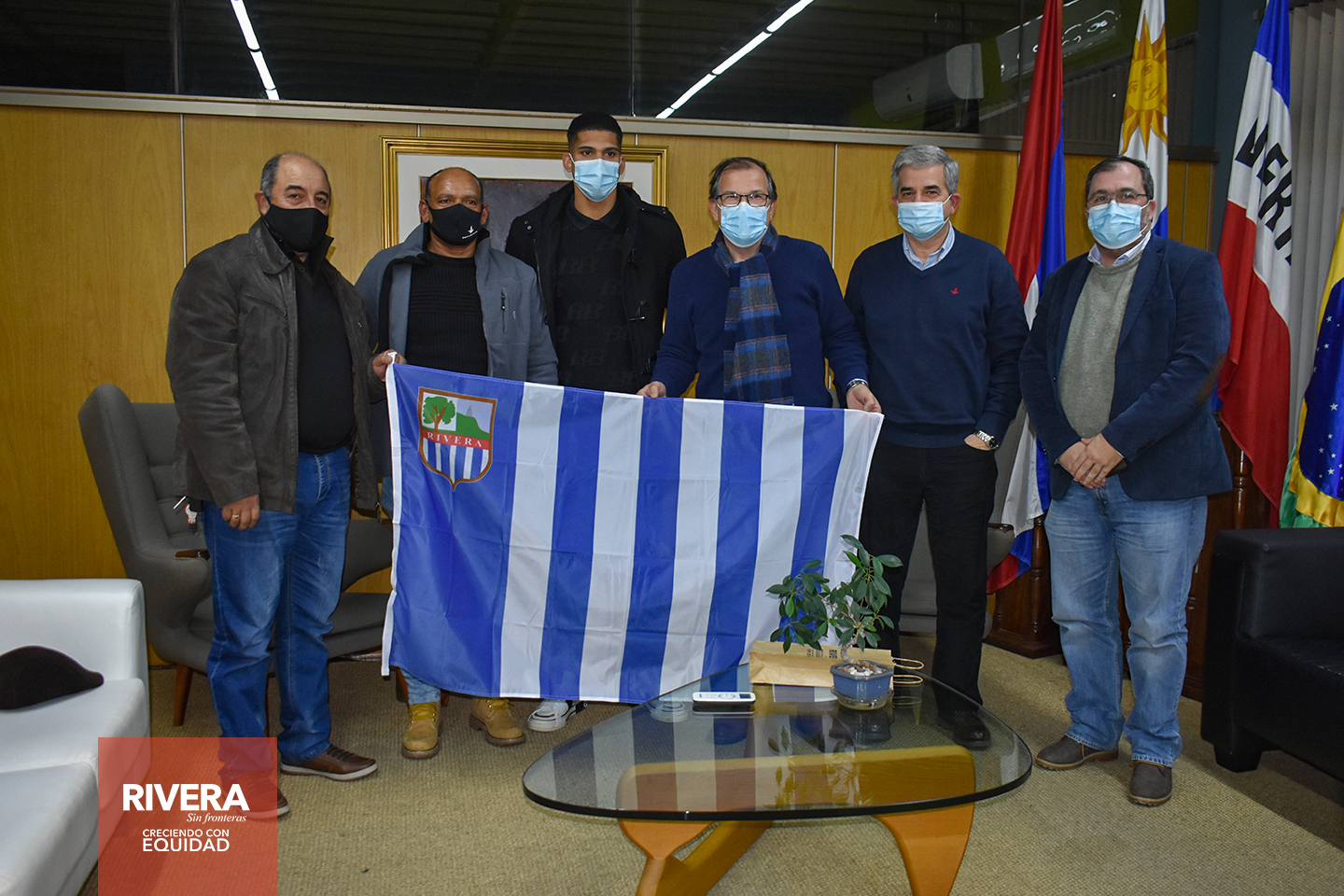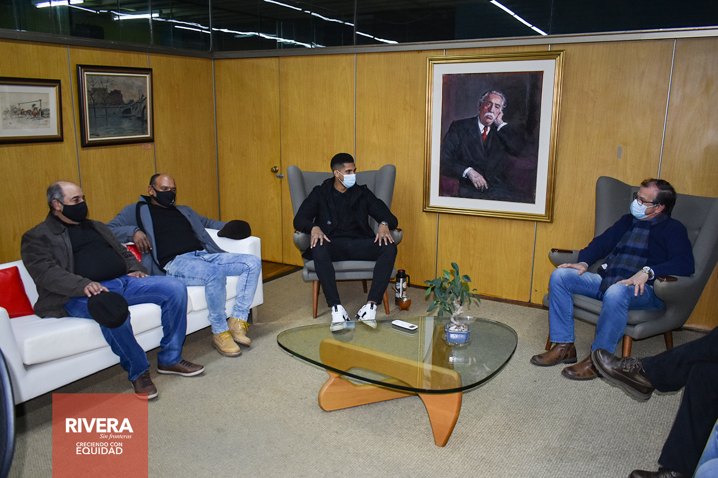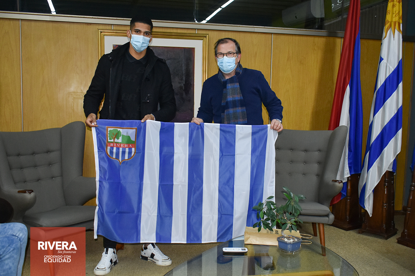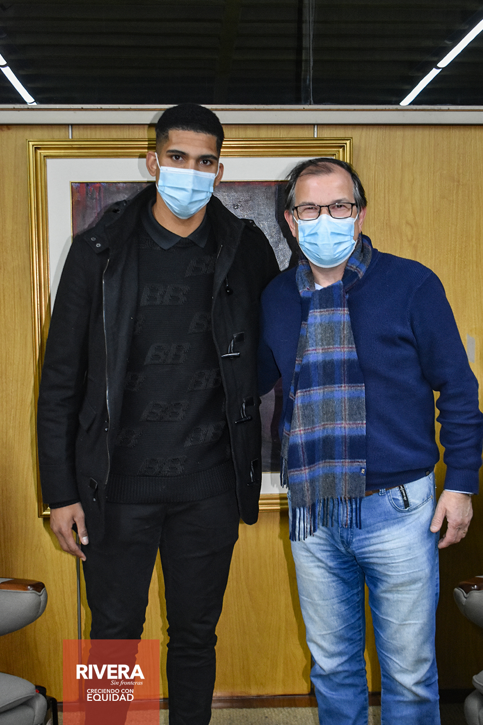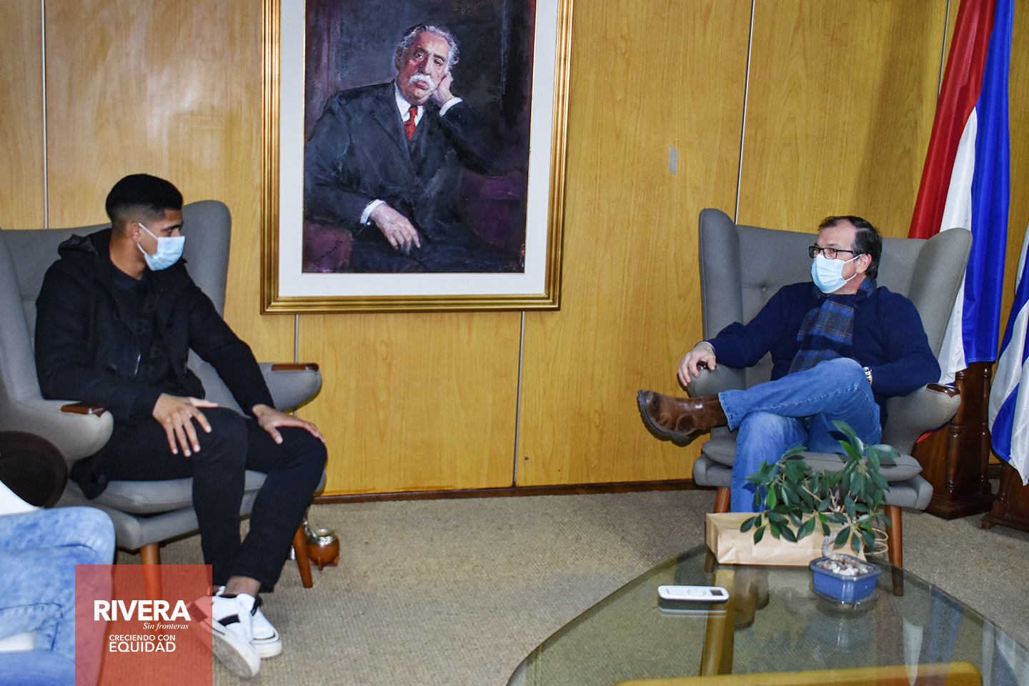 El pasado martes el intendente de Rivera, Cr. Richard Sander Darín, recibió en su despacho al futbolista riverense Ronald Araújo, jugador de la Selección Nacional y del F.C Barcelona (España).