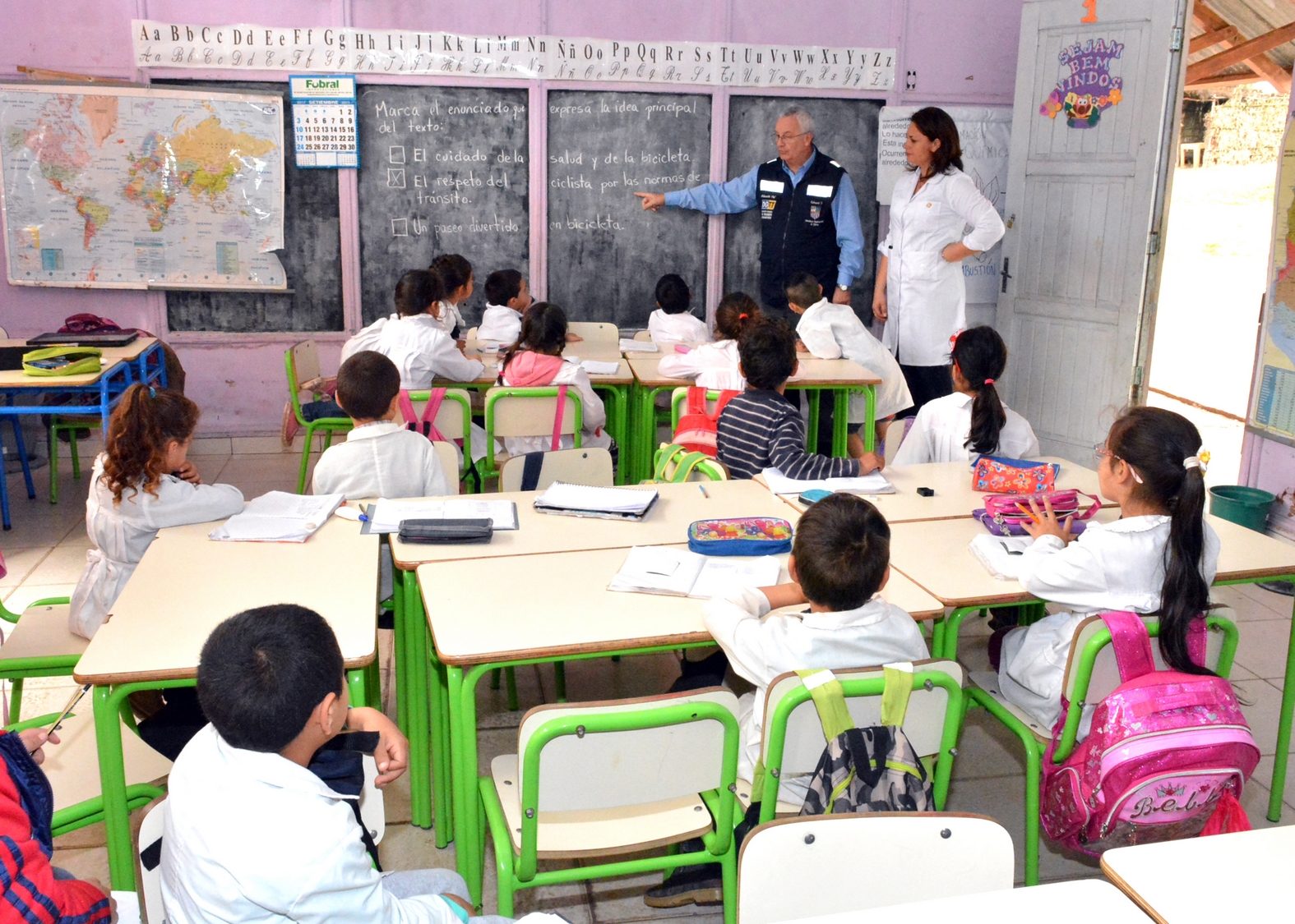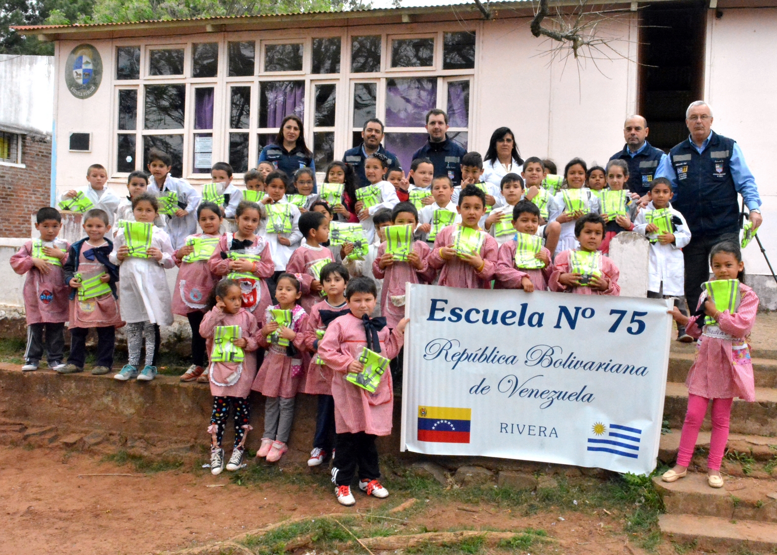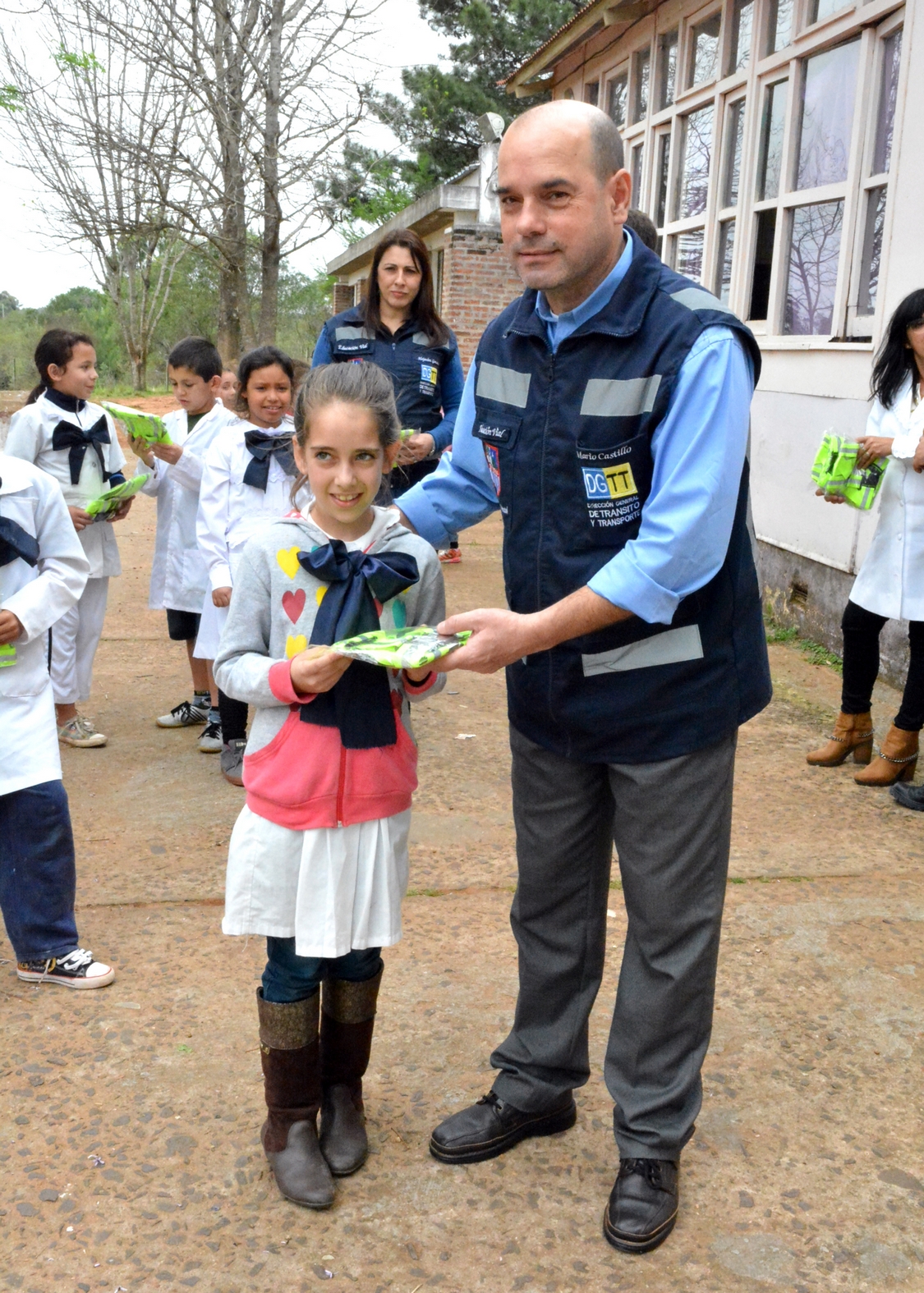 El director de la Unidad de Educación Vial, Edward Strongitharm, explicó: “ya vinimos a esta escuela a realizar charlas sobre educación vial y vimos que tanto niños como padres andan sin chalecos. Entonces decidimos junto al Director General, entregar chalecos a los niños para la seguridad de ellos mismos”.