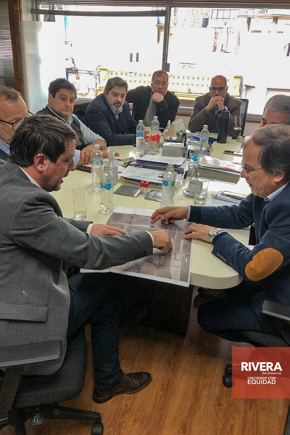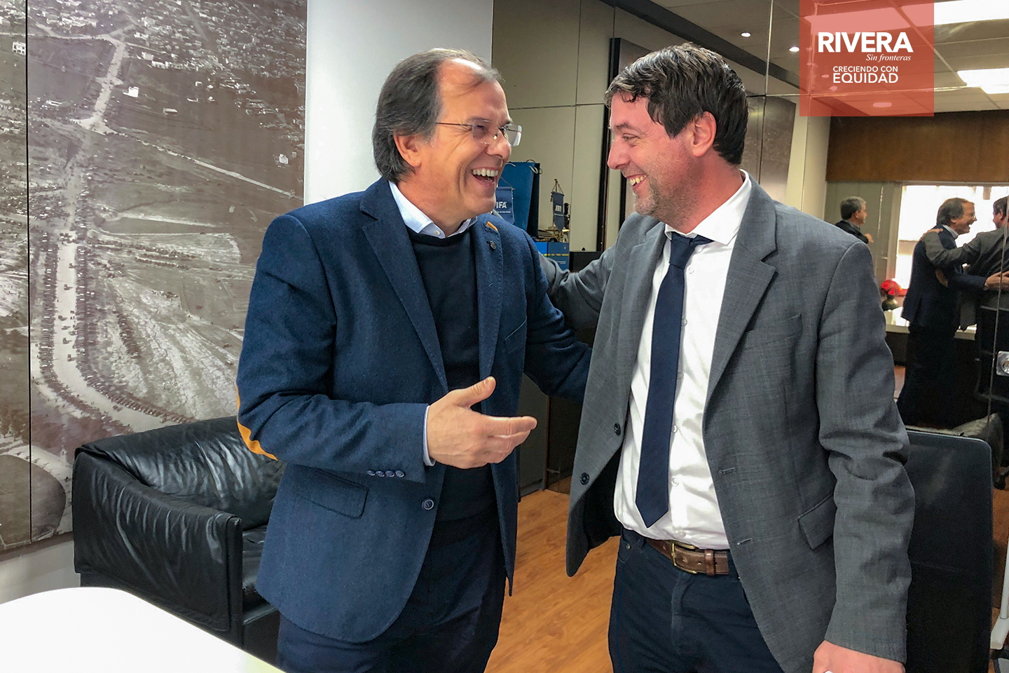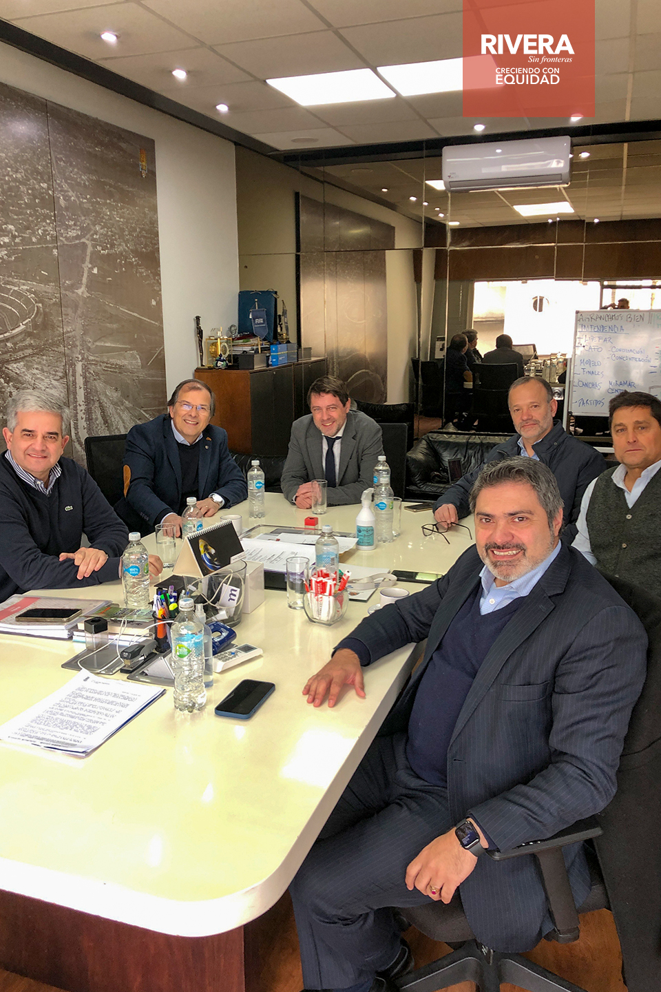 El intendente Cr. Richard Sander Darín, el secretario general Arq. José Mazzoni, el Lic. Horacio Hernández y más autoridades de Rivera, fueron recibidos por el presidente de la AUF, Ec. Ignacio Alonso y su equipo de trabajo.