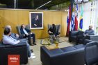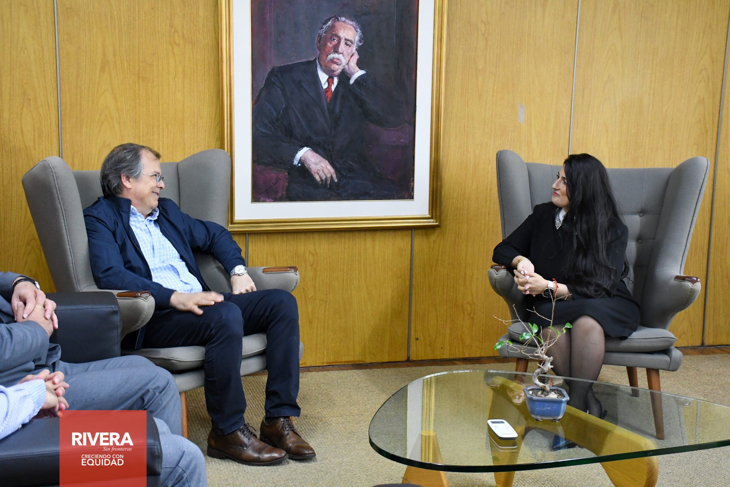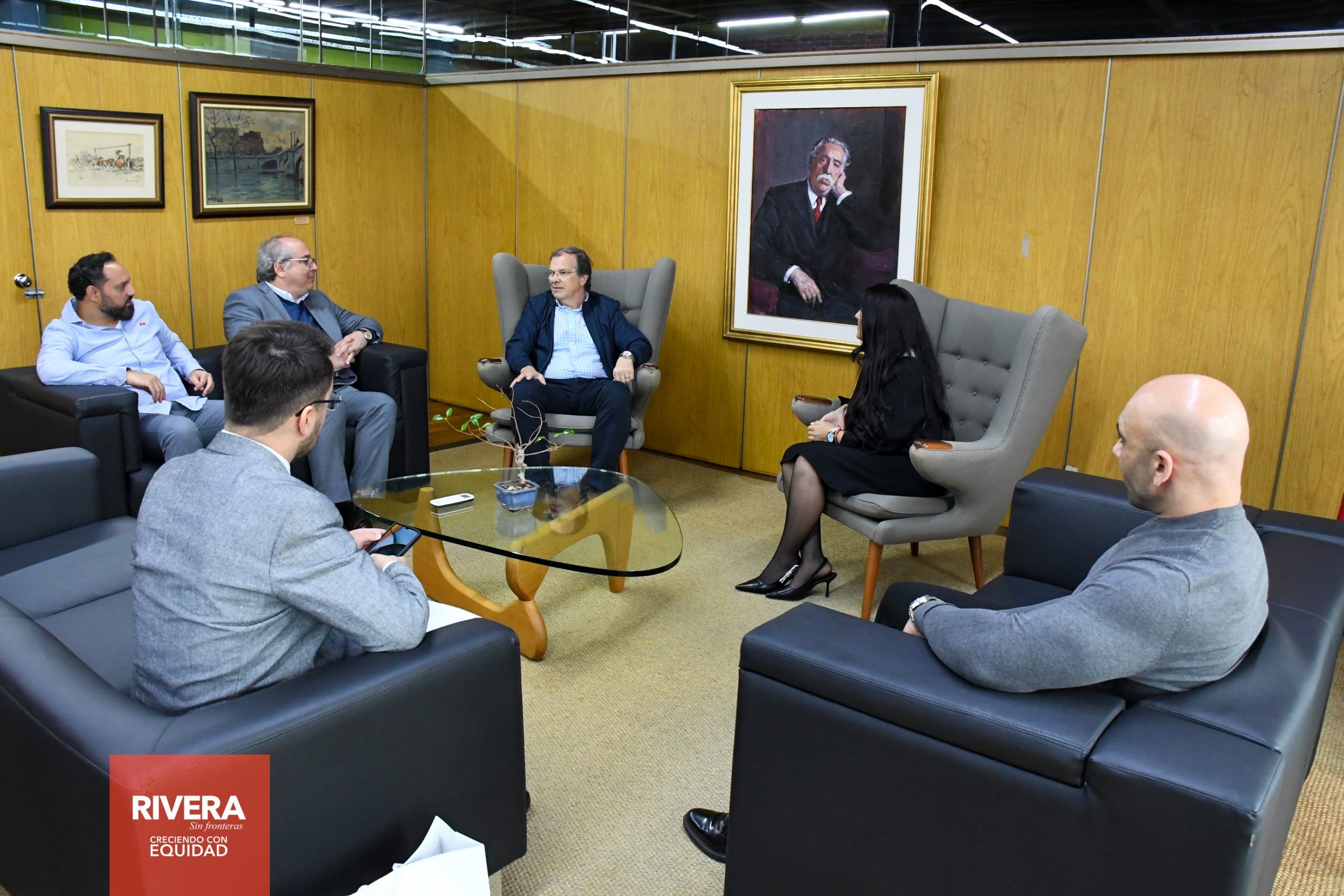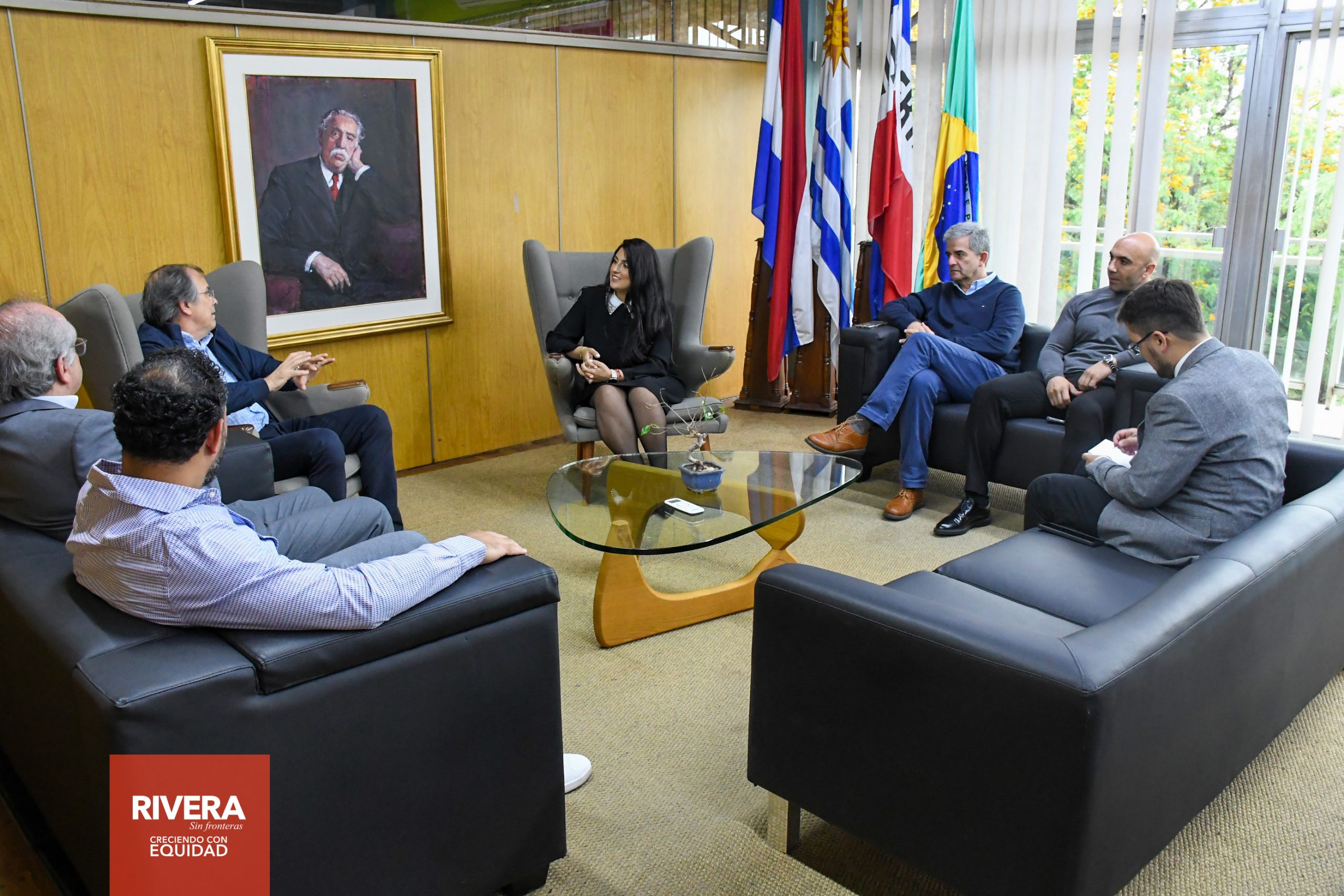 El intendente Cr. Richard Sander, junto al secretario general Arq. José Mazzoni, recibió en la Intendencia a la encargada de negocios de la Embajada del Estado de Palestina en Uruguay, Sra. Nadia Qaraqra, quien realizó su primera visita oficial al país y al departamento.
