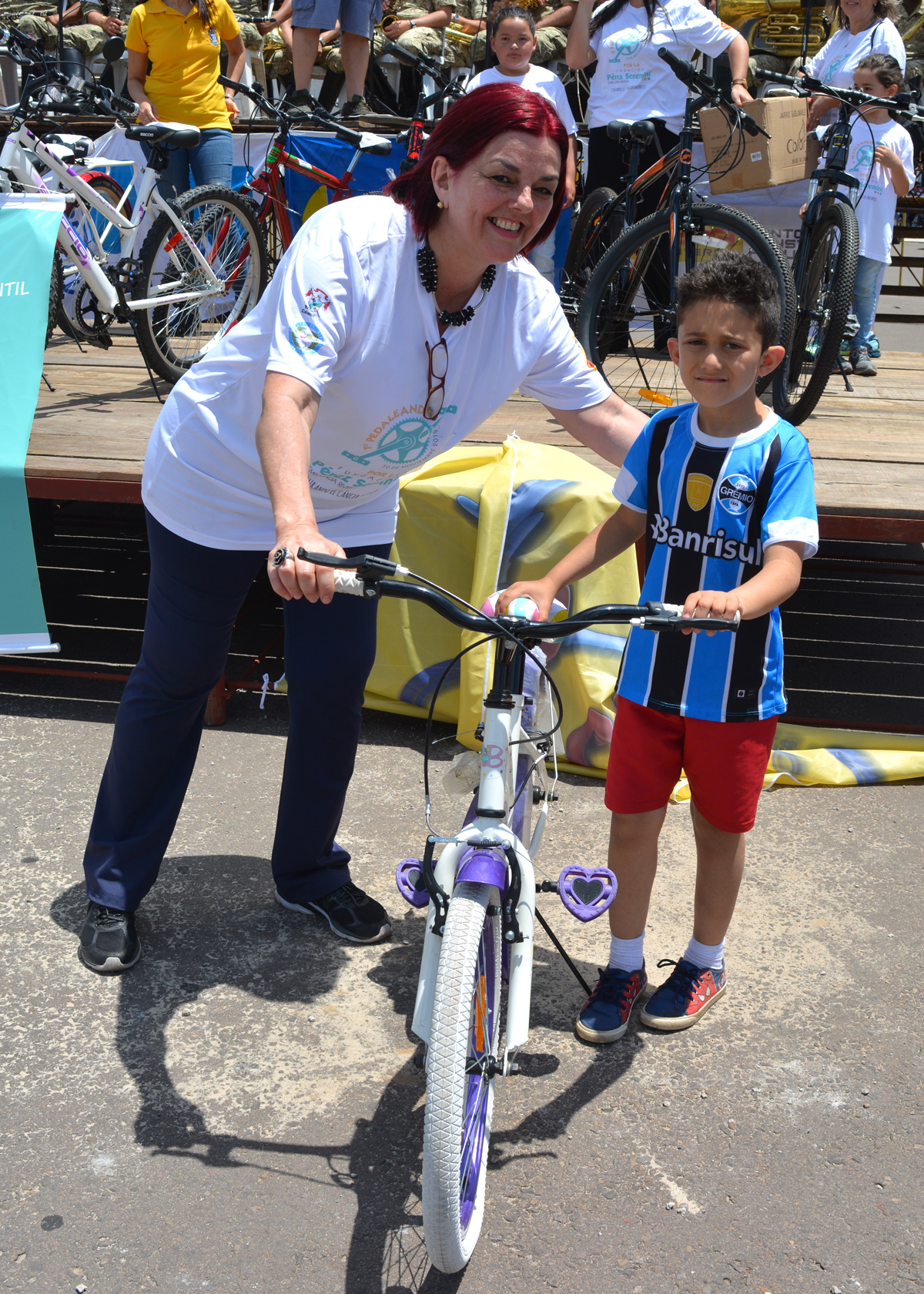 Participaron aproximadamente 400 personas en la bicicleteada, a su retorno los niños de la Pérez Scremini los esperaban en el escenario; para comenzar con el sorteo de las bicicletas.