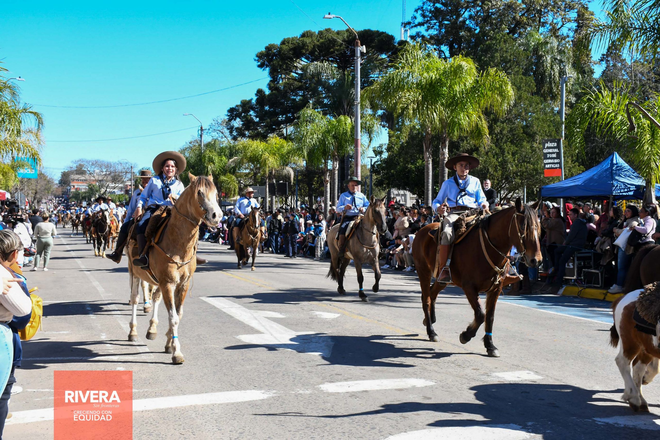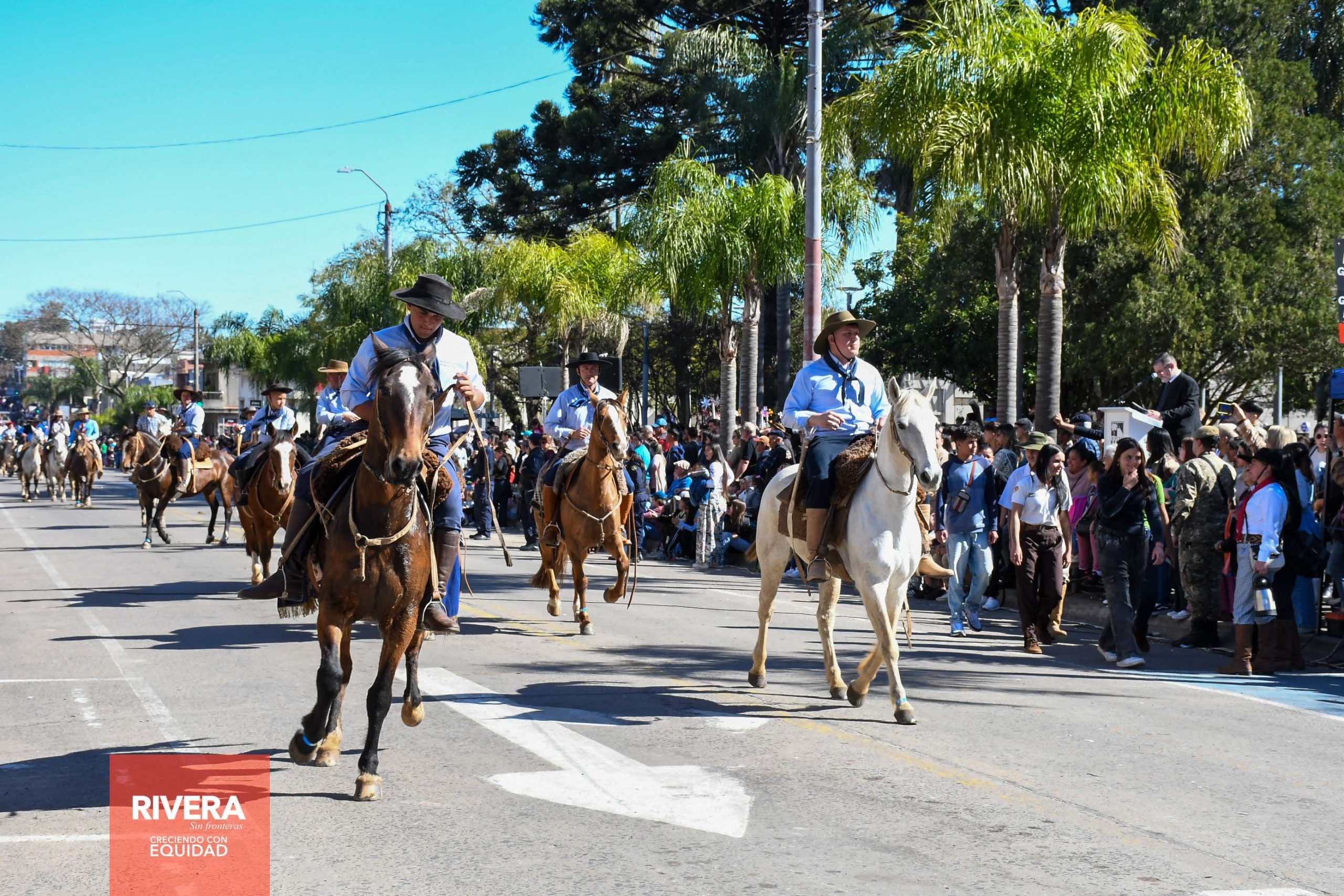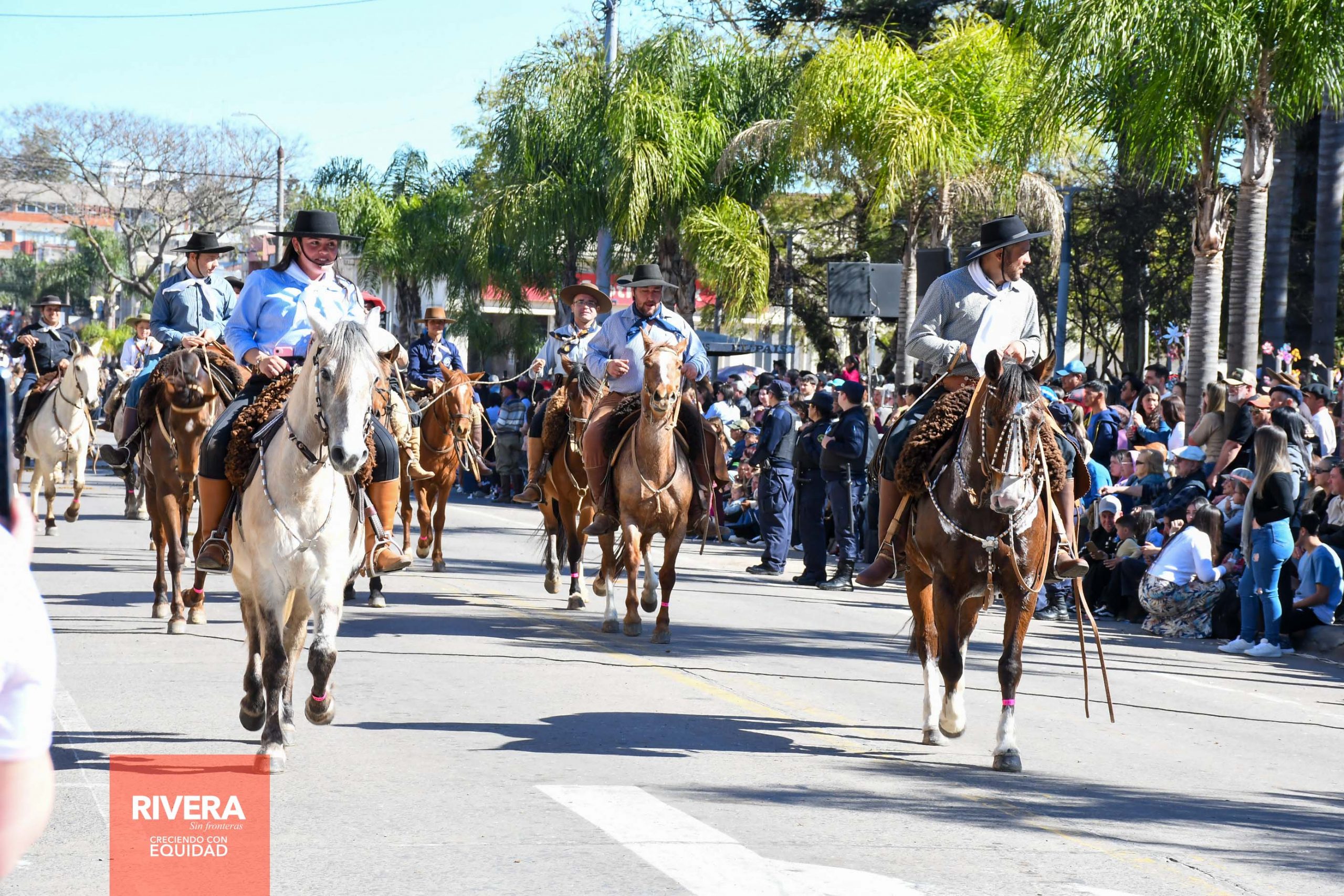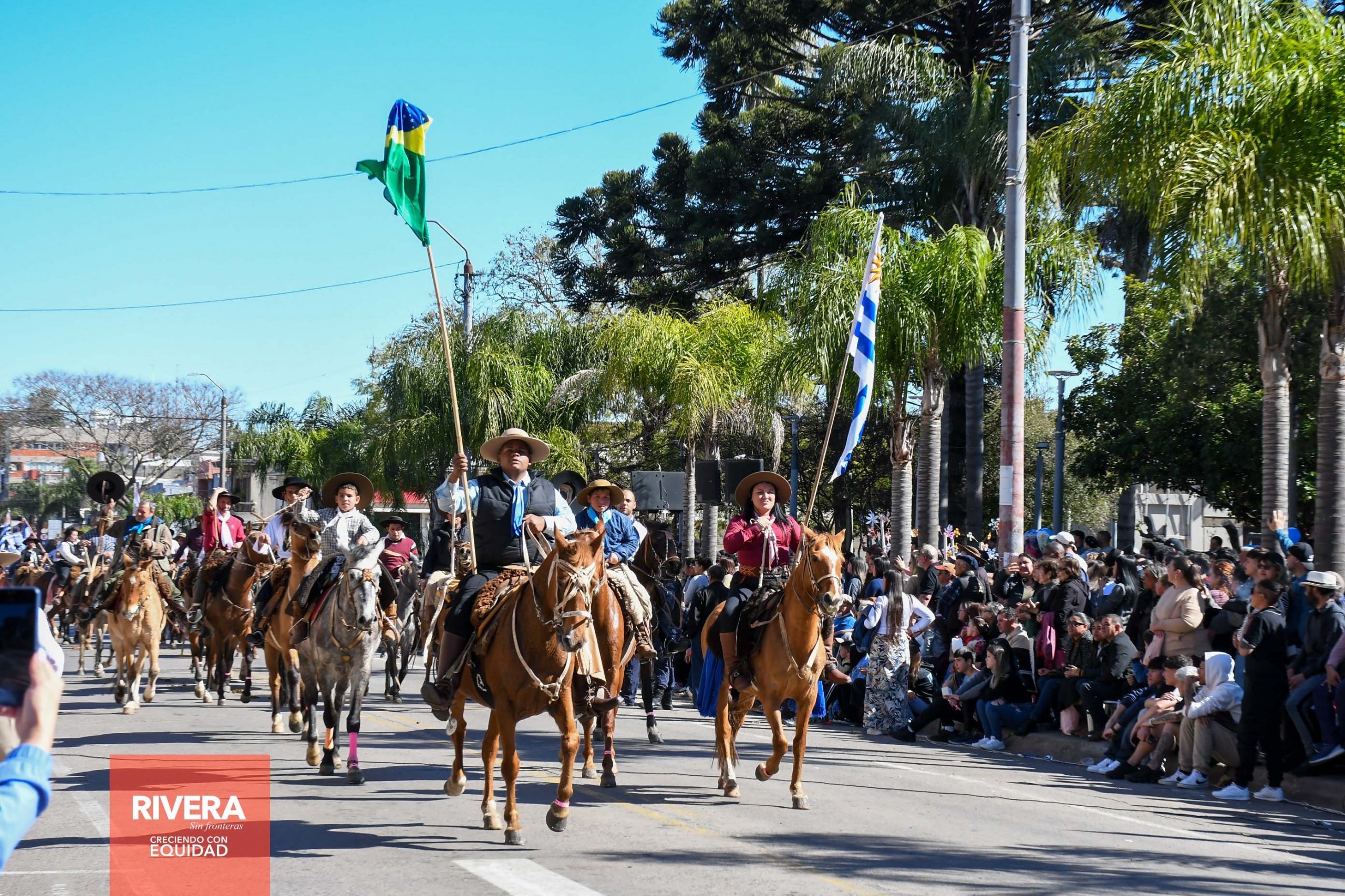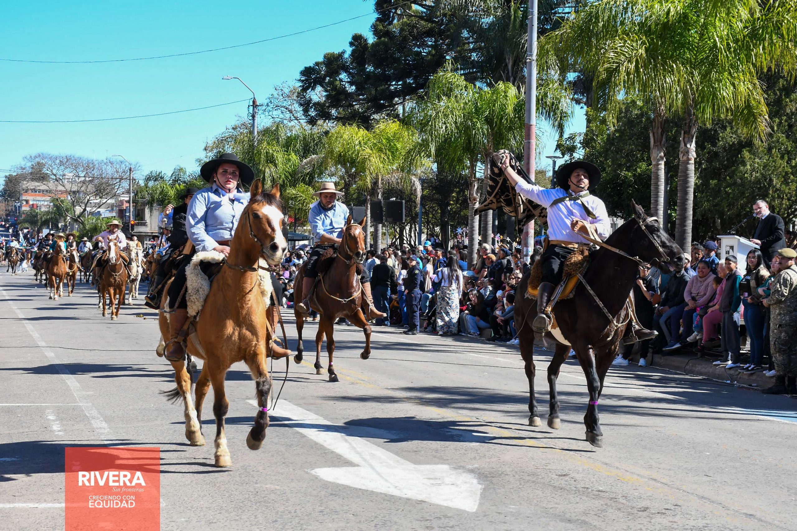 La Asociación Patriótica de Rivera organizó el mayor desfile cívico-militar y de caballería gaucha del país, que se extendió durante más de siete horas y reunió a miles de participantes y espectadores.