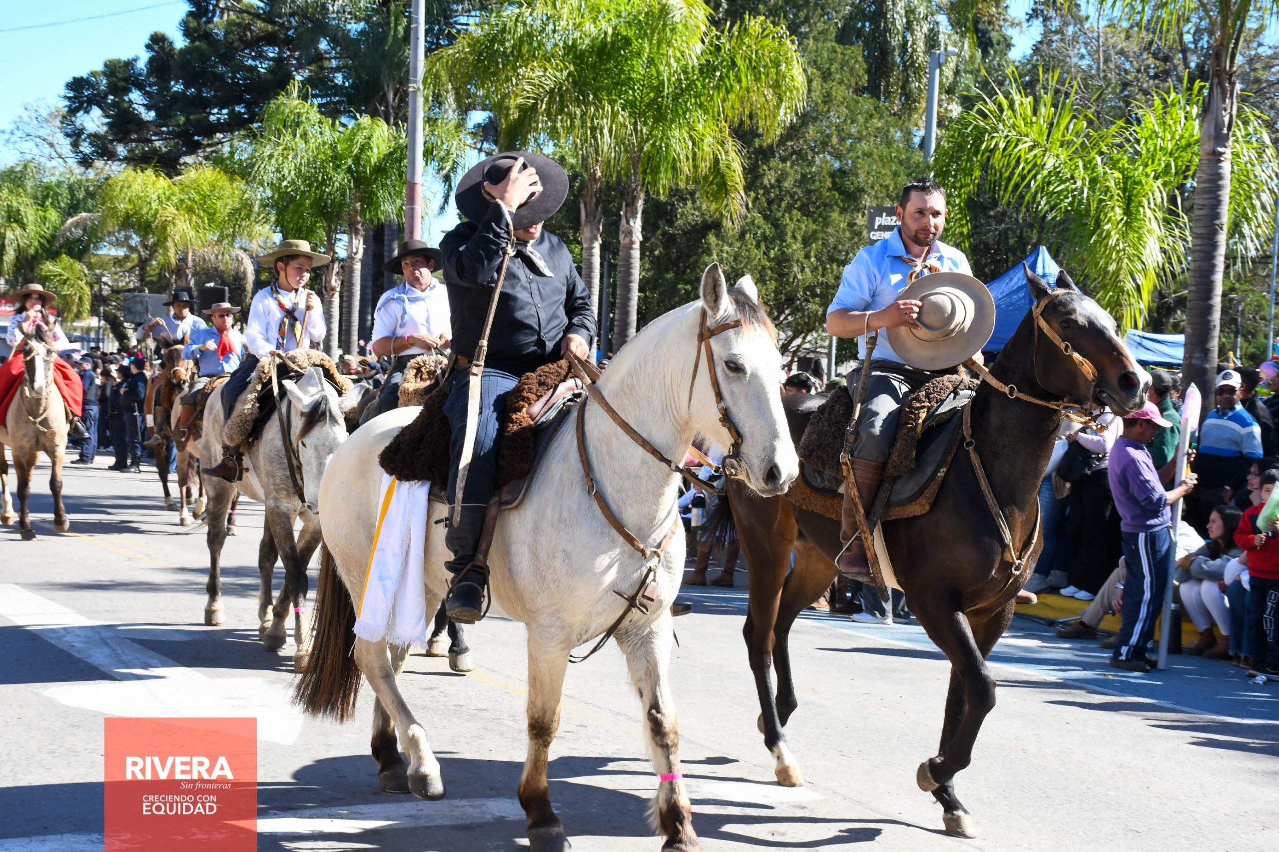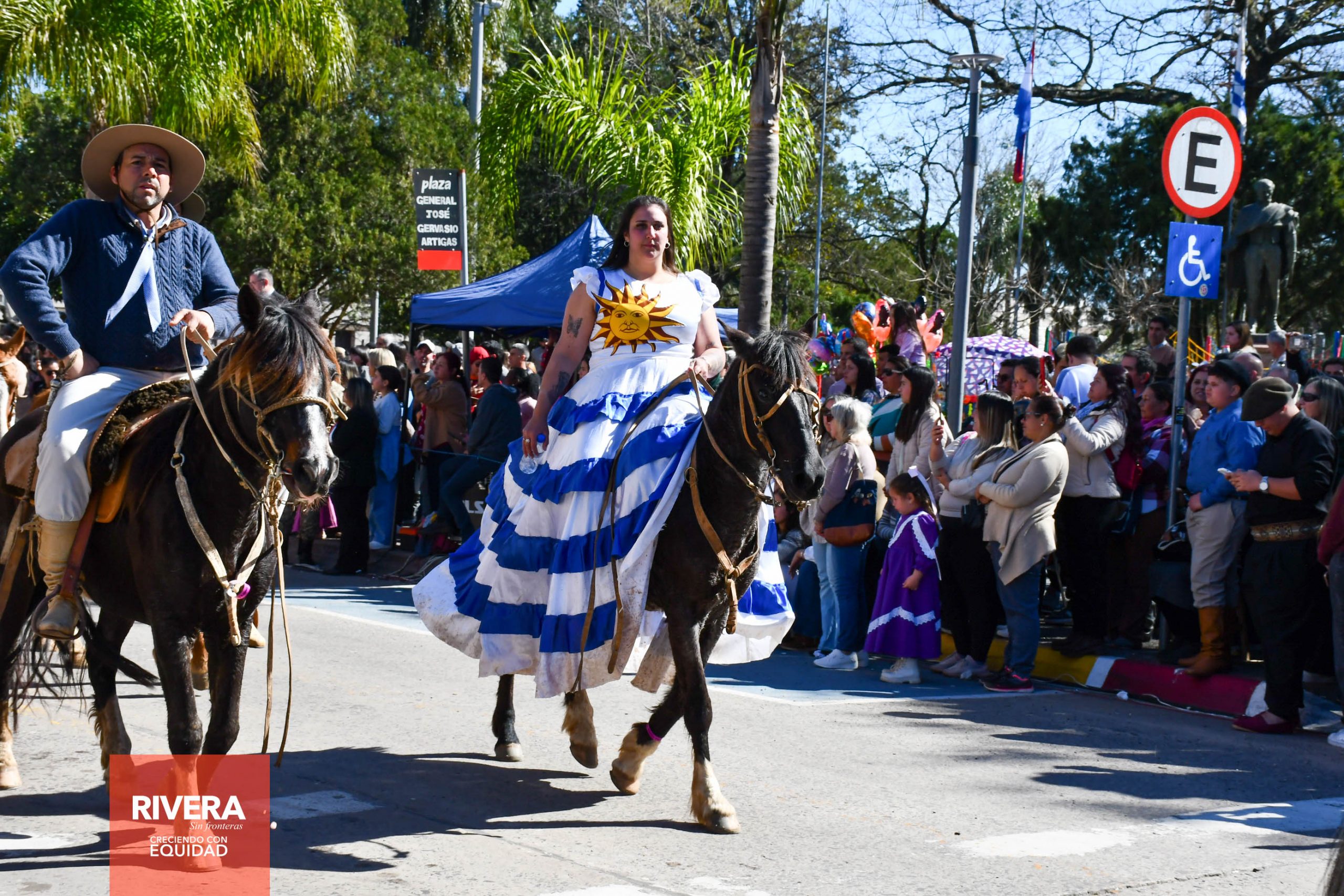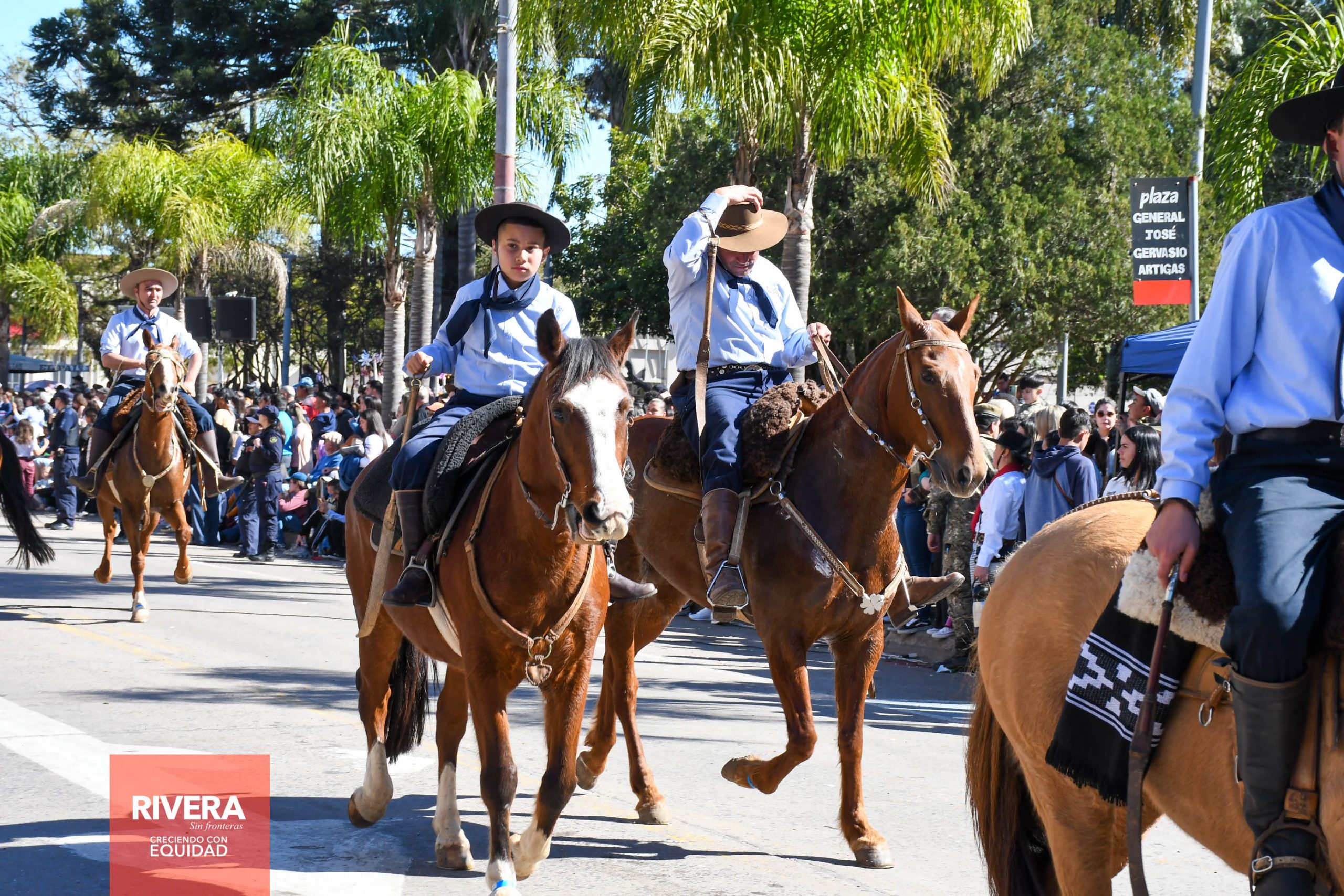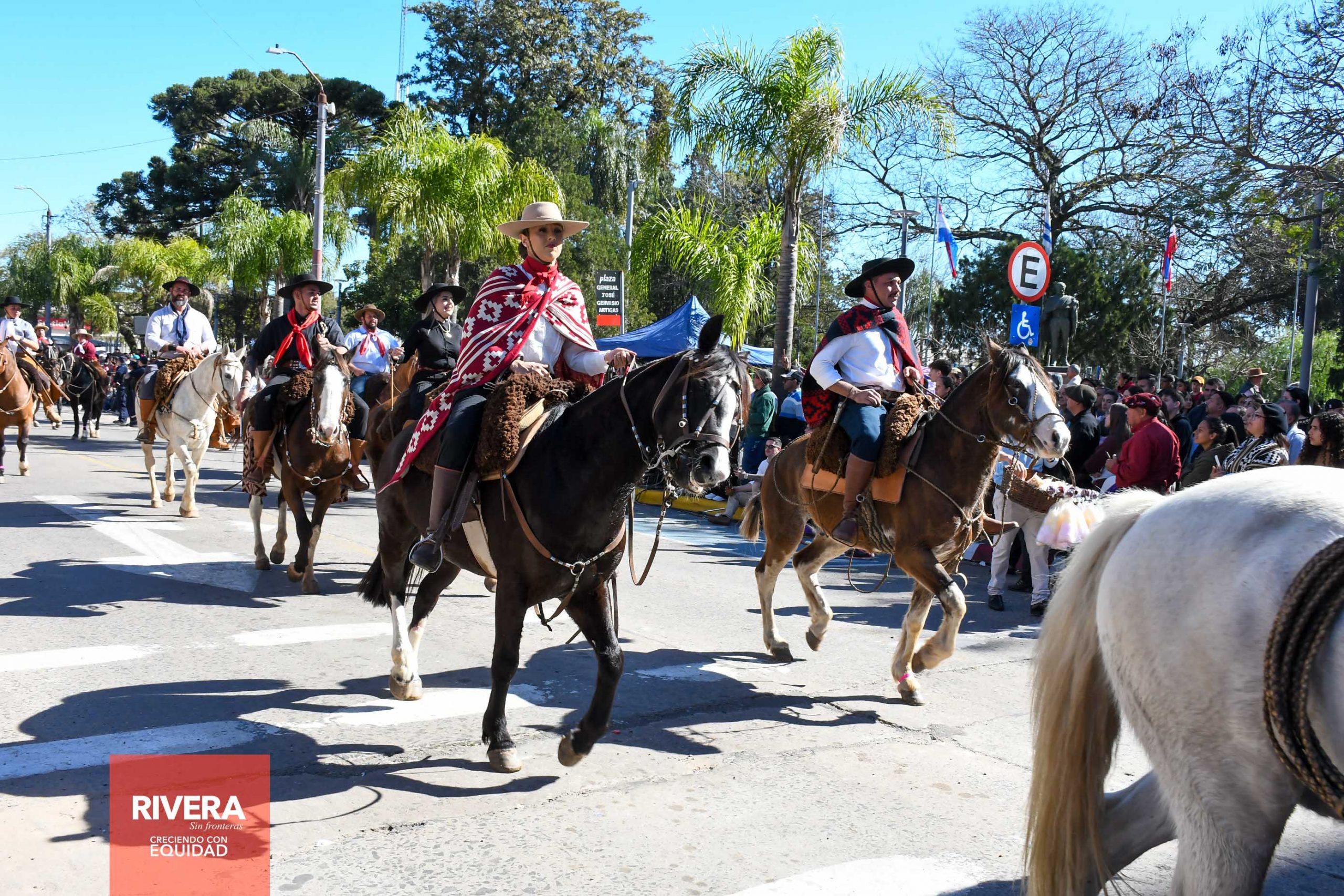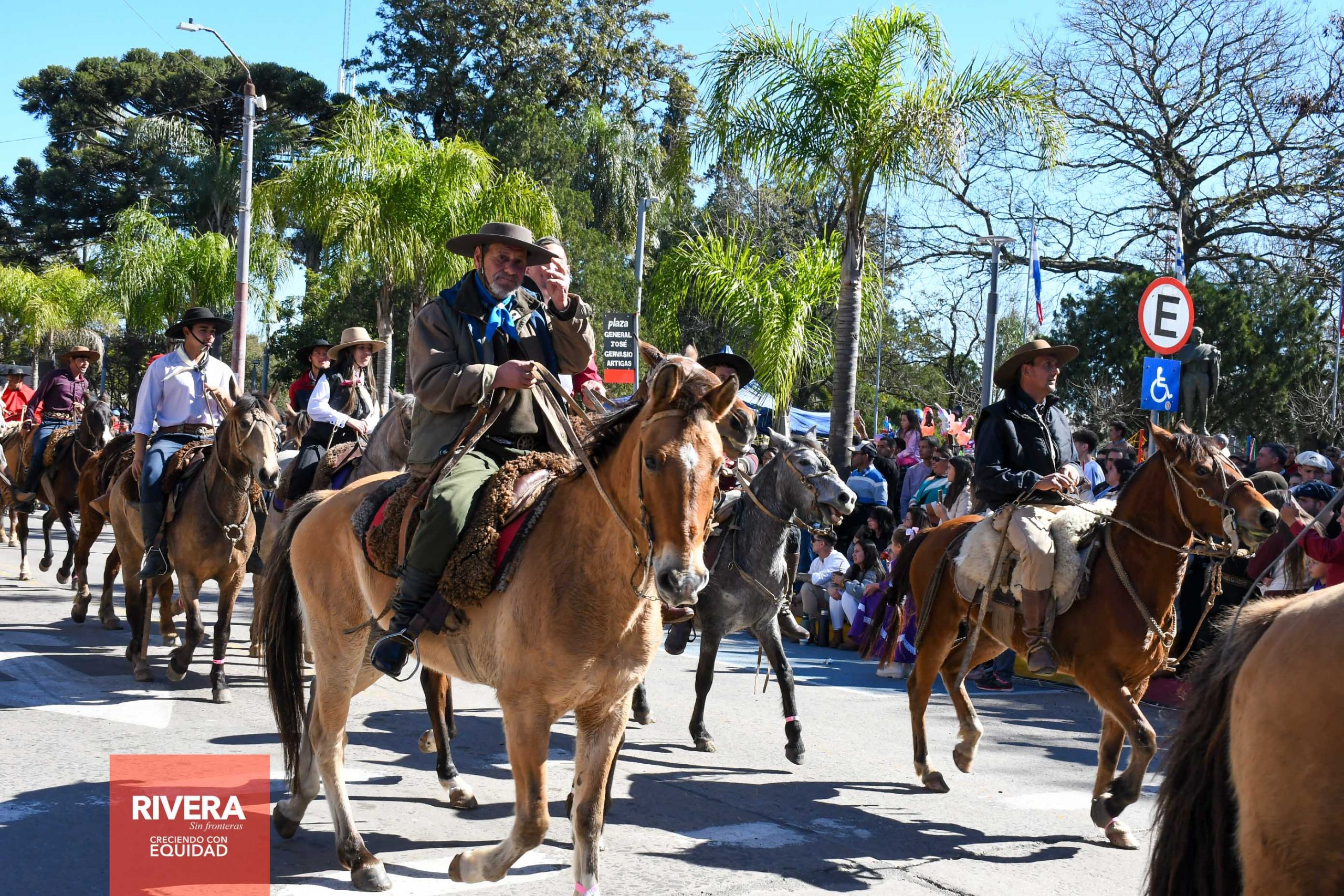La Asociación Patriótica de Rivera organizó el mayor desfile cívico-militar y de caballería gaucha del país, que se extendió durante más de siete horas y reunió a miles de participantes y espectadores.