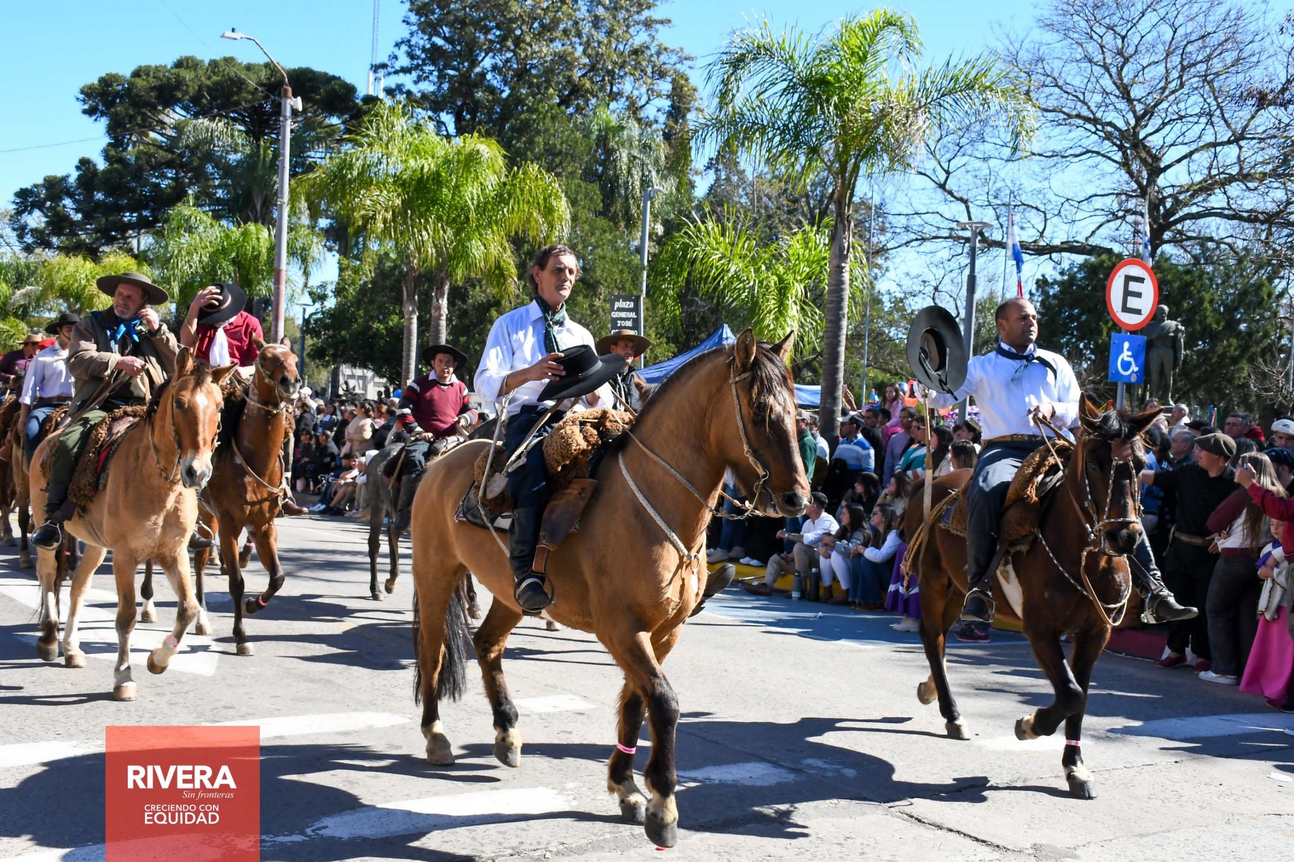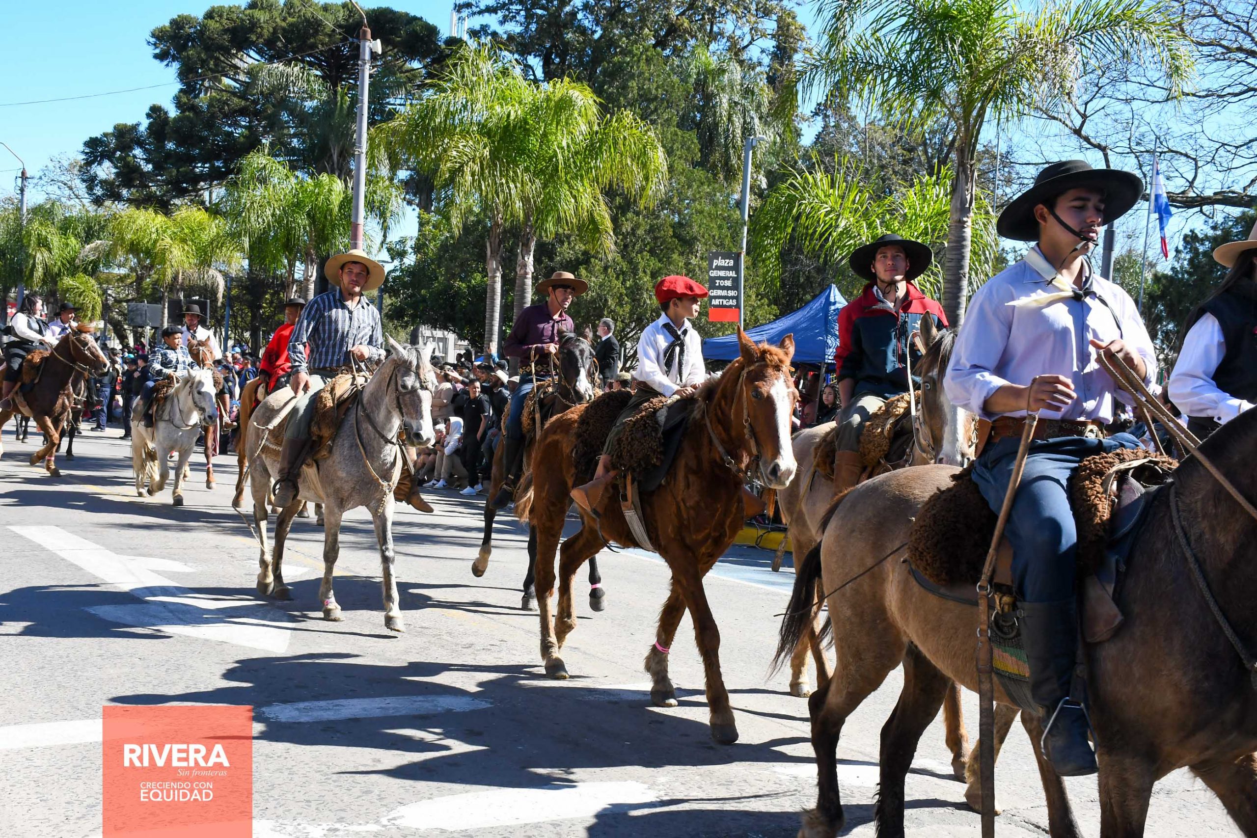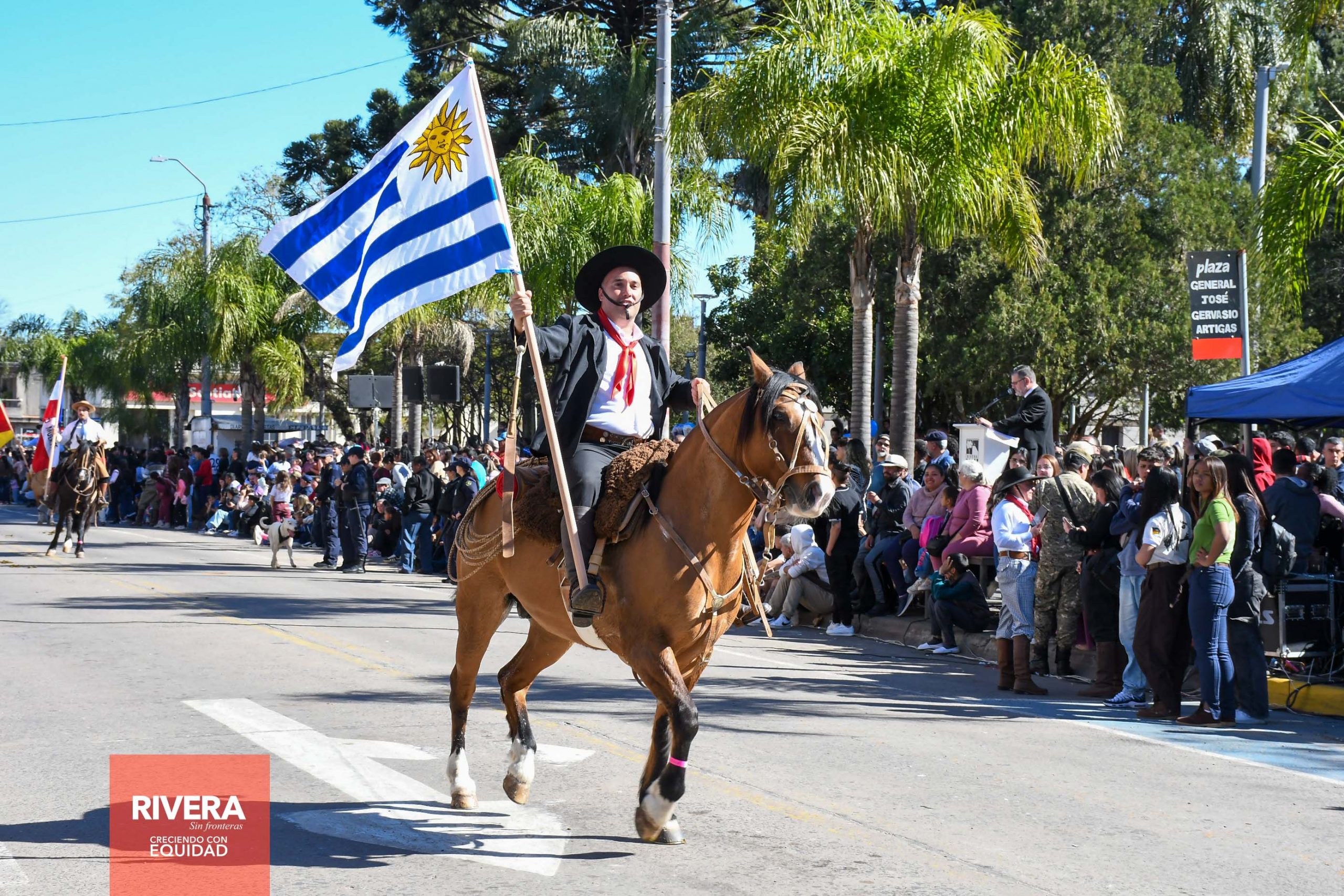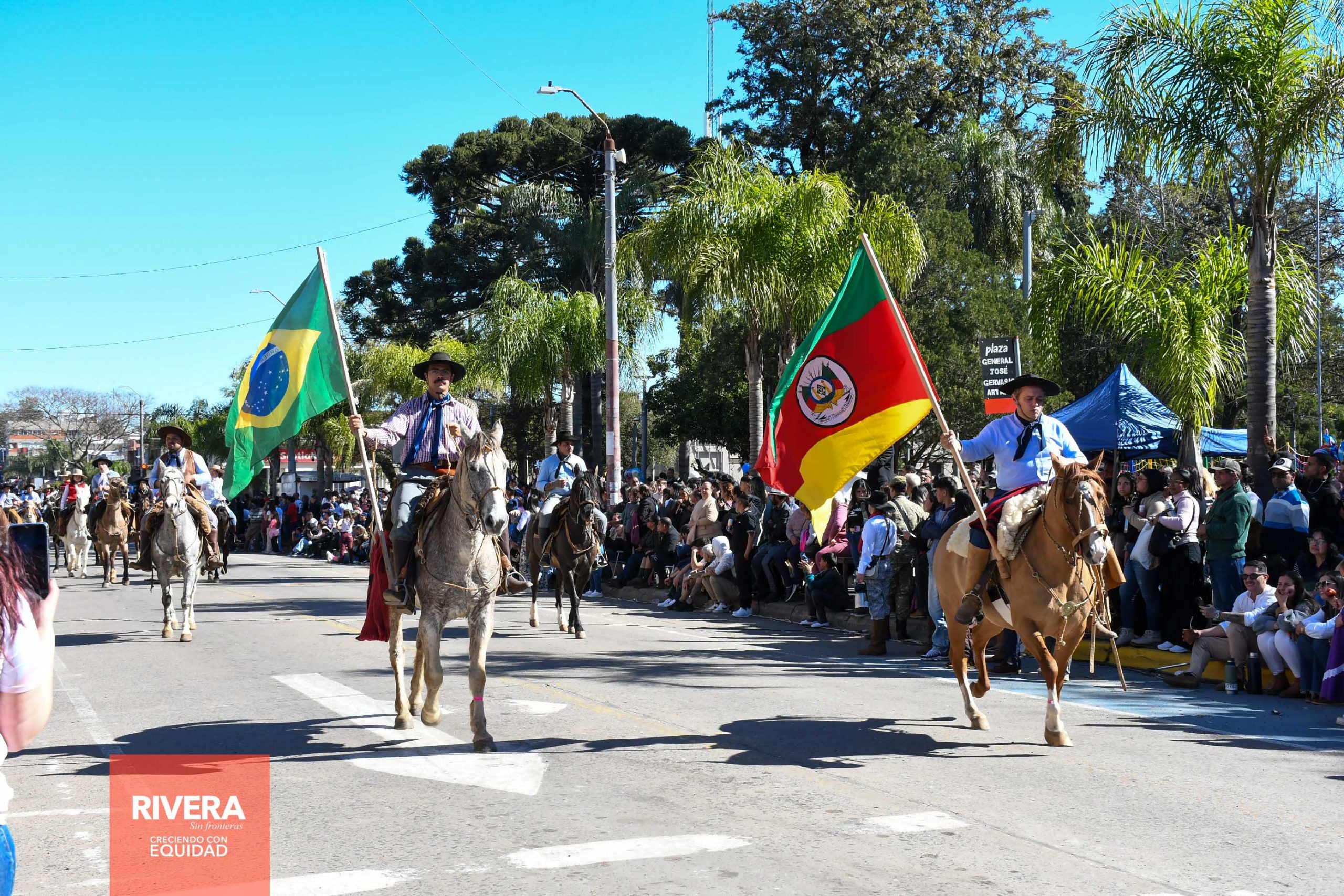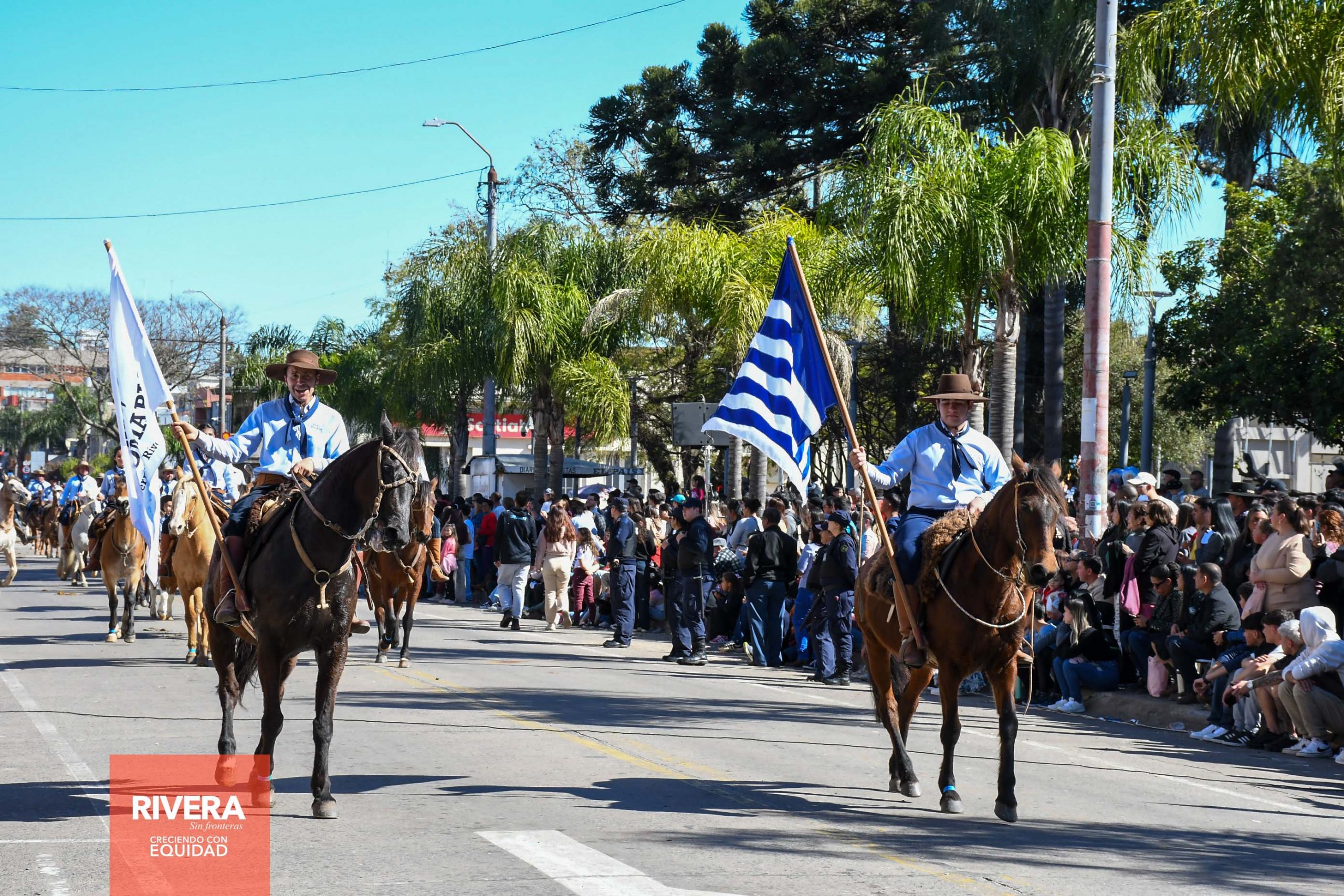 La Asociación Patriótica de Rivera organizó el mayor desfile cívico-militar y de caballería gaucha del país, que se extendió durante más de siete horas y reunió a miles de participantes y espectadores.