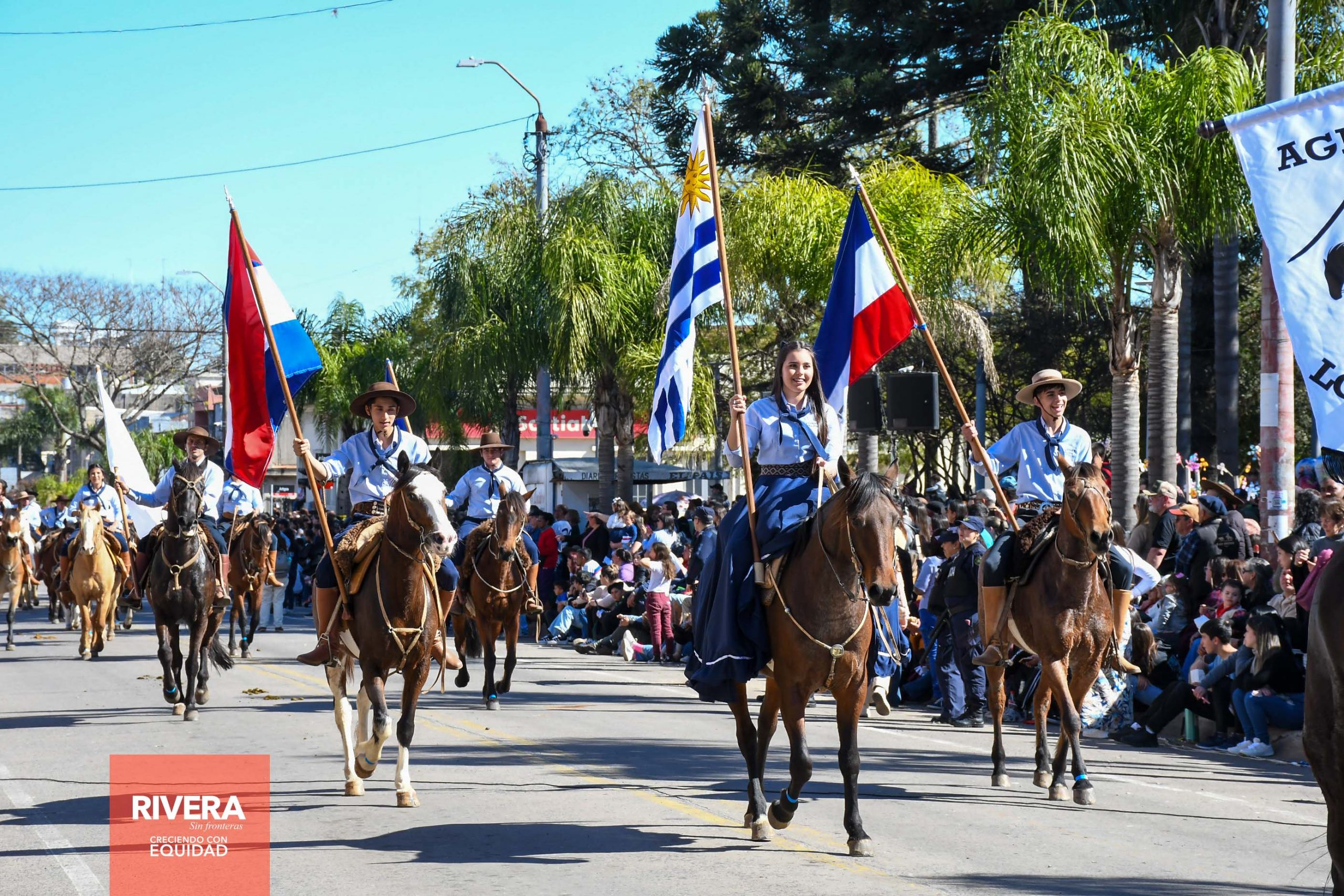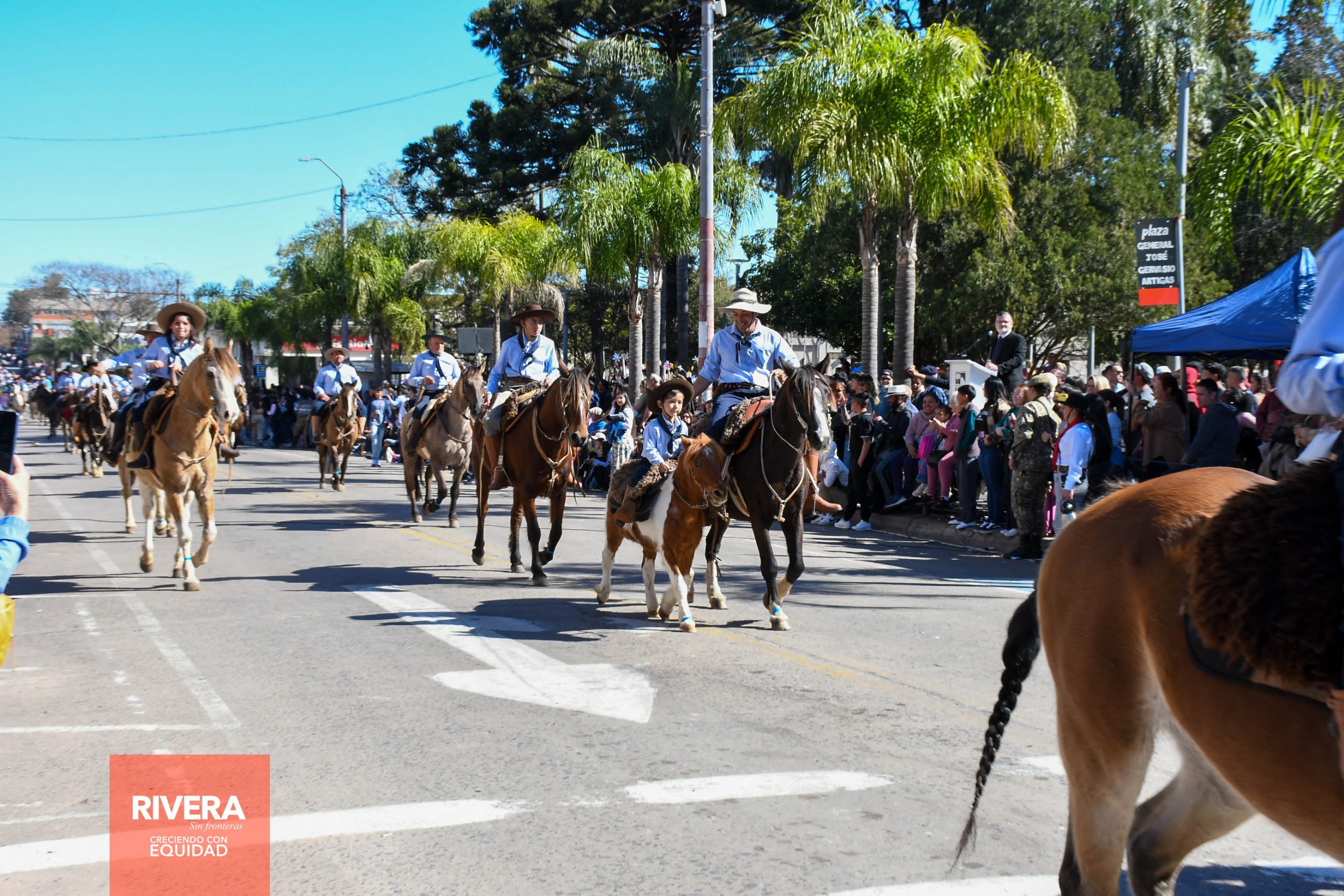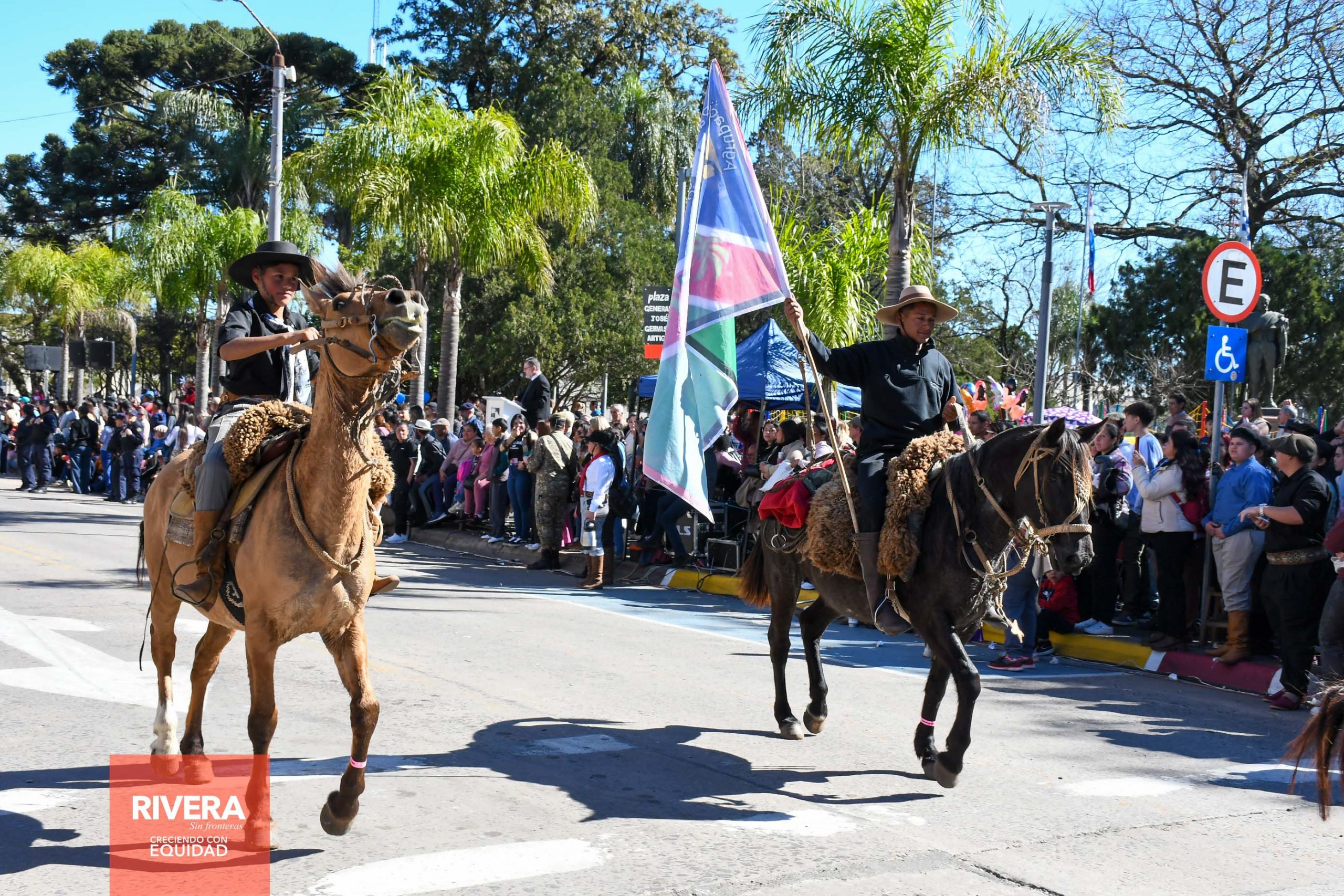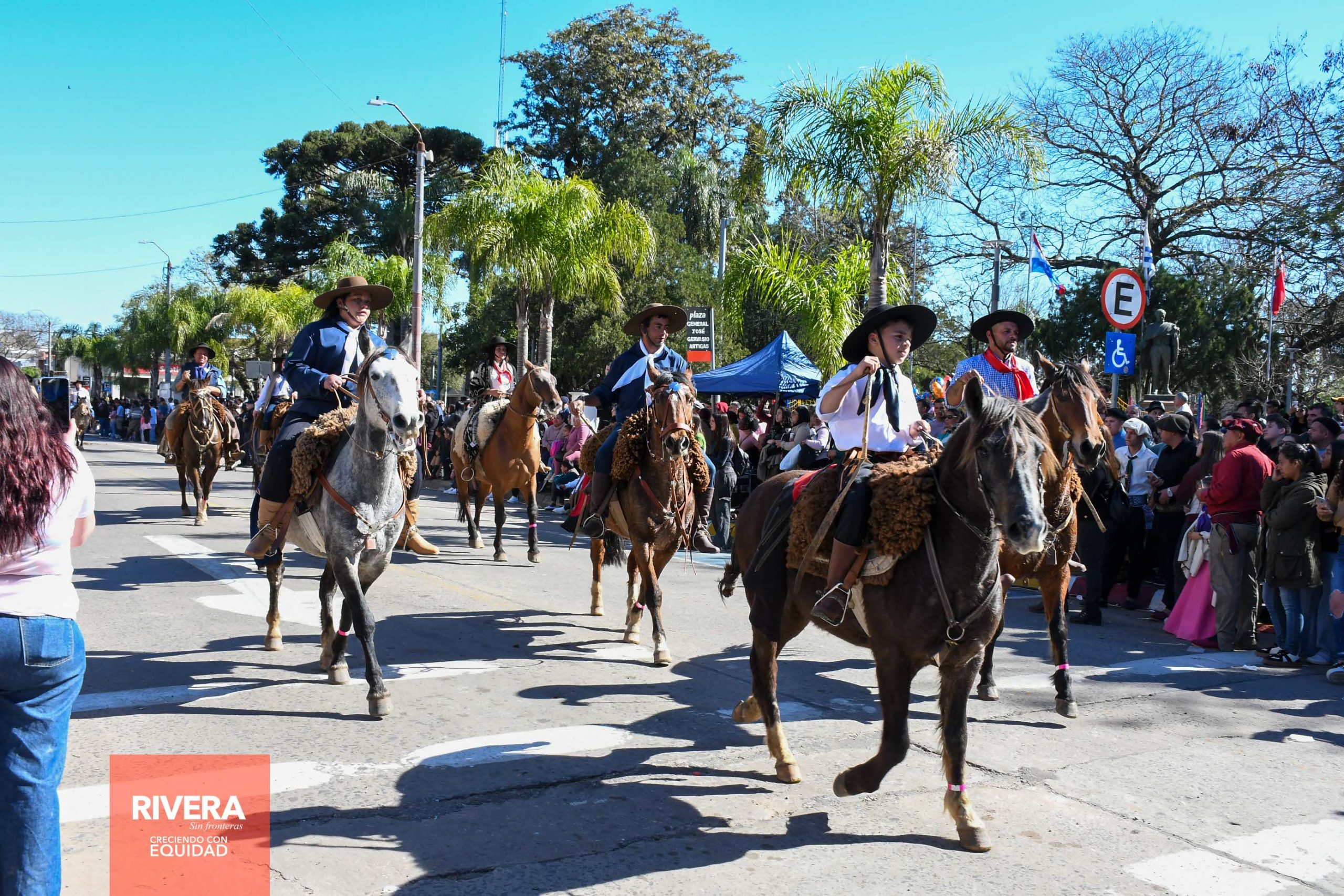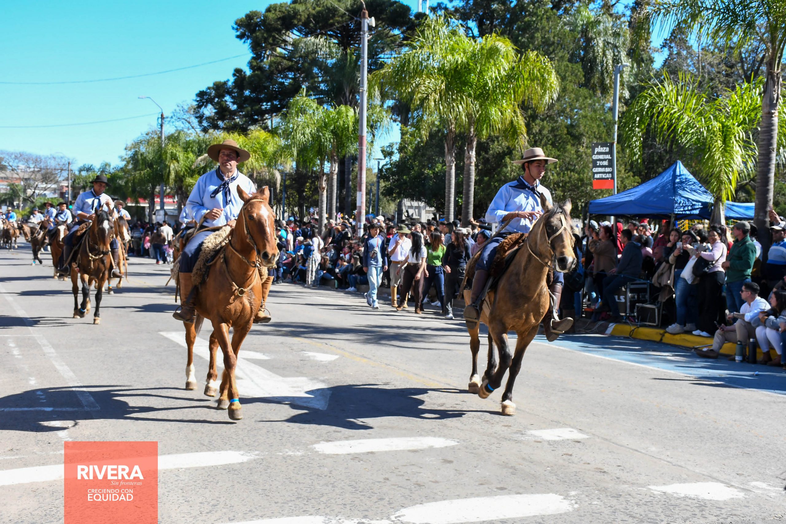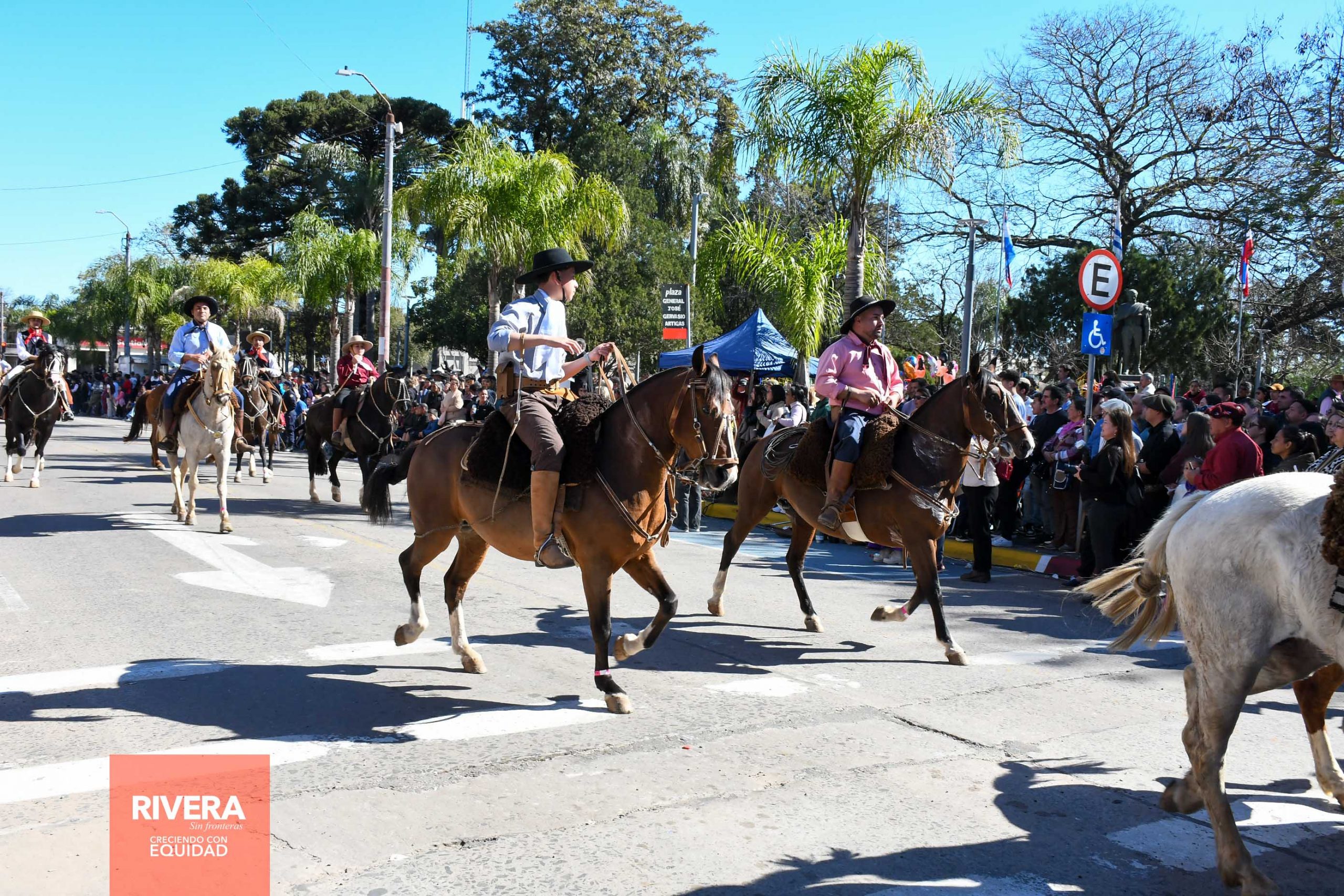 La Asociación Patriótica de Rivera organizó el mayor desfile cívico-militar y de caballería gaucha del país, que se extendió durante más de siete horas y reunió a miles de participantes y espectadores.