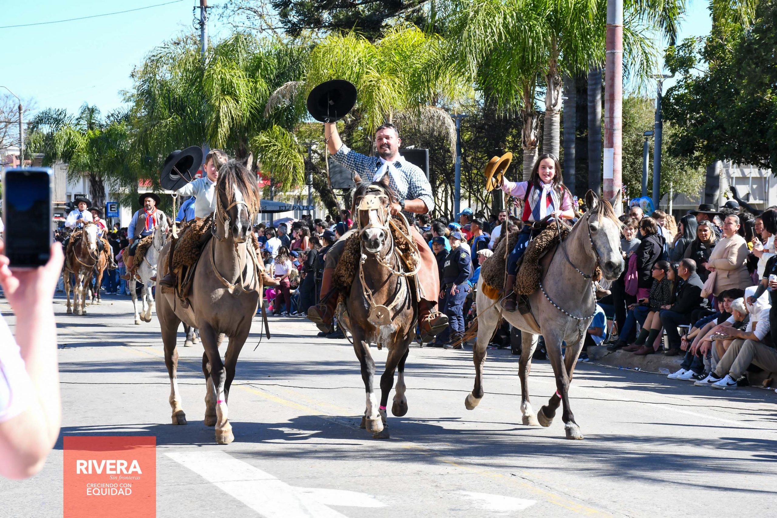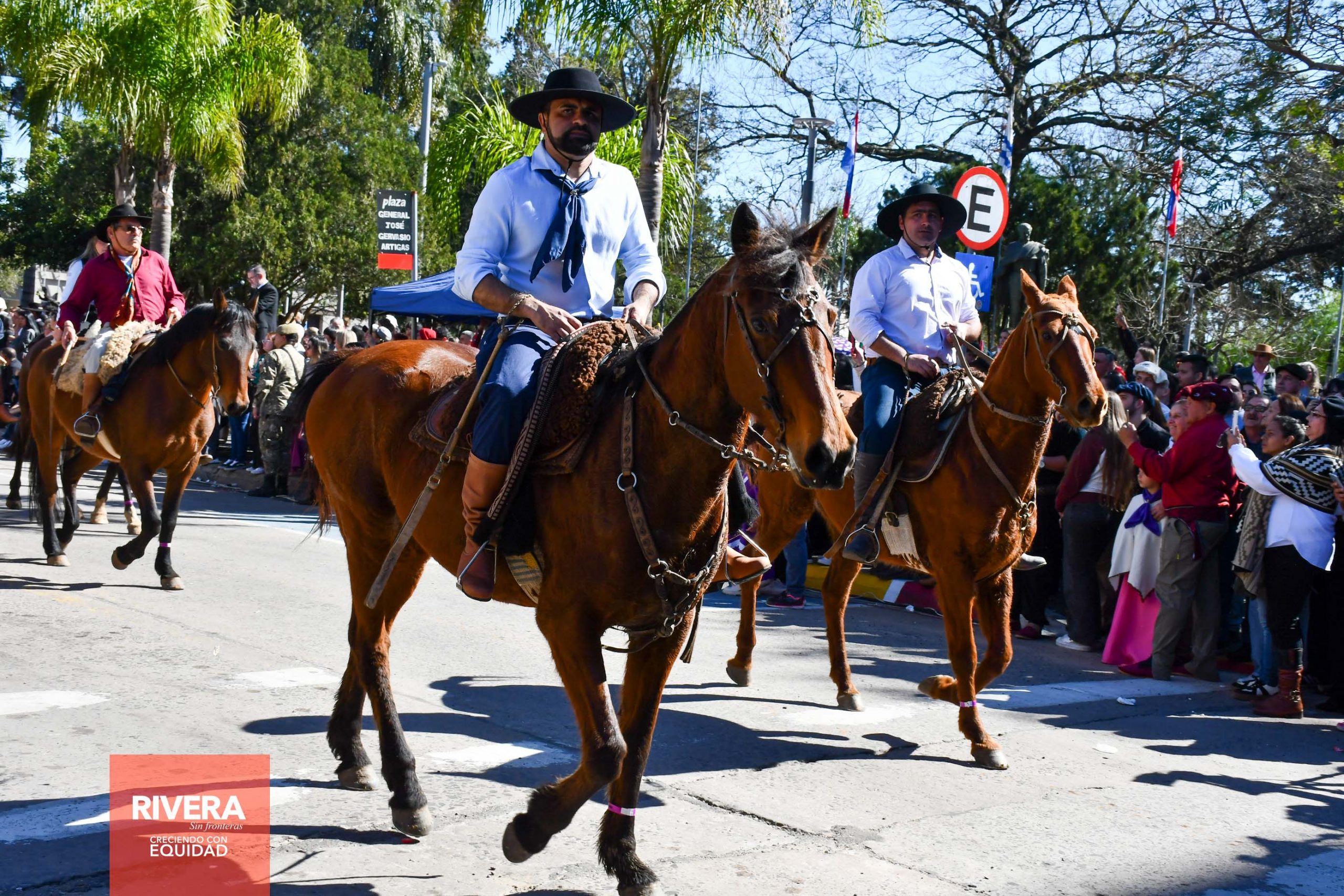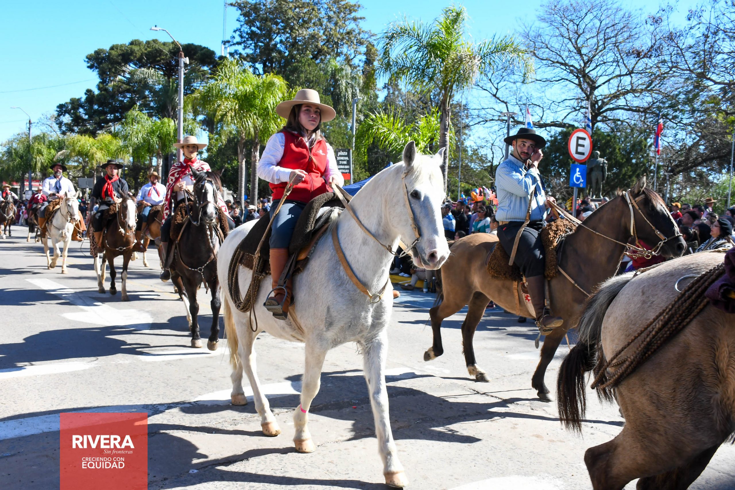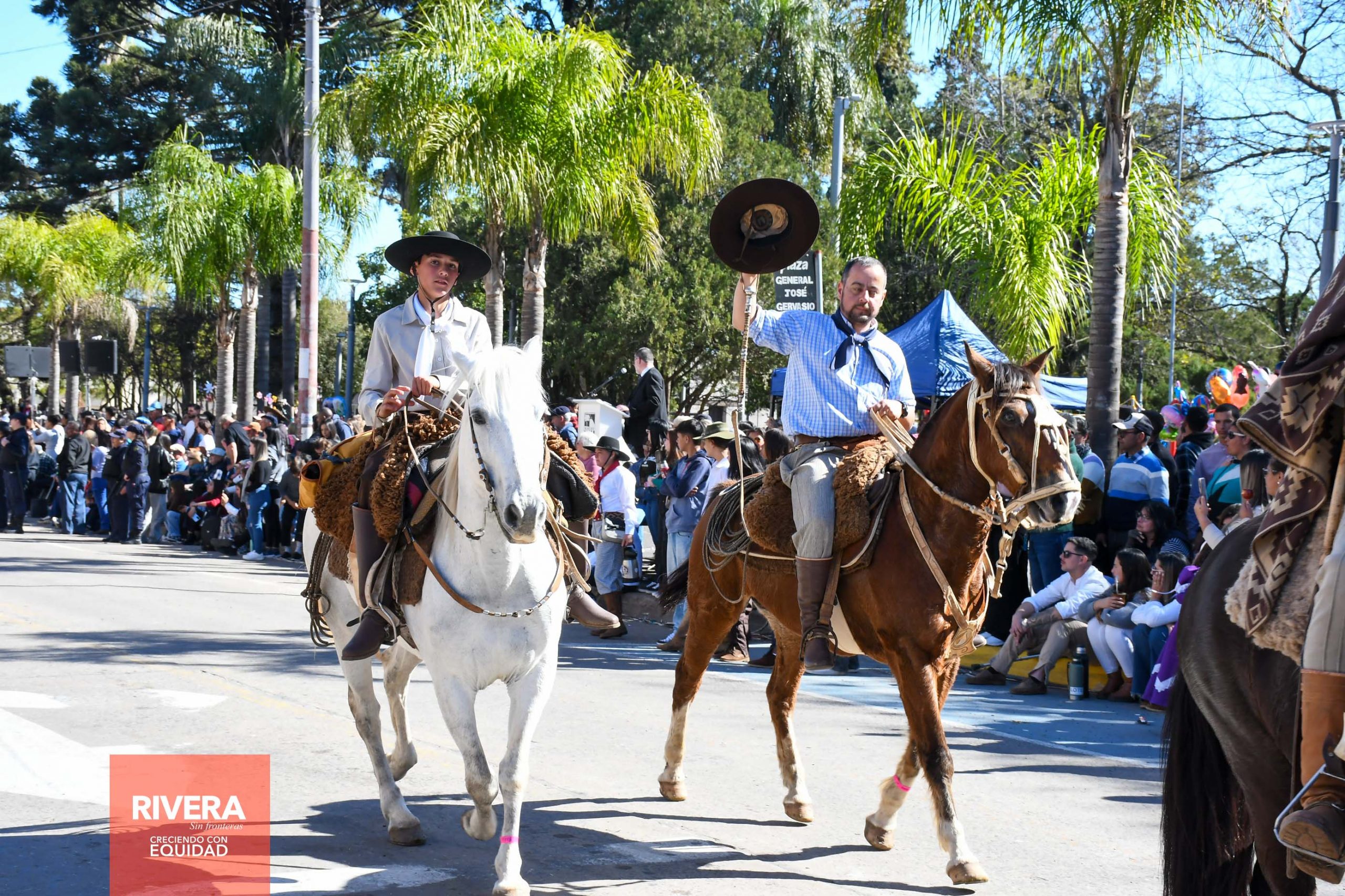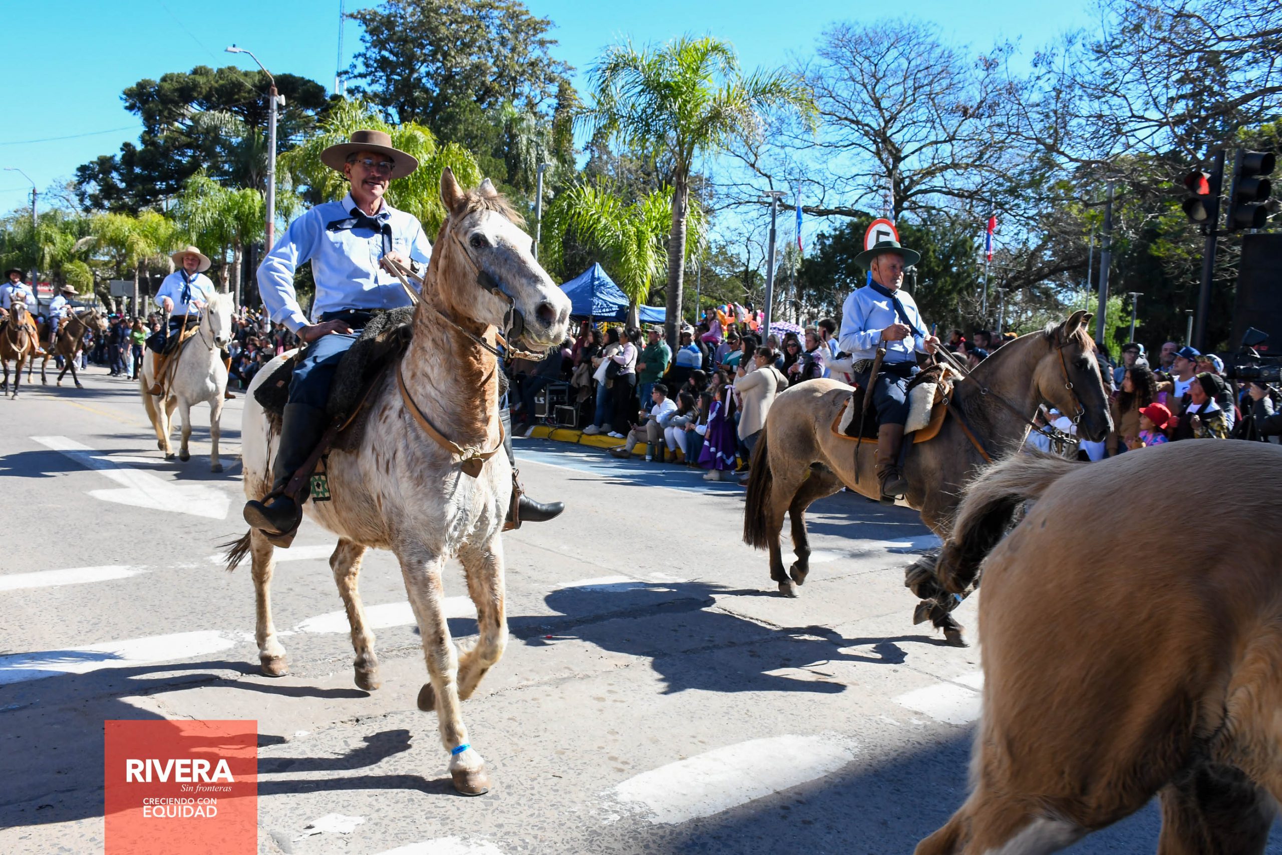 La Asociación Patriótica de Rivera organizó el mayor desfile cívico-militar y de caballería gaucha del país, que se extendió durante más de siete horas y reunió a miles de participantes y espectadores.