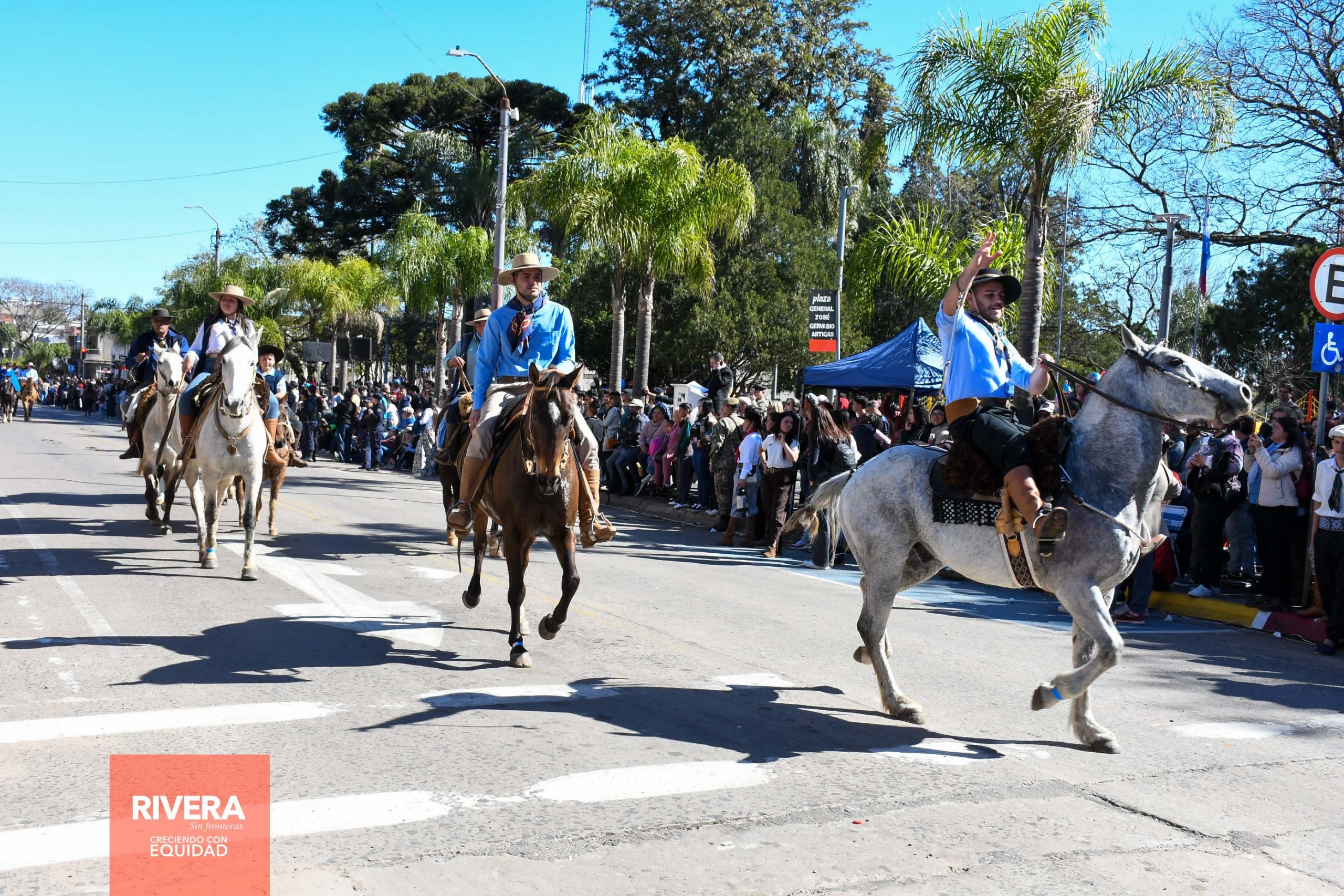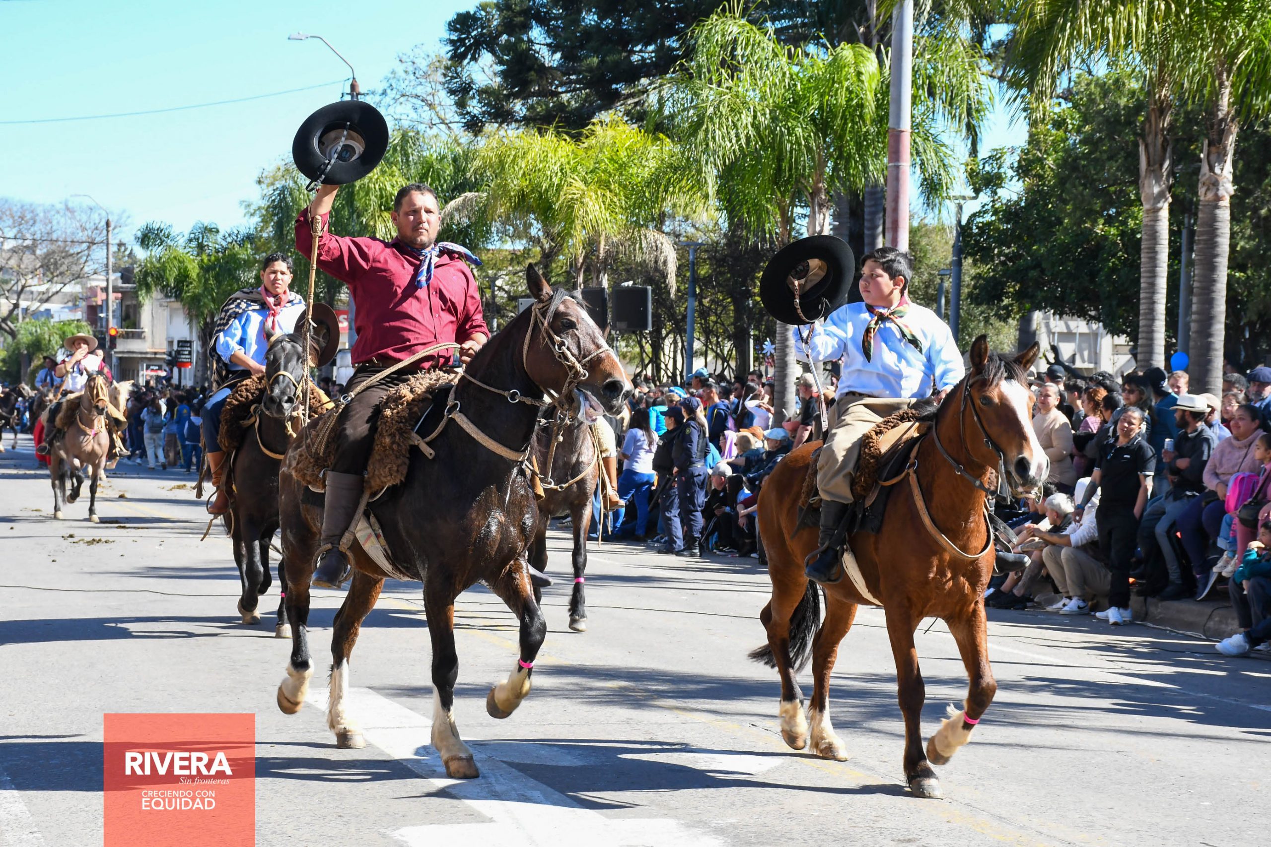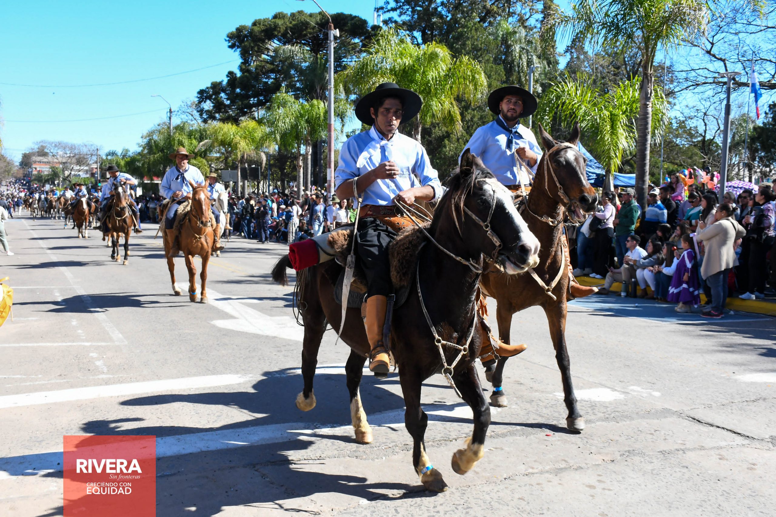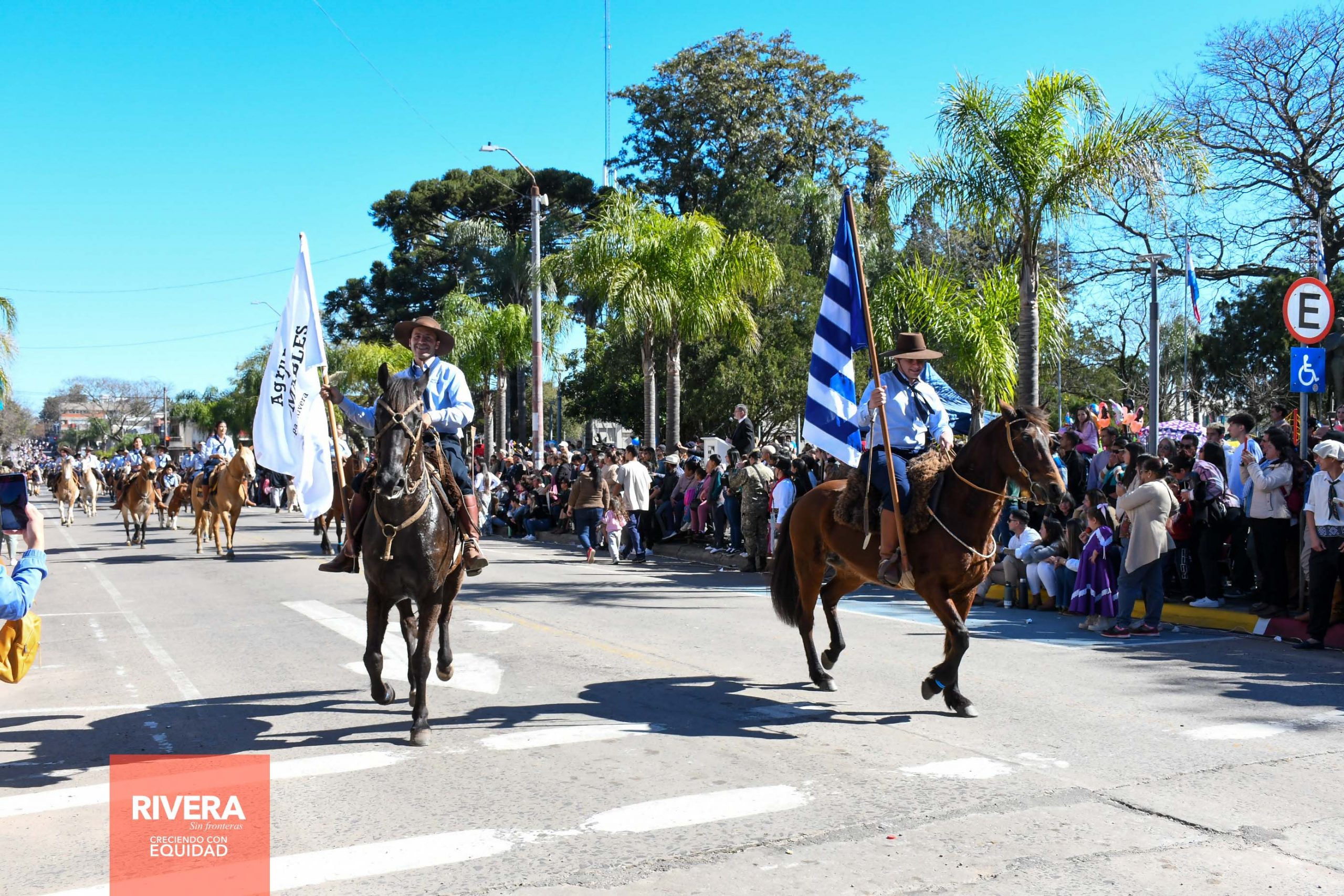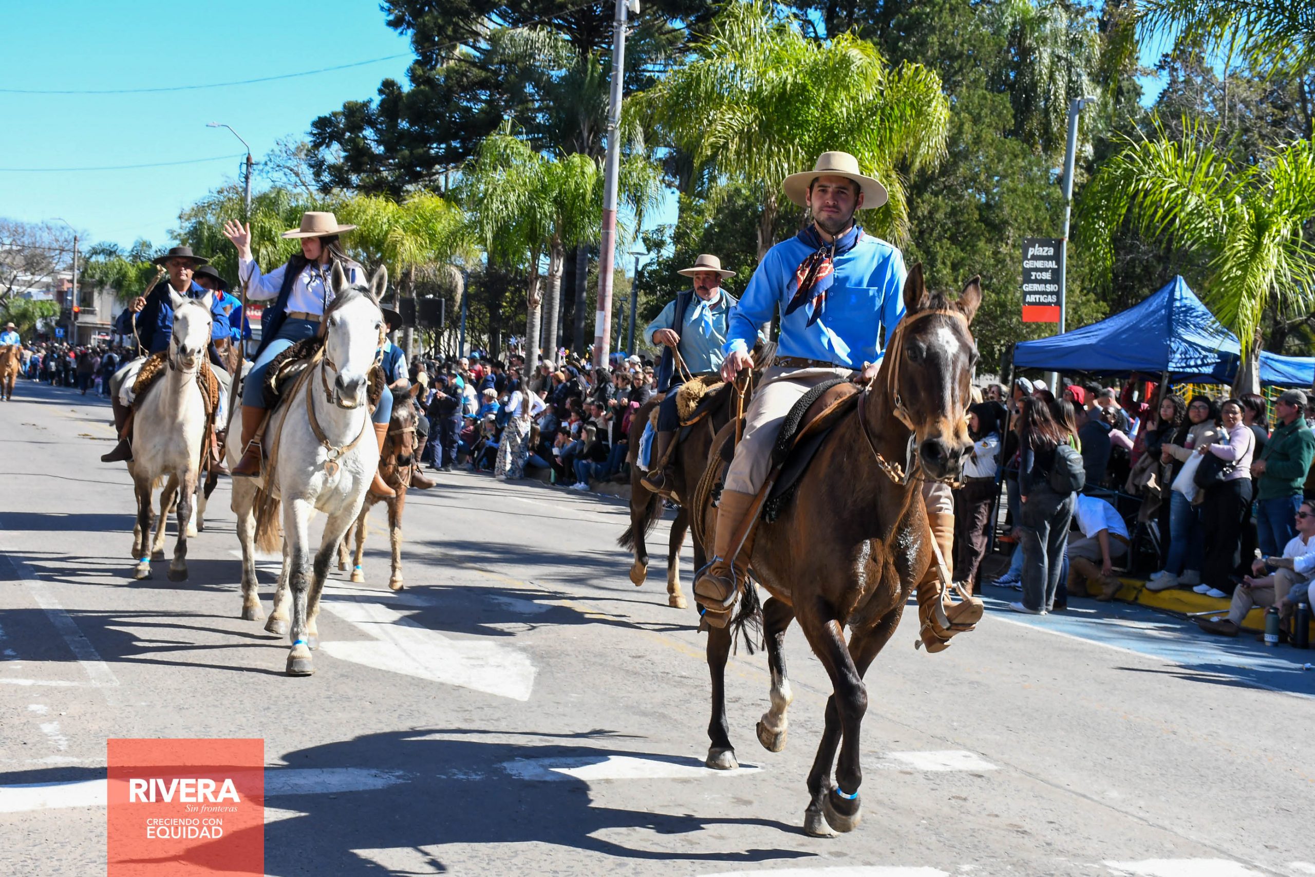 La Asociación Patriótica de Rivera organizó el mayor desfile cívico-militar y de caballería gaucha del país, que se extendió durante más de siete horas y reunió a miles de participantes y espectadores.