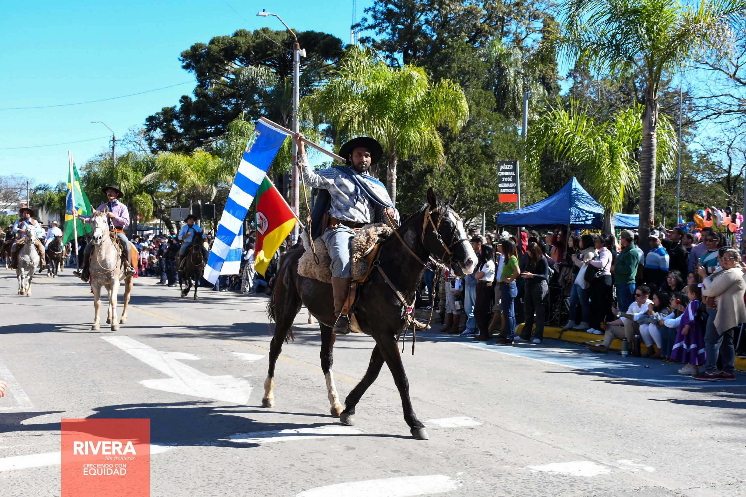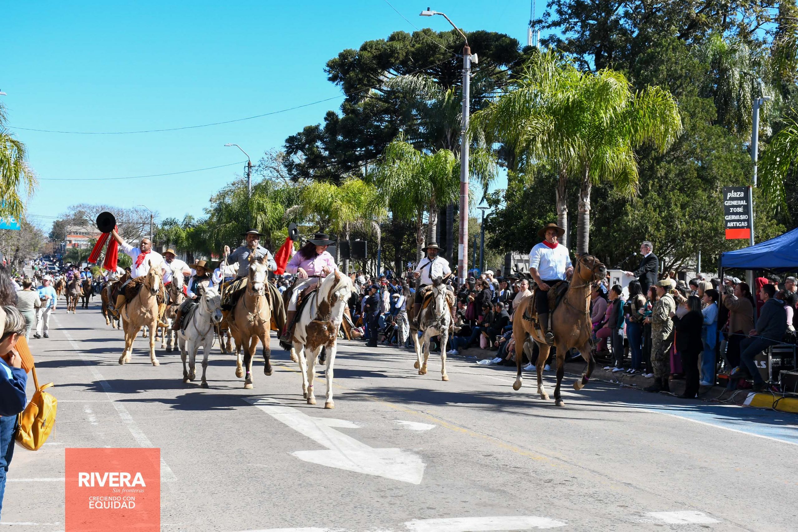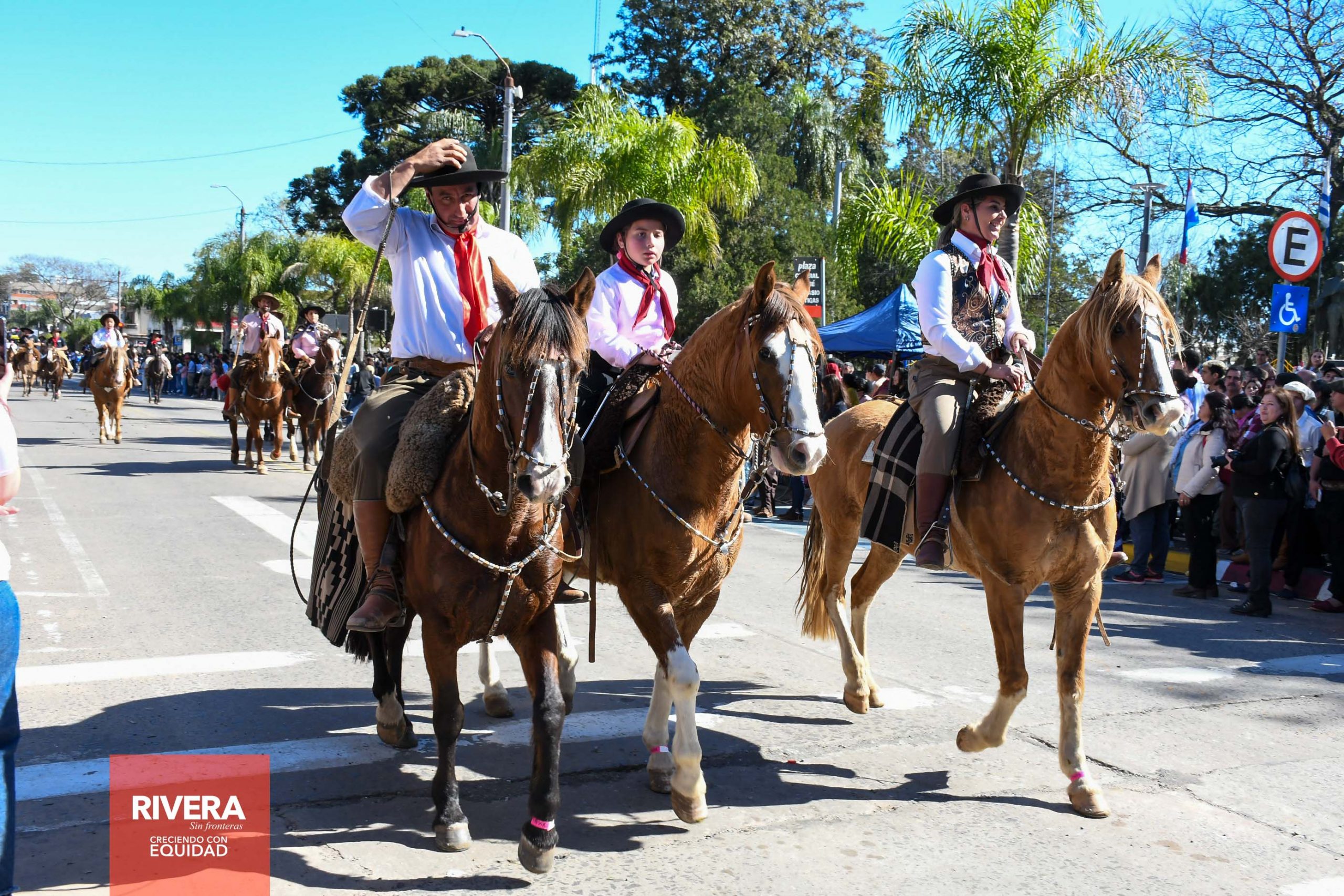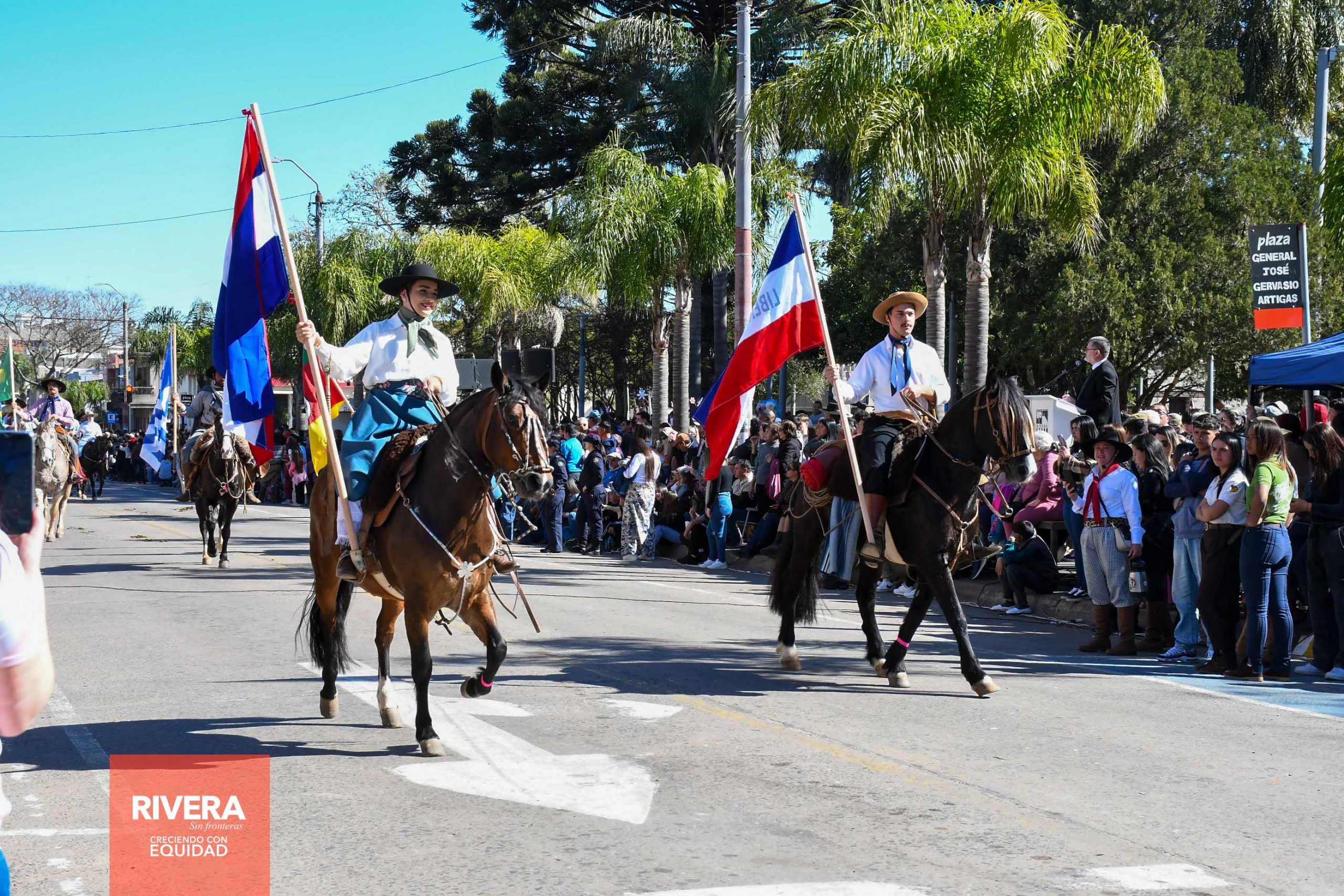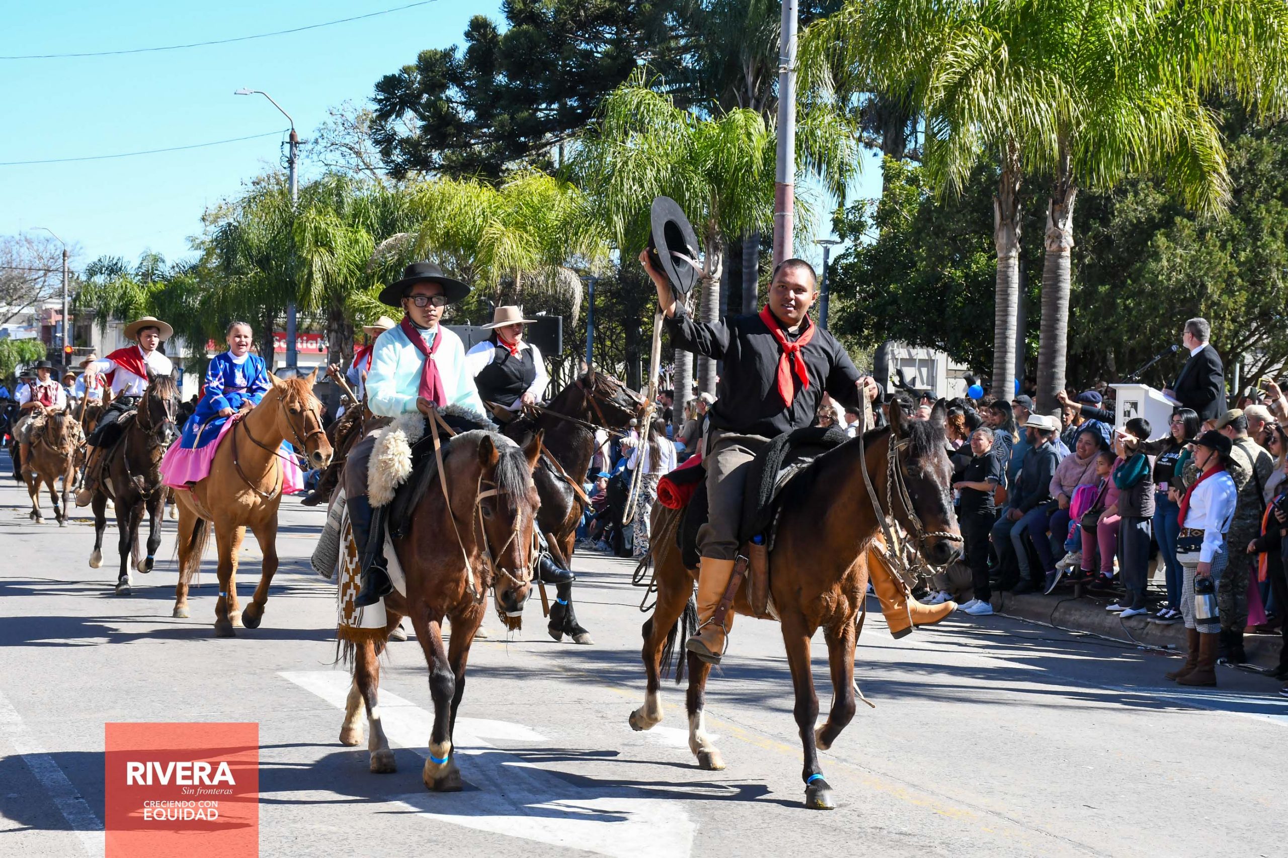 La Asociación Patriótica de Rivera organizó el mayor desfile cívico-militar y de caballería gaucha del país, que se extendió durante más de siete horas y reunió a miles de participantes y espectadores.