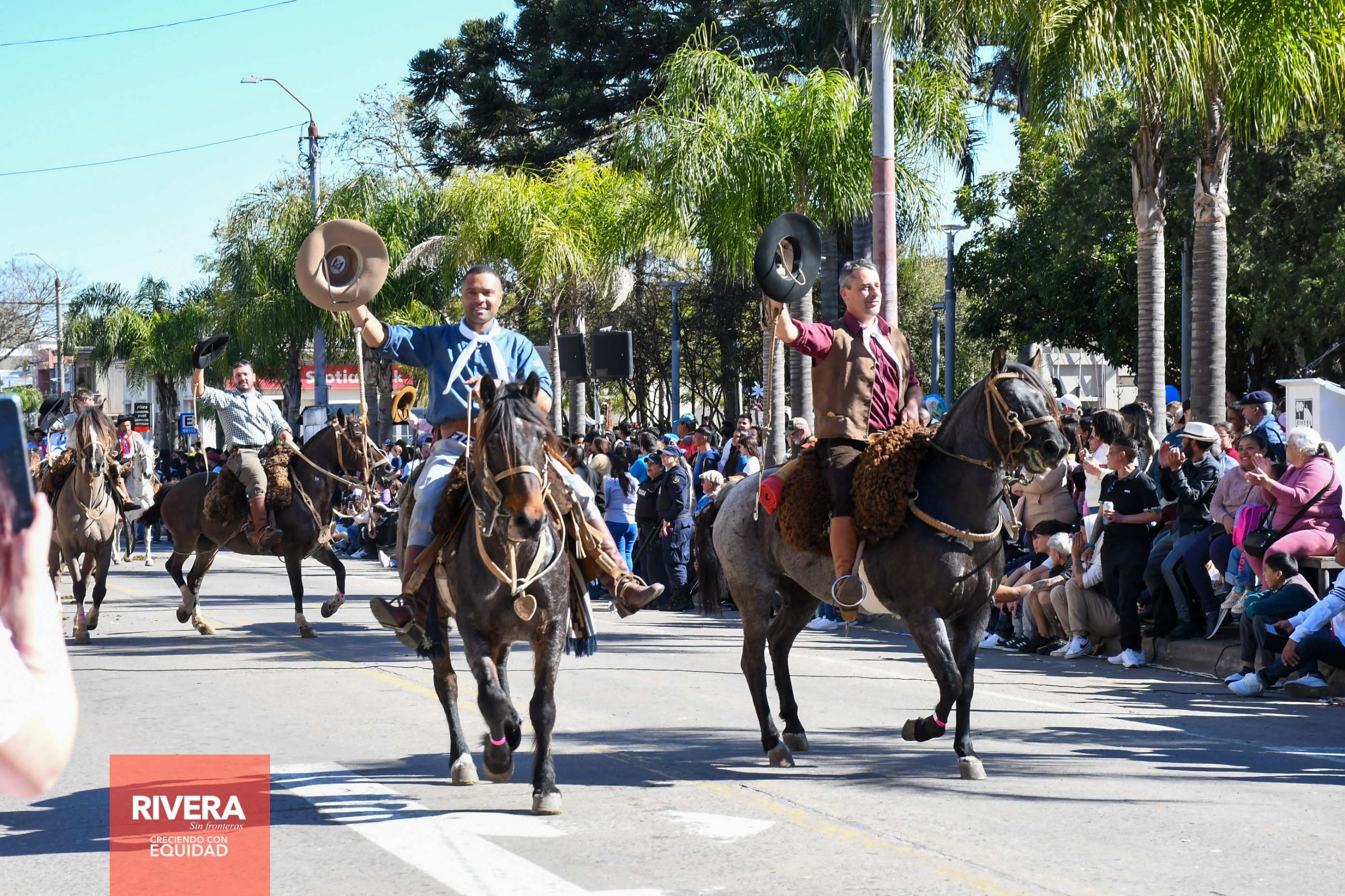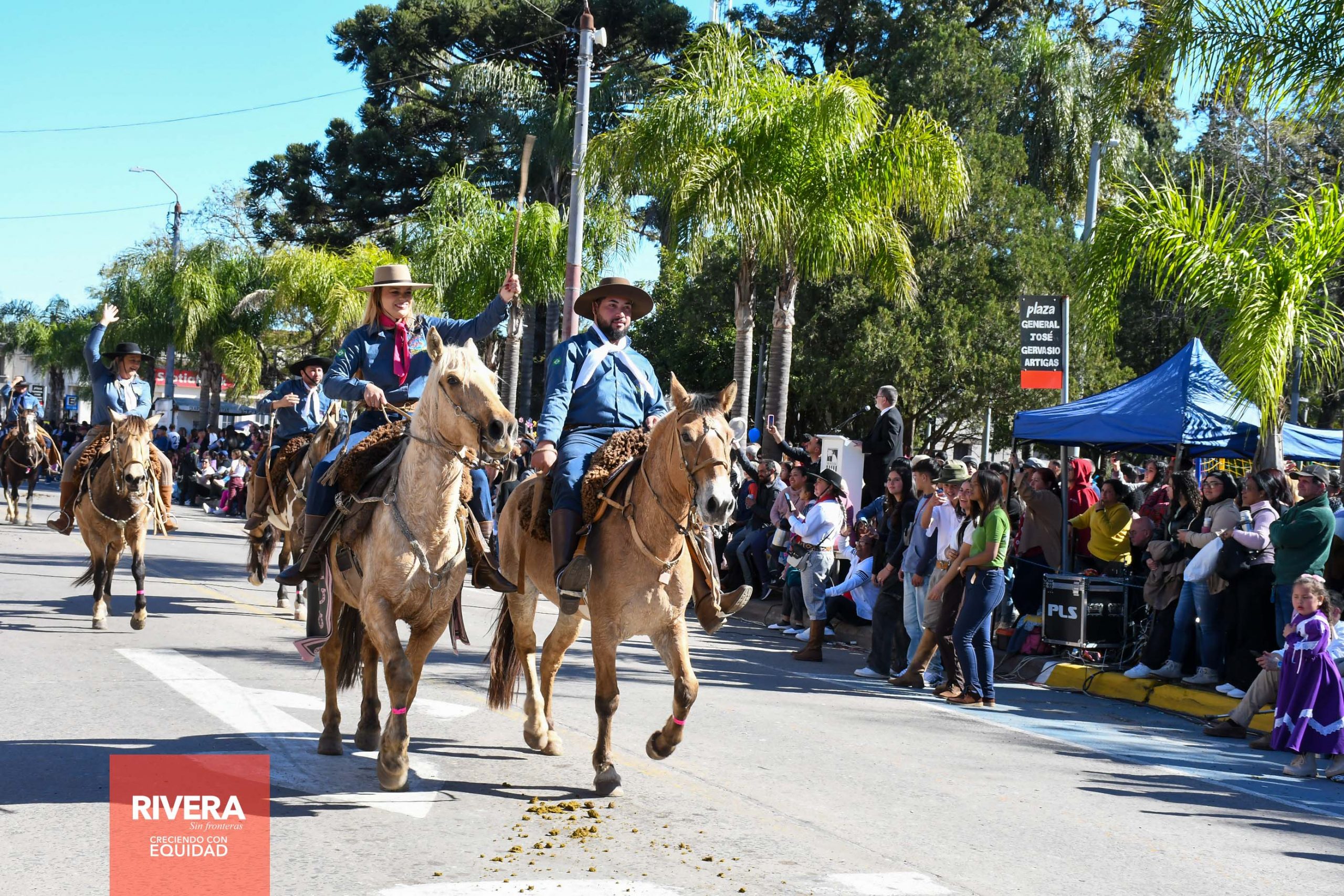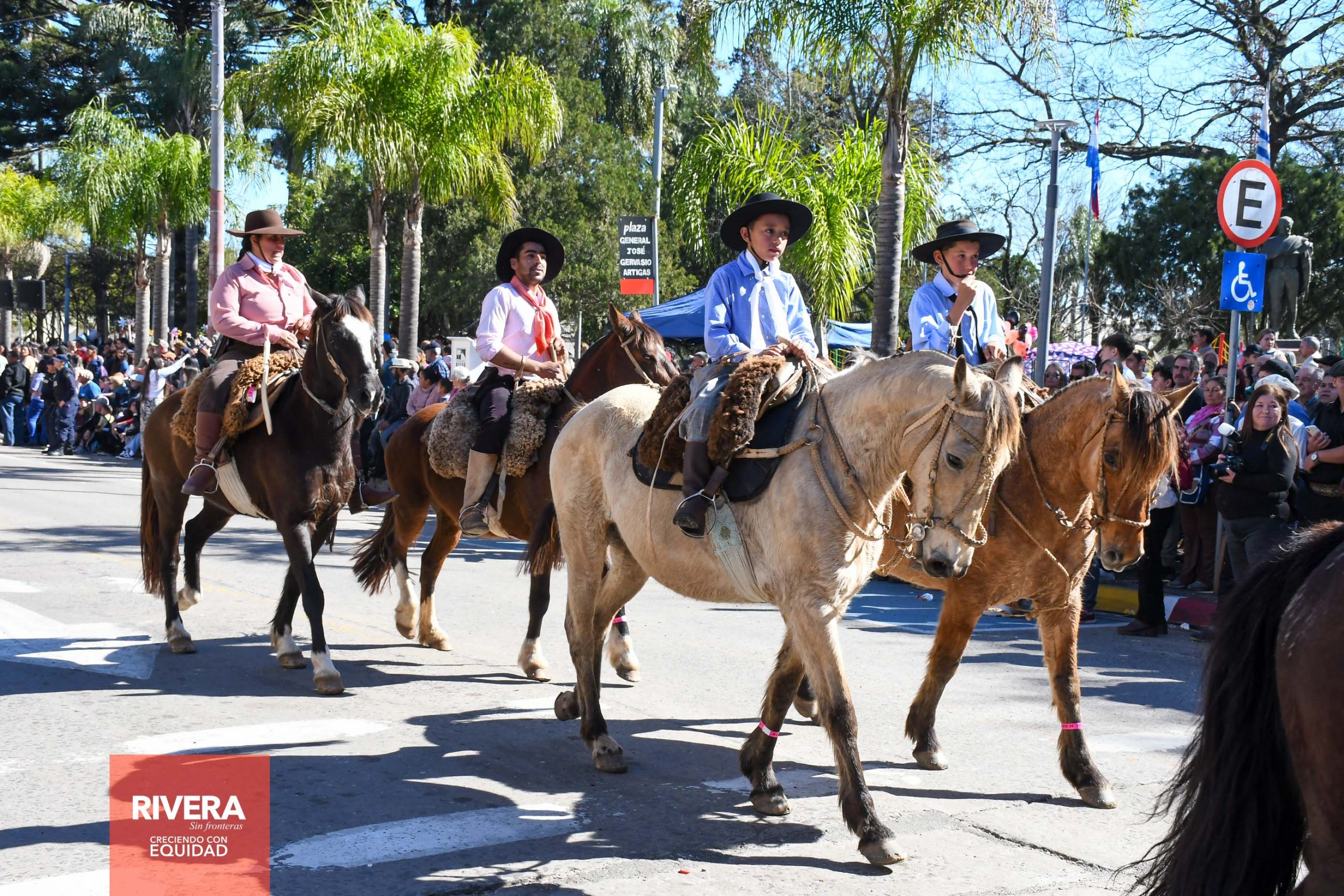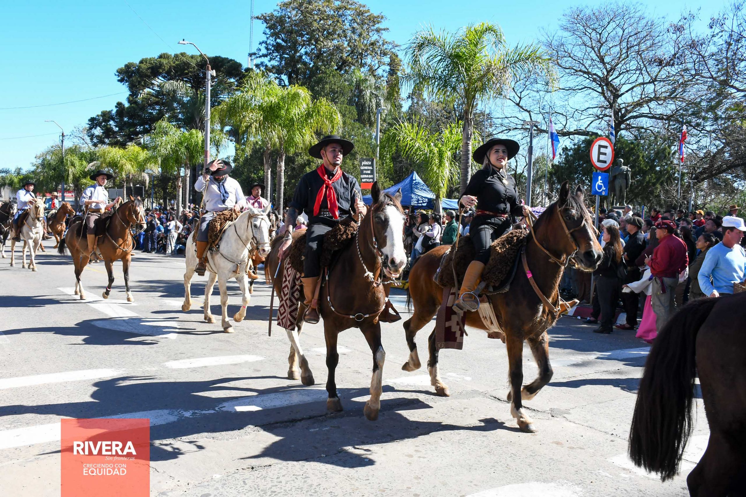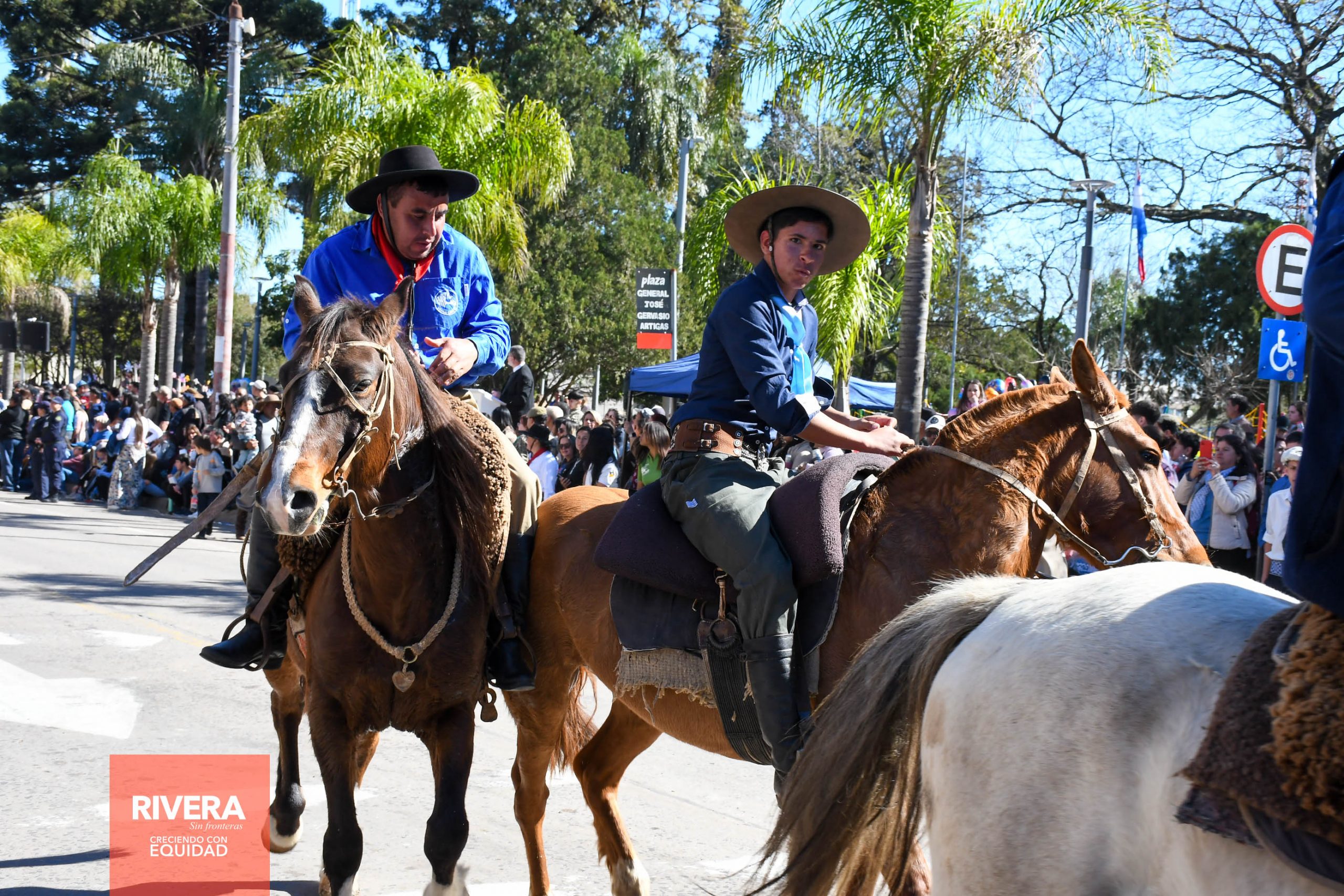 La Asociación Patriótica de Rivera organizó el mayor desfile cívico-militar y de caballería gaucha del país, que se extendió durante más de siete horas y reunió a miles de participantes y espectadores.