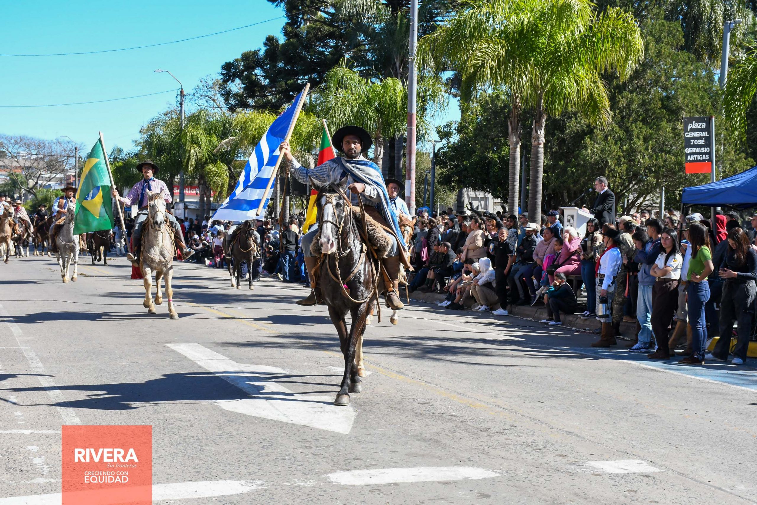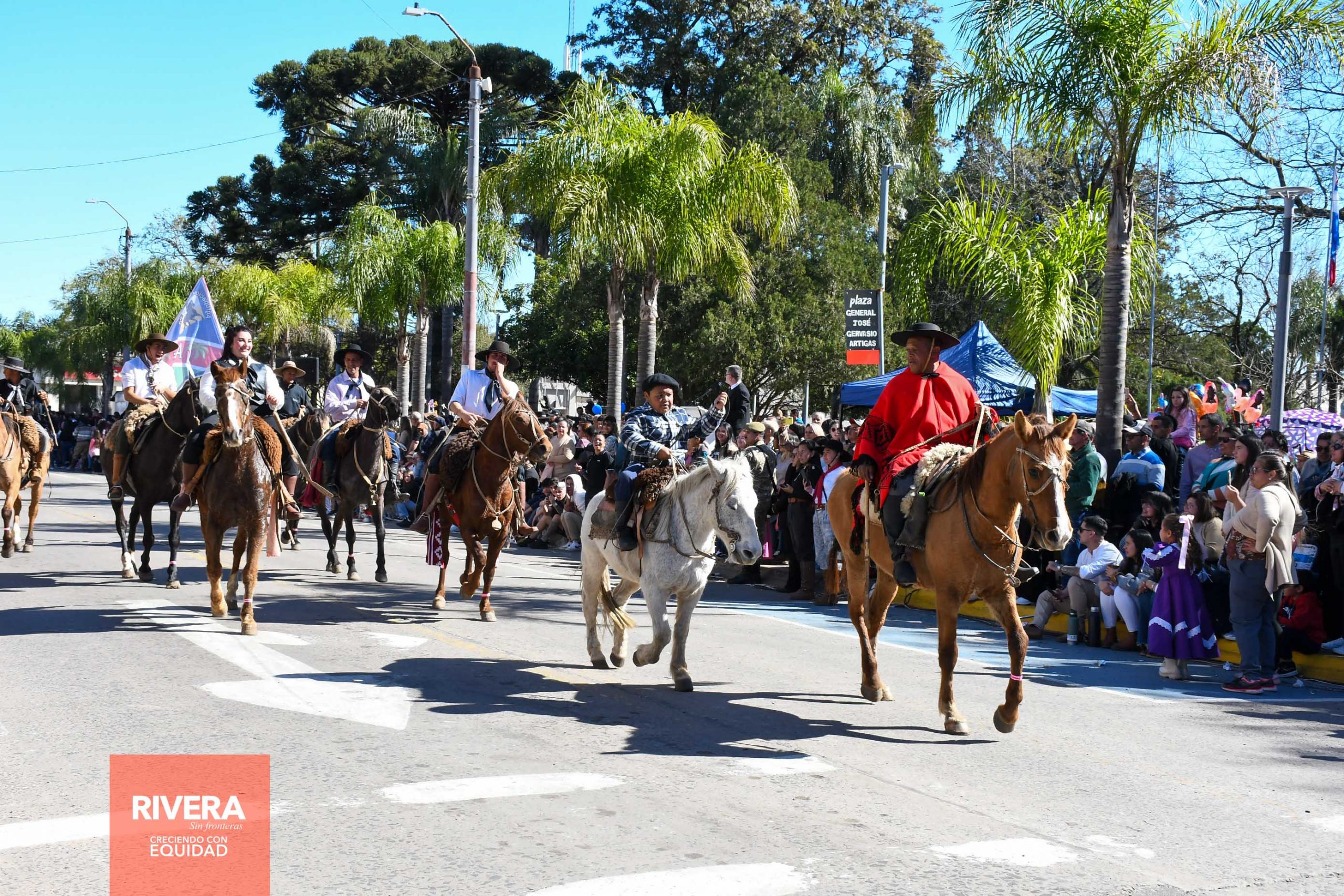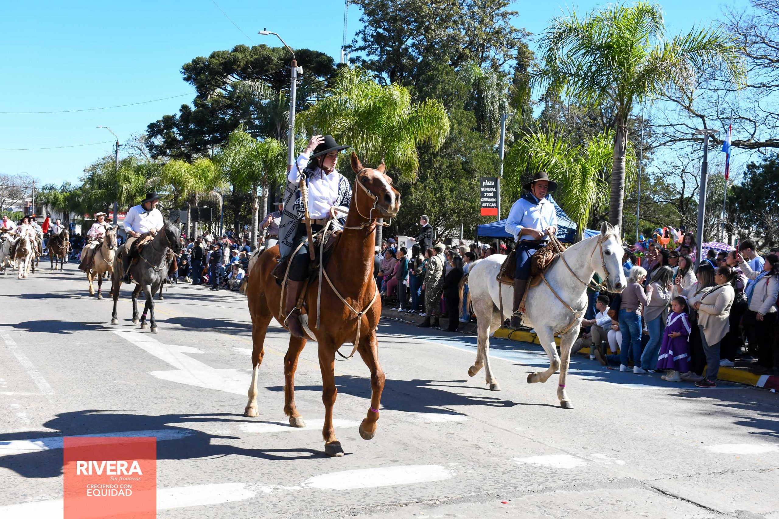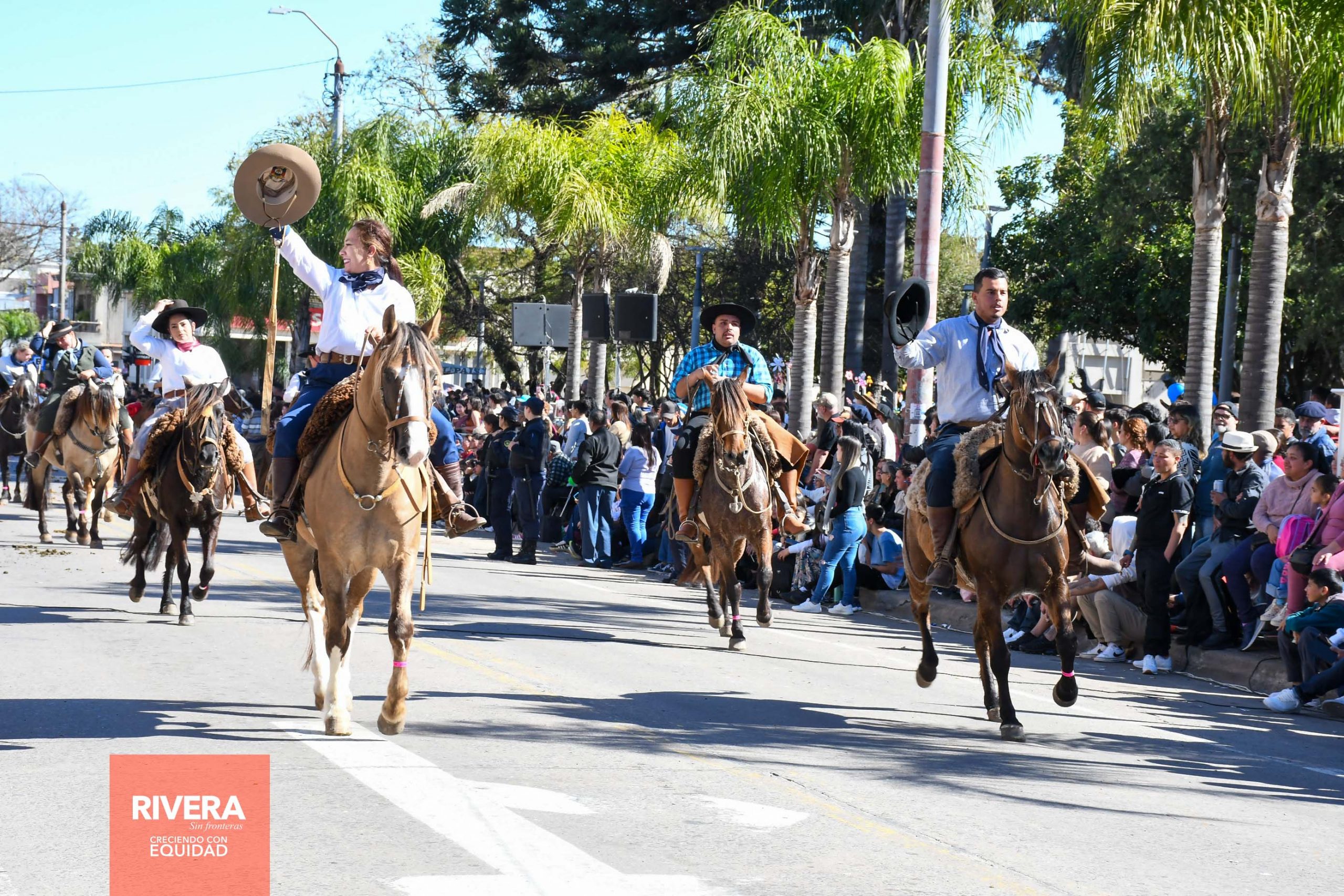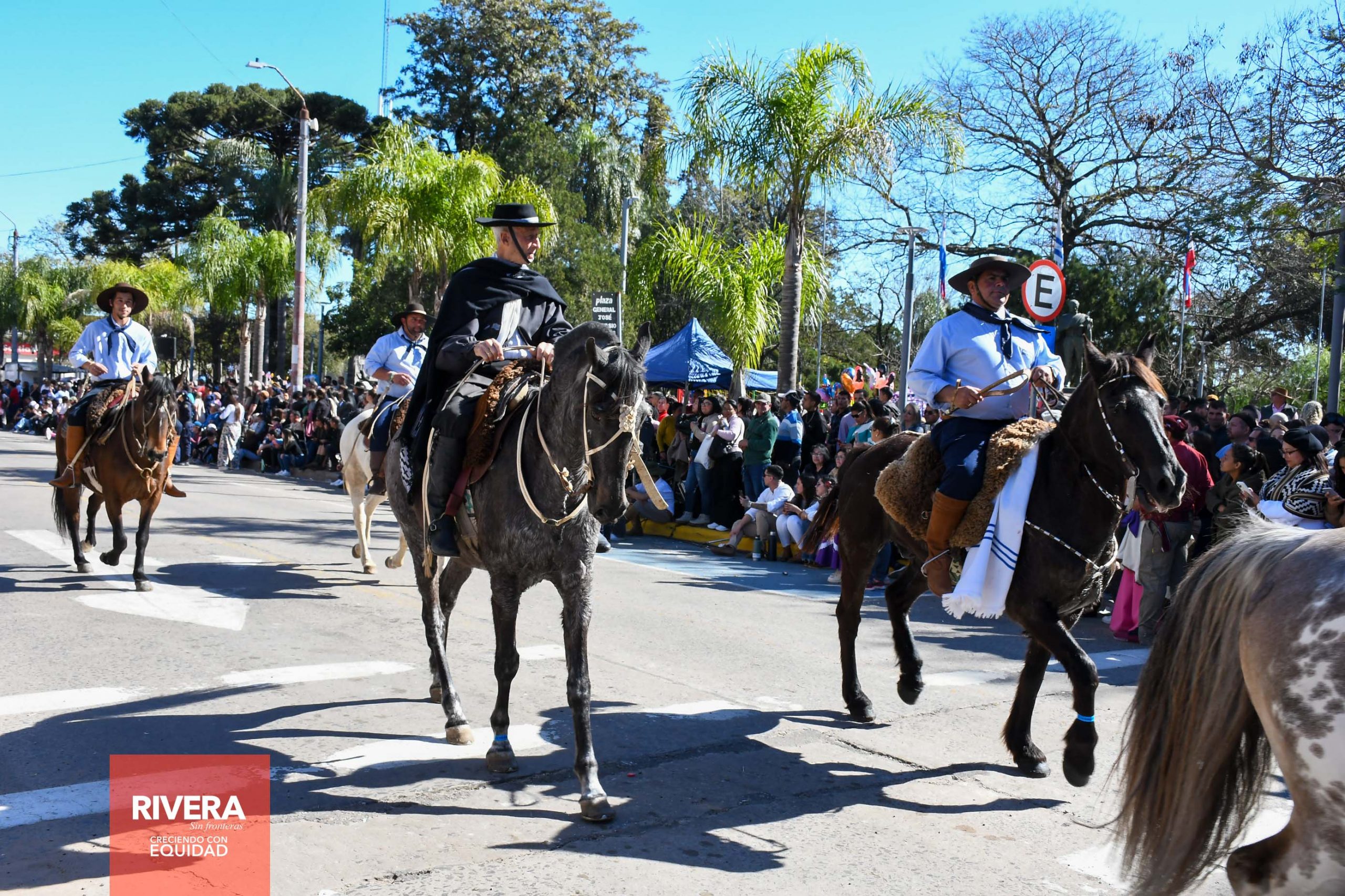 La Asociación Patriótica de Rivera organizó el mayor desfile cívico-militar y de caballería gaucha del país, que se extendió durante más de siete horas y reunió a miles de participantes y espectadores.