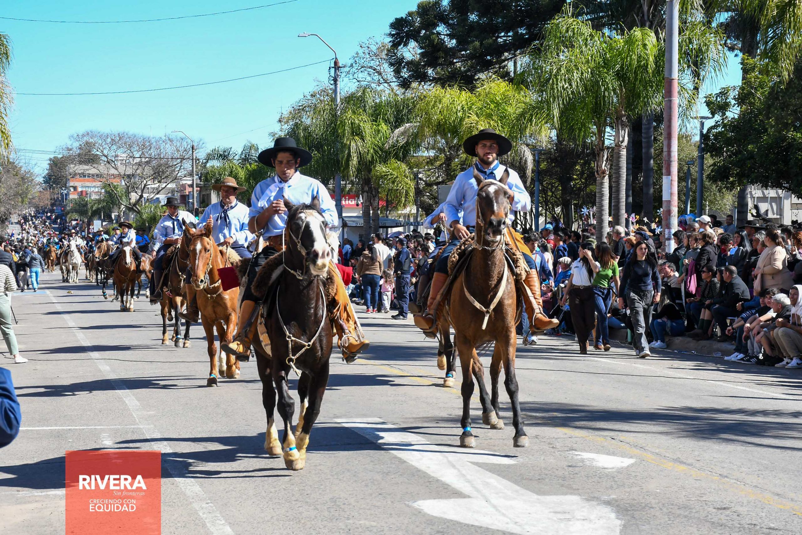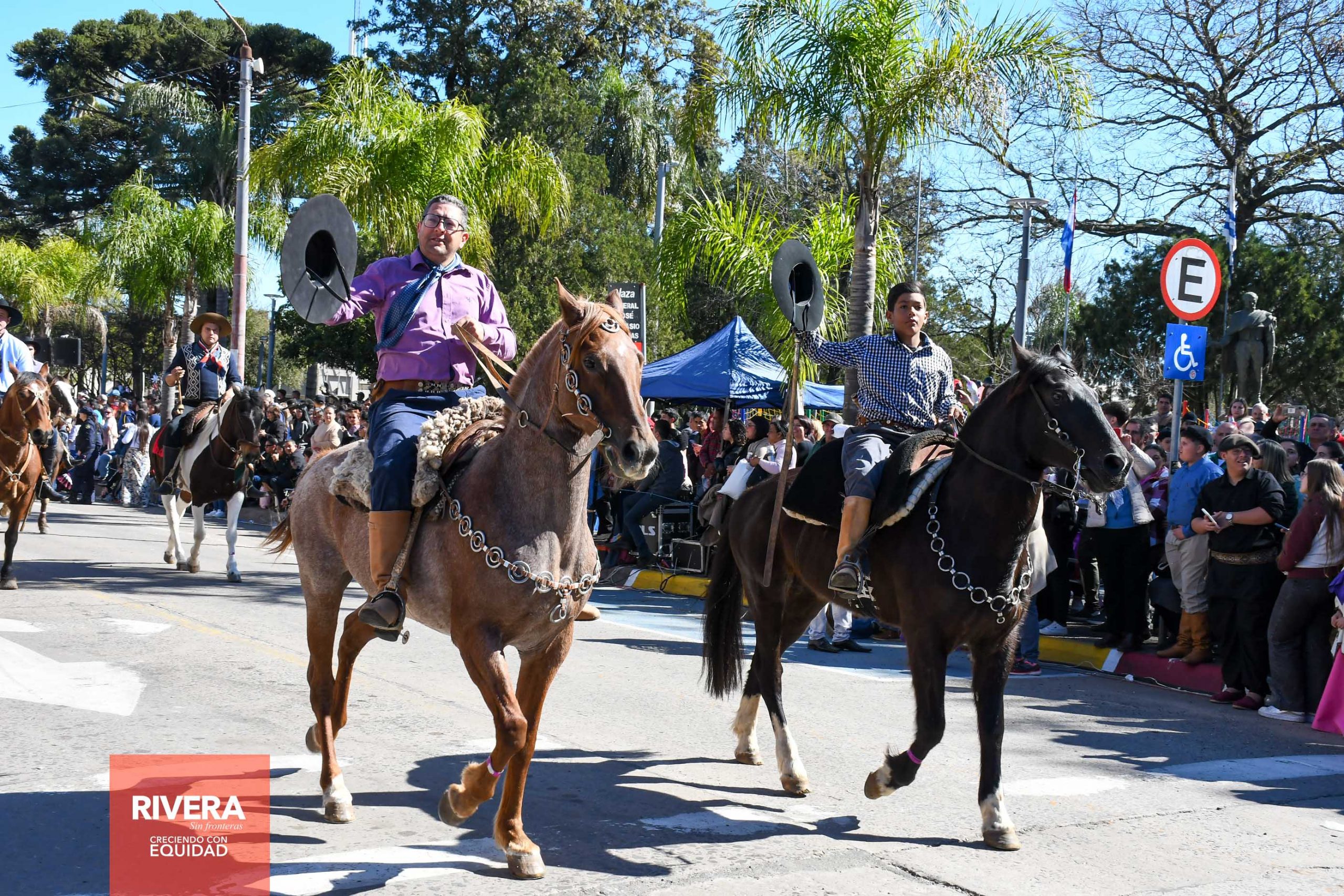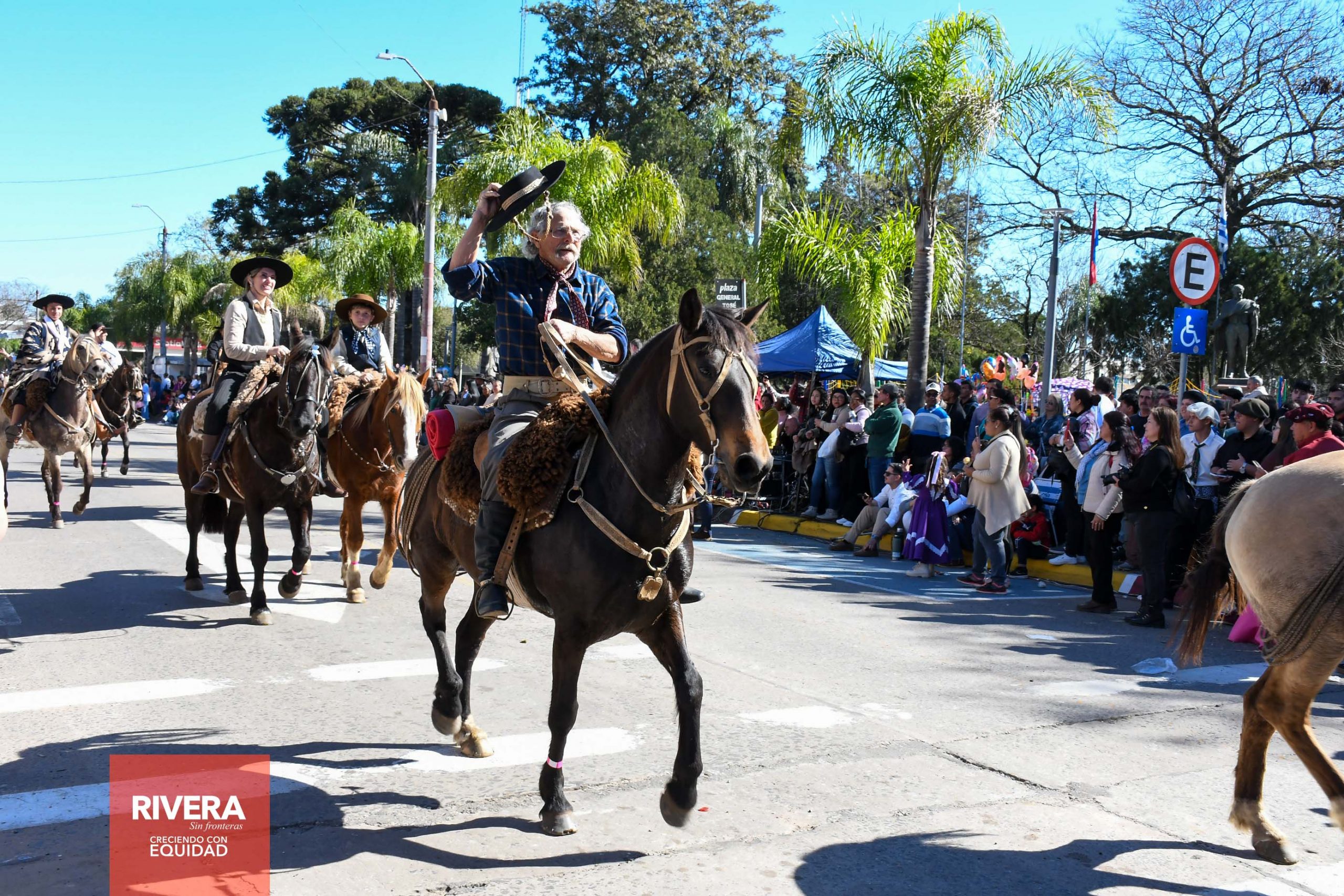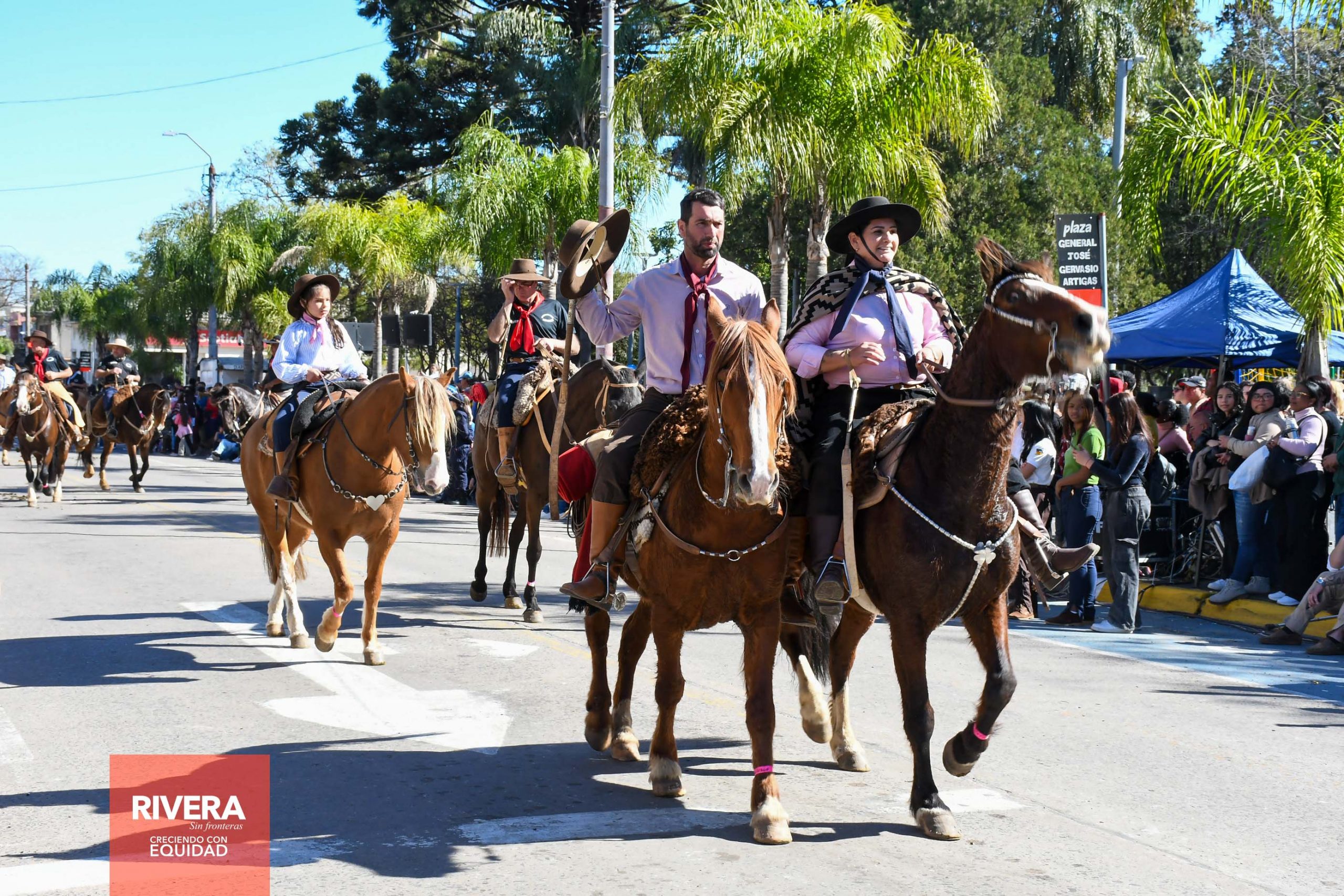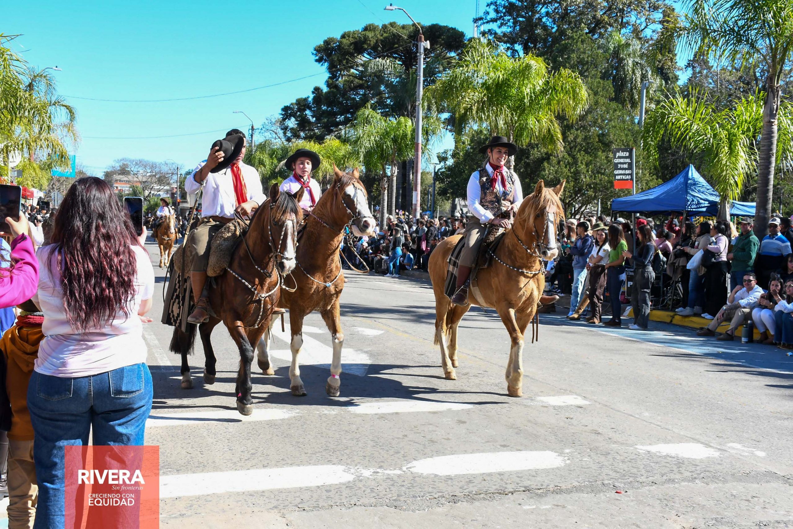 La Asociación Patriótica de Rivera organizó el mayor desfile cívico-militar y de caballería gaucha del país, que se extendió durante más de siete horas y reunió a miles de participantes y espectadores.