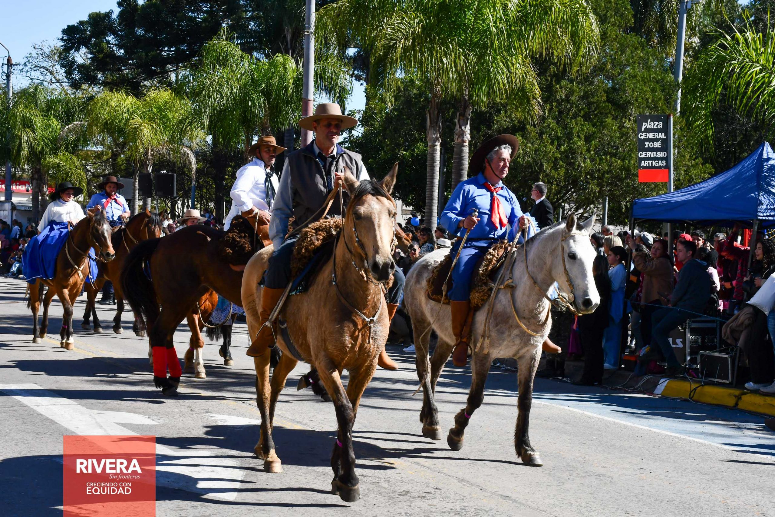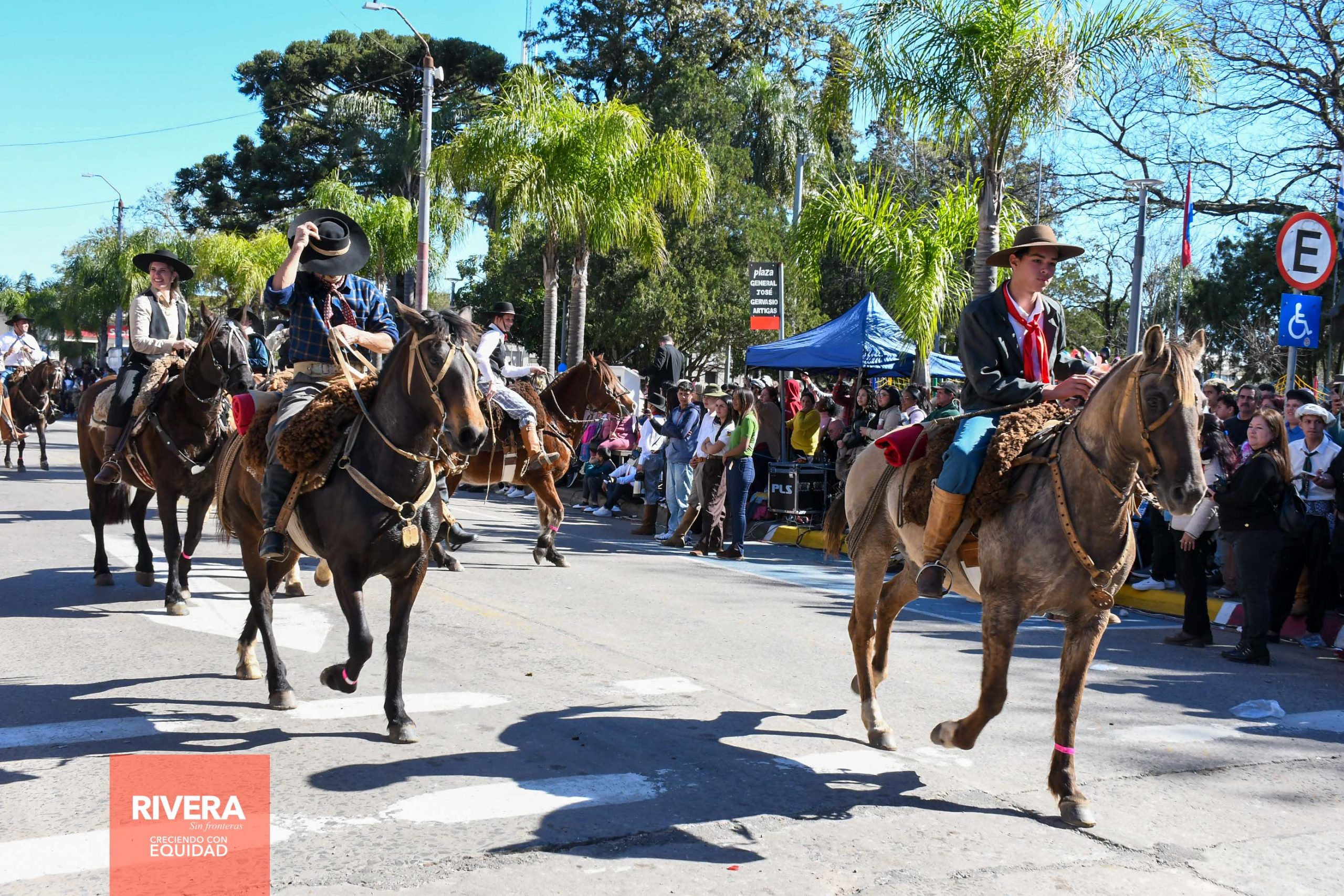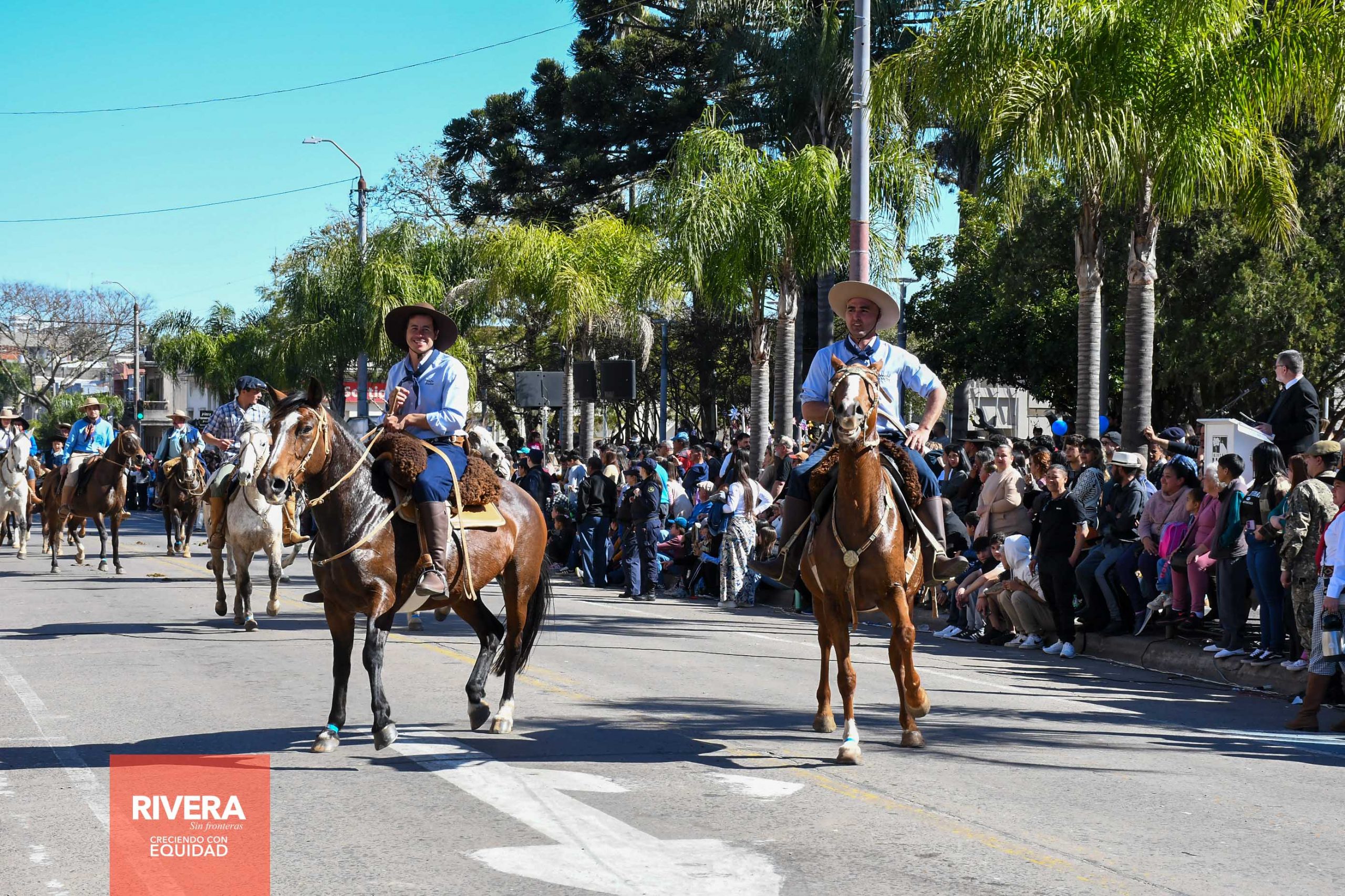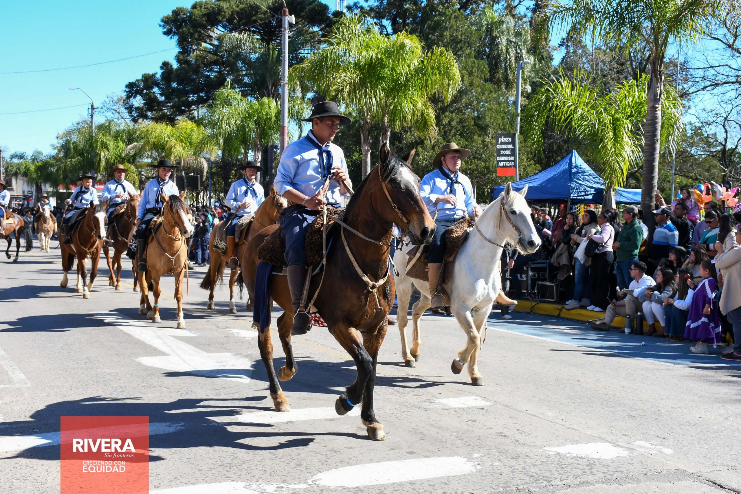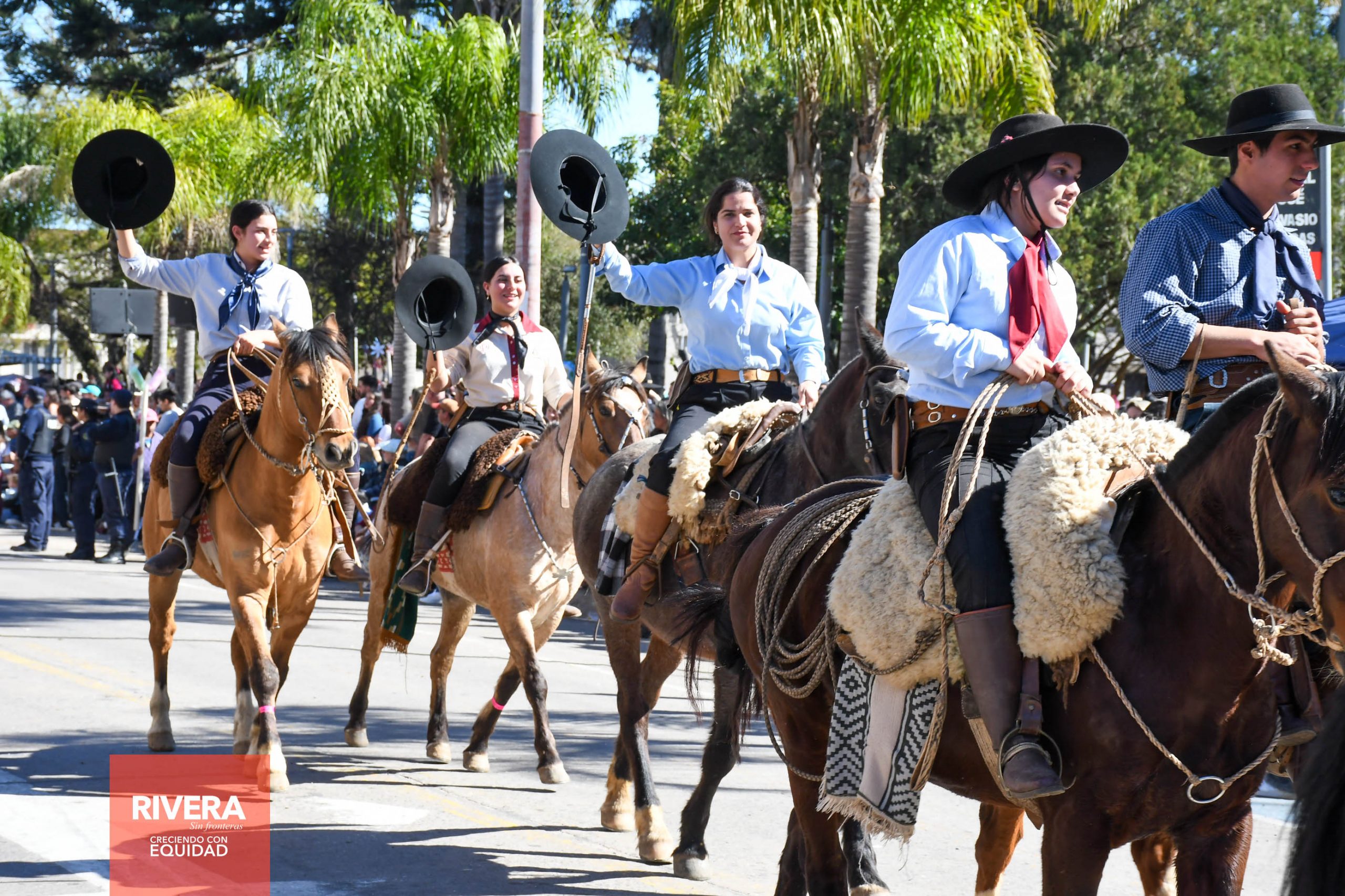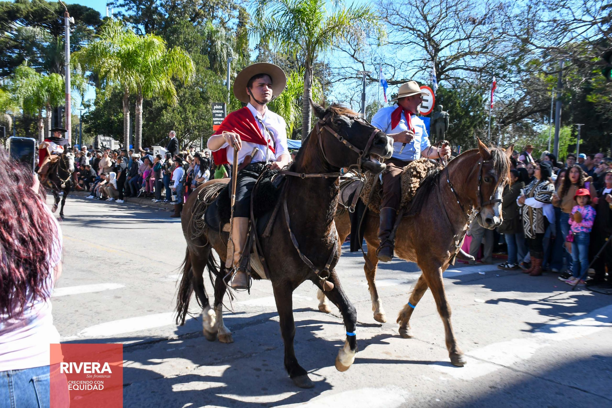 La Asociación Patriótica de Rivera organizó el mayor desfile cívico-militar y de caballería gaucha del país, que se extendió durante más de siete horas y reunió a miles de participantes y espectadores.