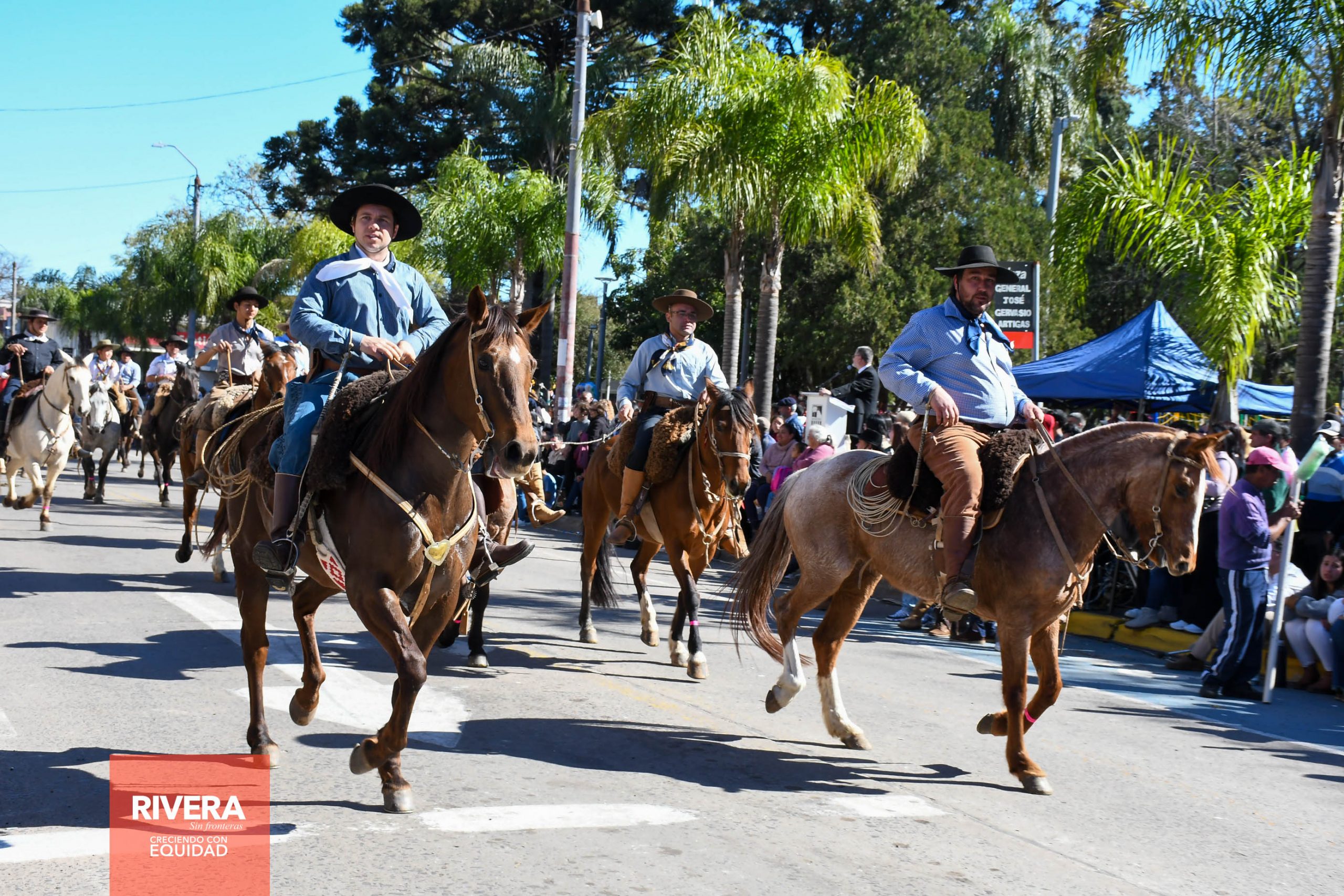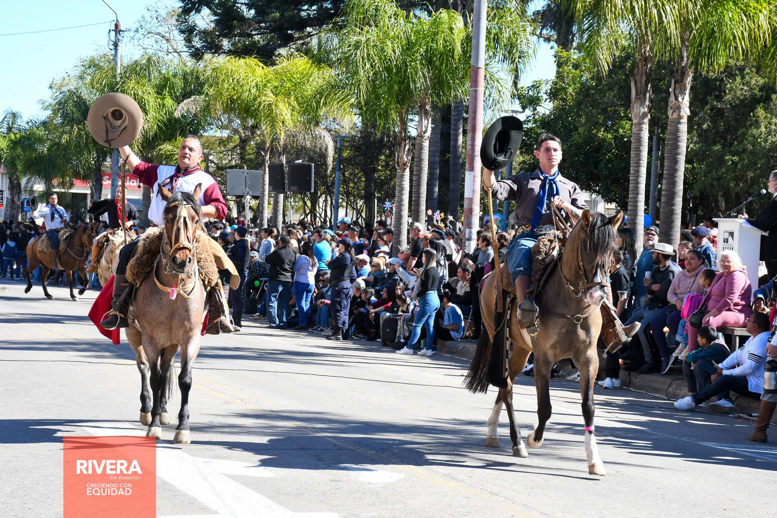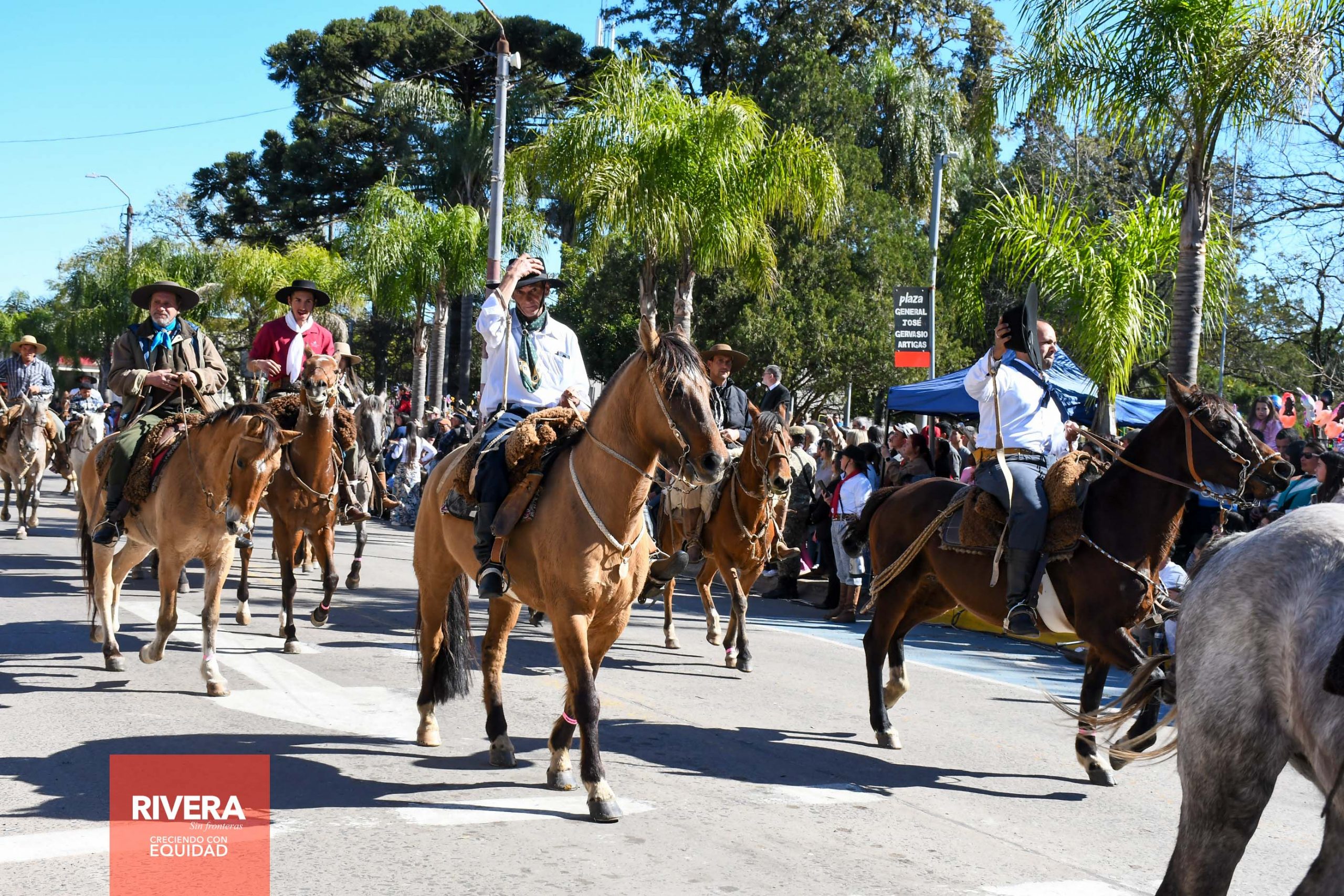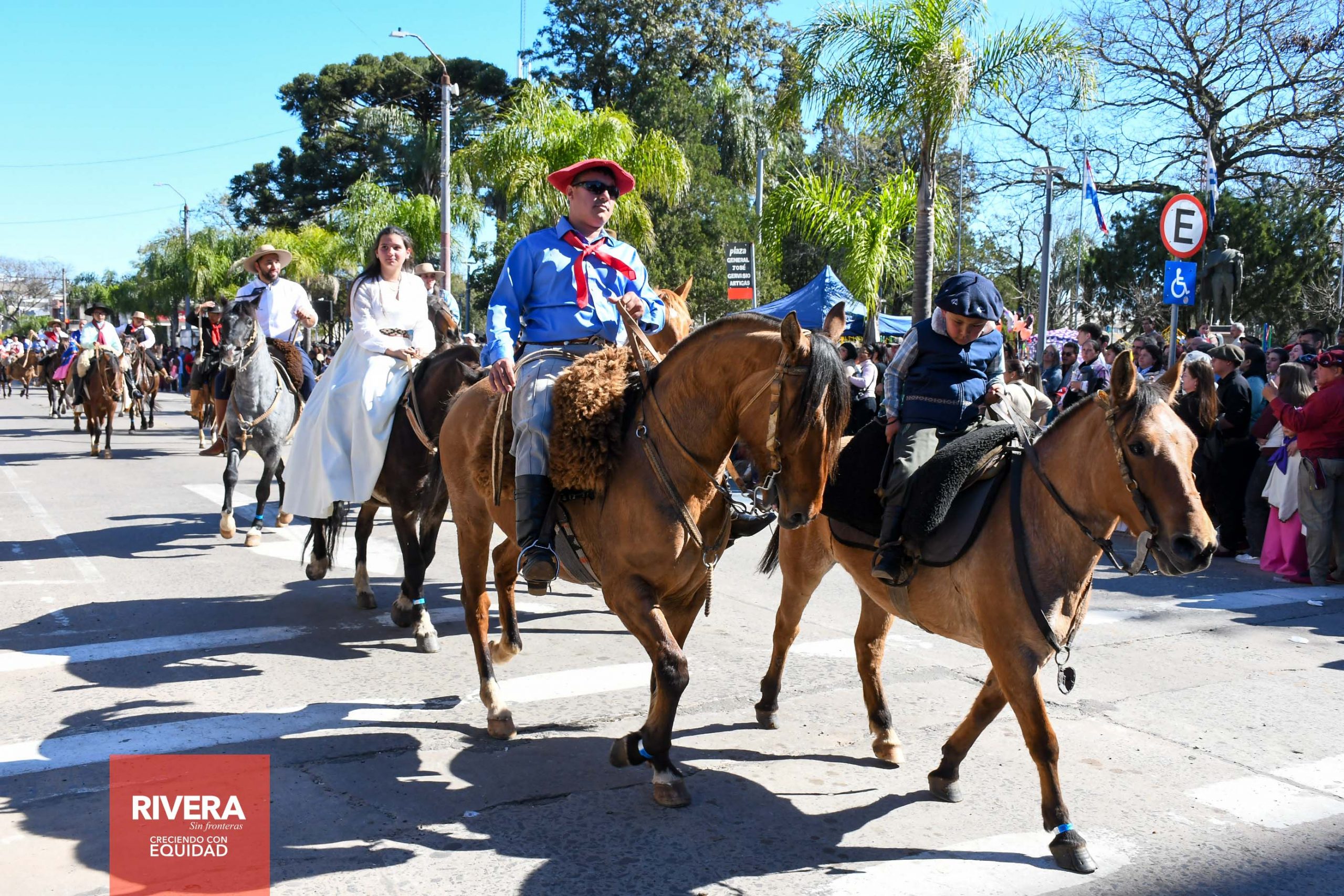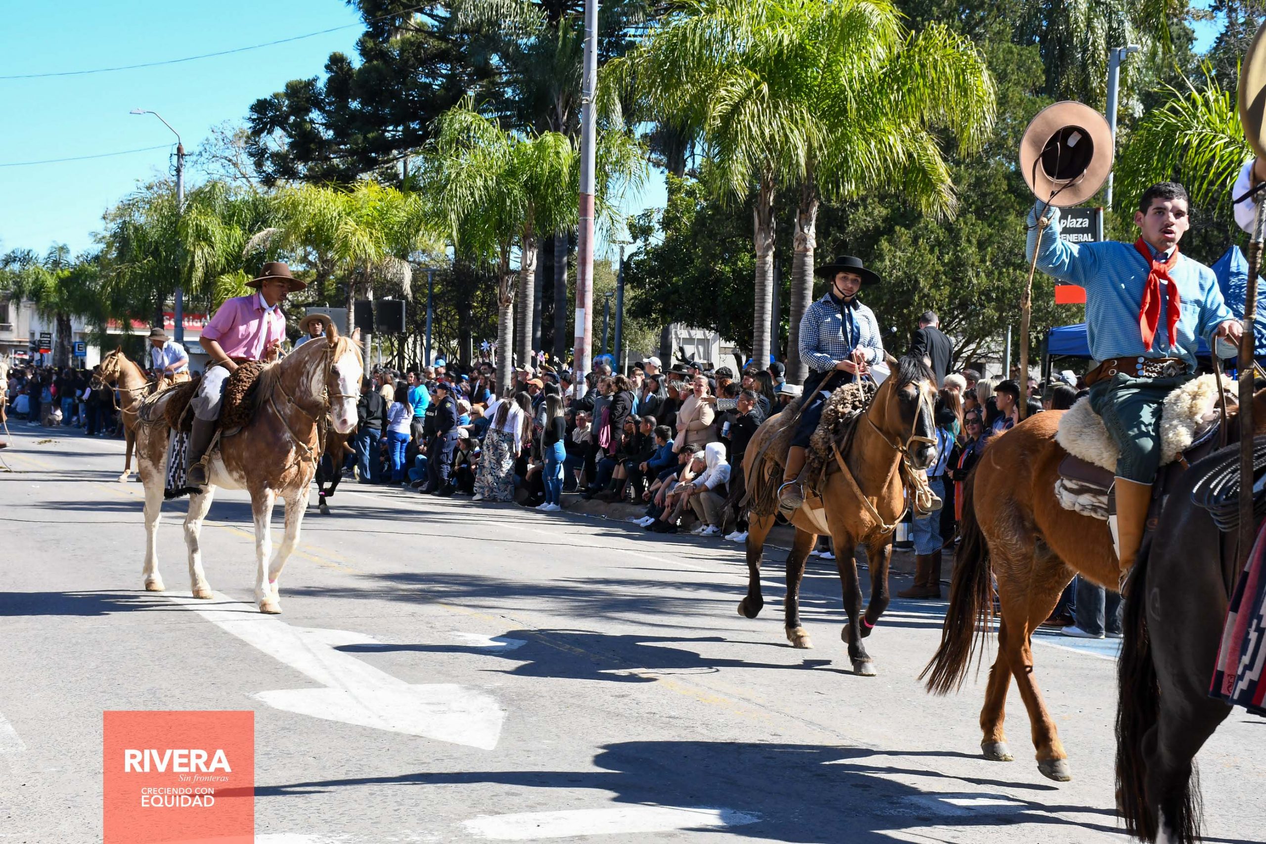La Asociación Patriótica de Rivera organizó el mayor desfile cívico-militar y de caballería gaucha del país, que se extendió durante más de siete horas y reunió a miles de participantes y espectadores.