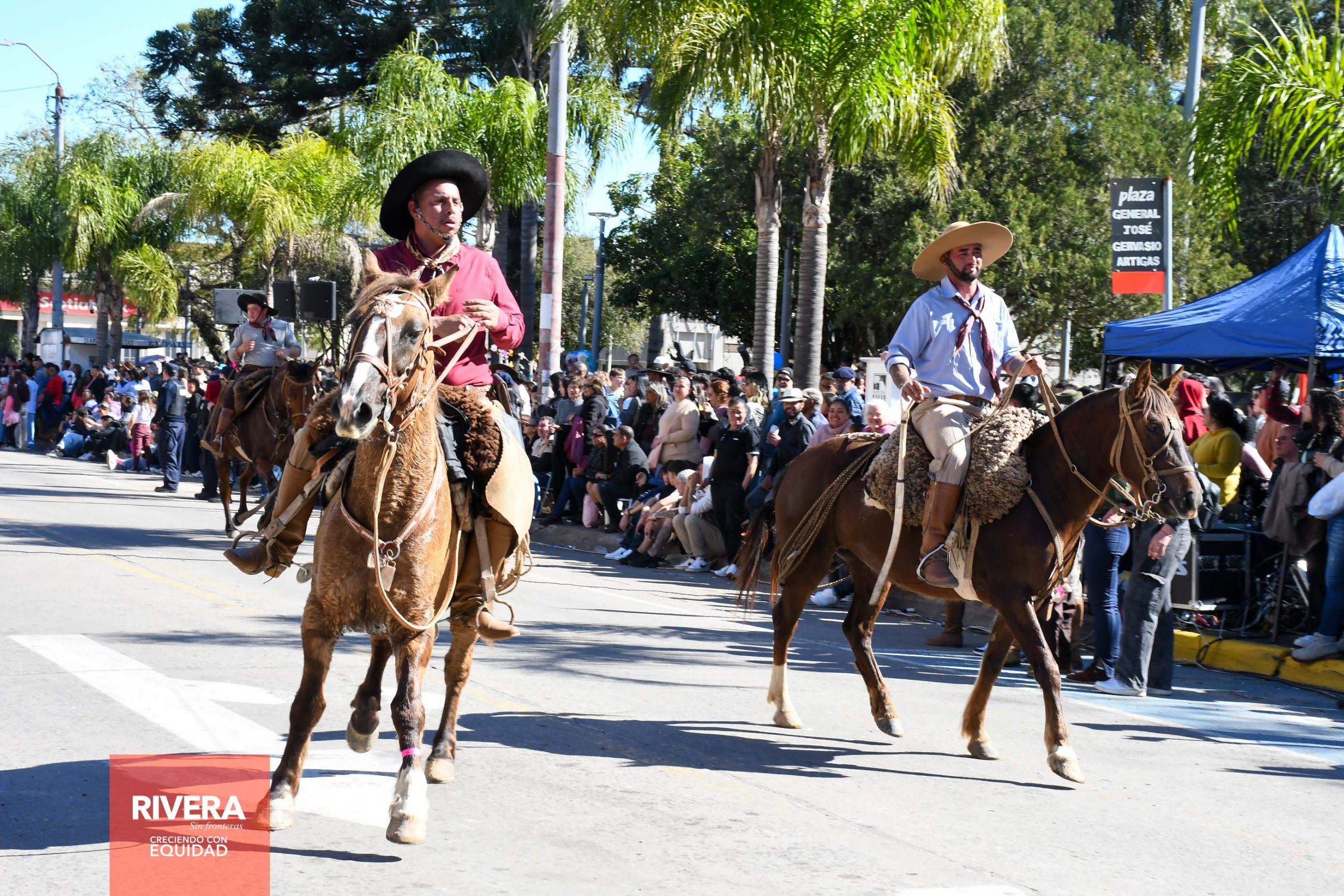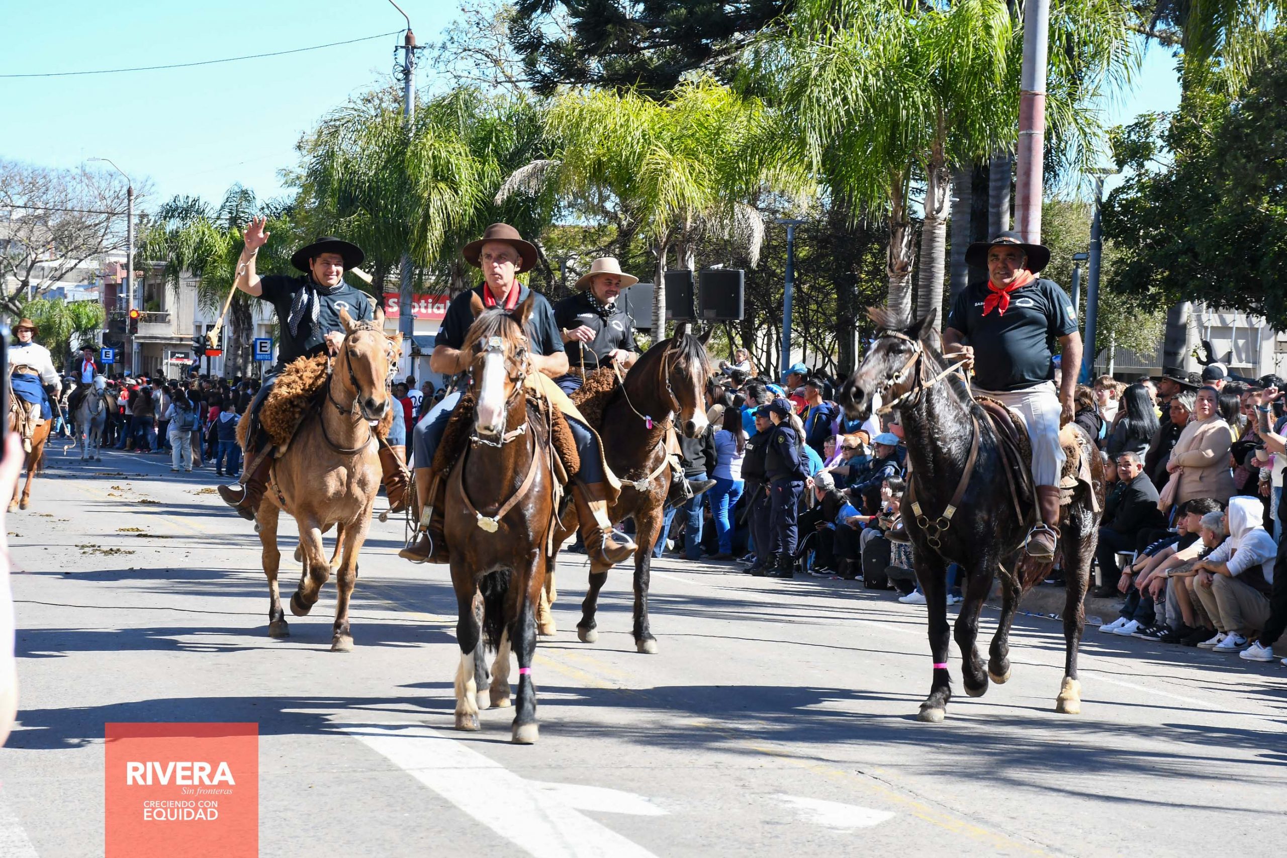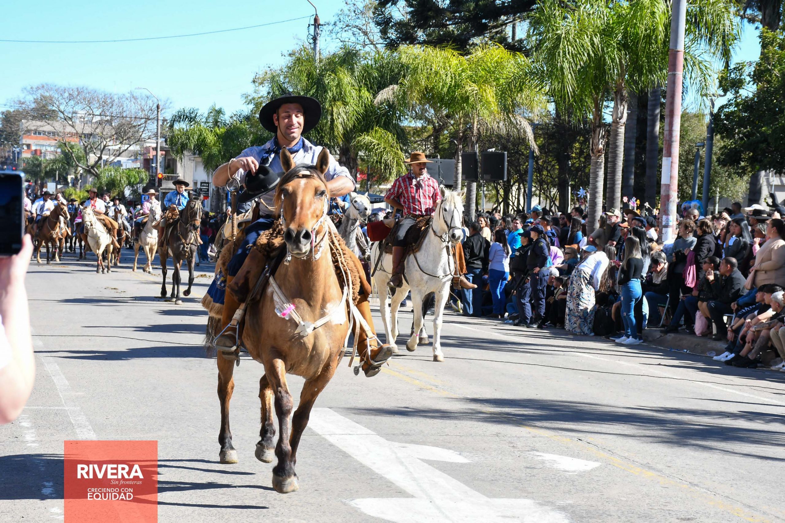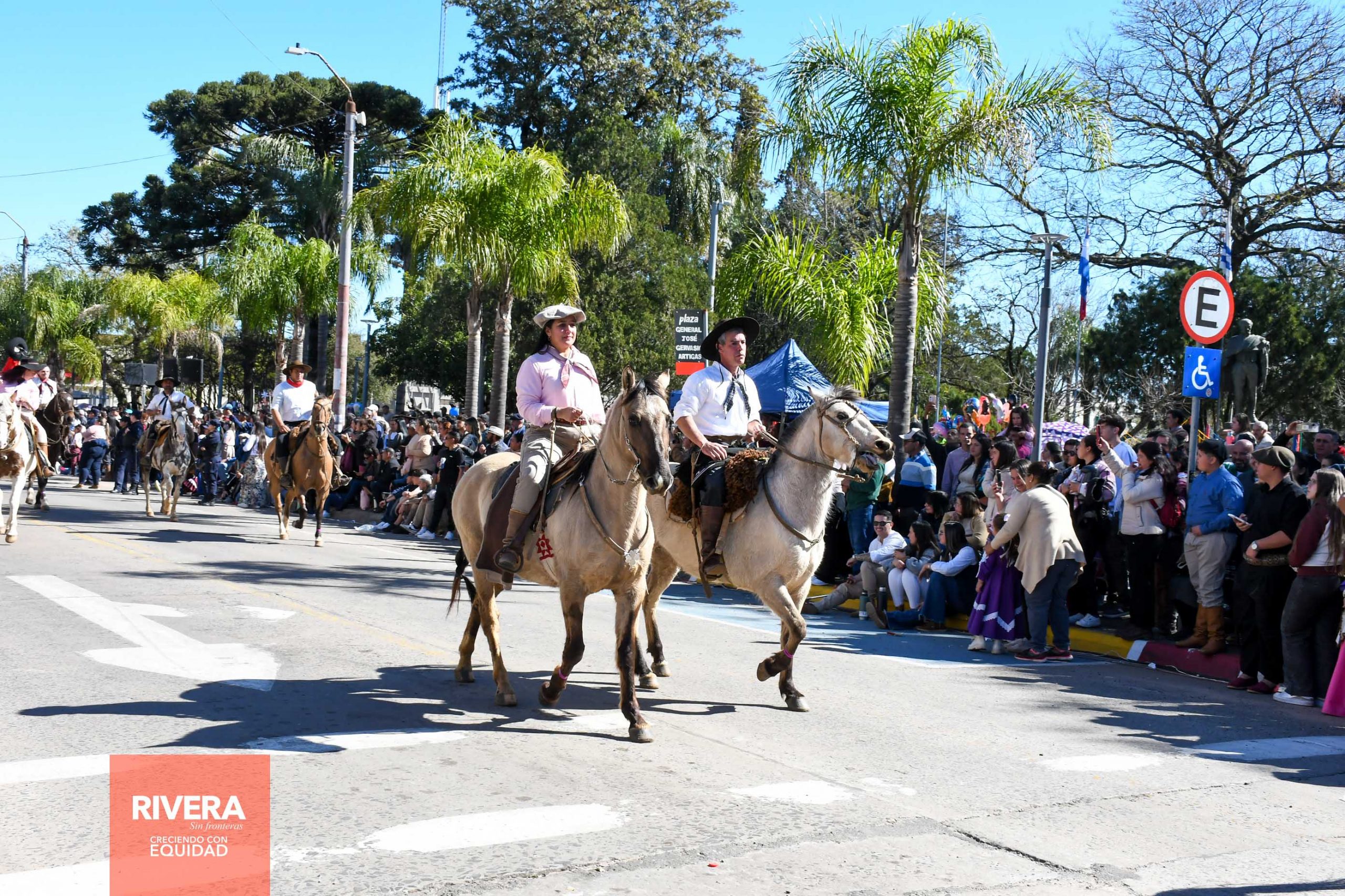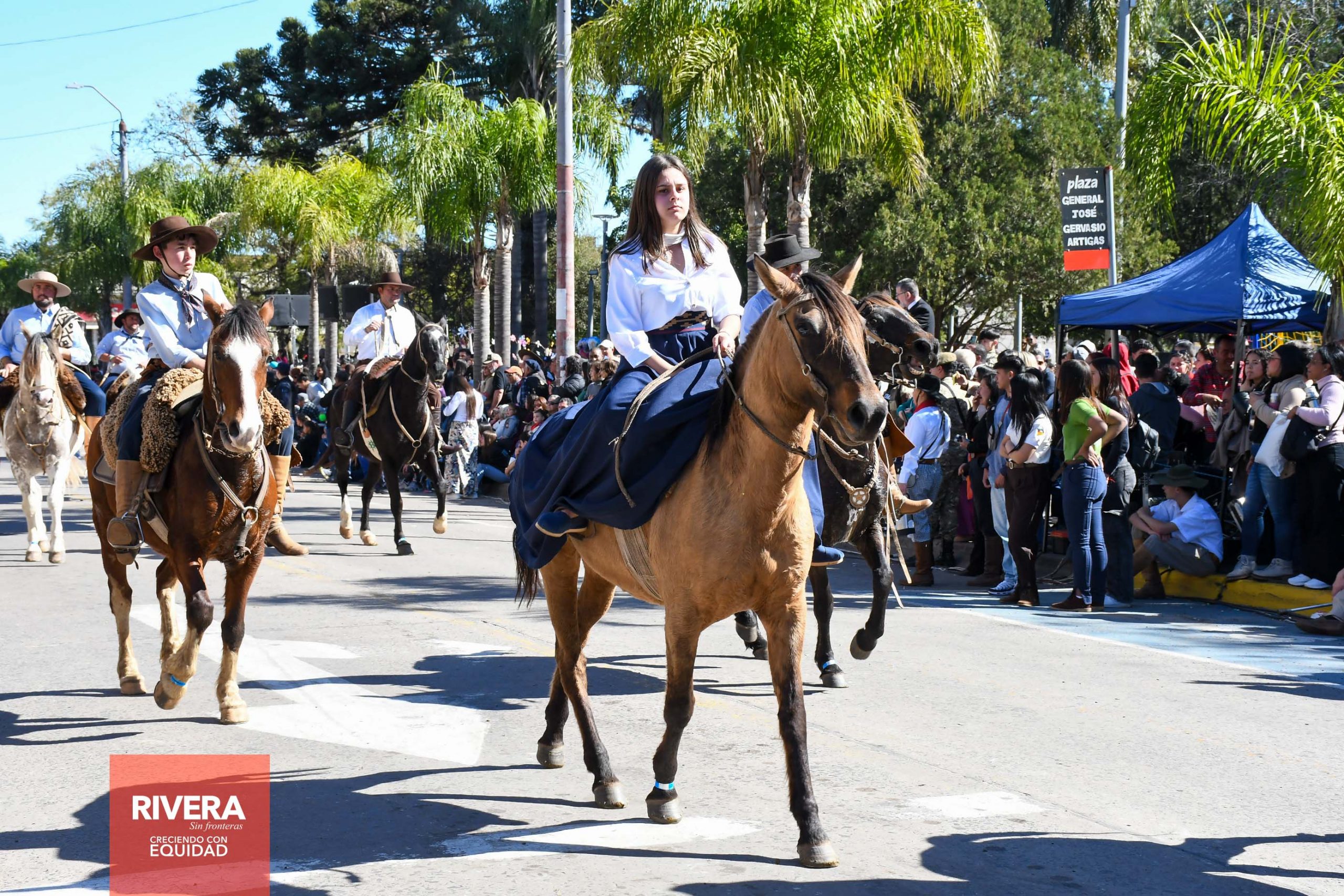 La Asociación Patriótica de Rivera organizó el mayor desfile cívico-militar y de caballería gaucha del país, que se extendió durante más de siete horas y reunió a miles de participantes y espectadores.
