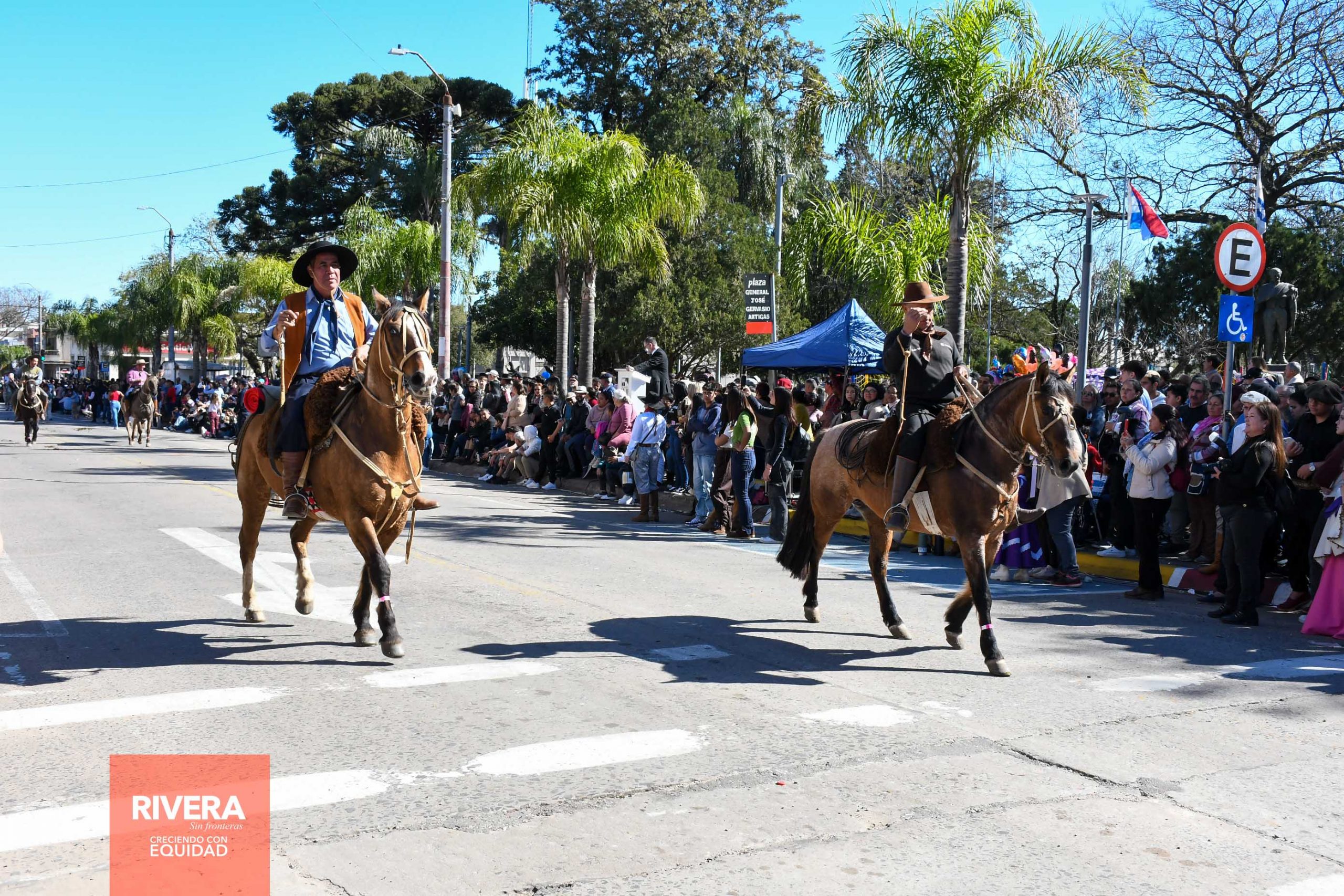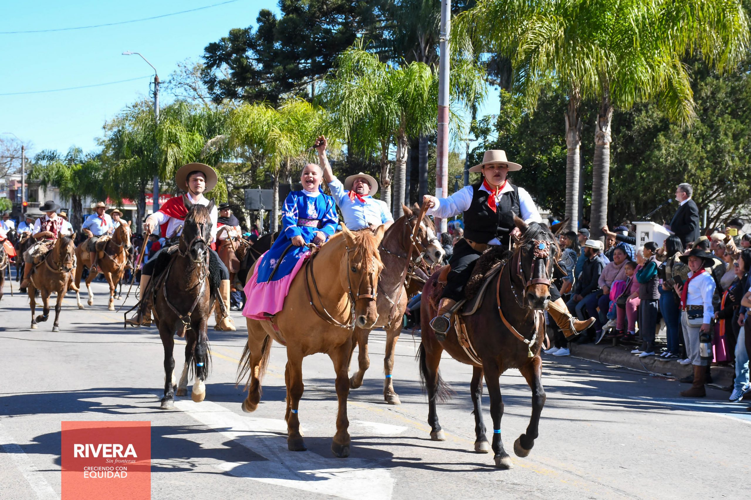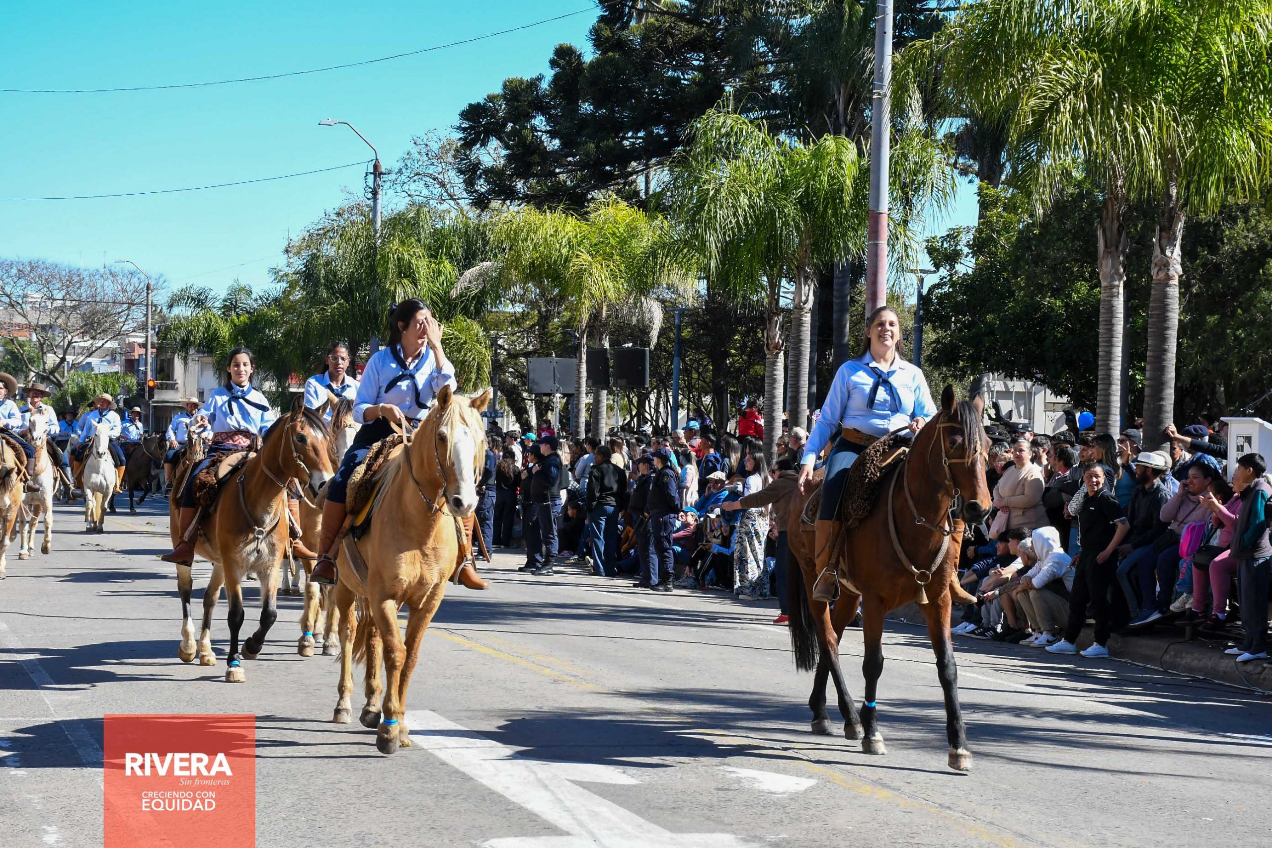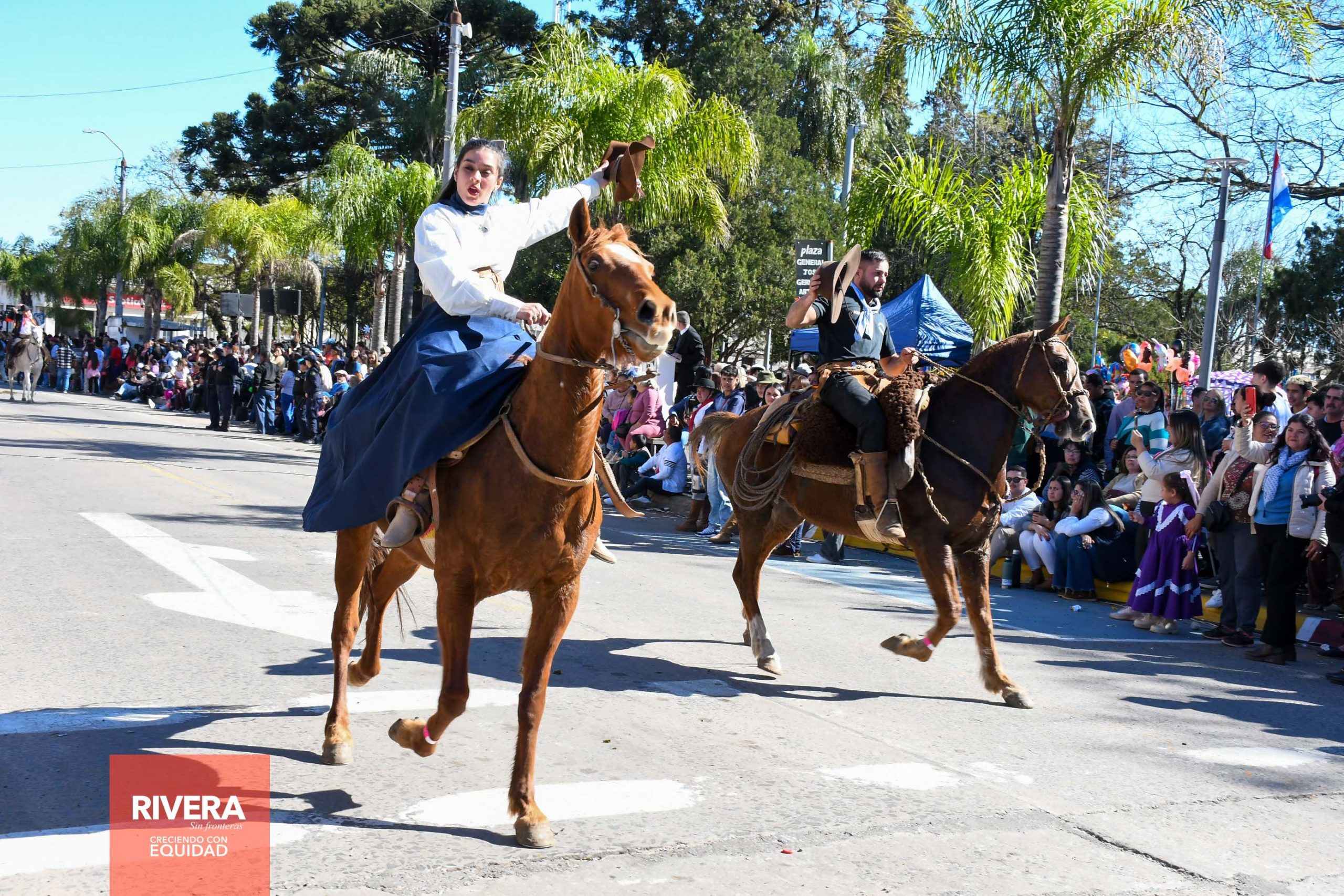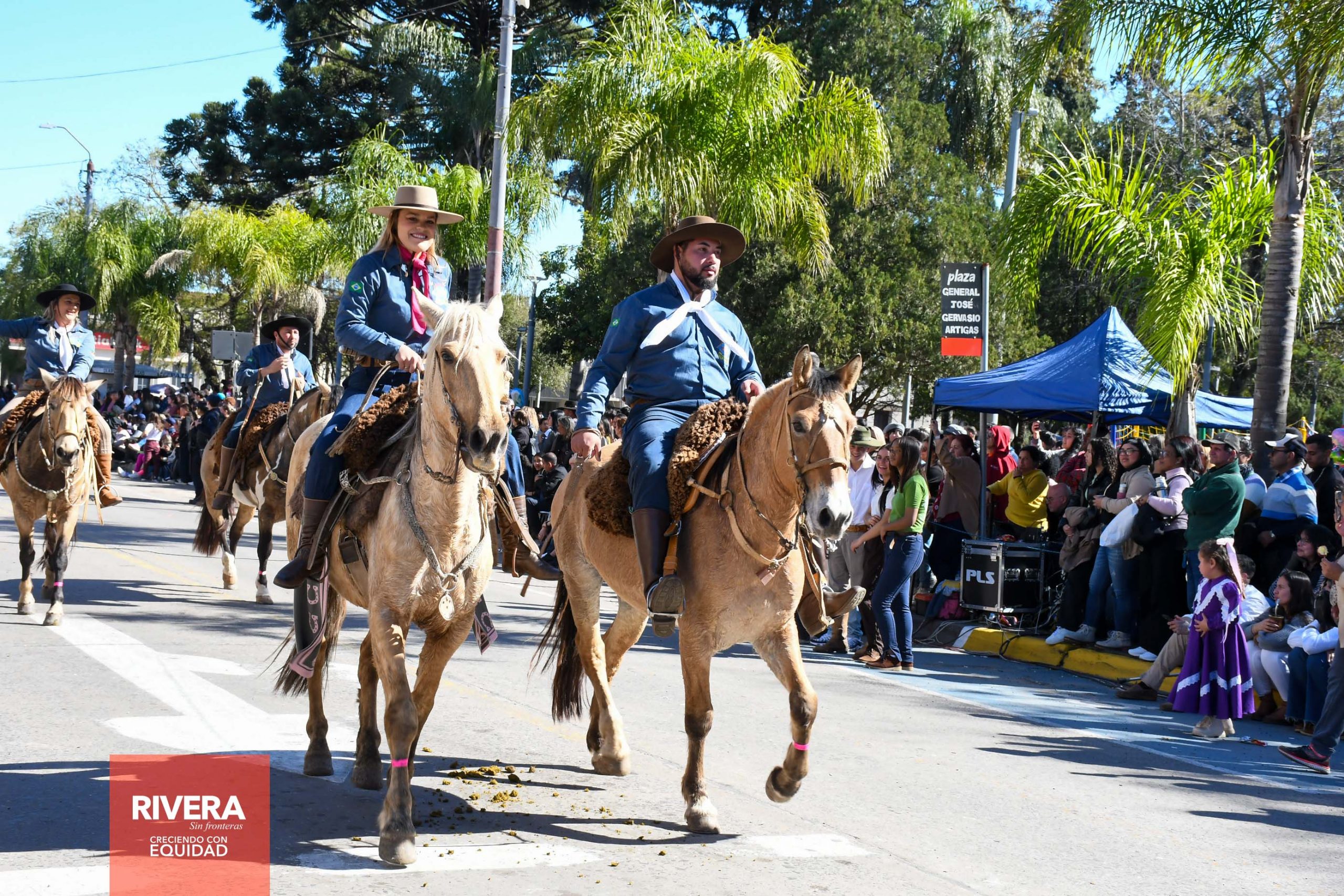 La Asociación Patriótica de Rivera organizó el mayor desfile cívico-militar y de caballería gaucha del país, que se extendió durante más de siete horas y reunió a miles de participantes y espectadores.