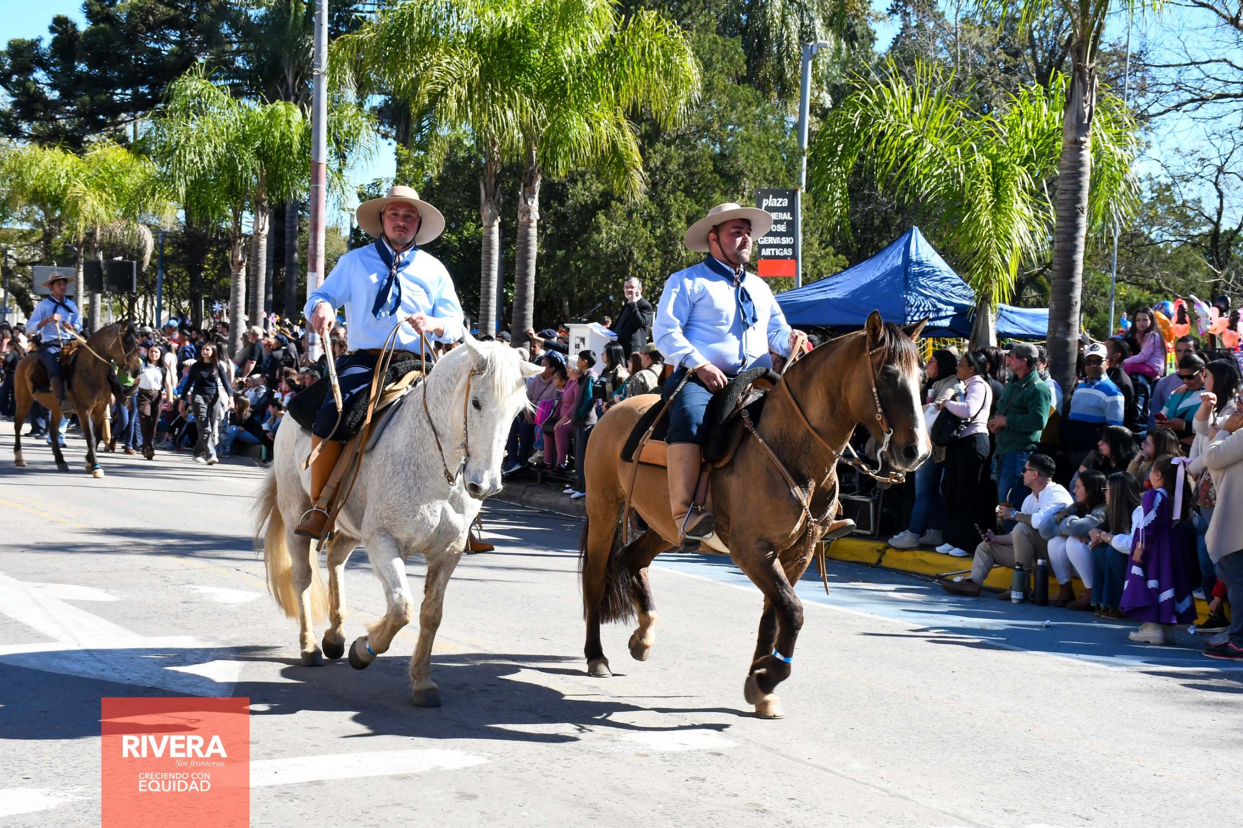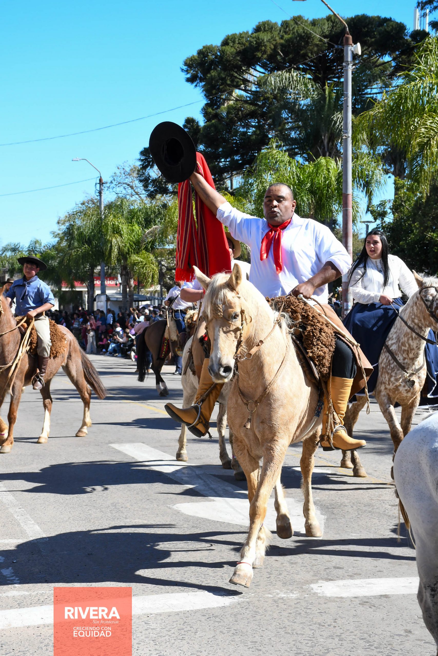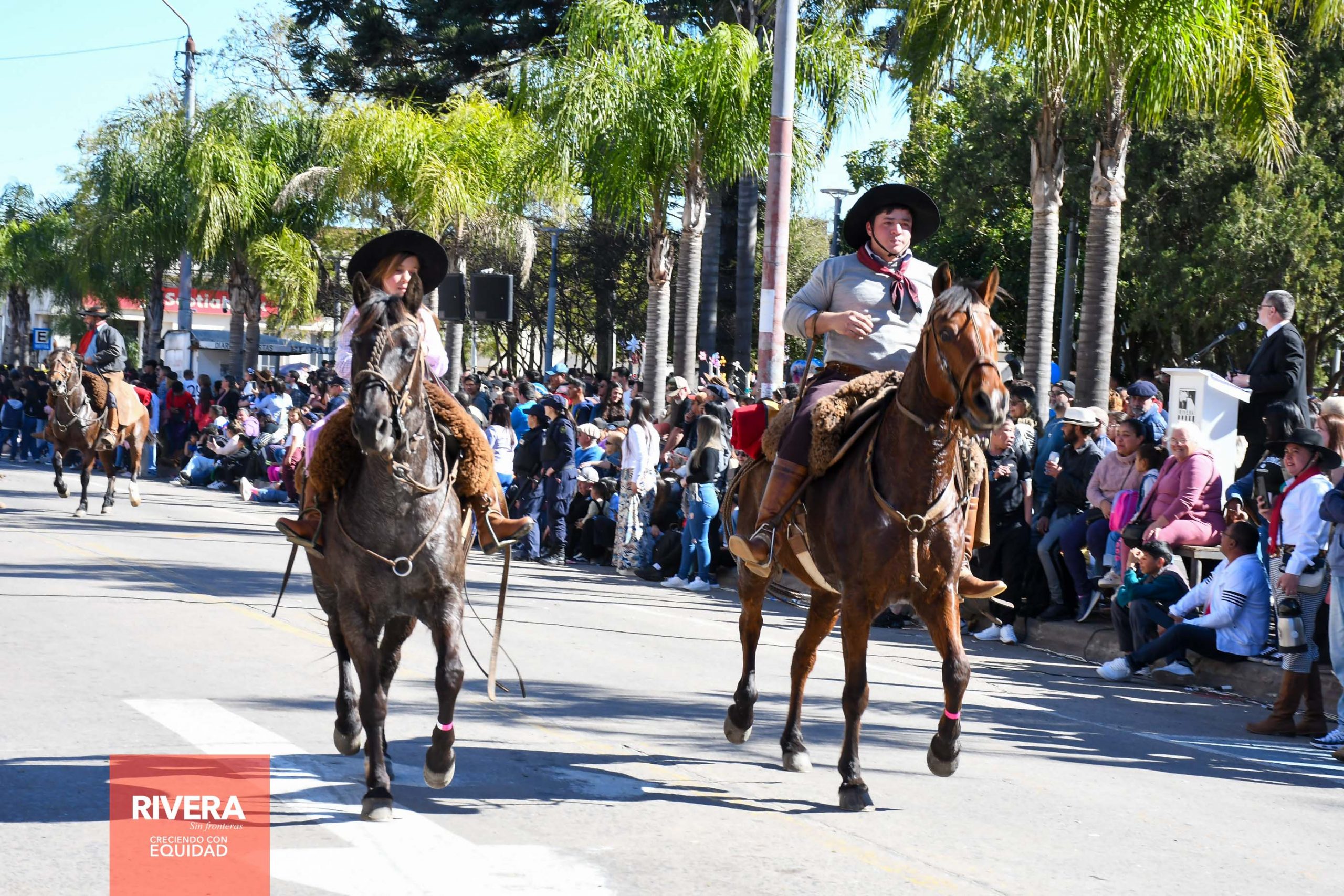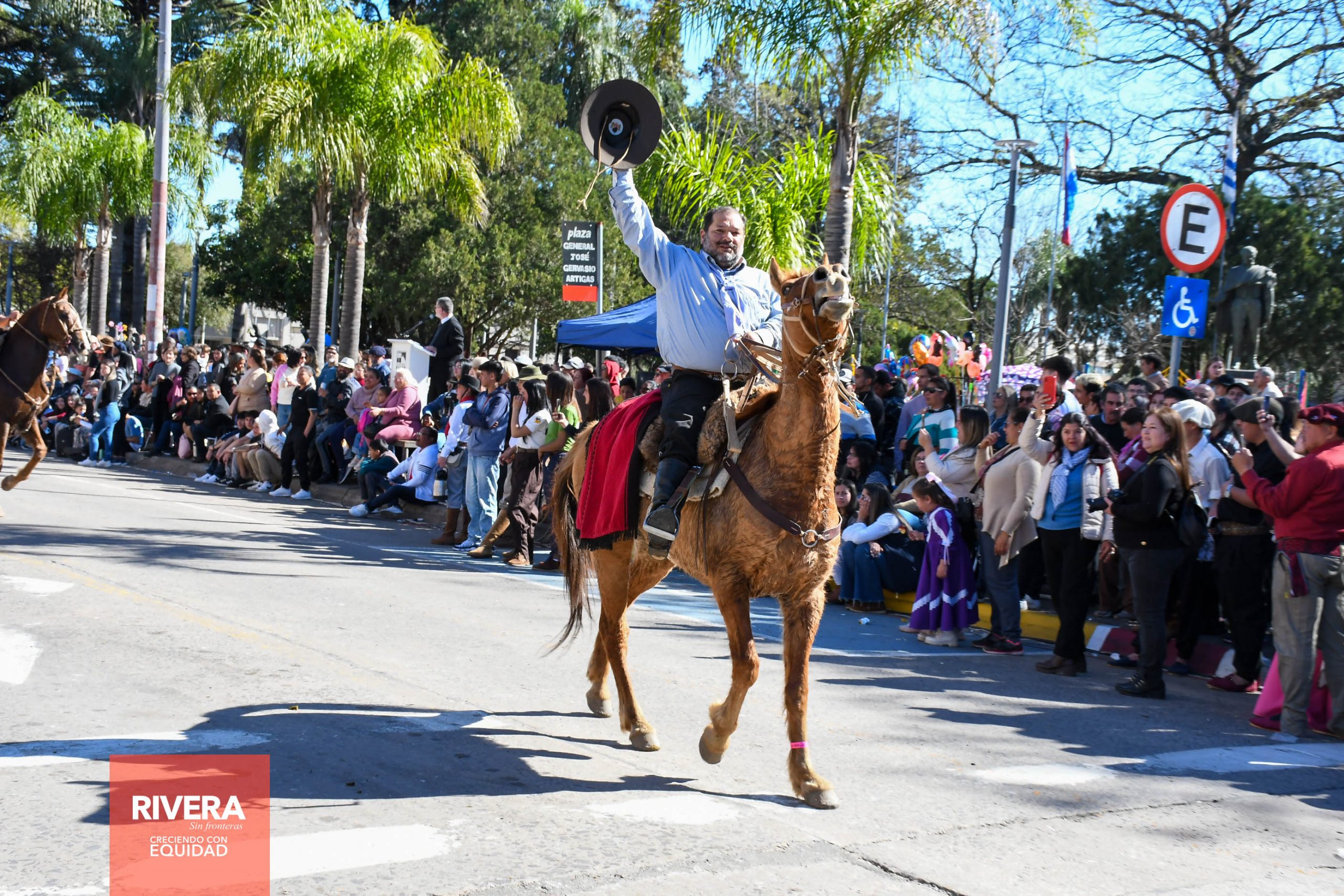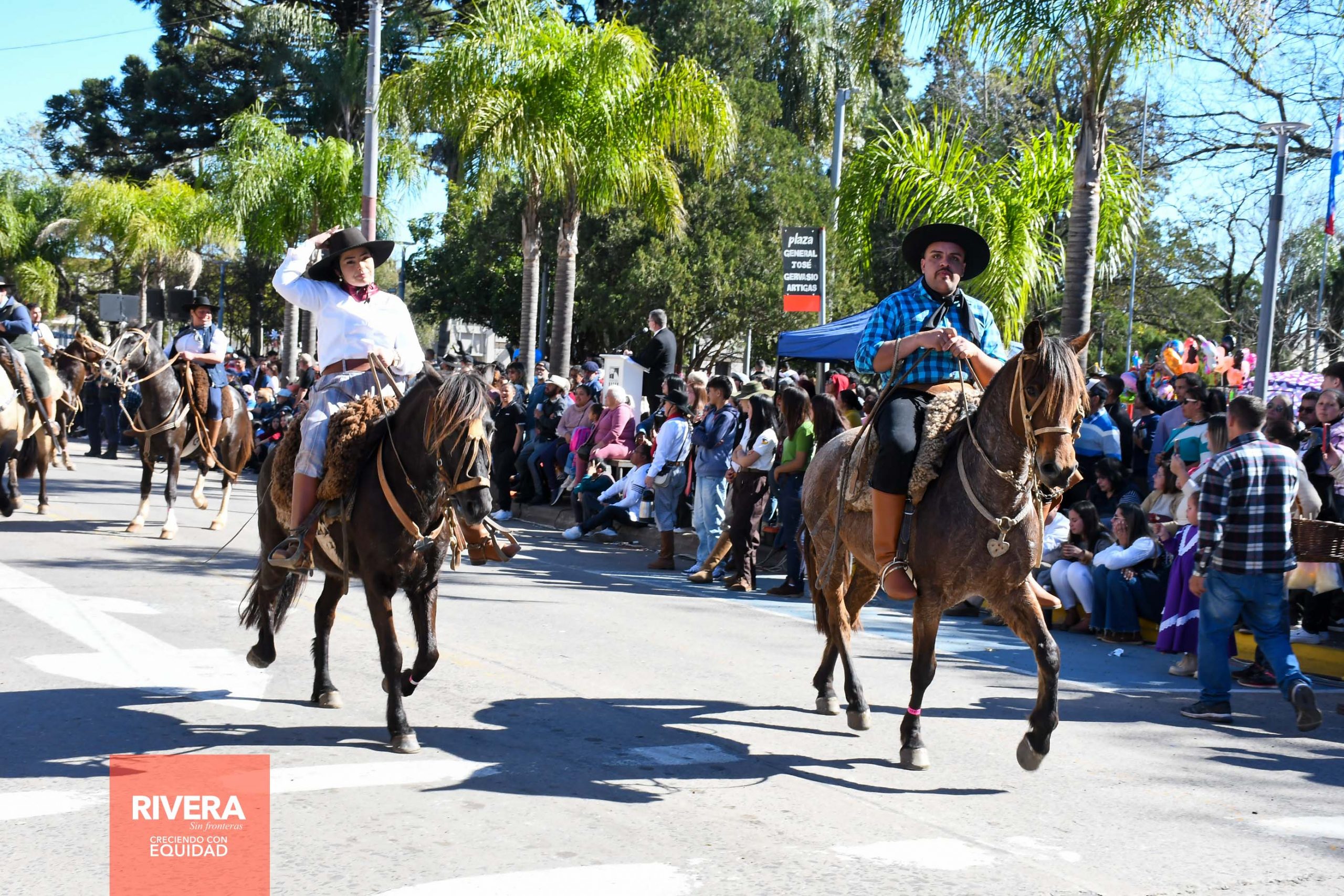 La Asociación Patriótica de Rivera organizó el mayor desfile cívico-militar y de caballería gaucha del país, que se extendió durante más de siete horas y reunió a miles de participantes y espectadores.