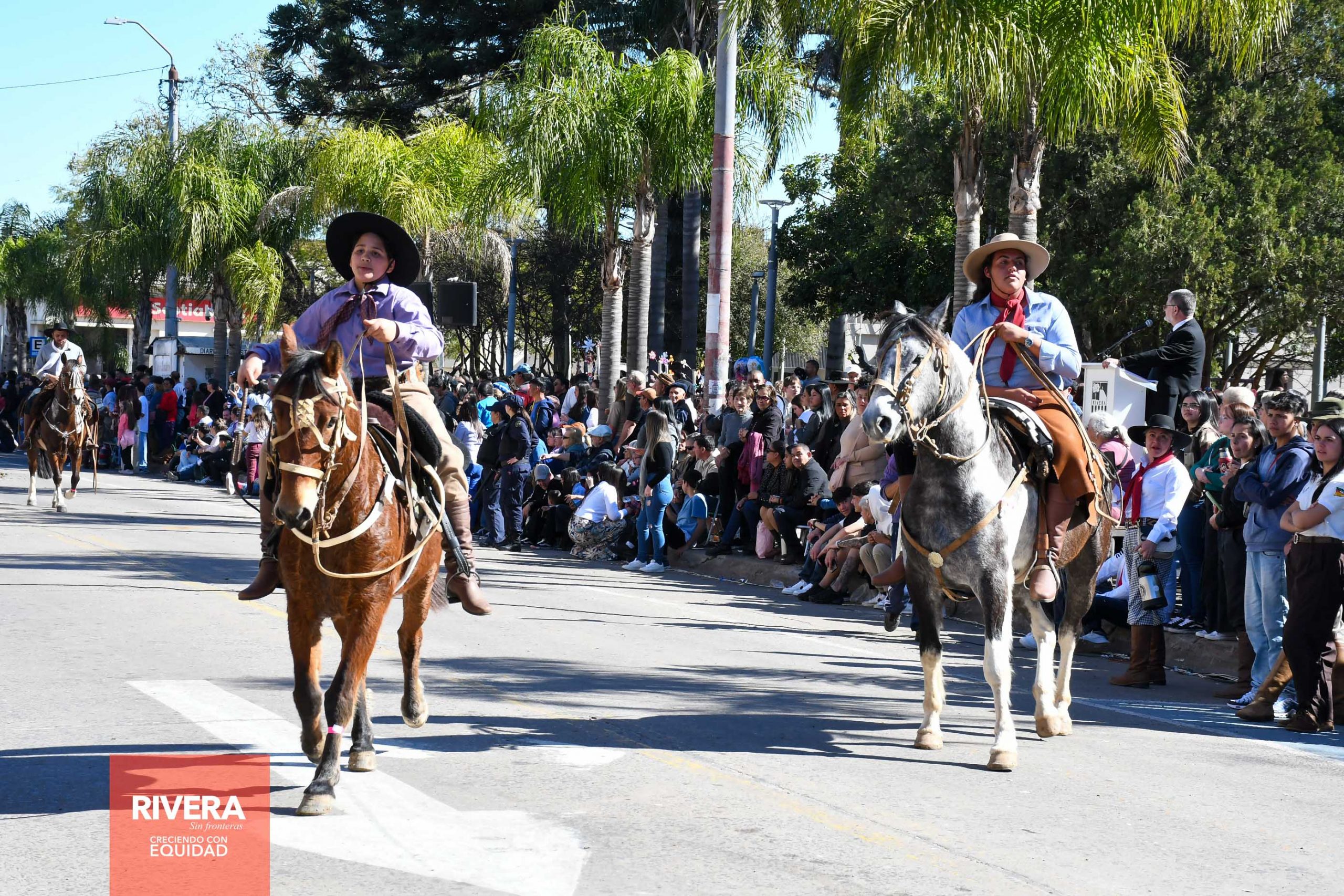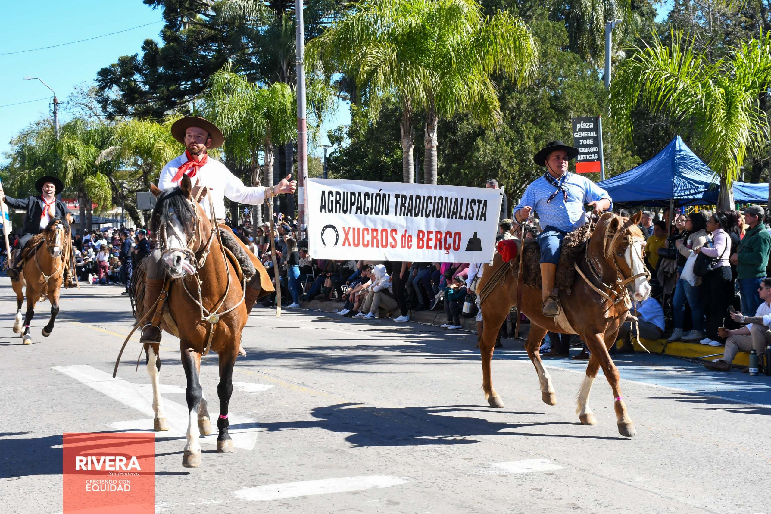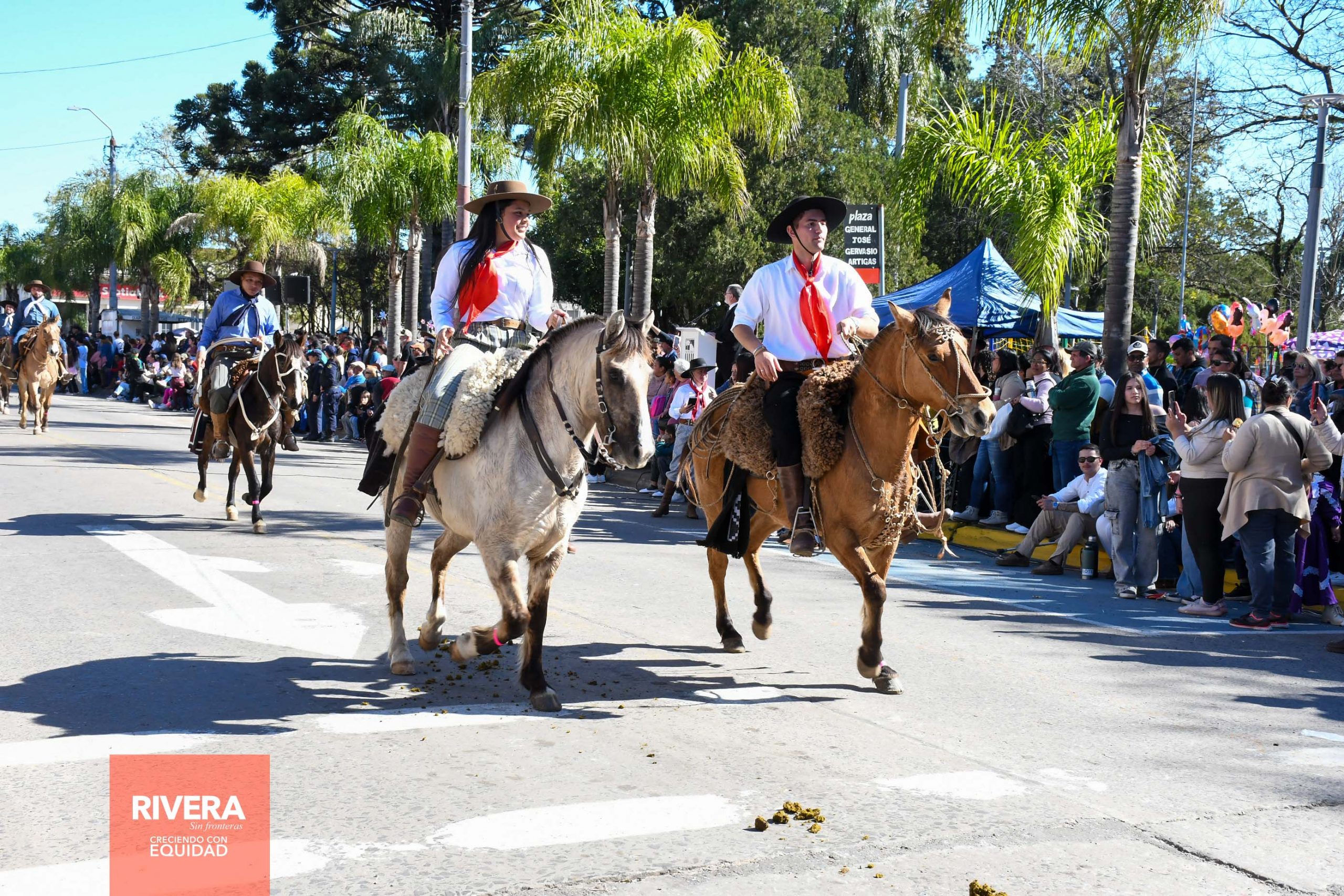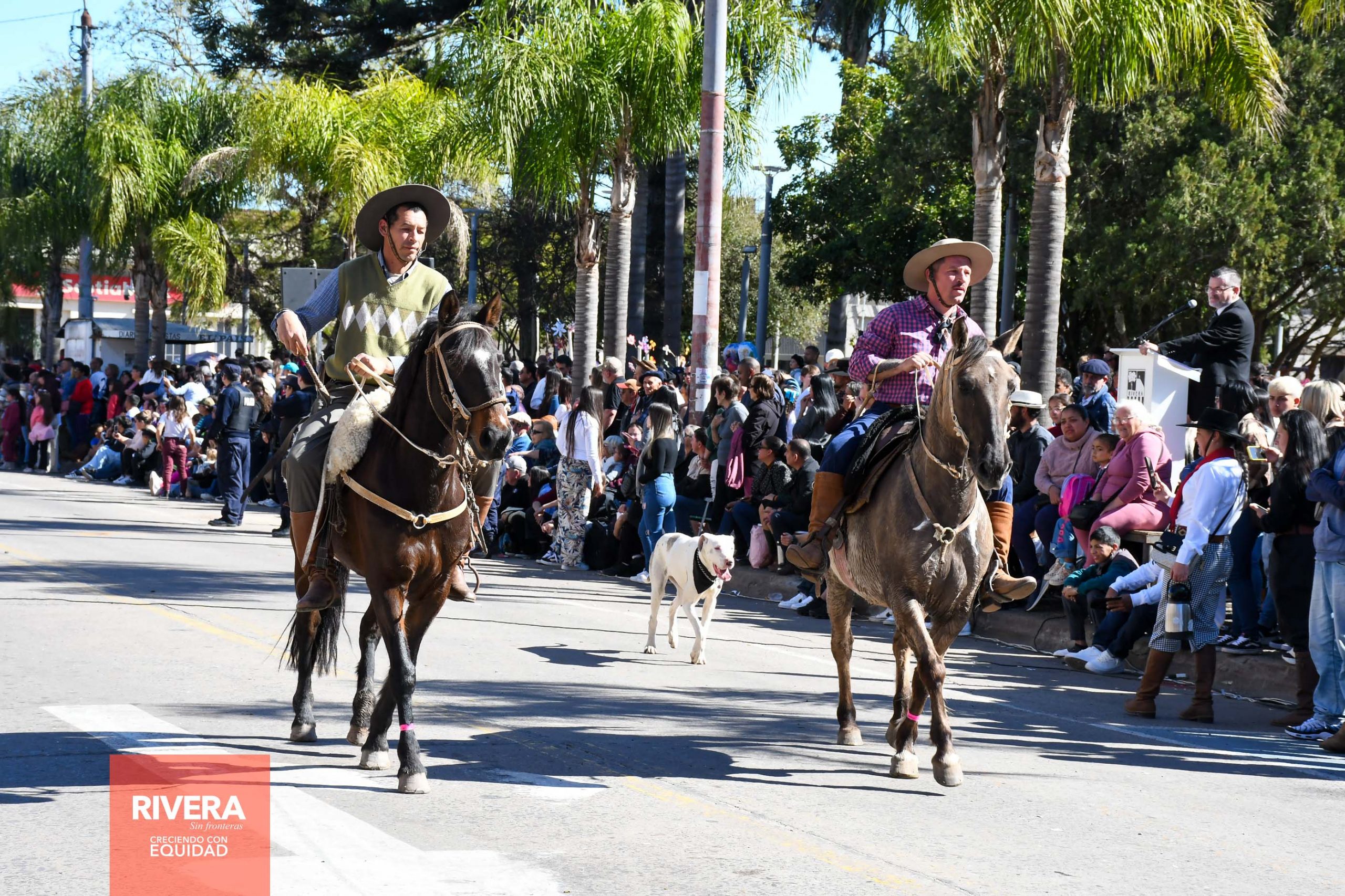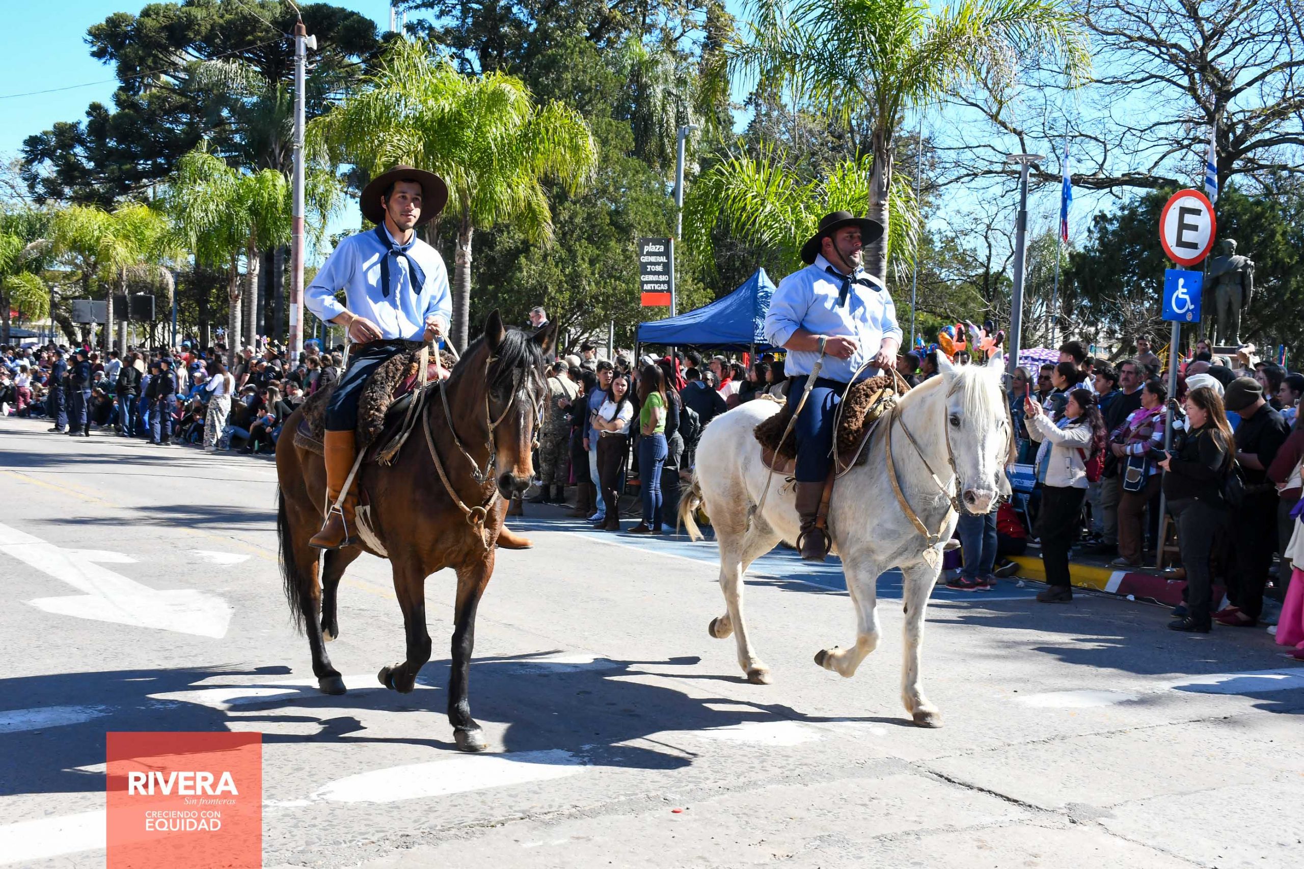 La Asociación Patriótica de Rivera organizó el mayor desfile cívico-militar y de caballería gaucha del país, que se extendió durante más de siete horas y reunió a miles de participantes y espectadores.