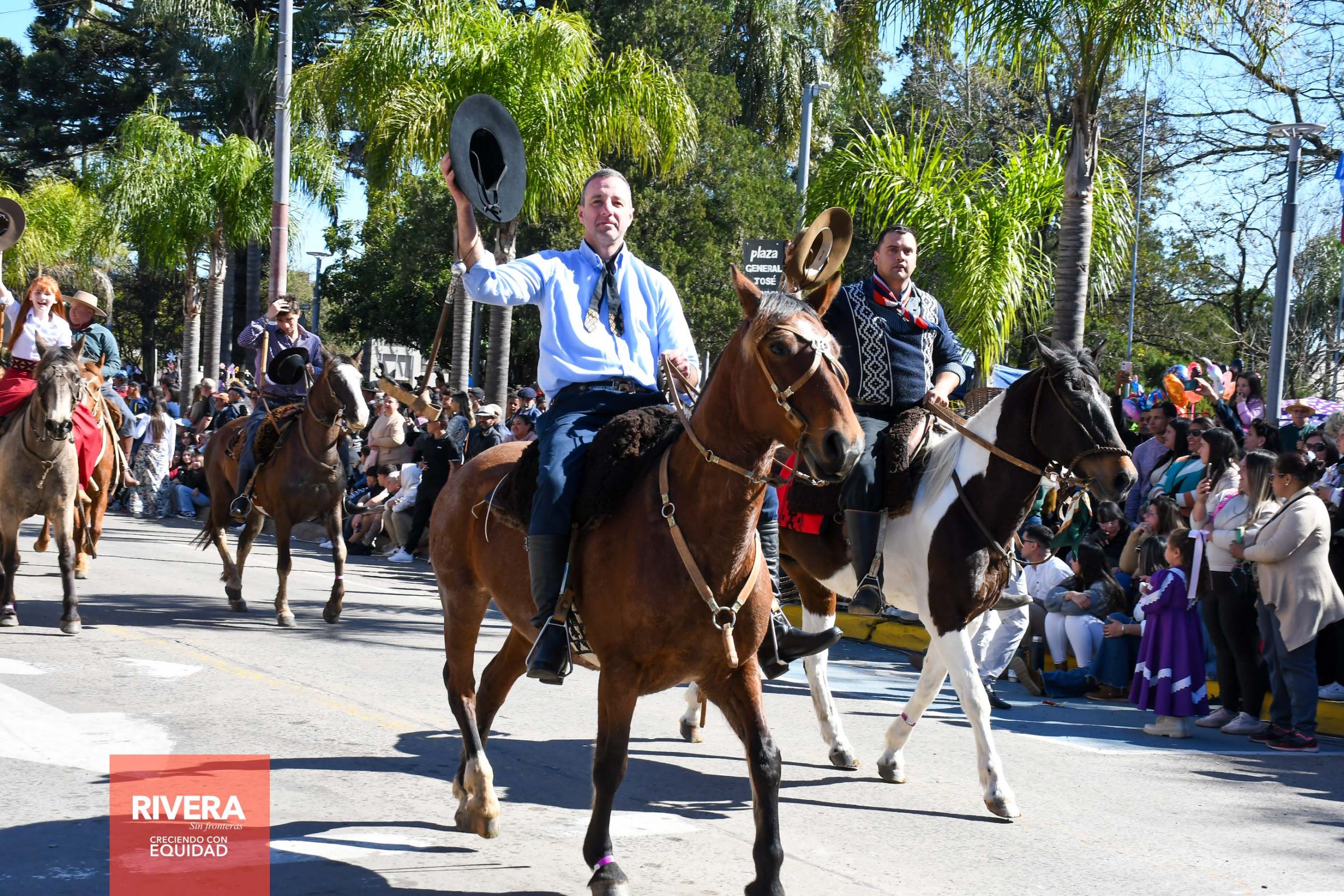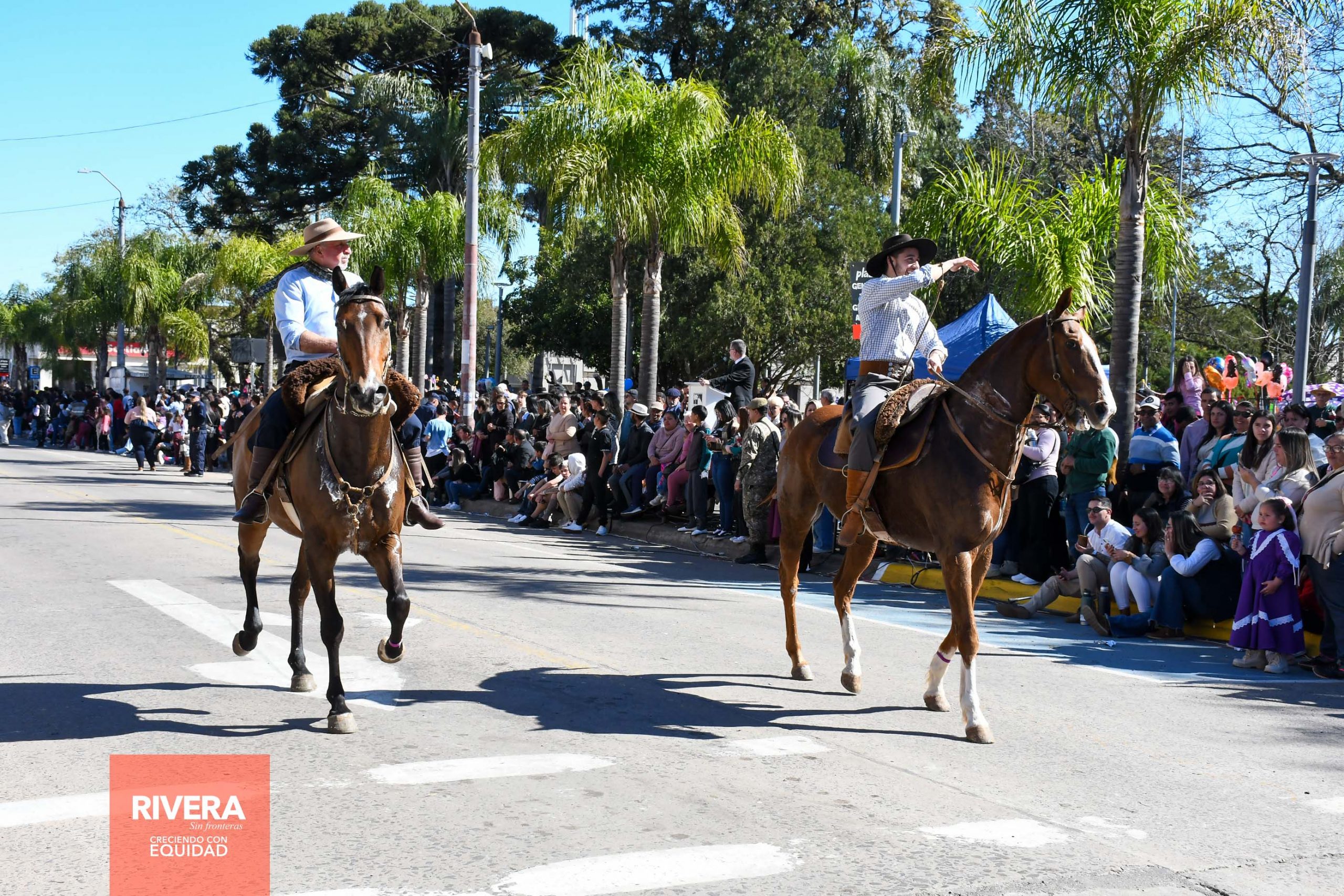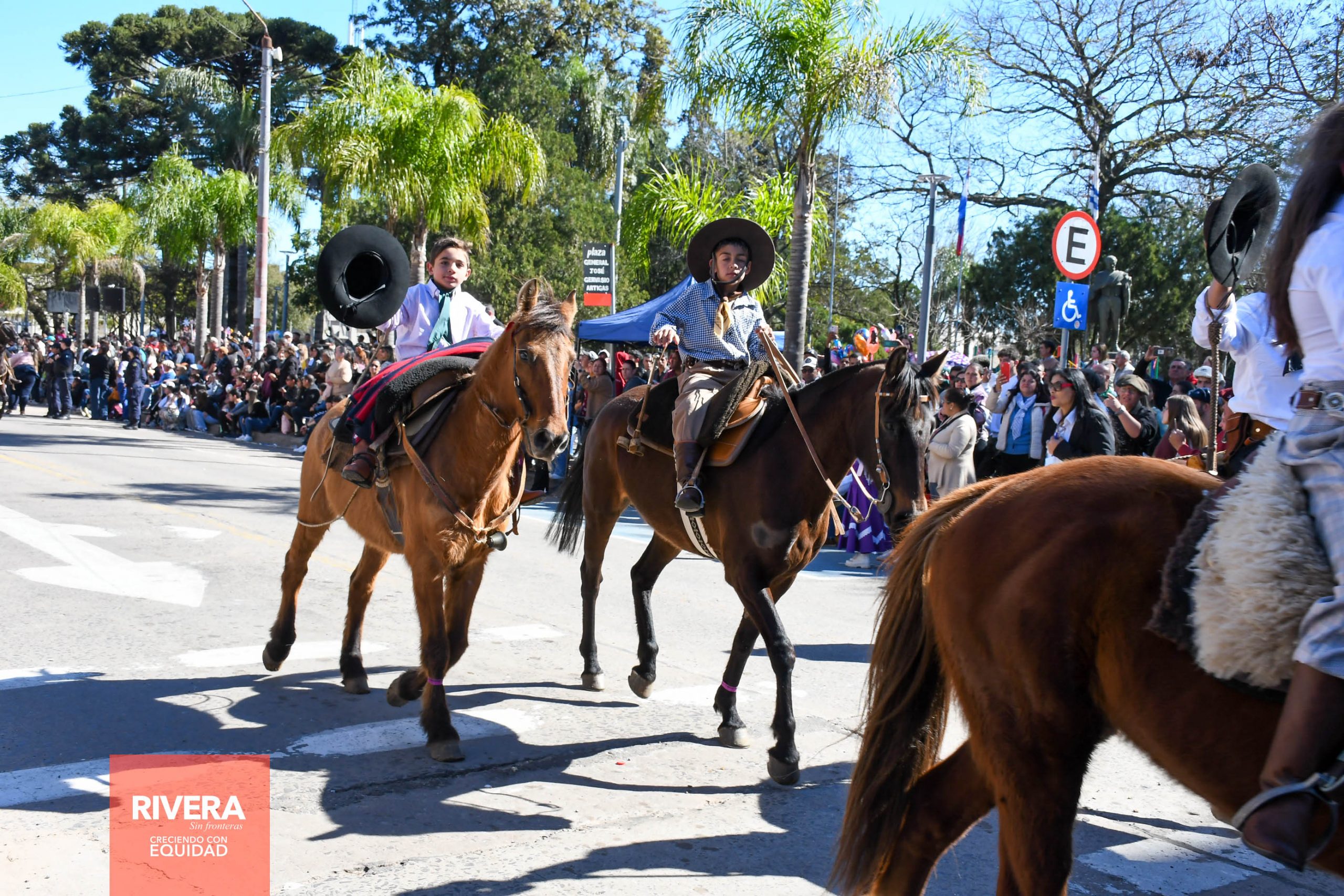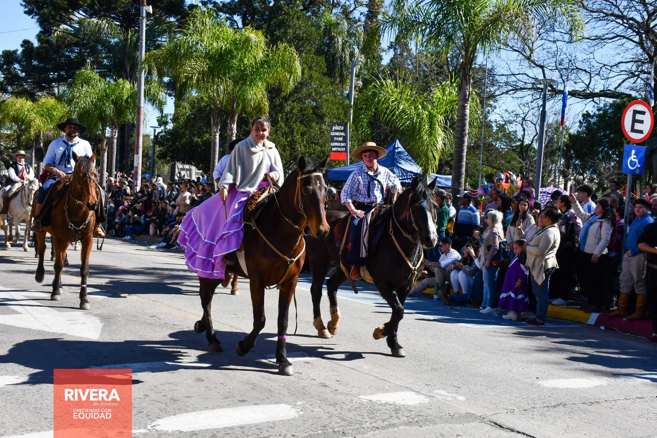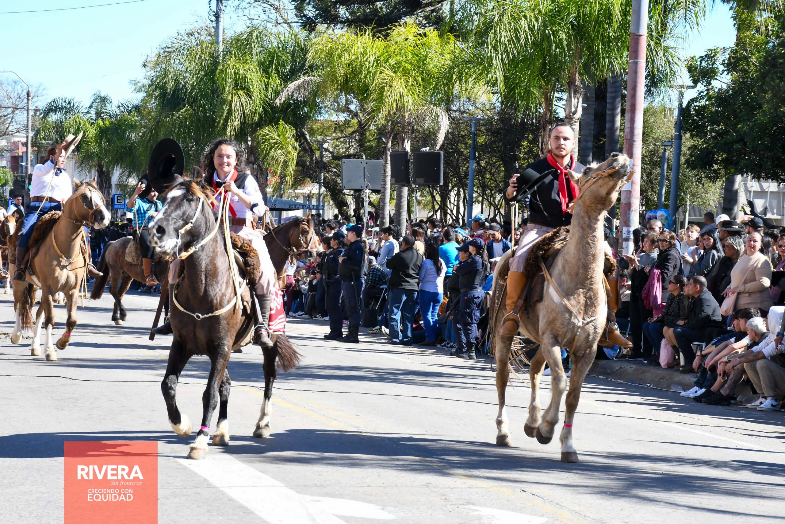 La Asociación Patriótica de Rivera organizó el mayor desfile cívico-militar y de caballería gaucha del país, que se extendió durante más de siete horas y reunió a miles de participantes y espectadores.