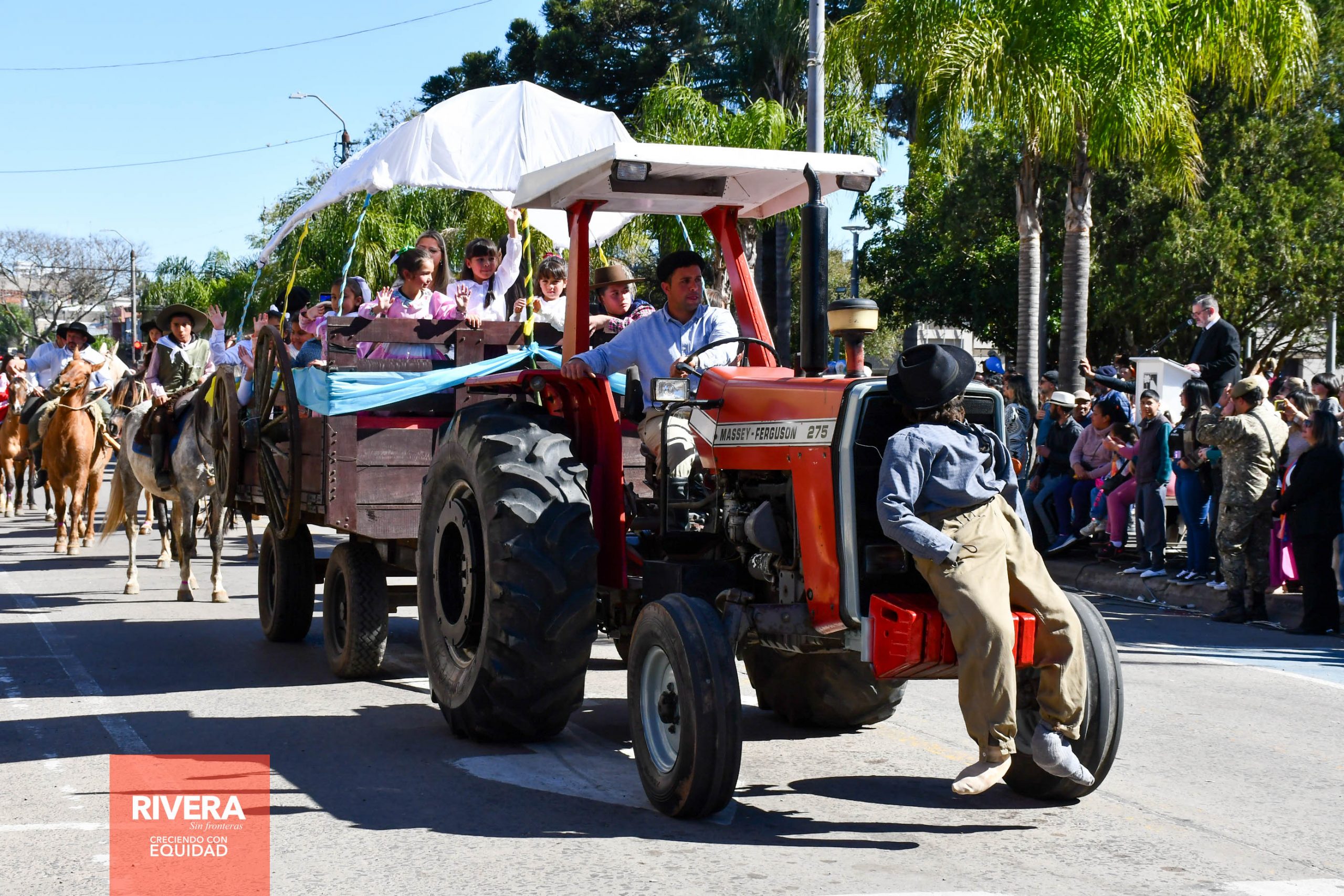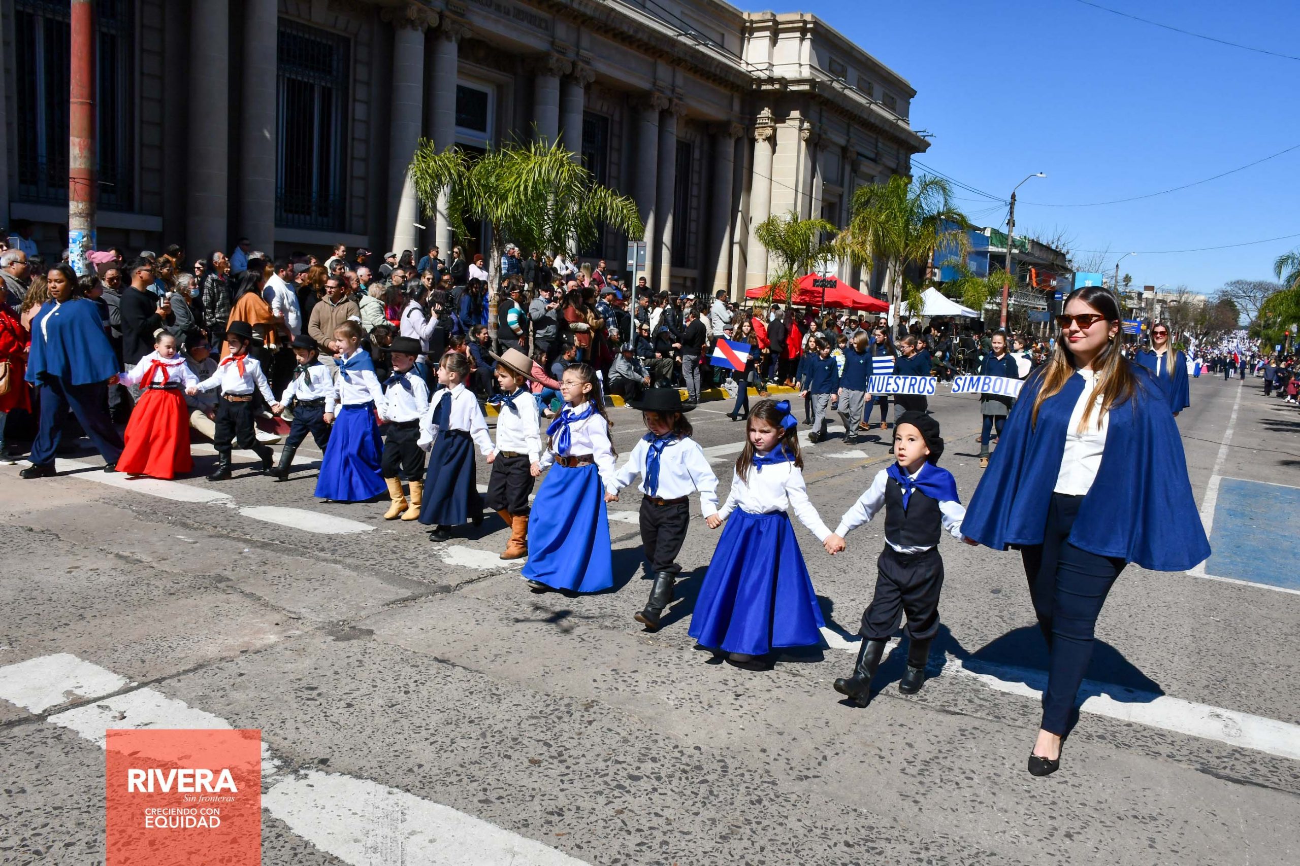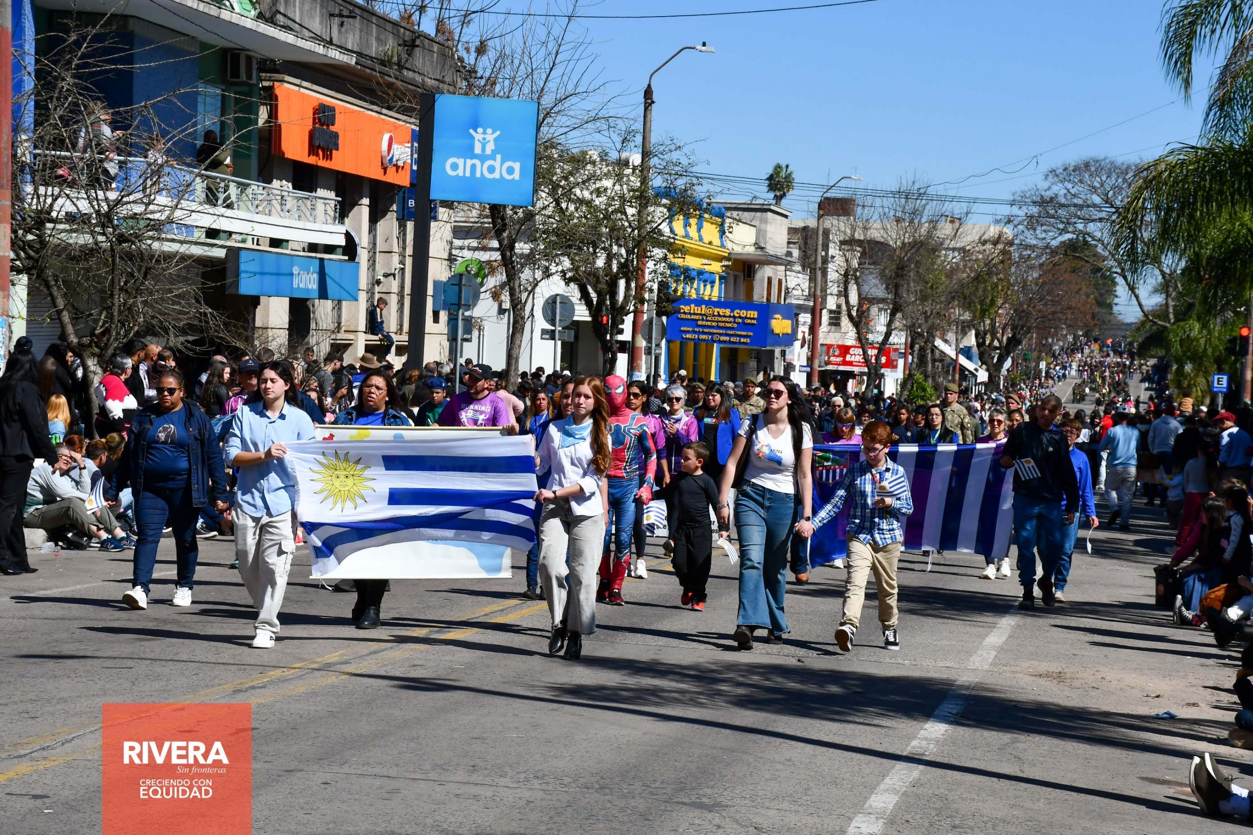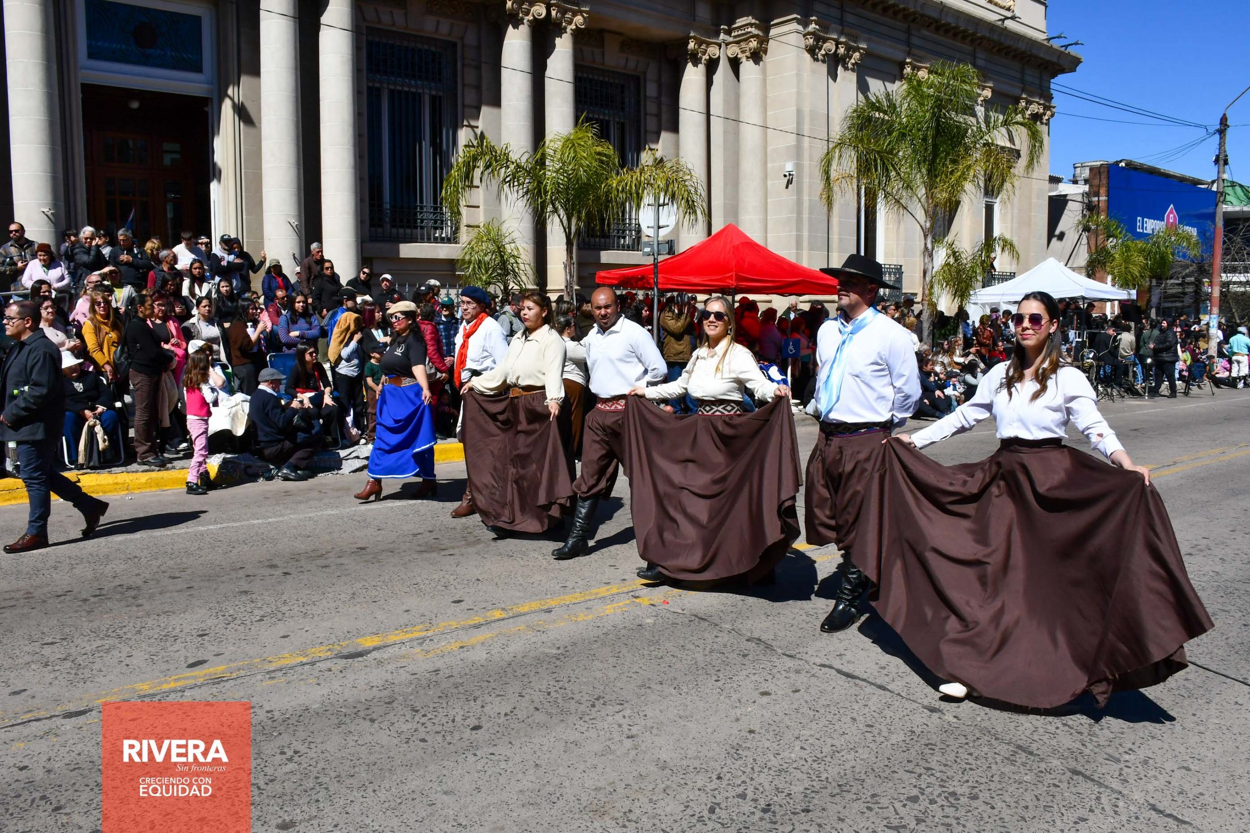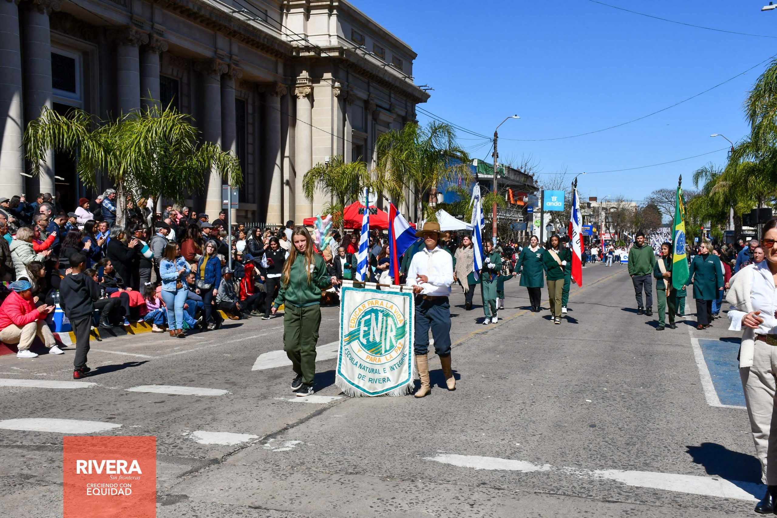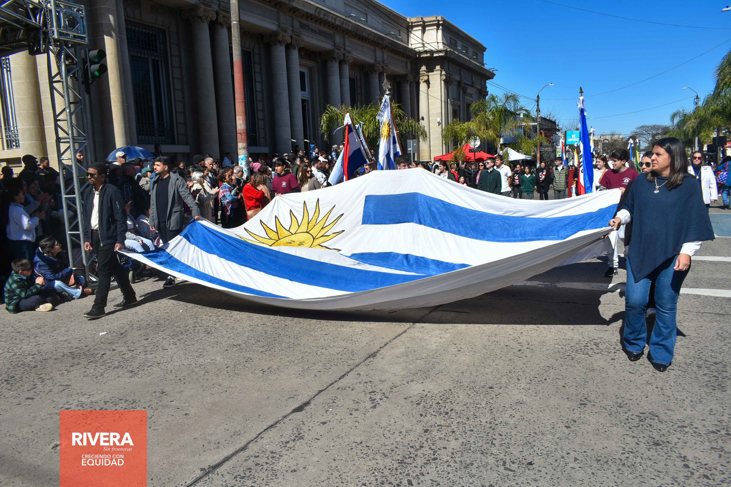 La Asociación Patriótica de Rivera organizó el mayor desfile cívico-militar y de caballería gaucha del país, que se extendió durante más de siete horas y reunió a miles de participantes y espectadores.