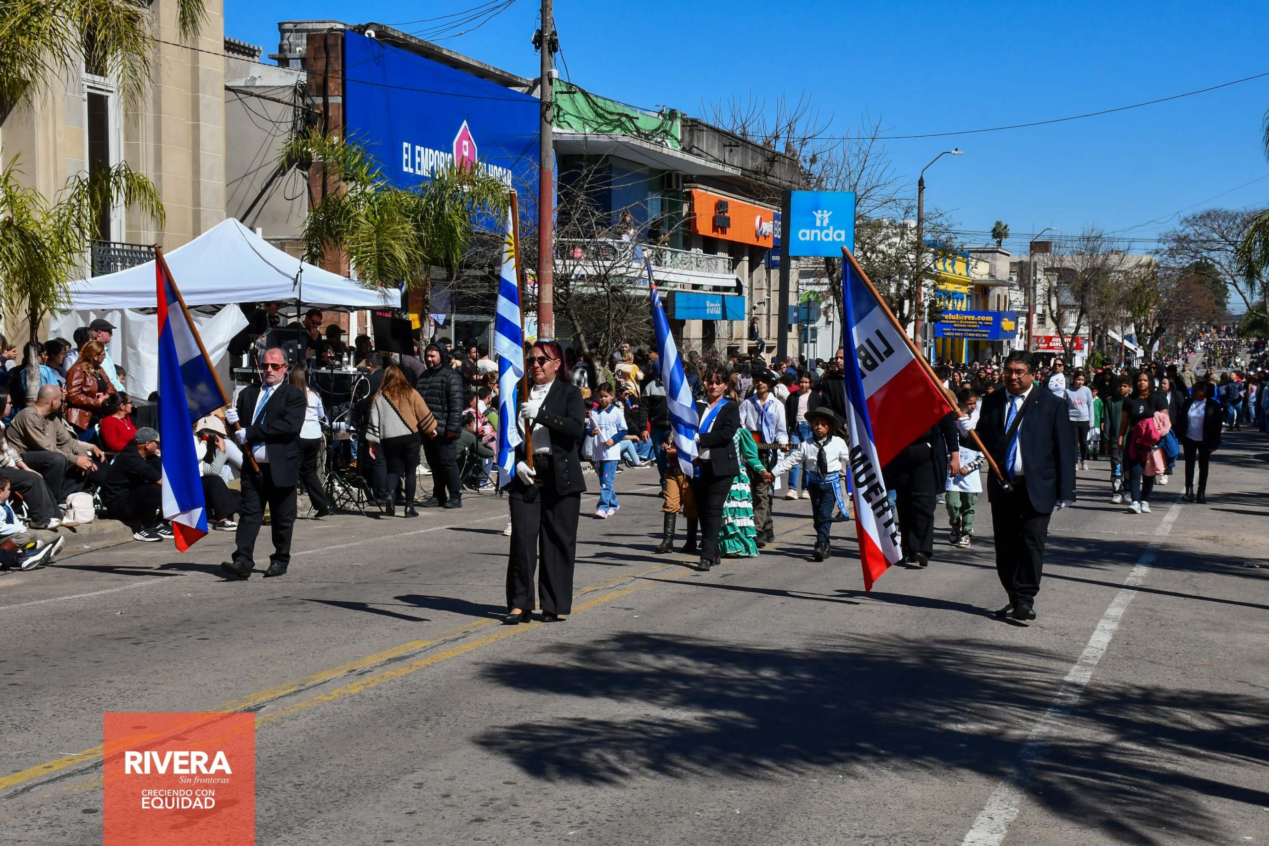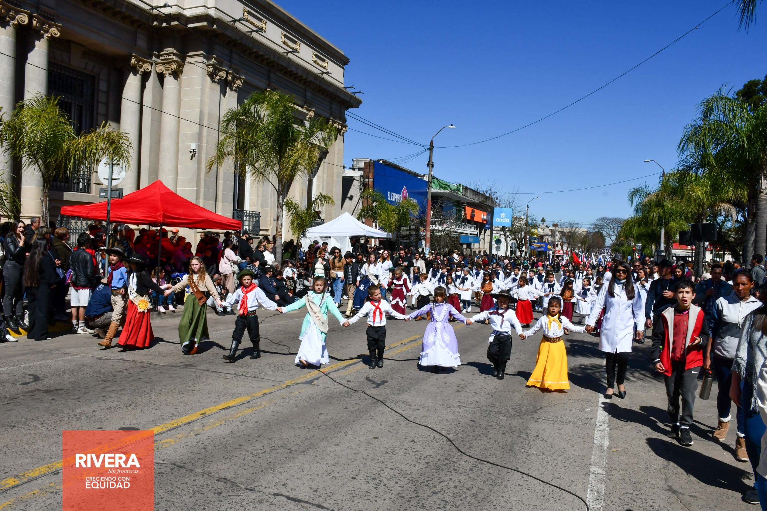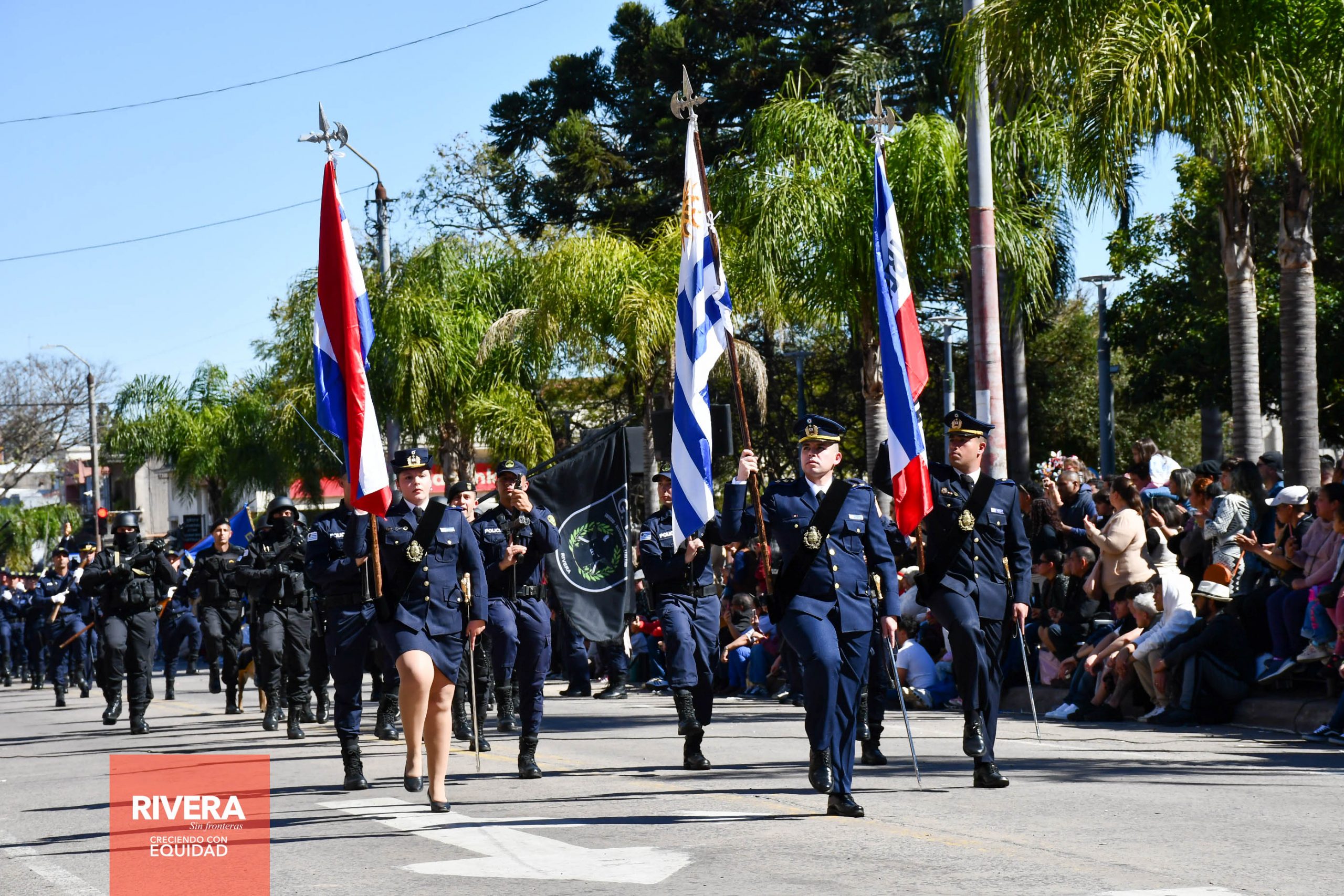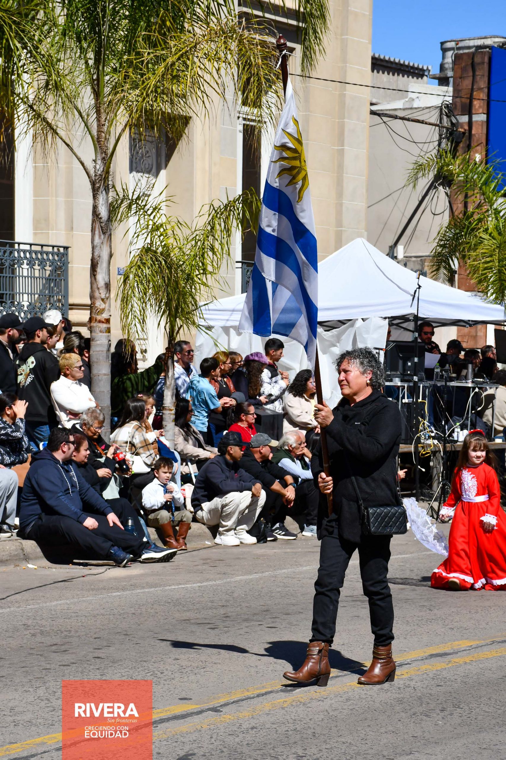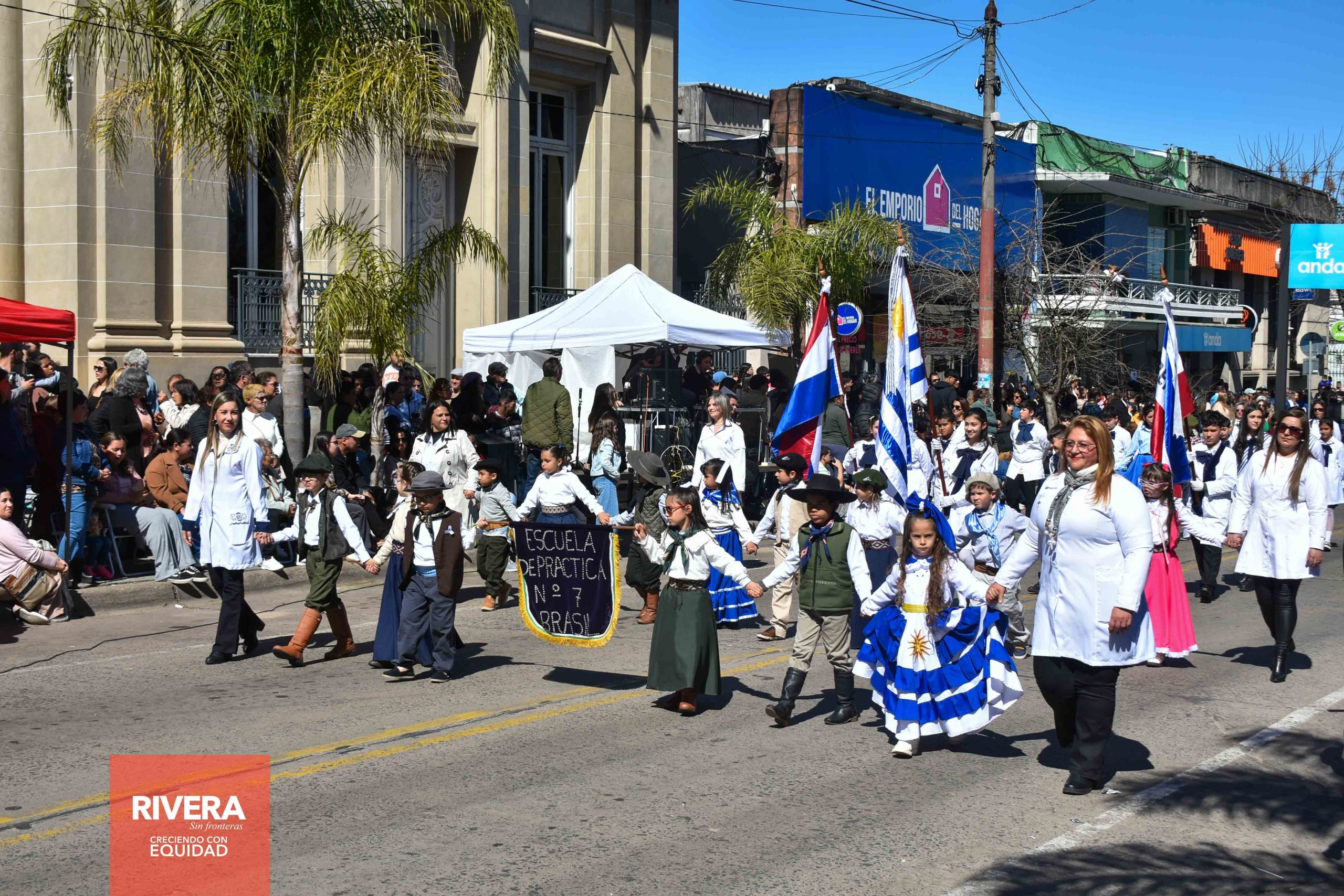La Asociación Patriótica de Rivera organizó el mayor desfile cívico-militar y de caballería gaucha del país, que se extendió durante más de siete horas y reunió a miles de participantes y espectadores.