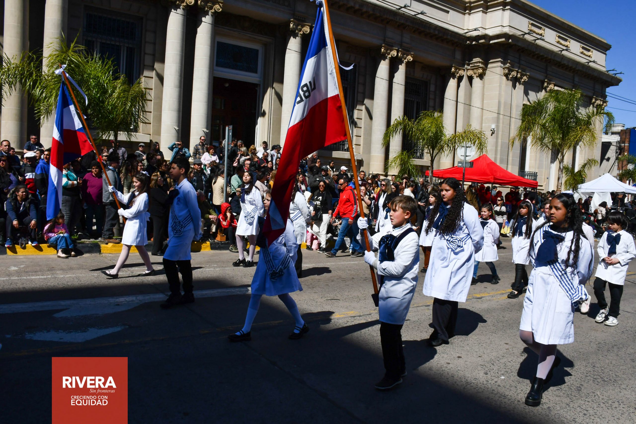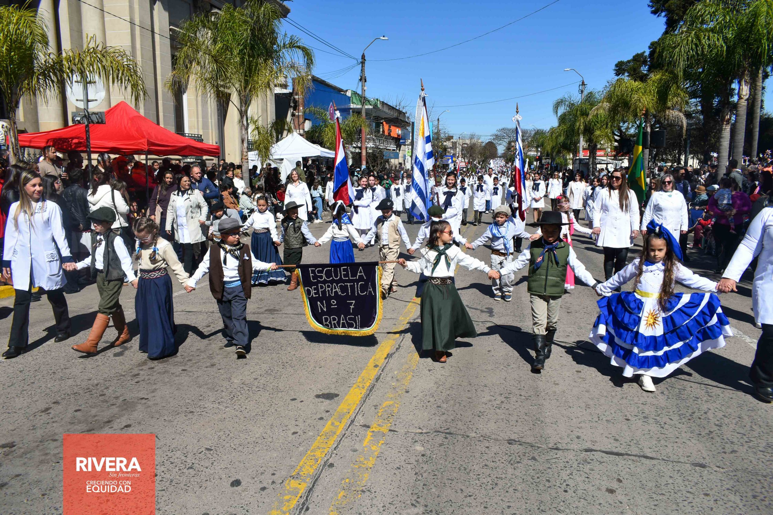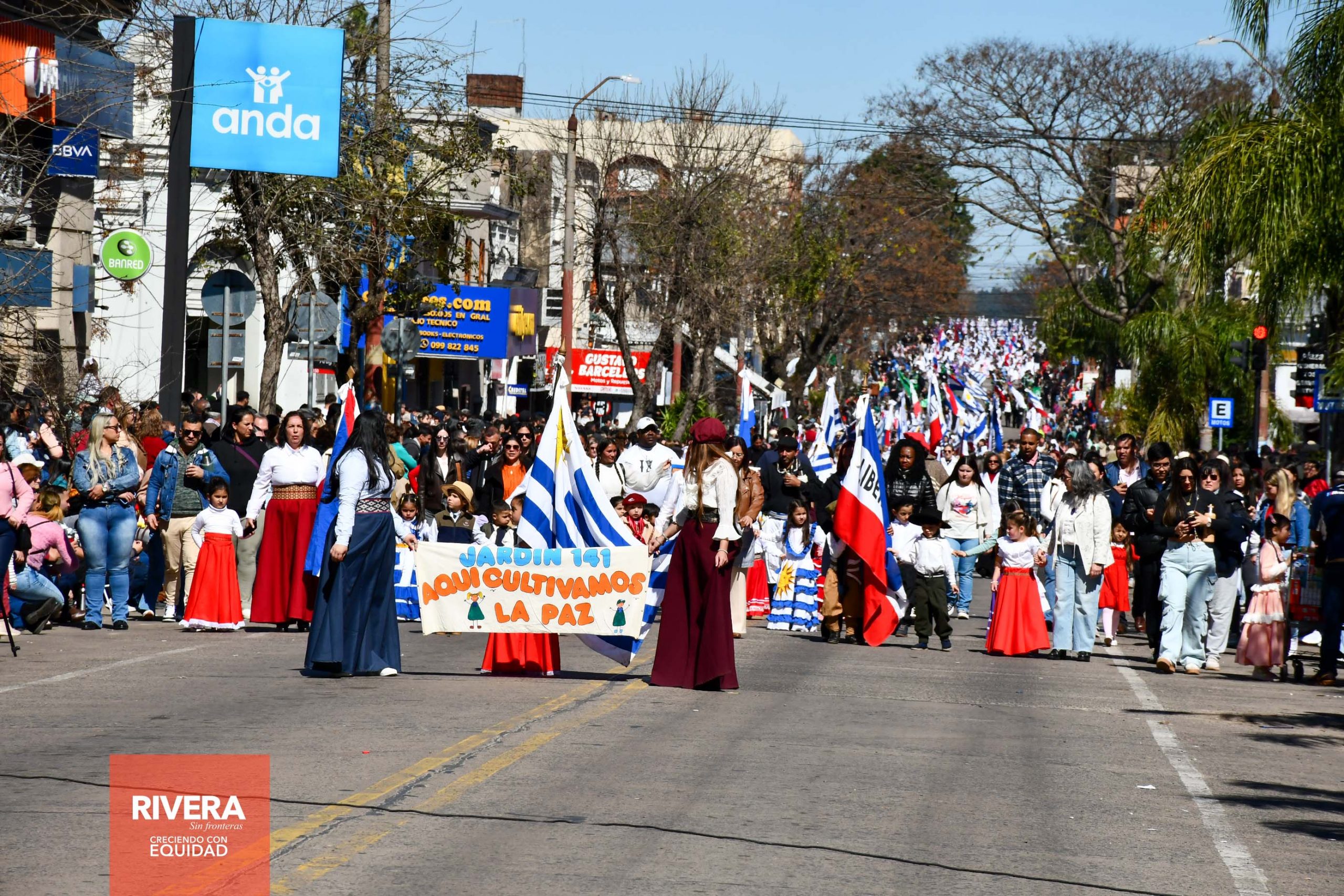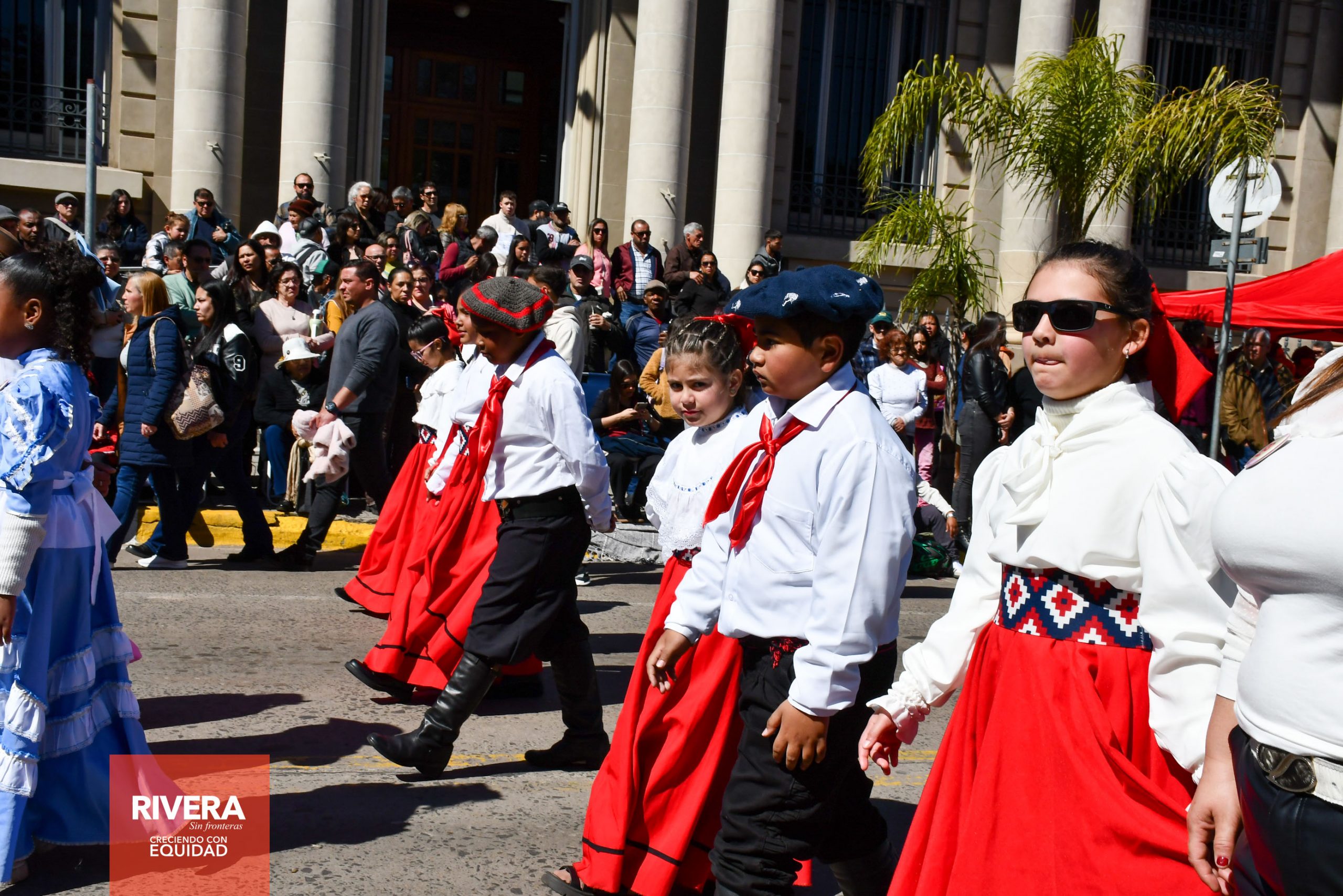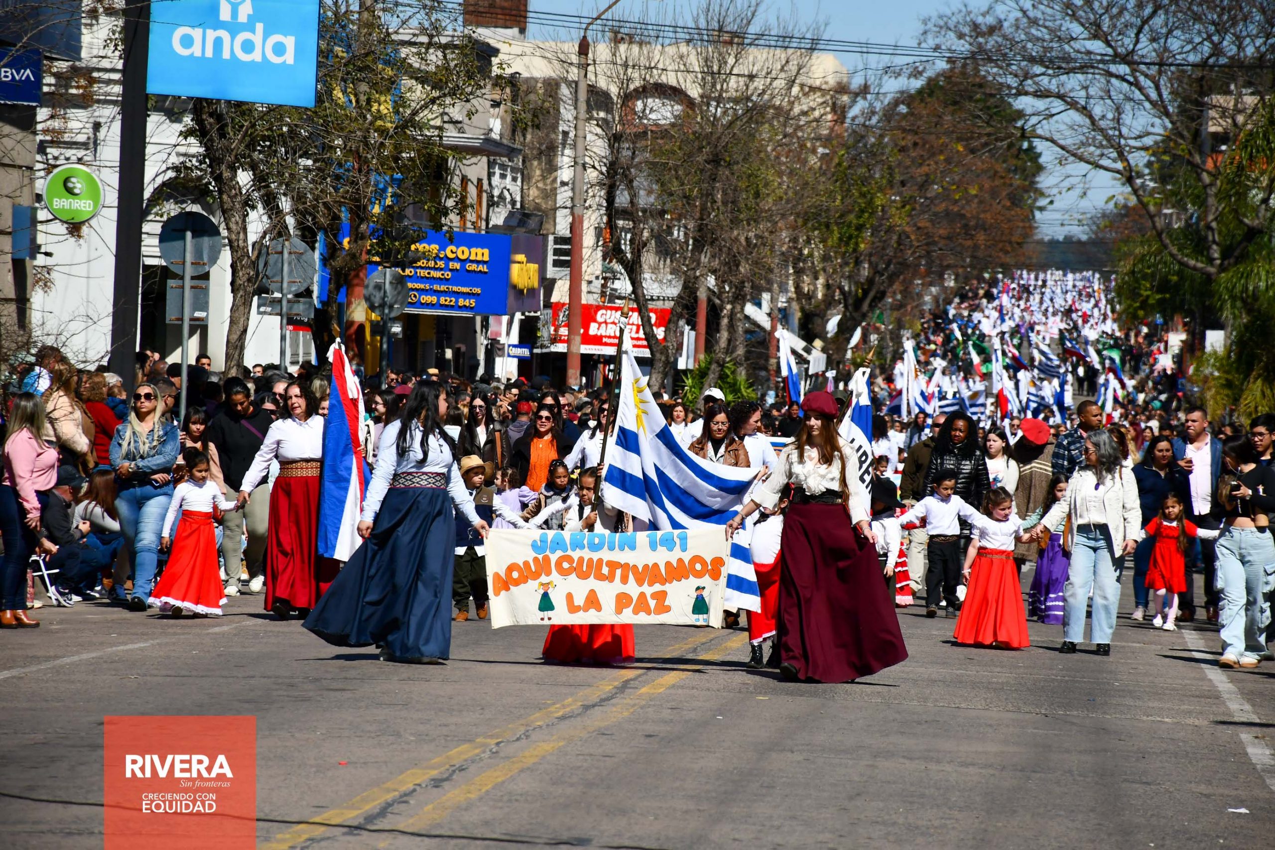La Asociación Patriótica de Rivera organizó el mayor desfile cívico-militar y de caballería gaucha del país, que se extendió durante más de siete horas y reunió a miles de participantes y espectadores.