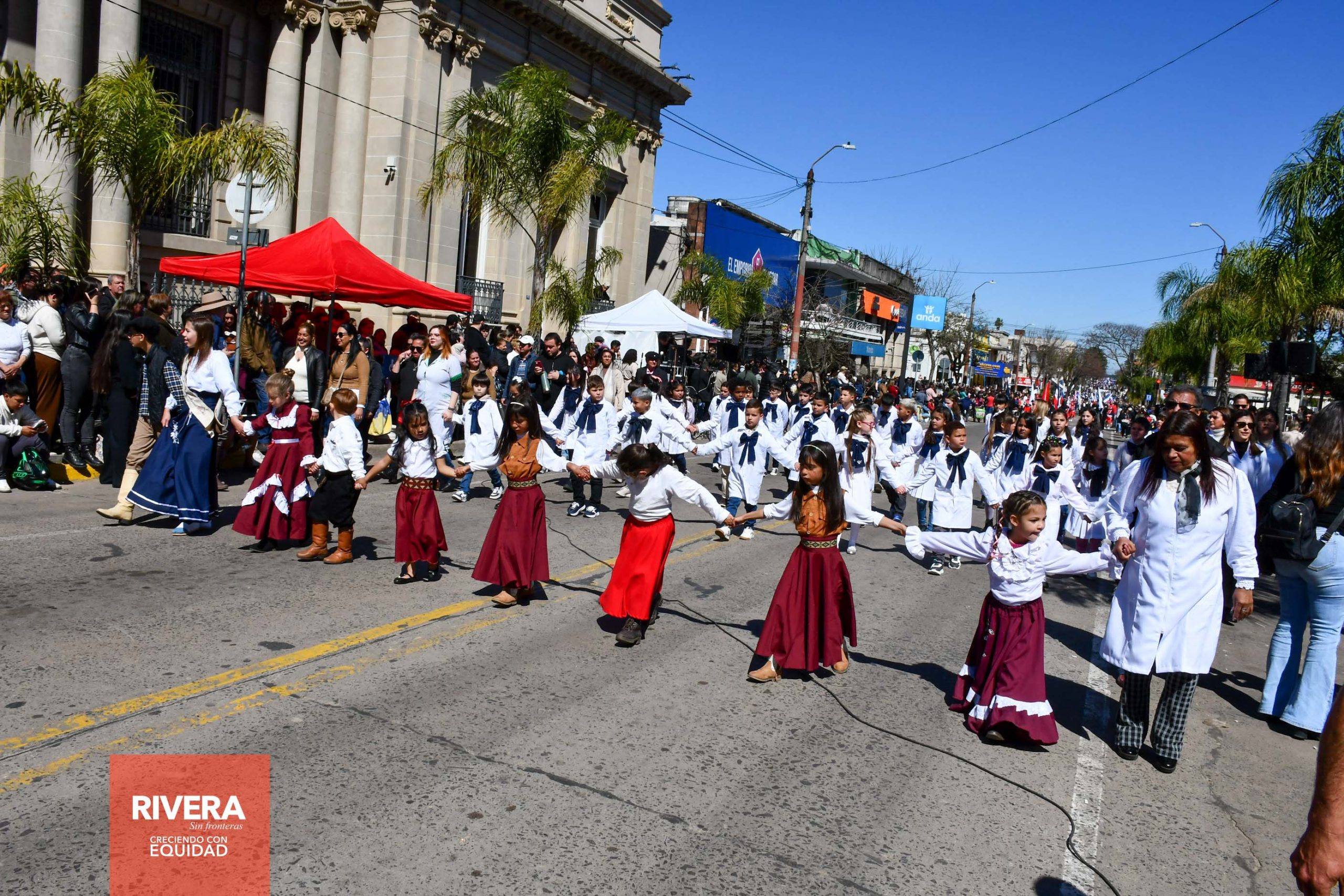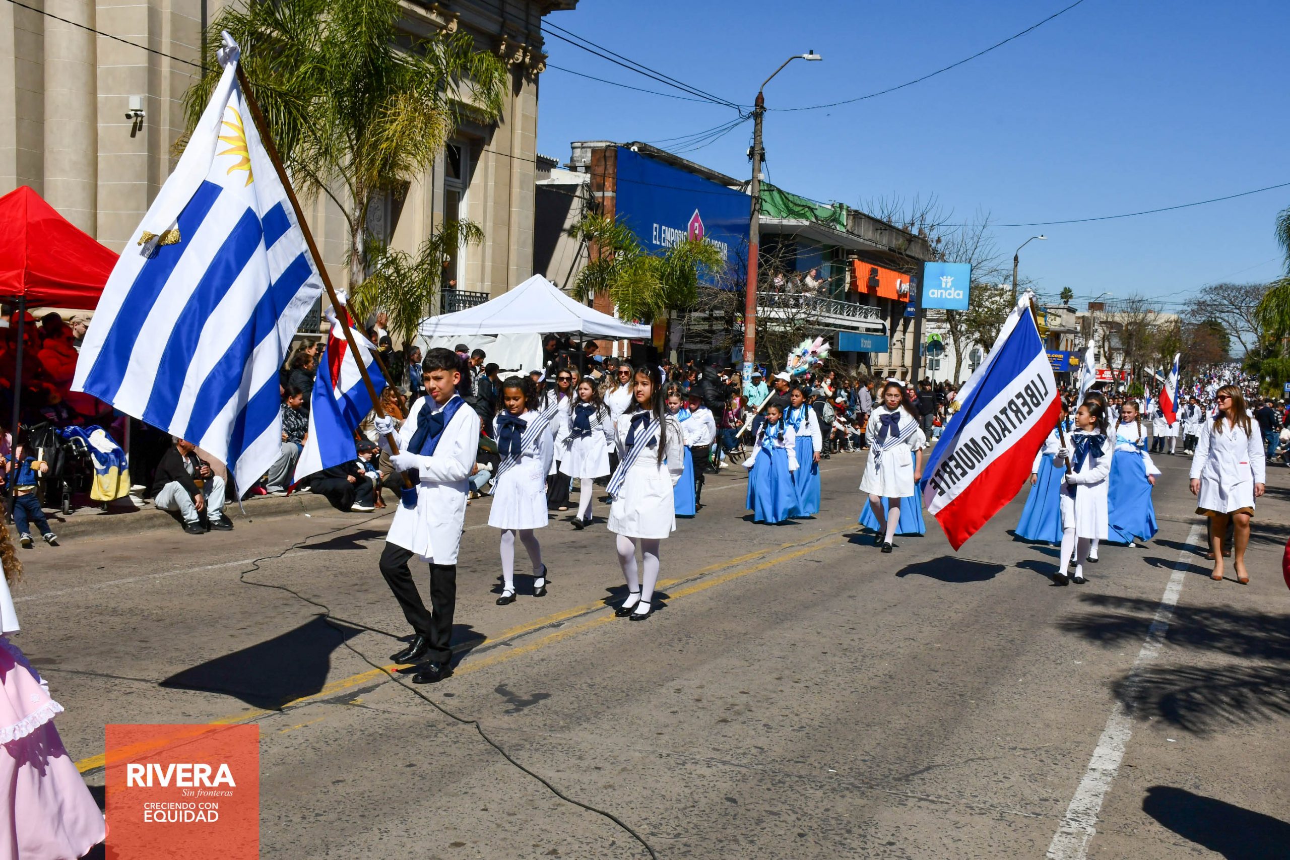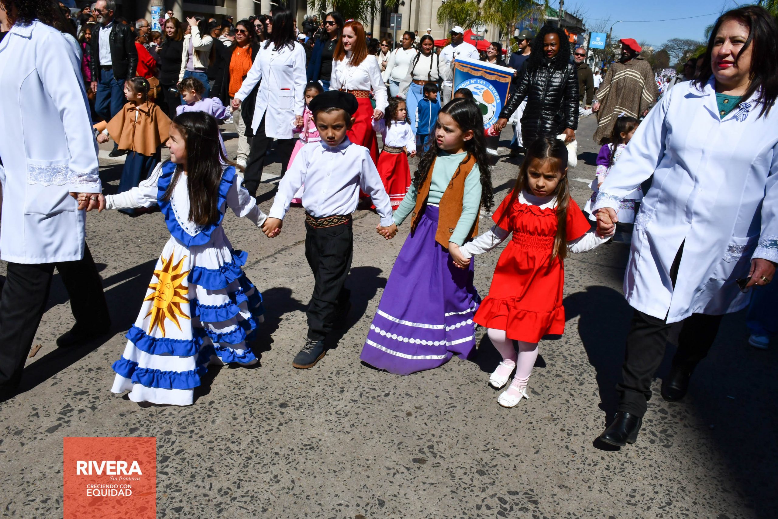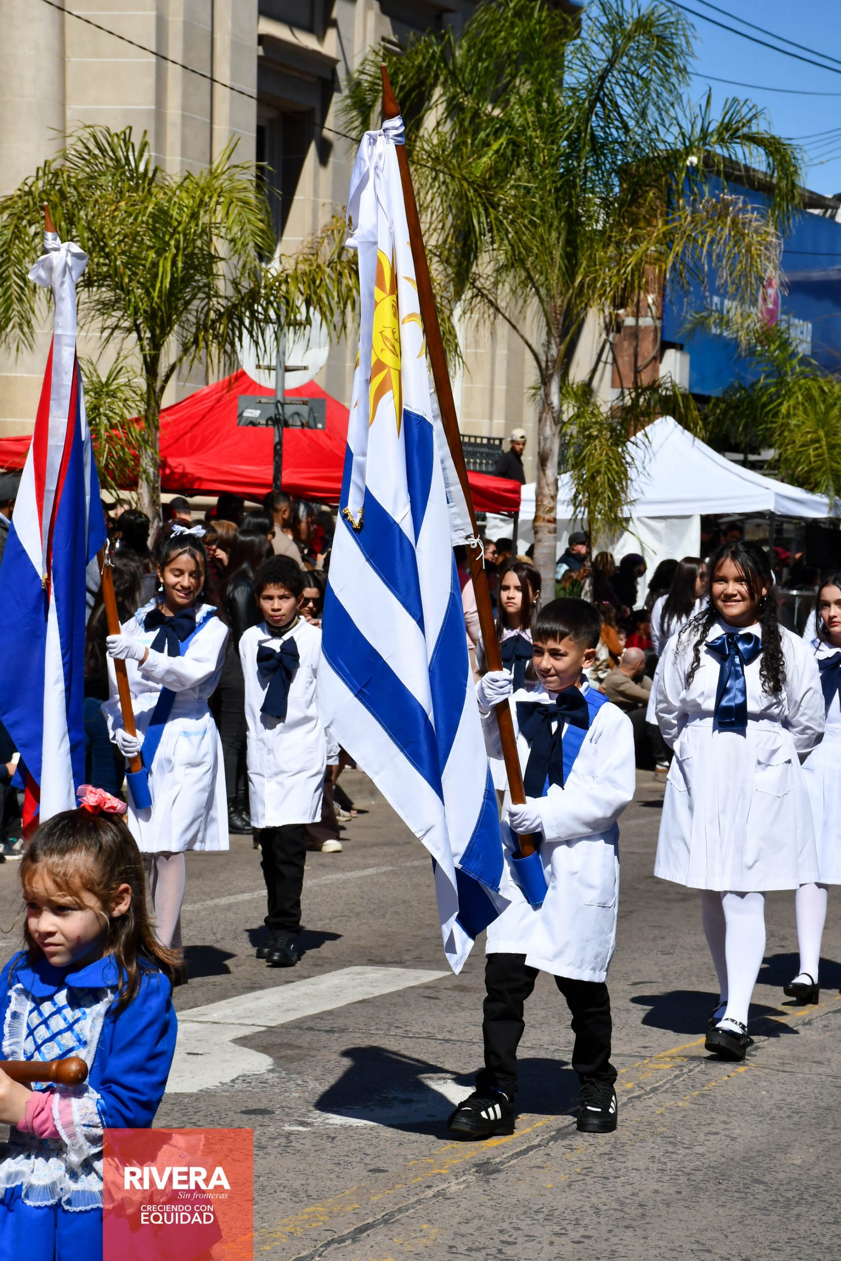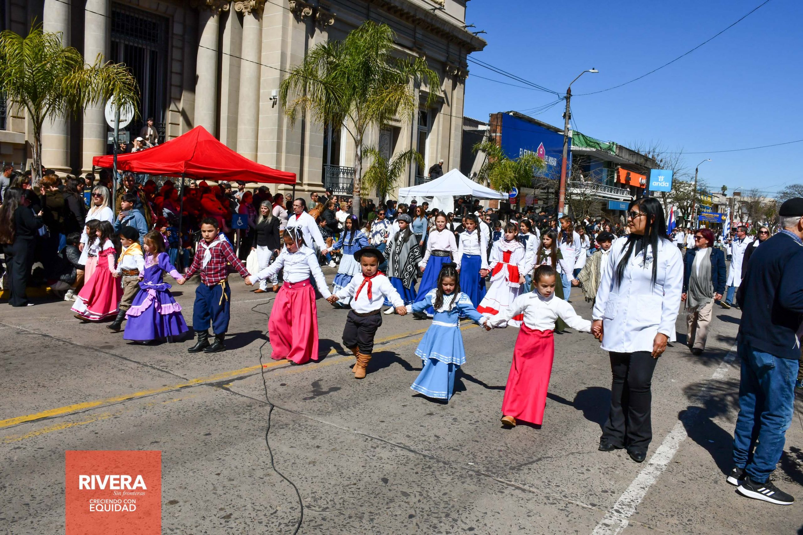 La Asociación Patriótica de Rivera organizó el mayor desfile cívico-militar y de caballería gaucha del país, que se extendió durante más de siete horas y reunió a miles de participantes y espectadores.
