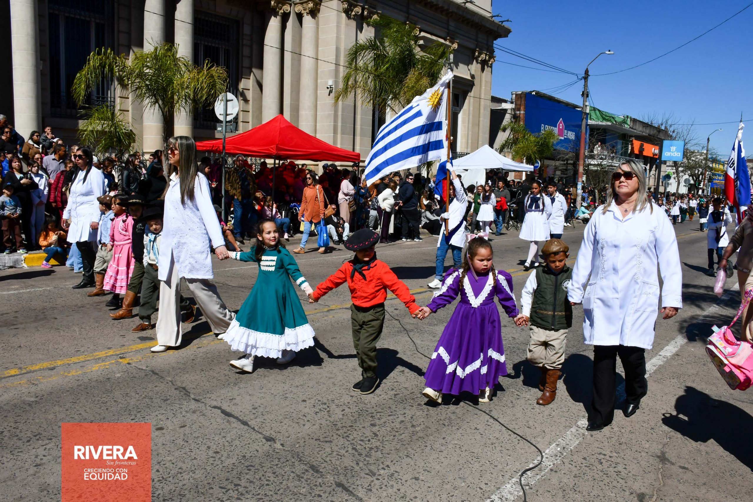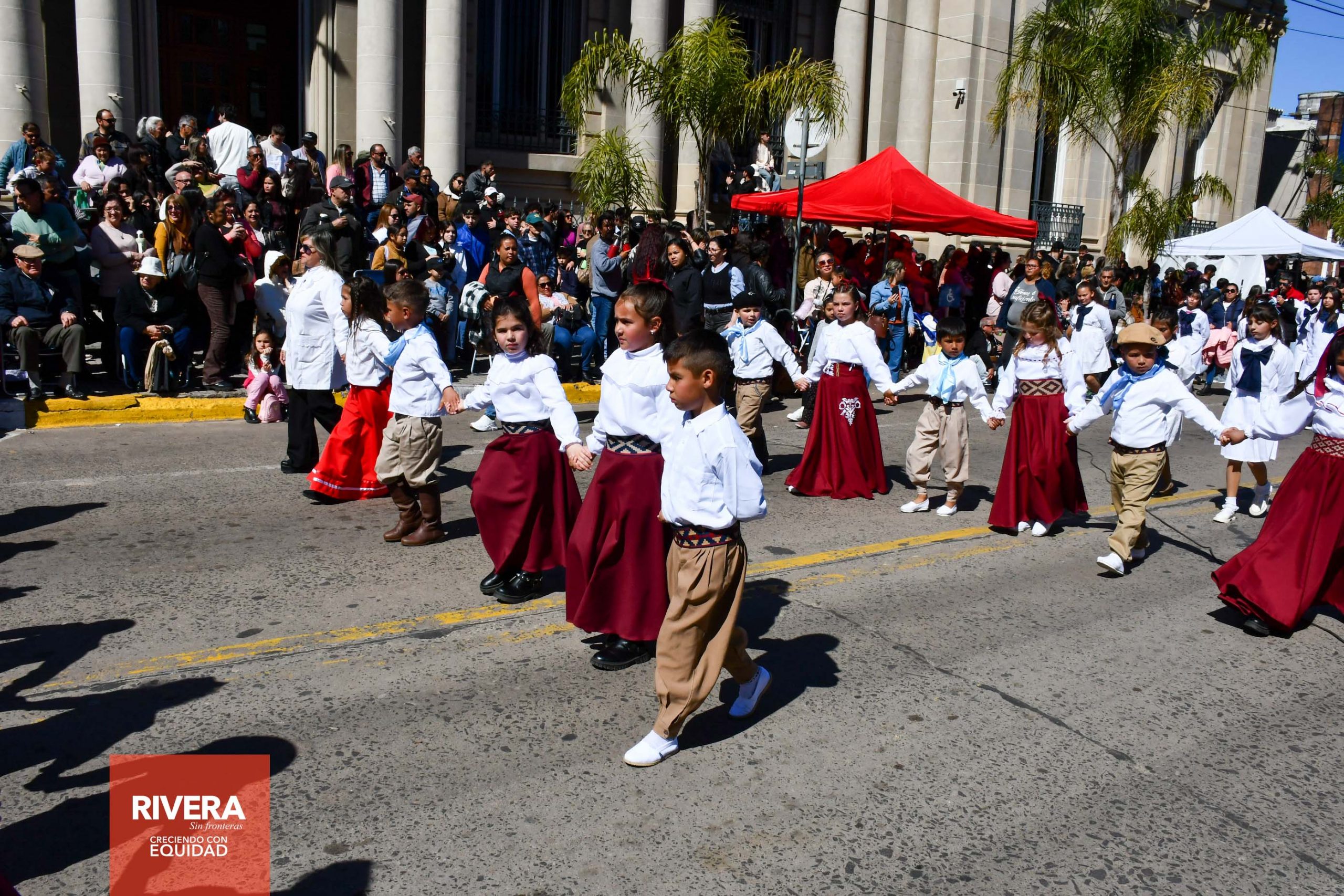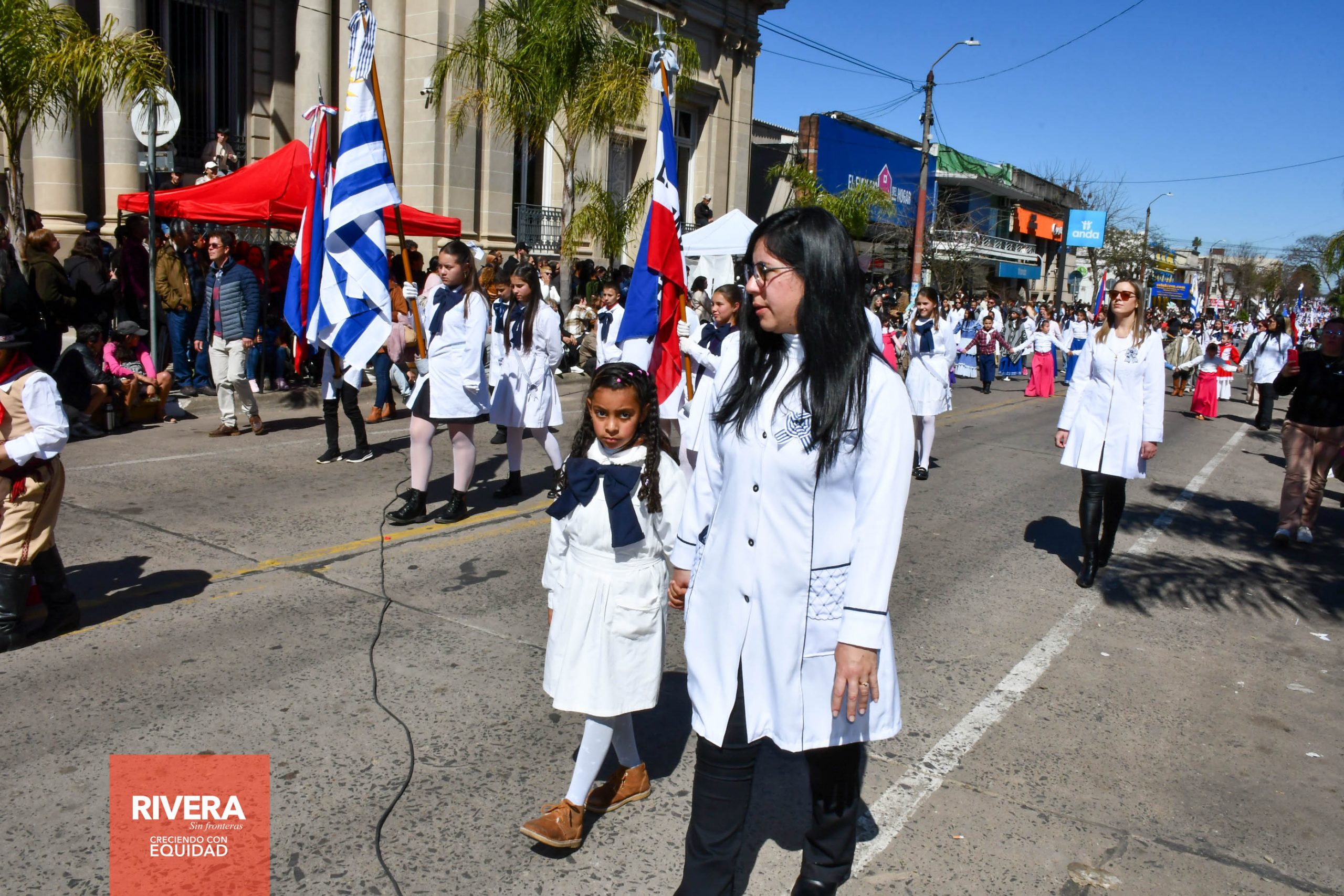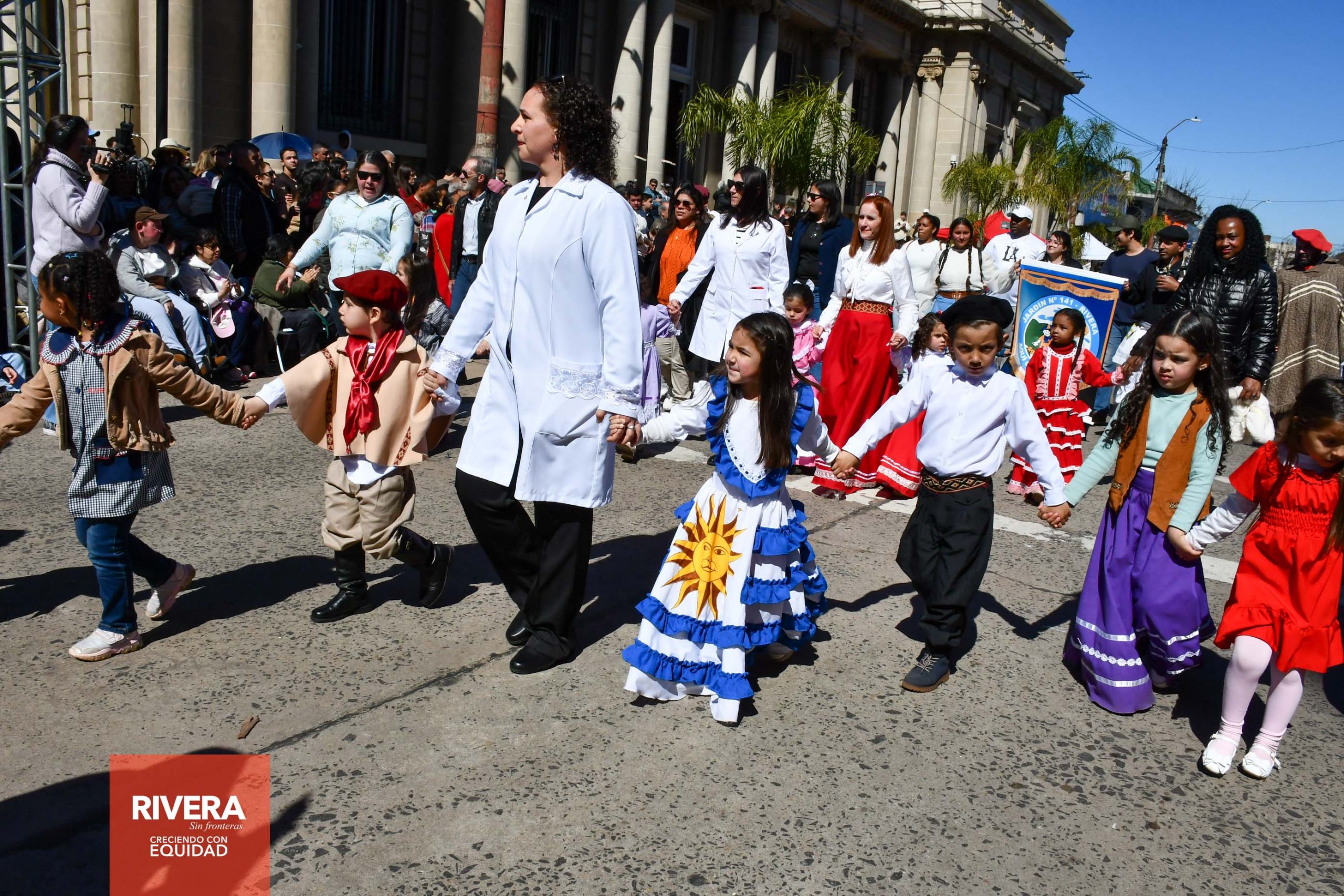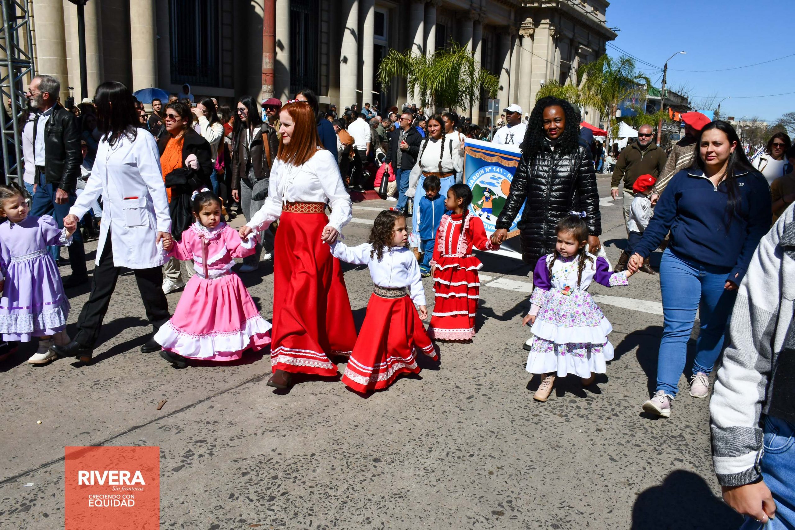 La Asociación Patriótica de Rivera organizó el mayor desfile cívico-militar y de caballería gaucha del país, que se extendió durante más de siete horas y reunió a miles de participantes y espectadores.