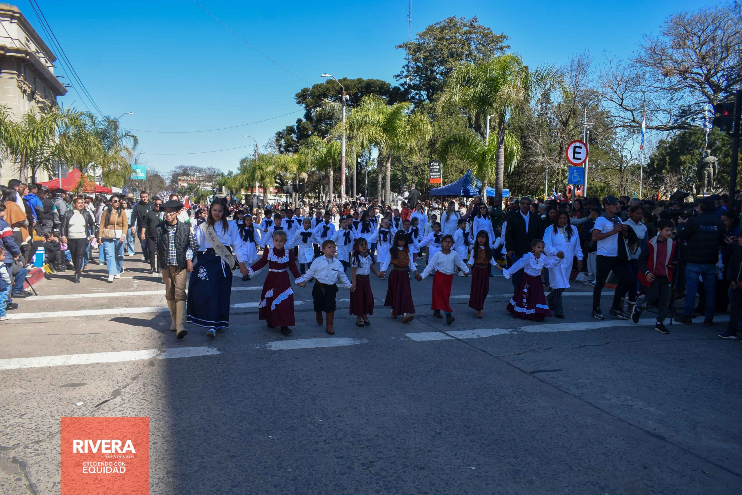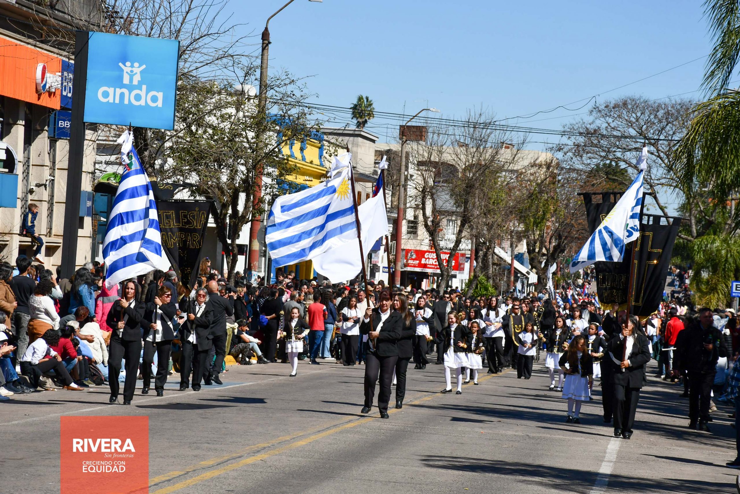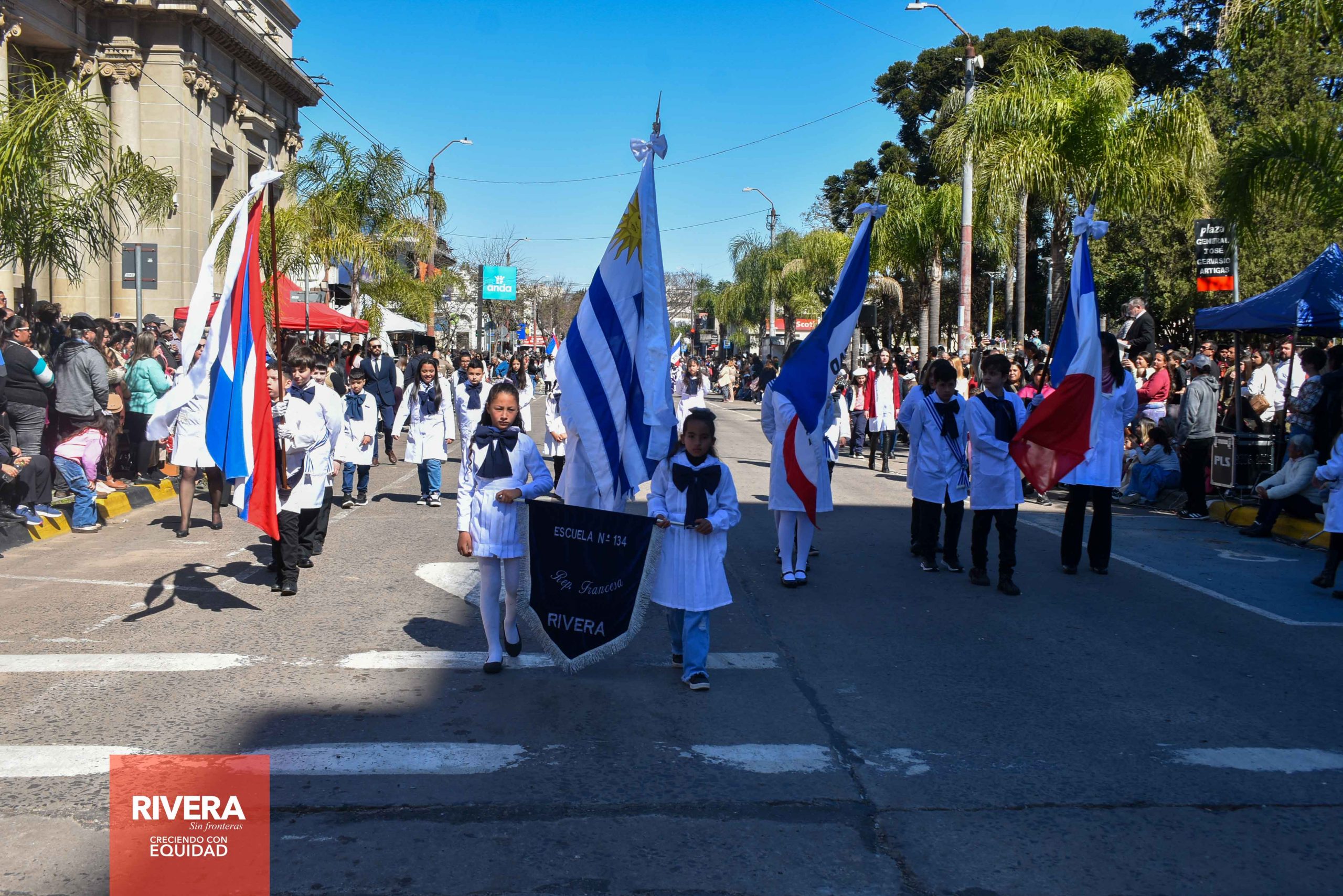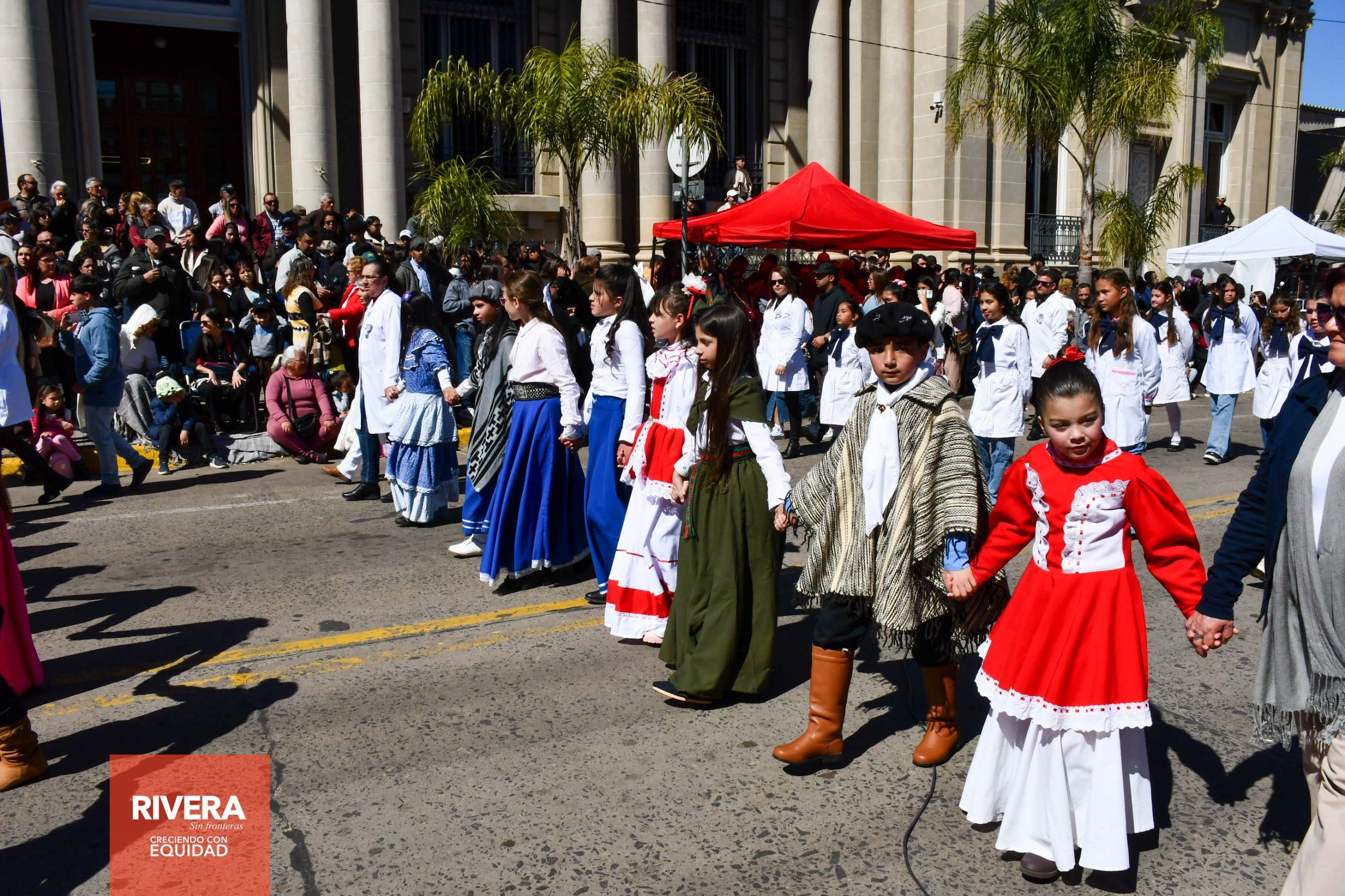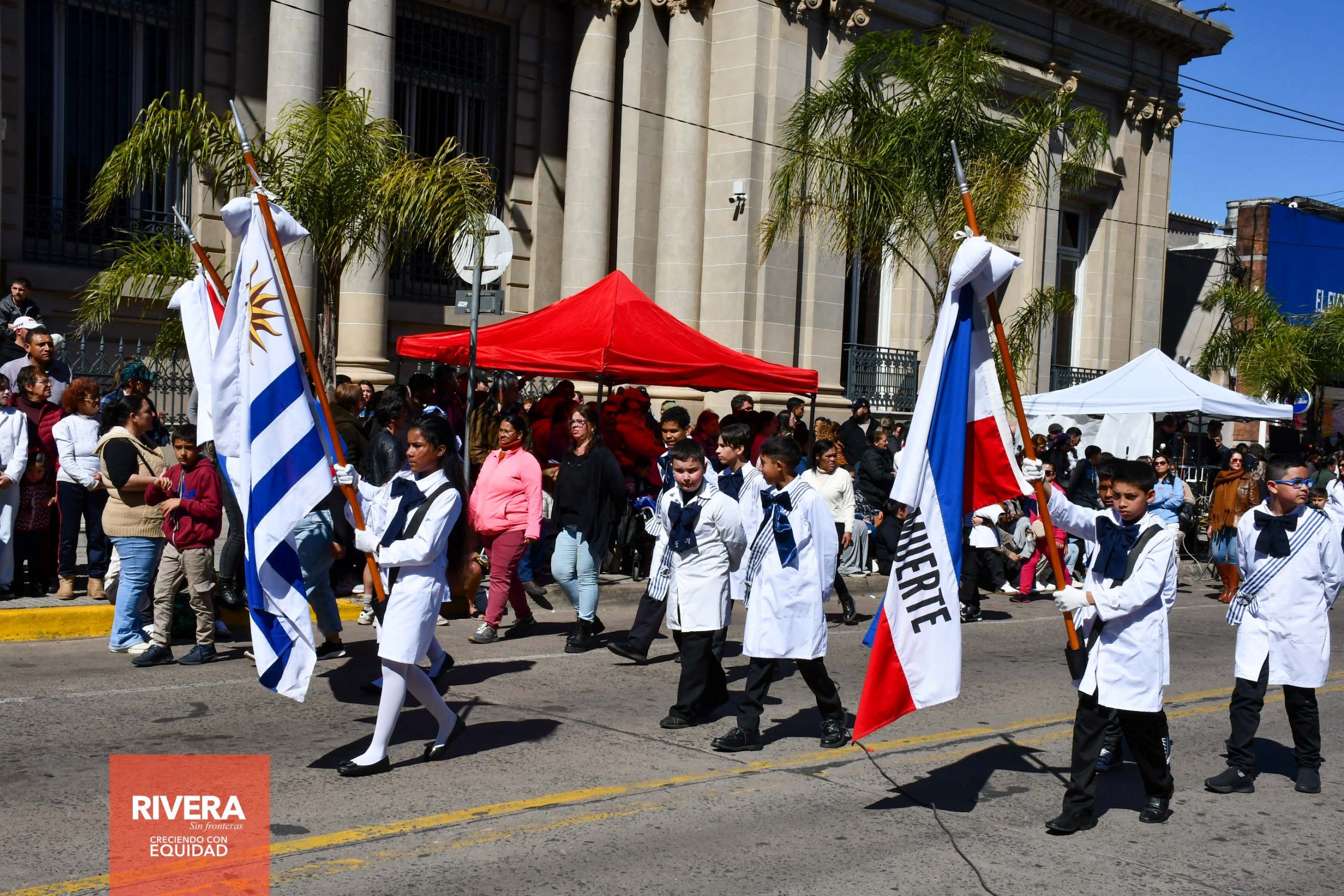 La Asociación Patriótica de Rivera organizó el mayor desfile cívico-militar y de caballería gaucha del país, que se extendió durante más de siete horas y reunió a miles de participantes y espectadores.