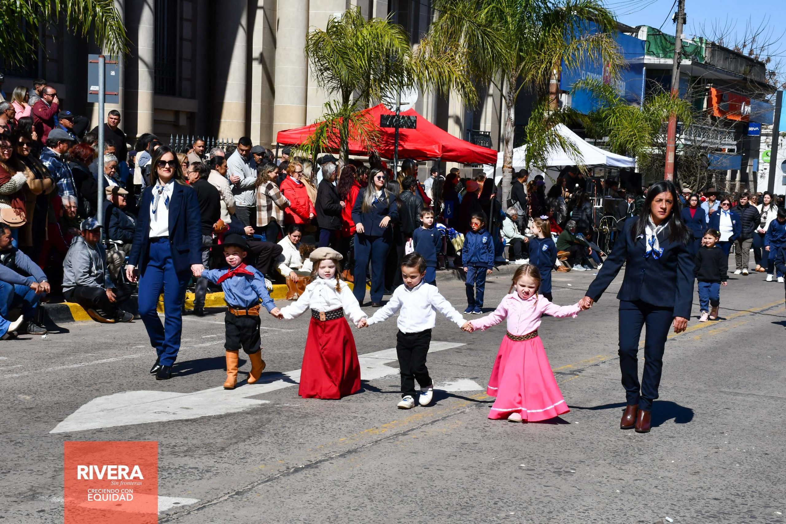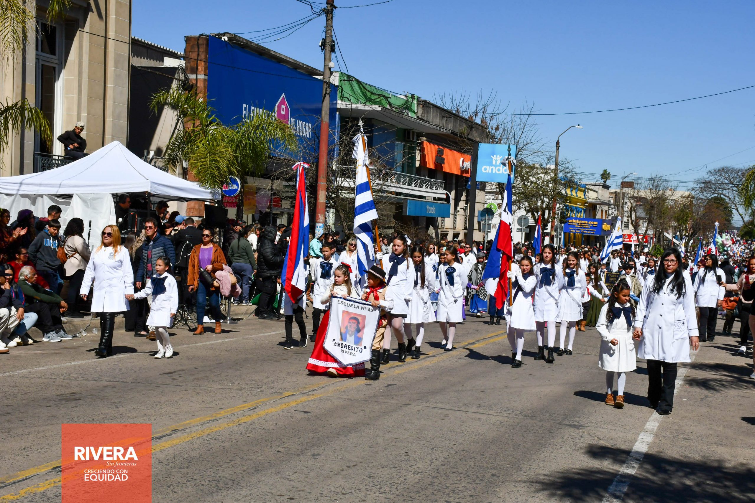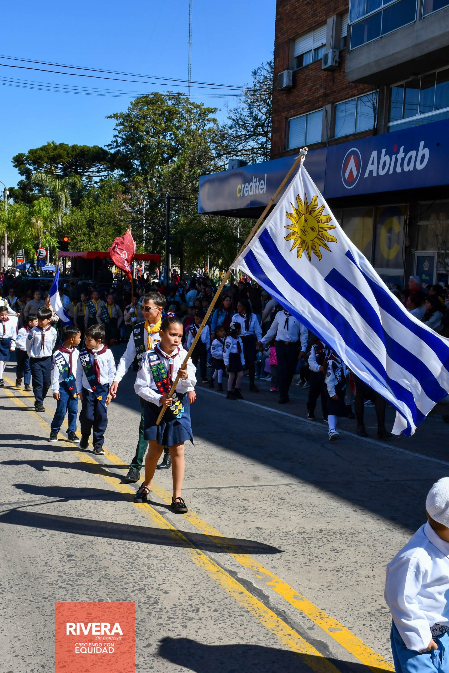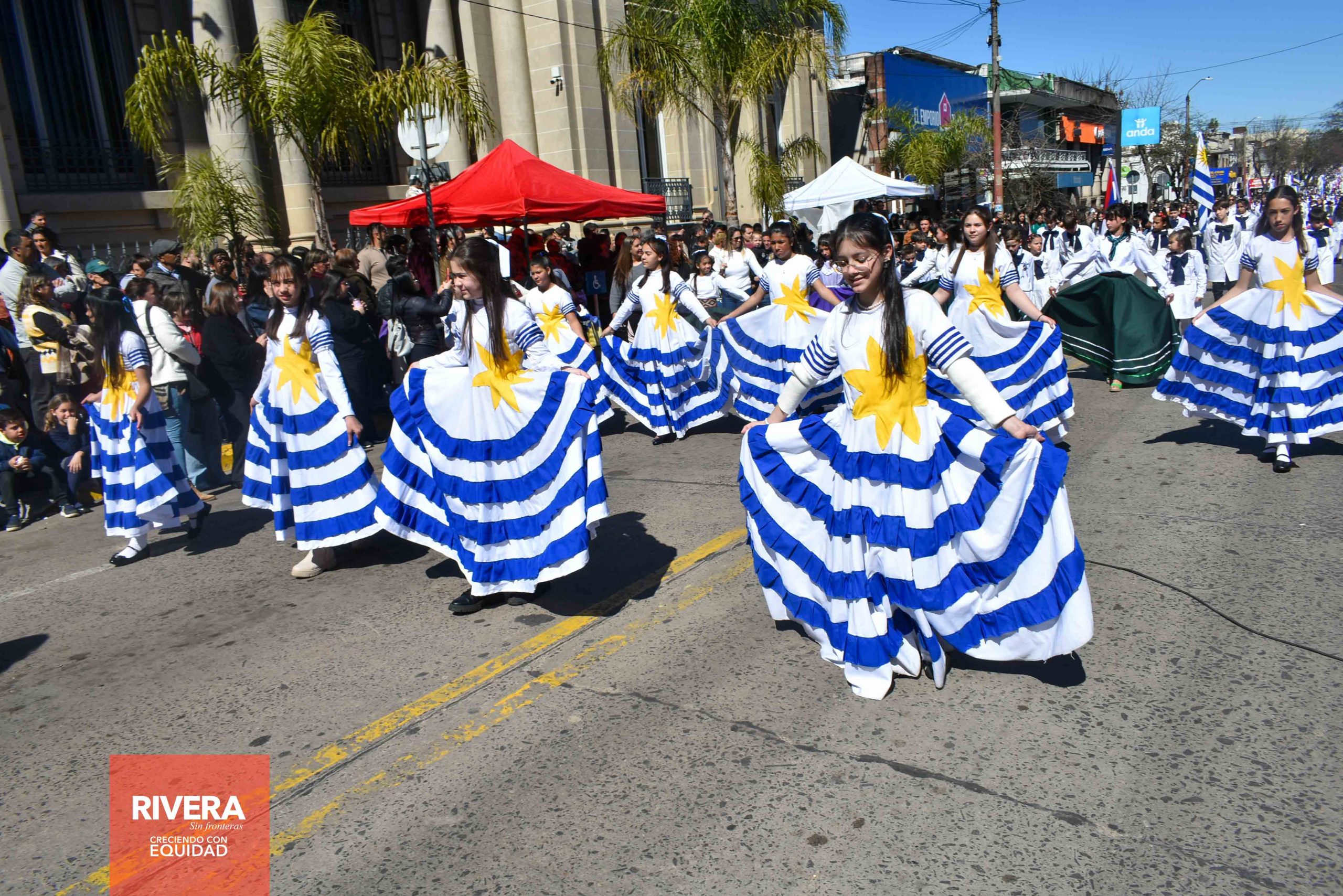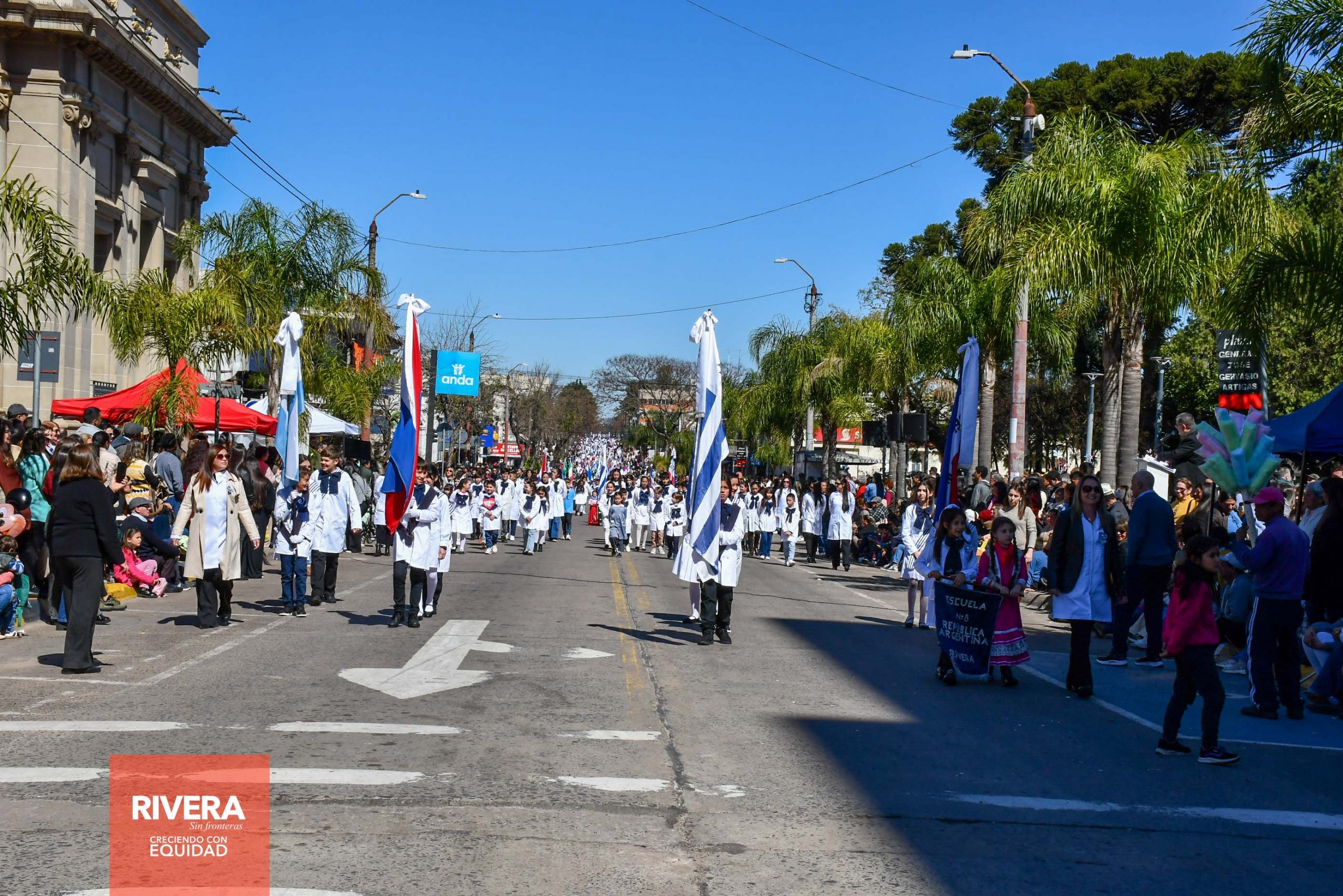 La Asociación Patriótica de Rivera organizó el mayor desfile cívico-militar y de caballería gaucha del país, que se extendió durante más de siete horas y reunió a miles de participantes y espectadores.