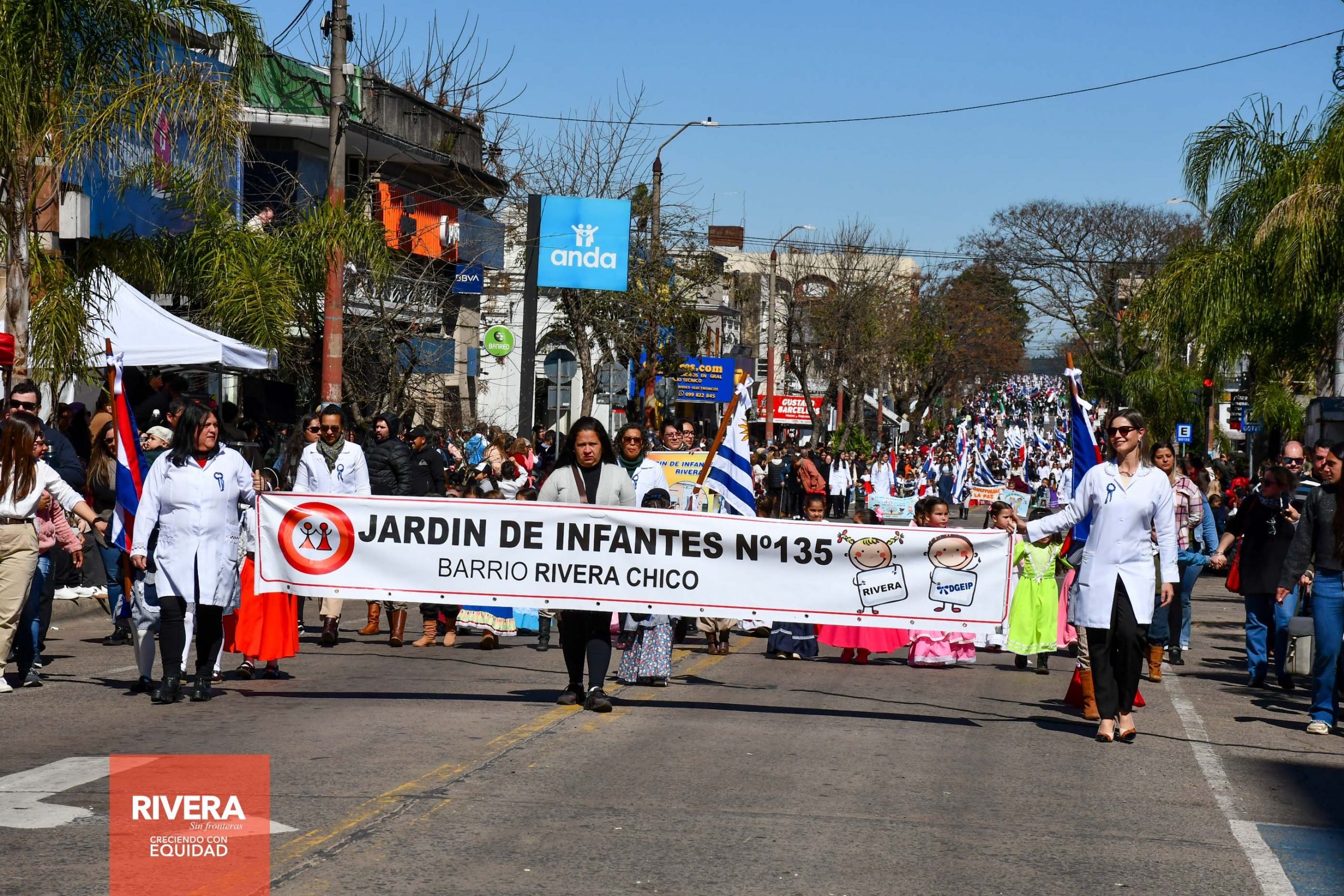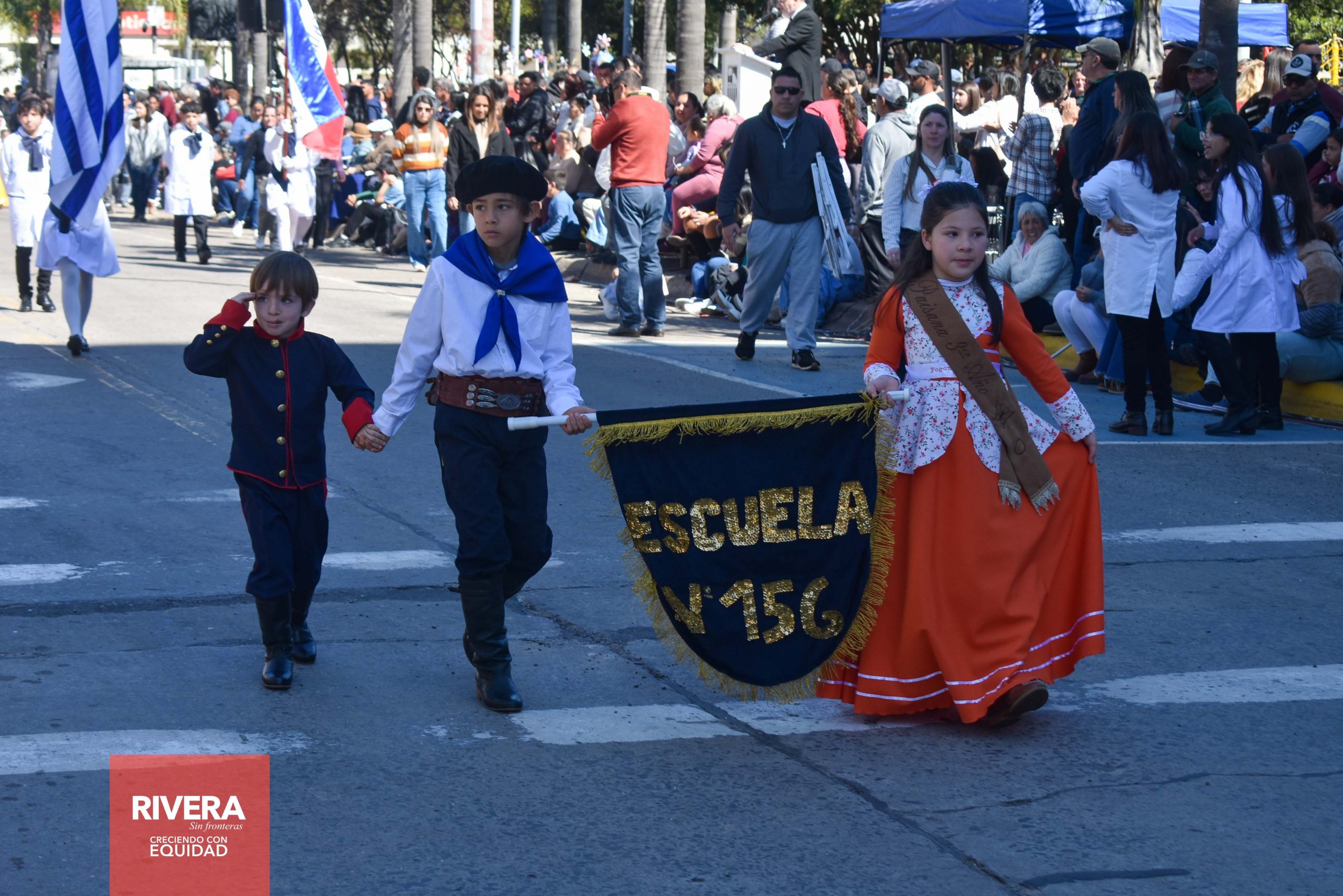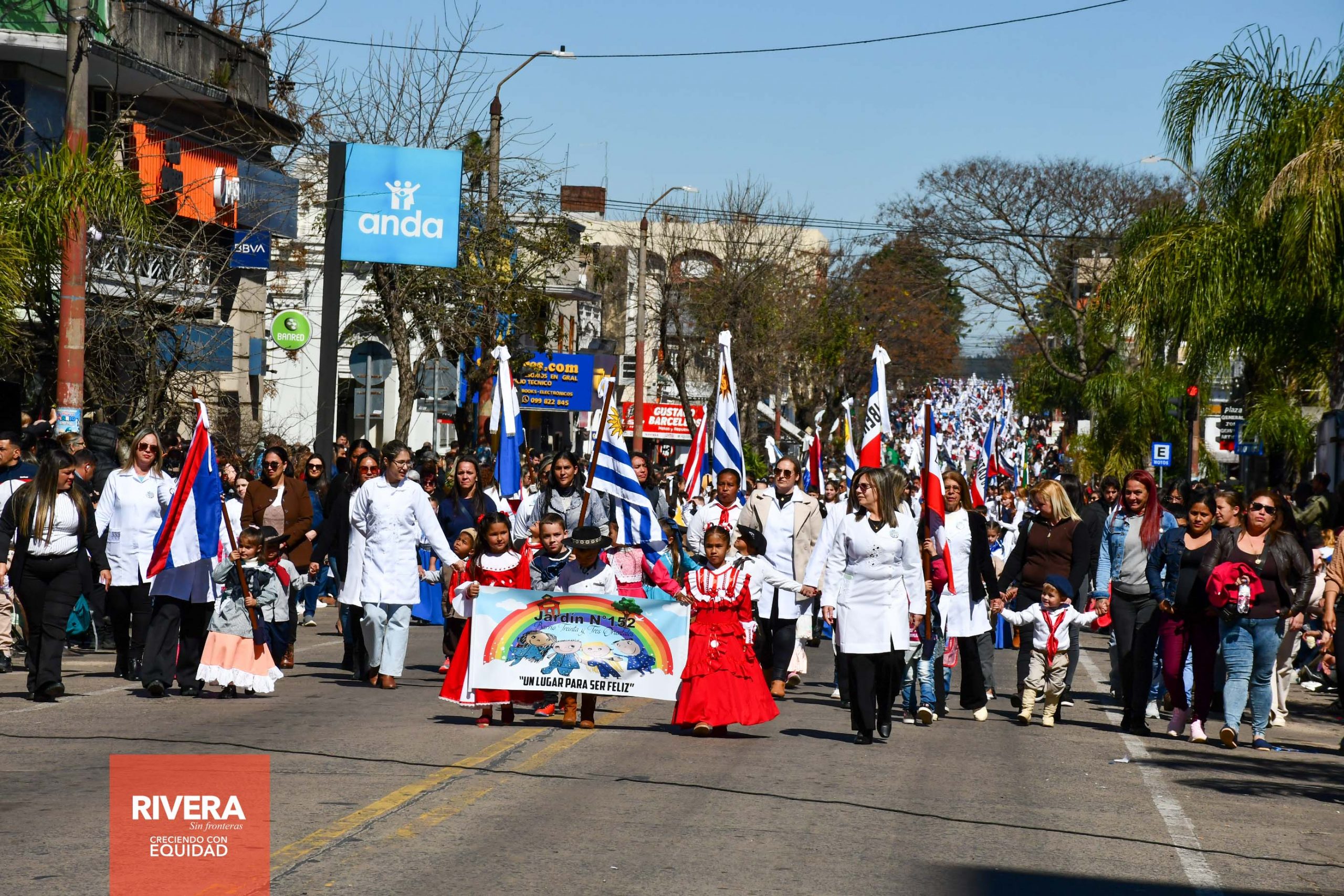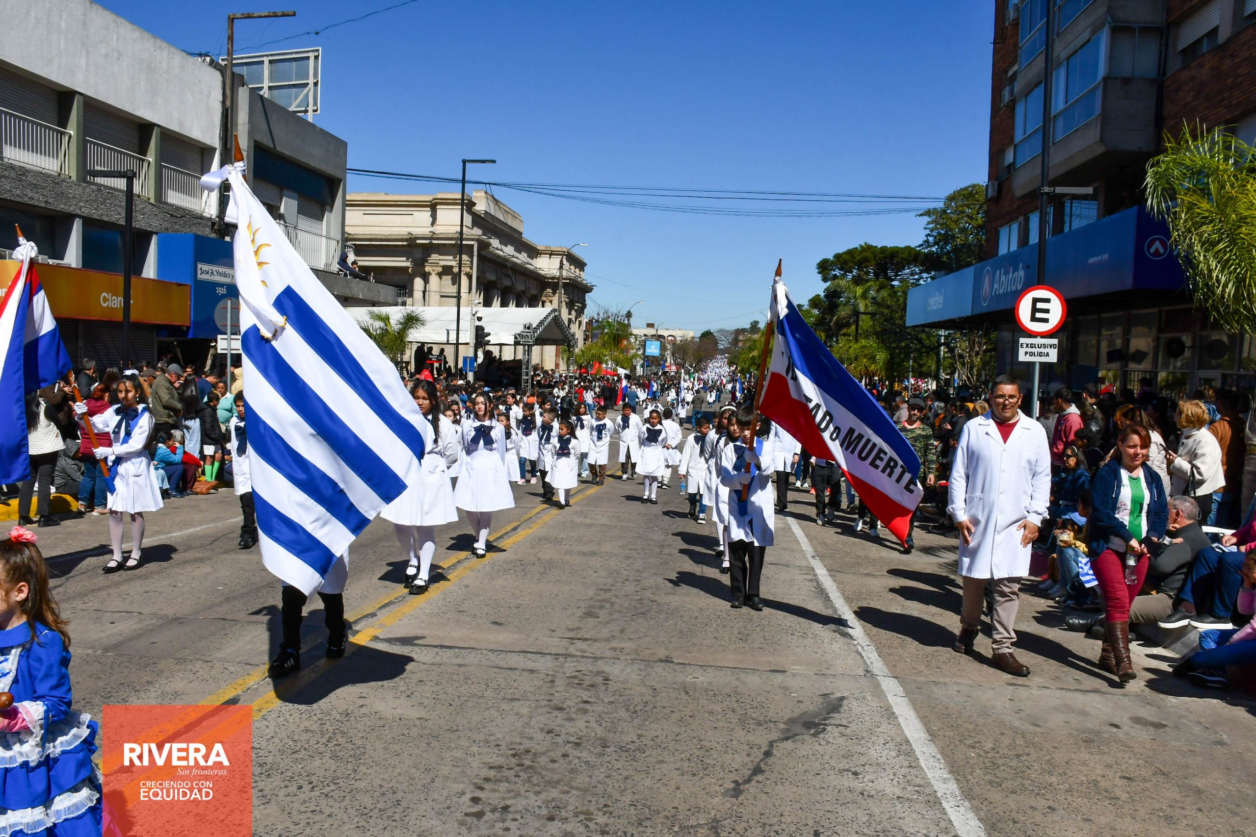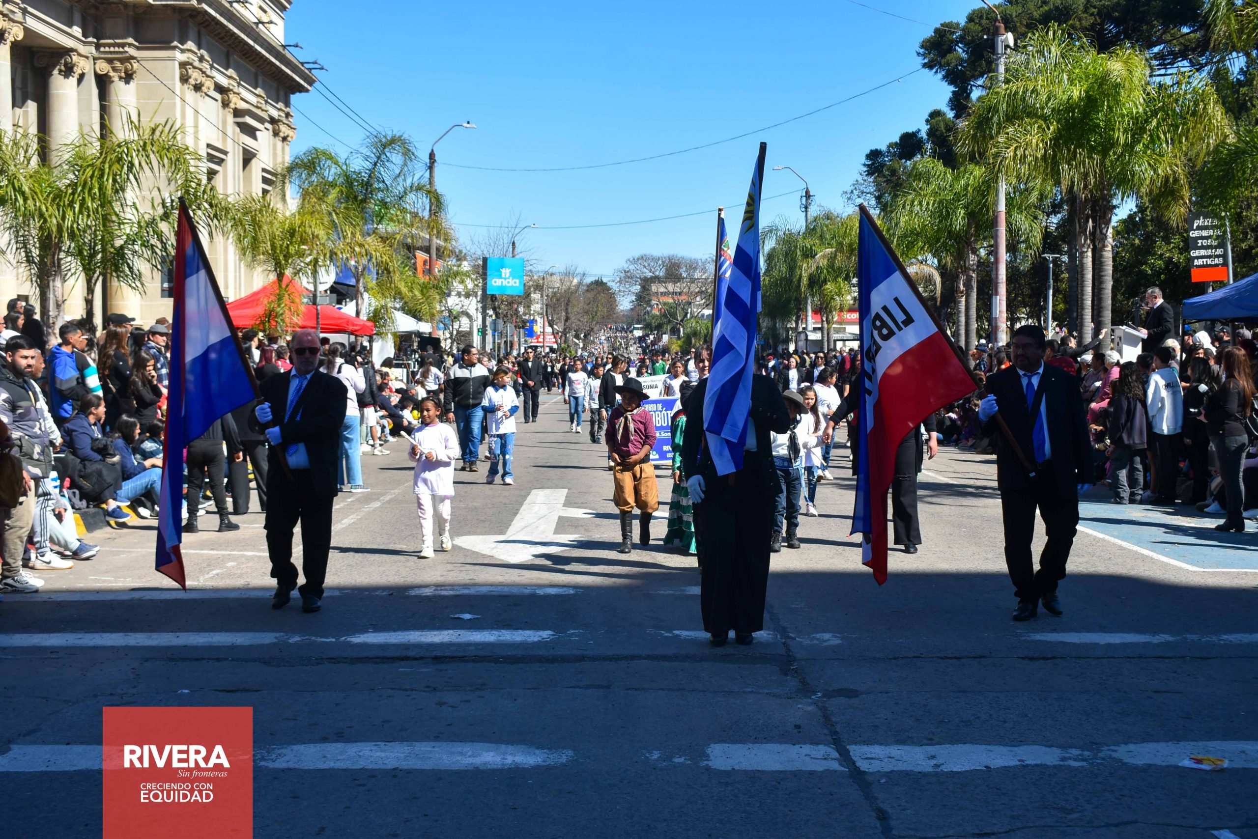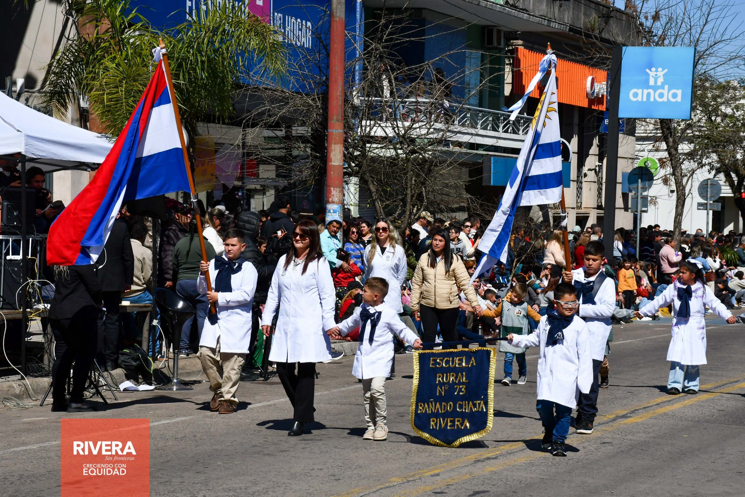 La Asociación Patriótica de Rivera organizó el mayor desfile cívico-militar y de caballería gaucha del país, que se extendió durante más de siete horas y reunió a miles de participantes y espectadores.