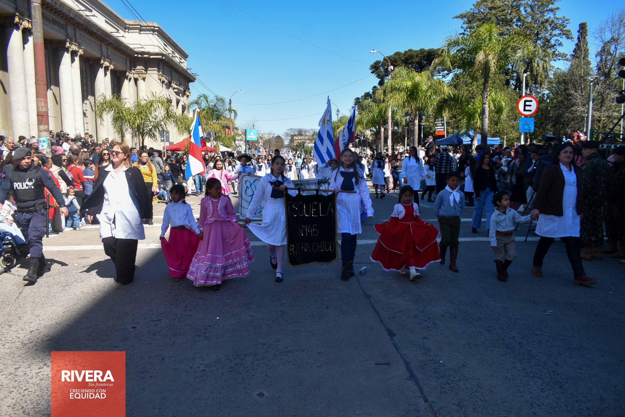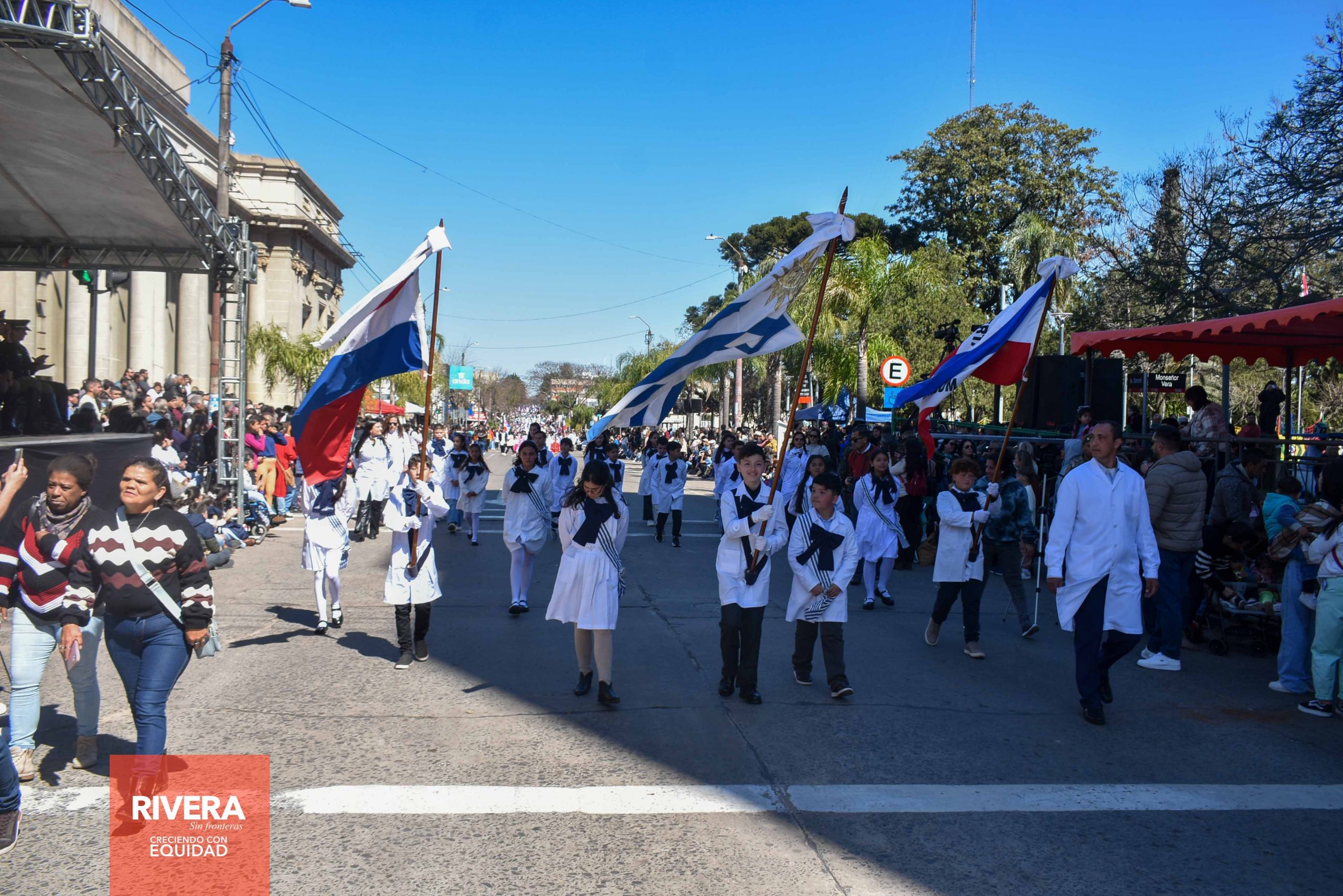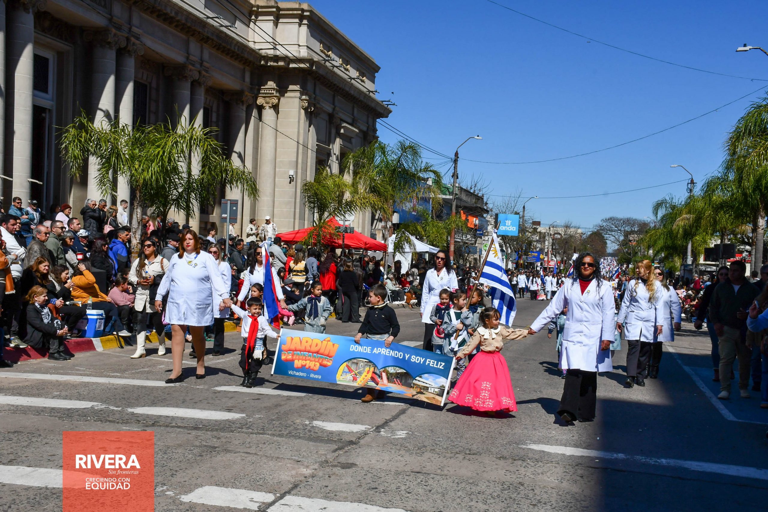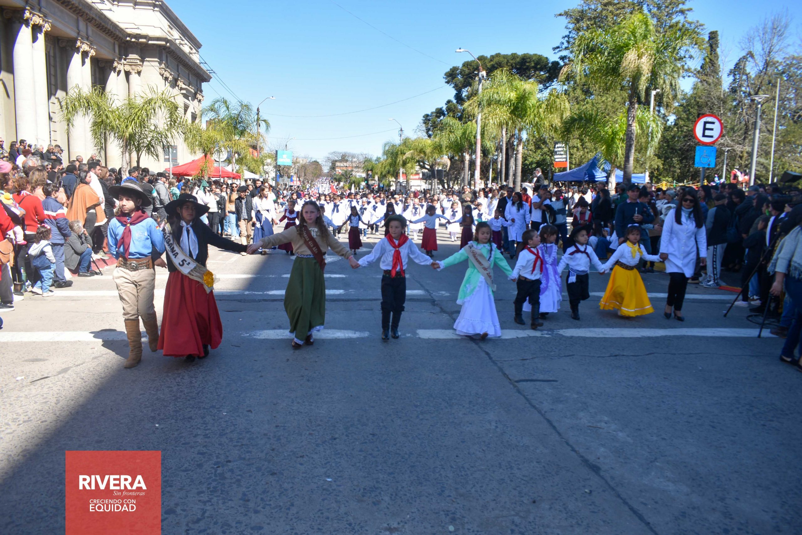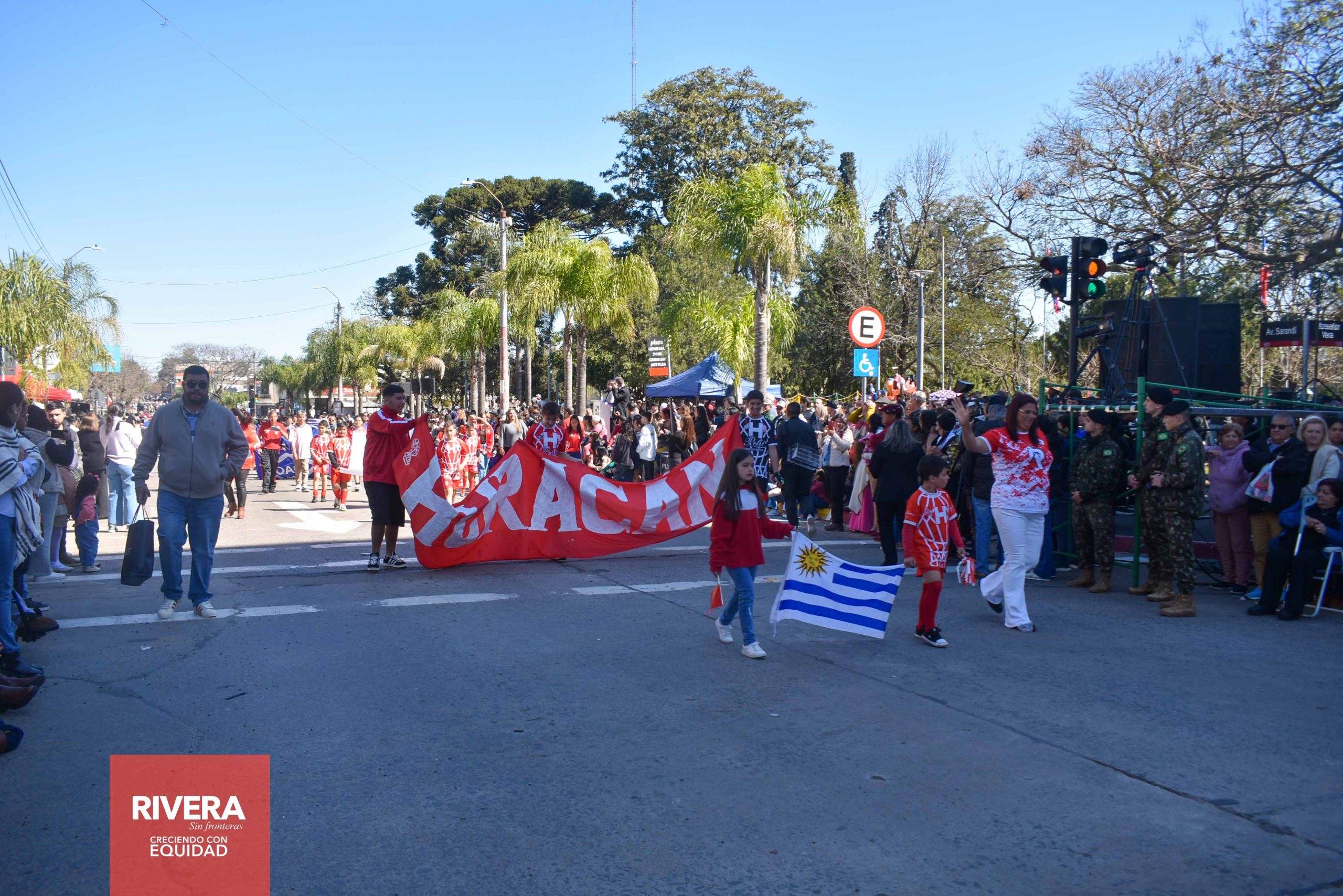 La Asociación Patriótica de Rivera organizó el mayor desfile cívico-militar y de caballería gaucha del país, que se extendió durante más de siete horas y reunió a miles de participantes y espectadores.