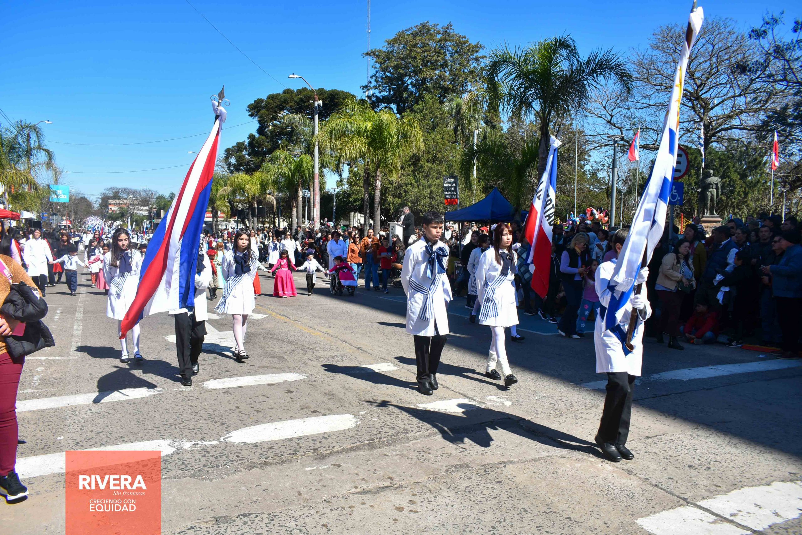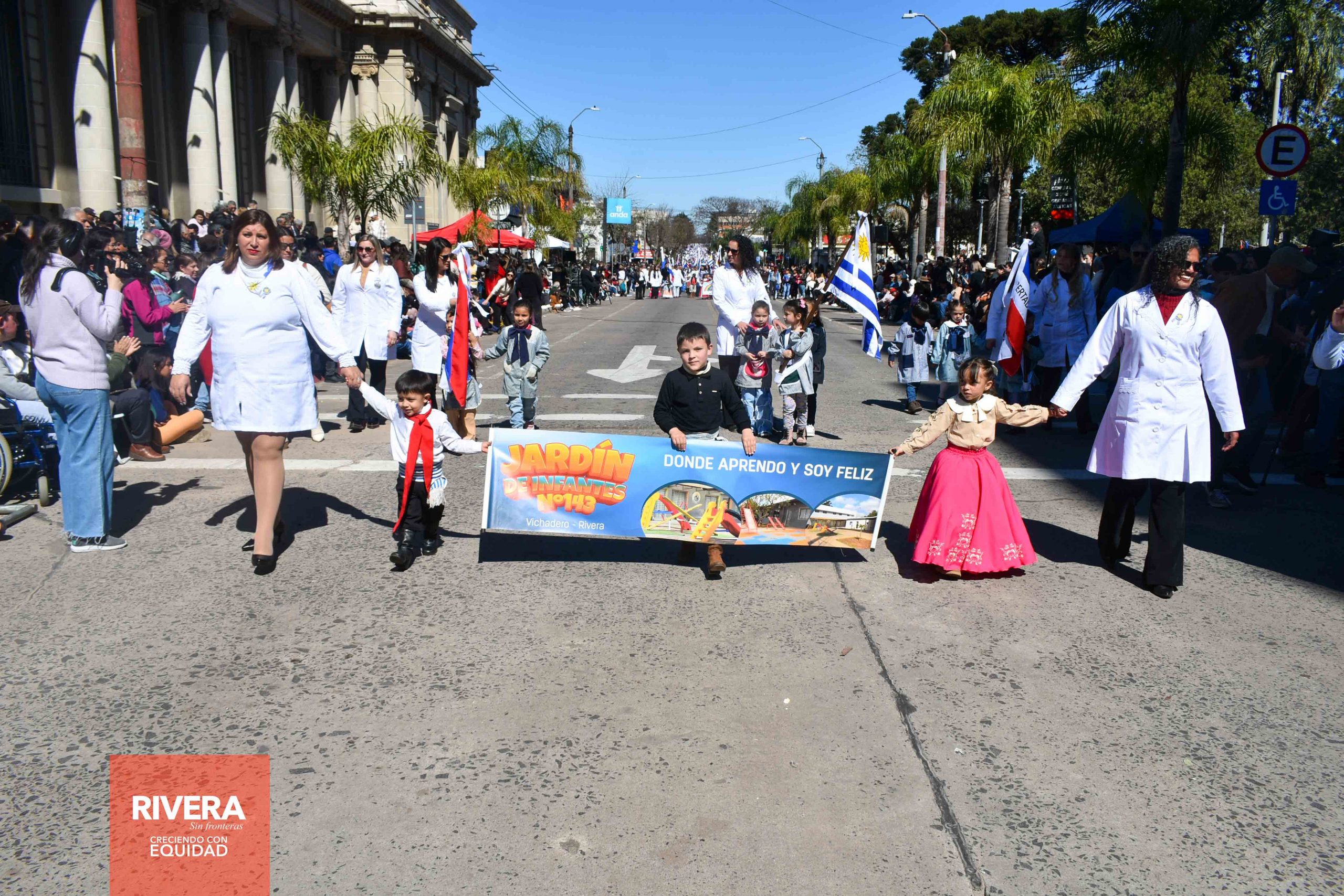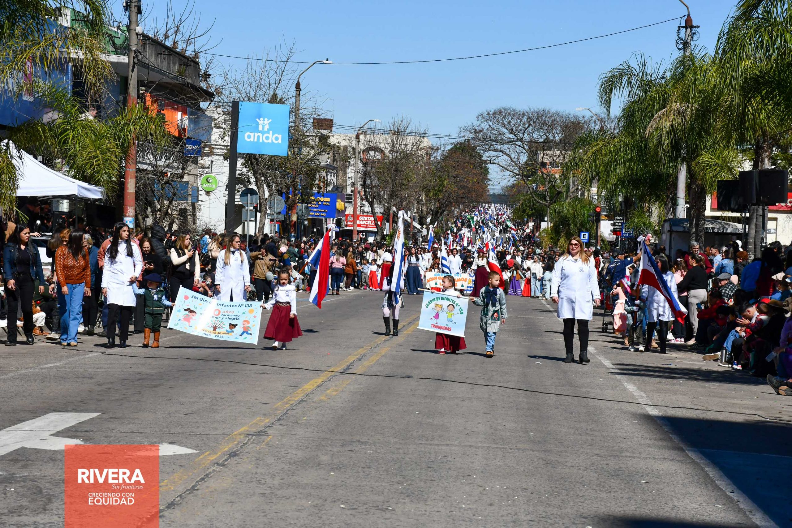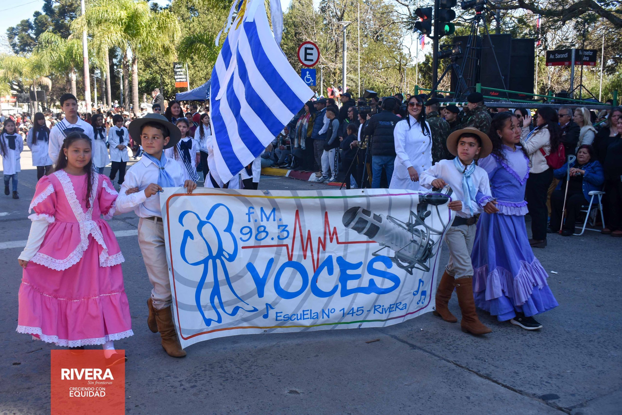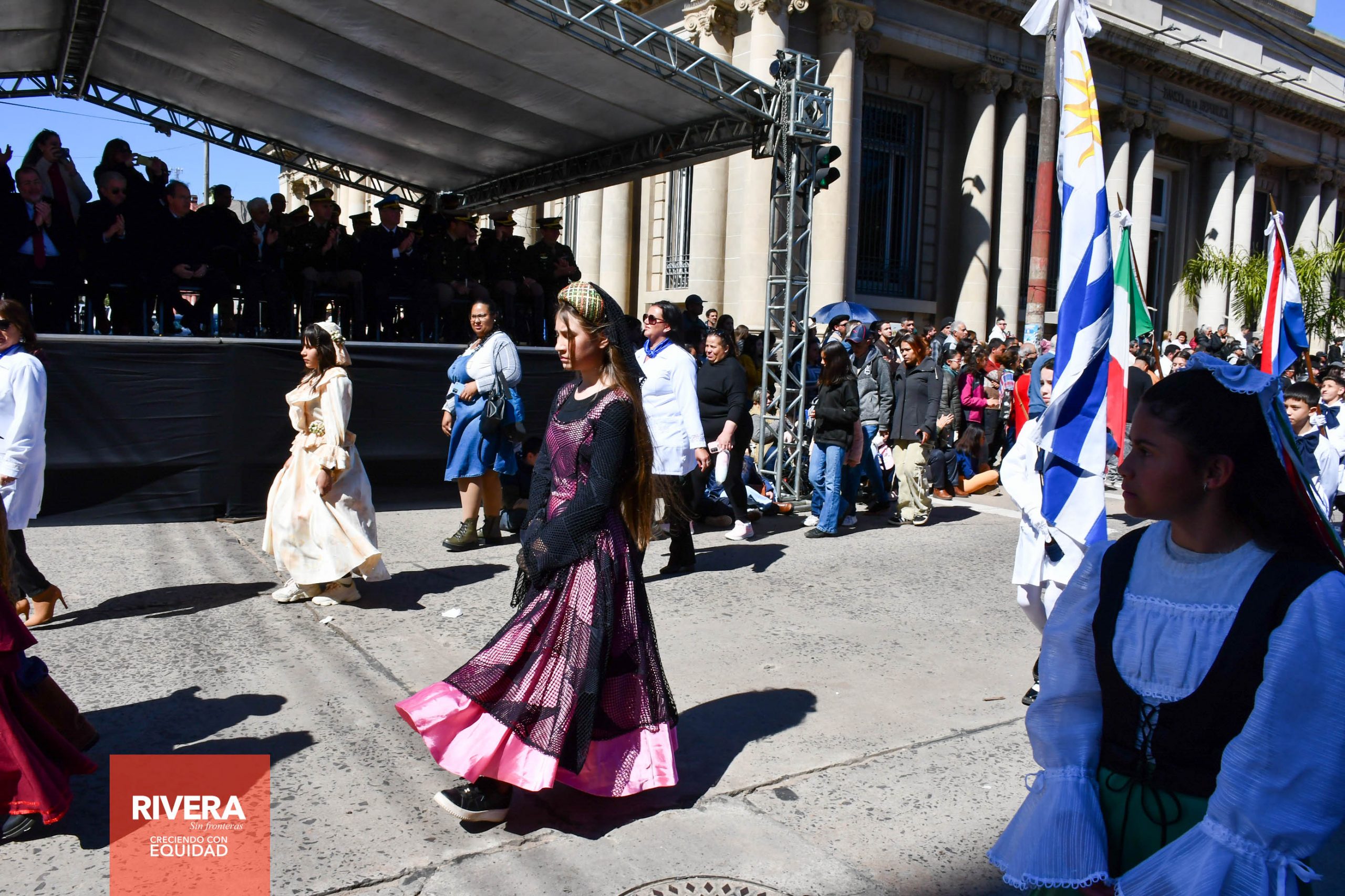 La Asociación Patriótica de Rivera organizó el mayor desfile cívico-militar y de caballería gaucha del país, que se extendió durante más de siete horas y reunió a miles de participantes y espectadores.