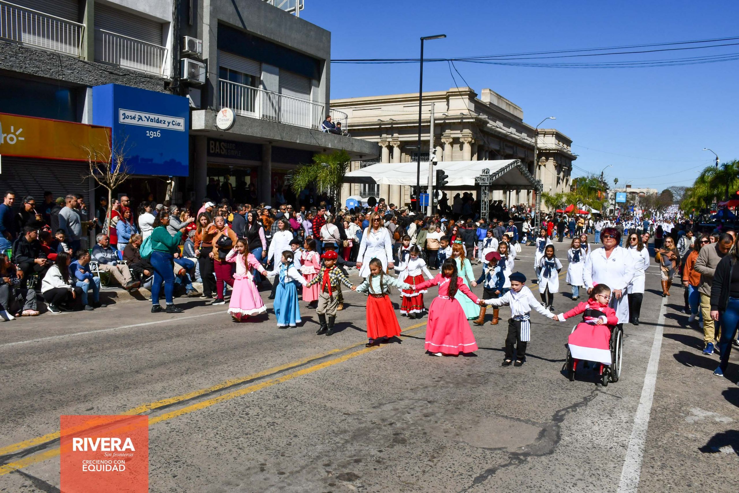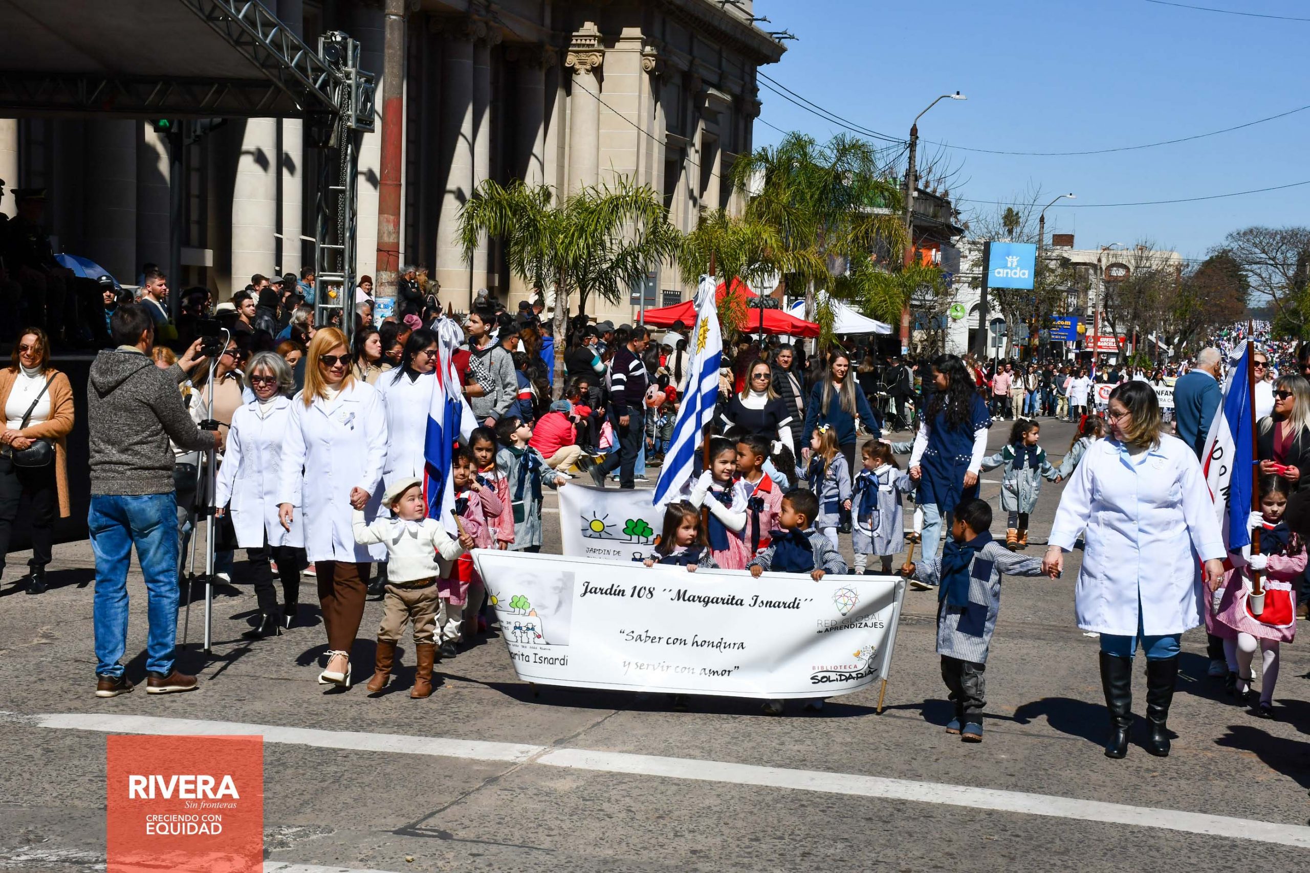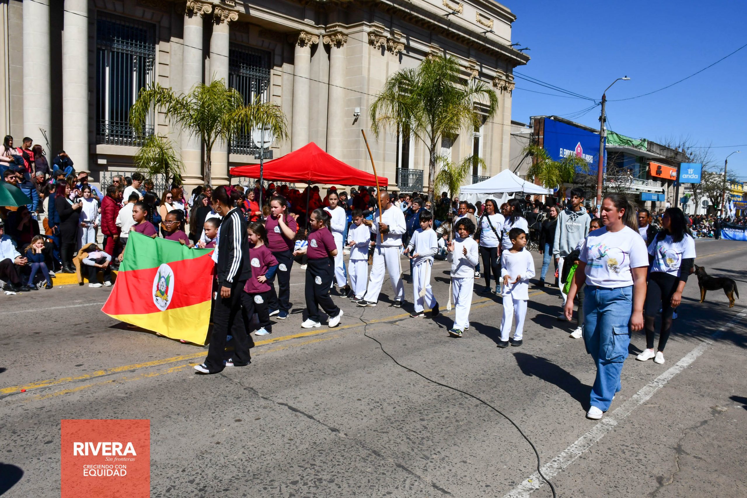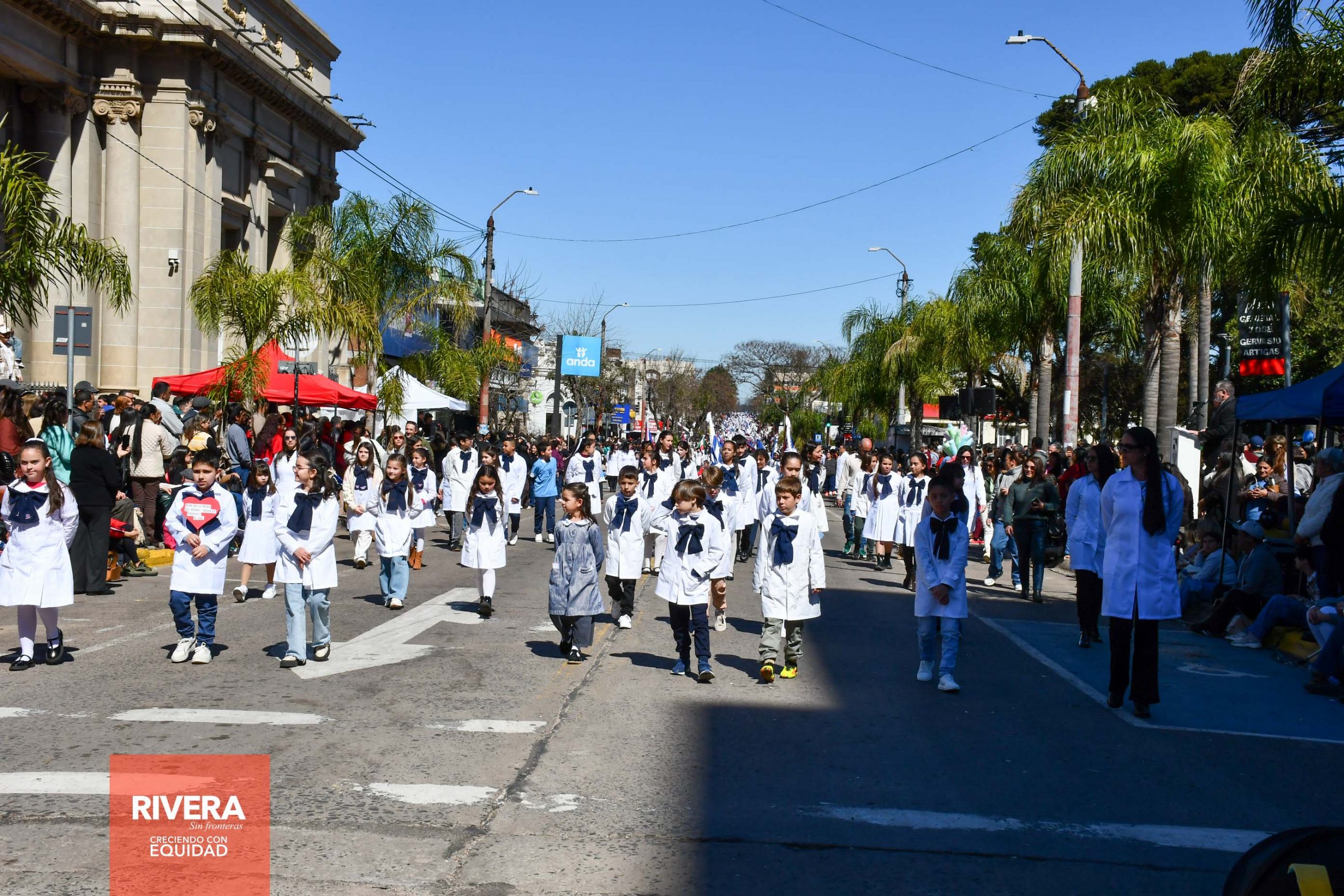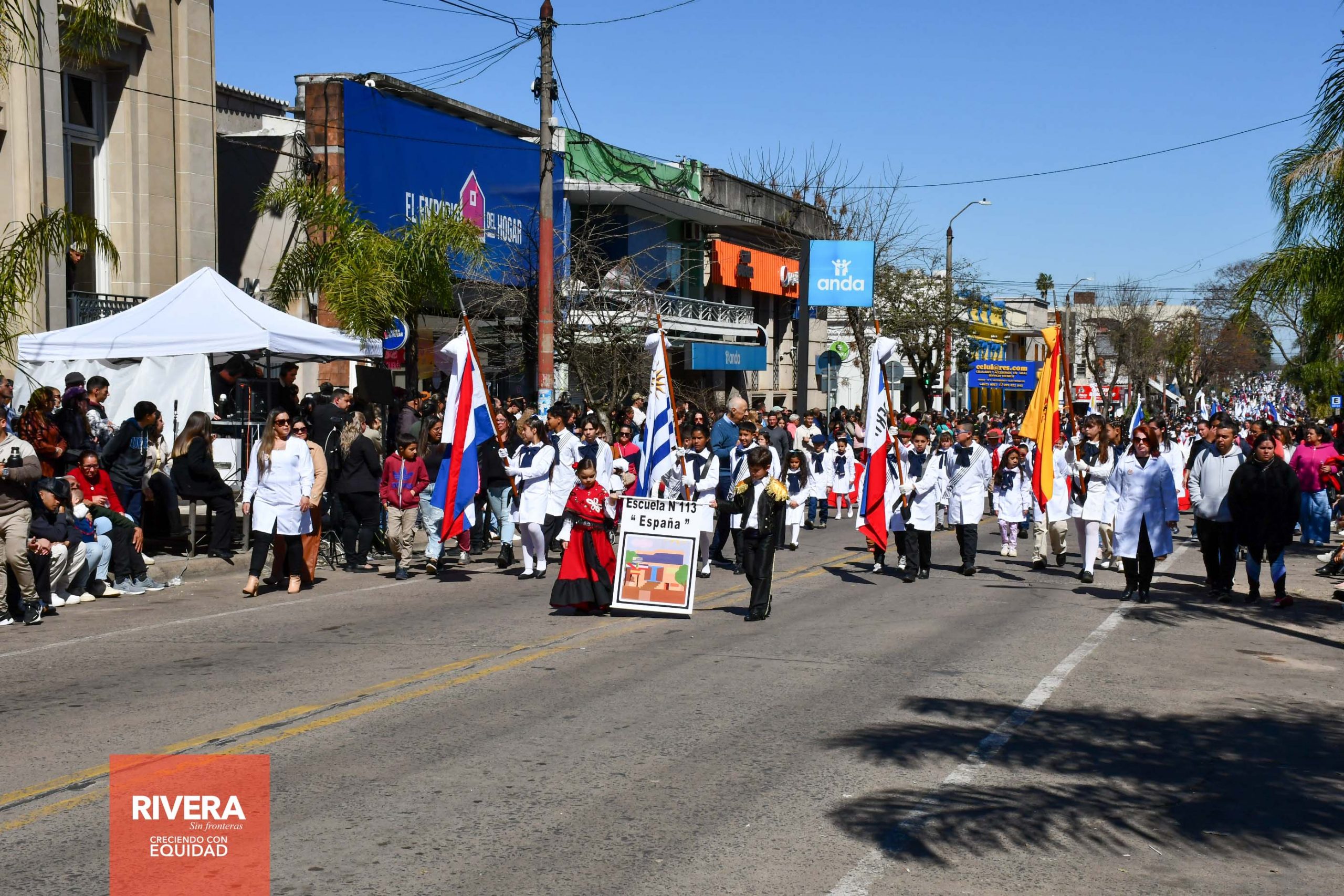 La Asociación Patriótica de Rivera organizó el mayor desfile cívico-militar y de caballería gaucha del país, que se extendió durante más de siete horas y reunió a miles de participantes y espectadores.
