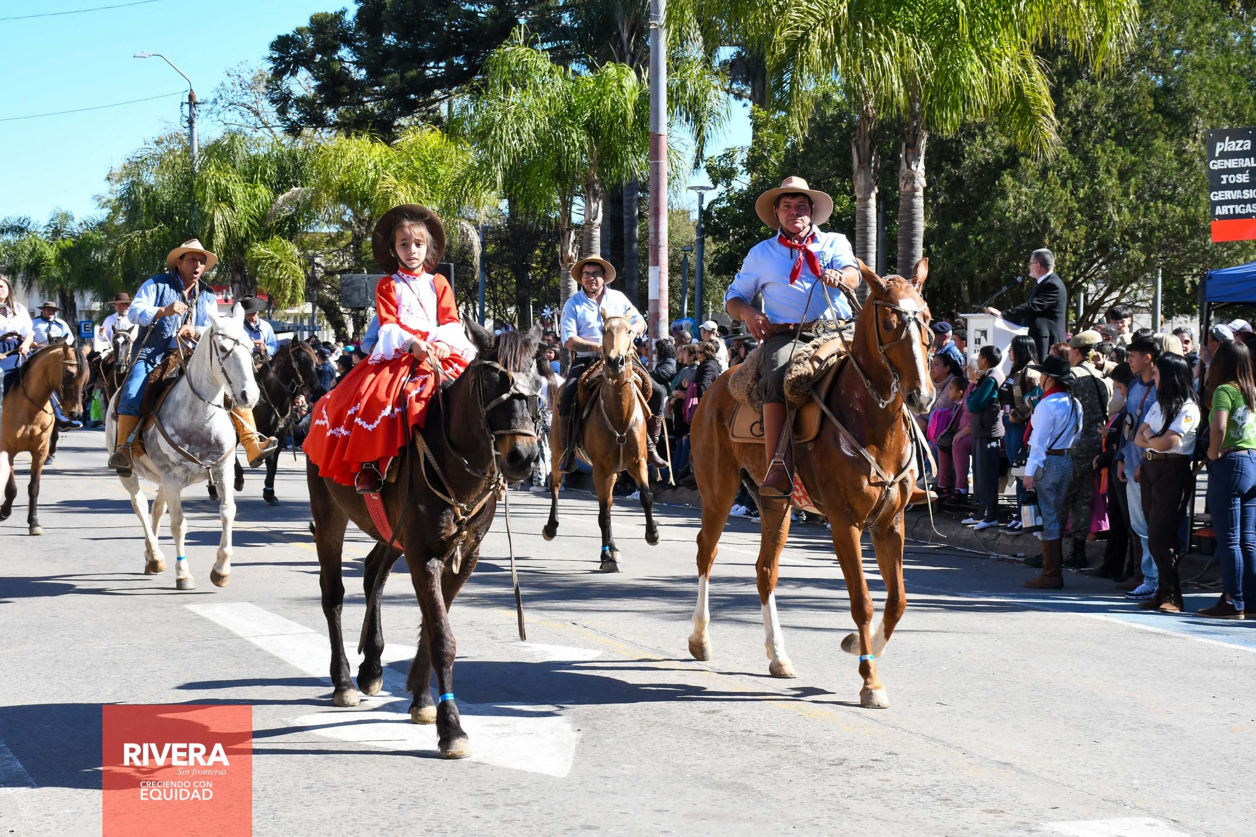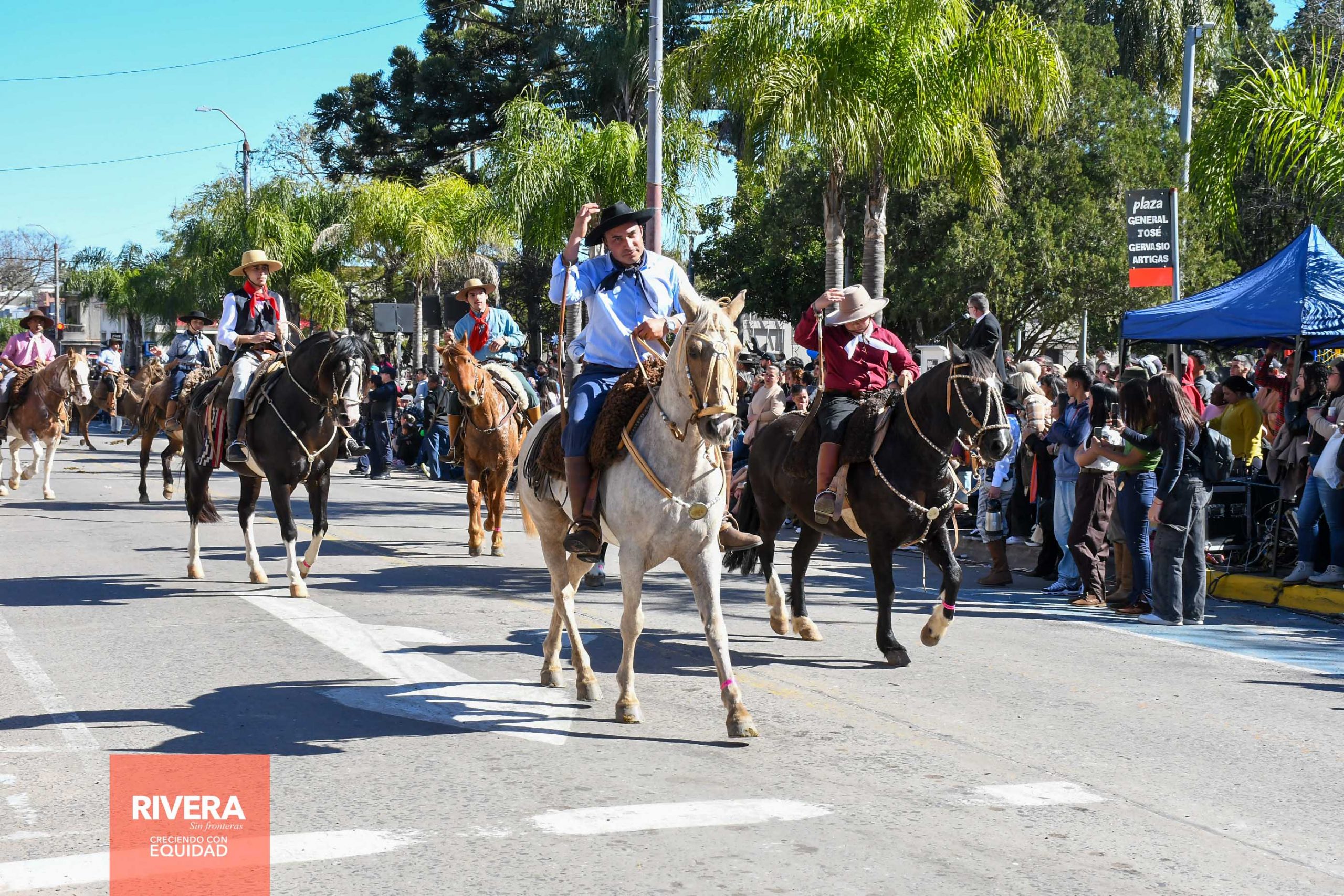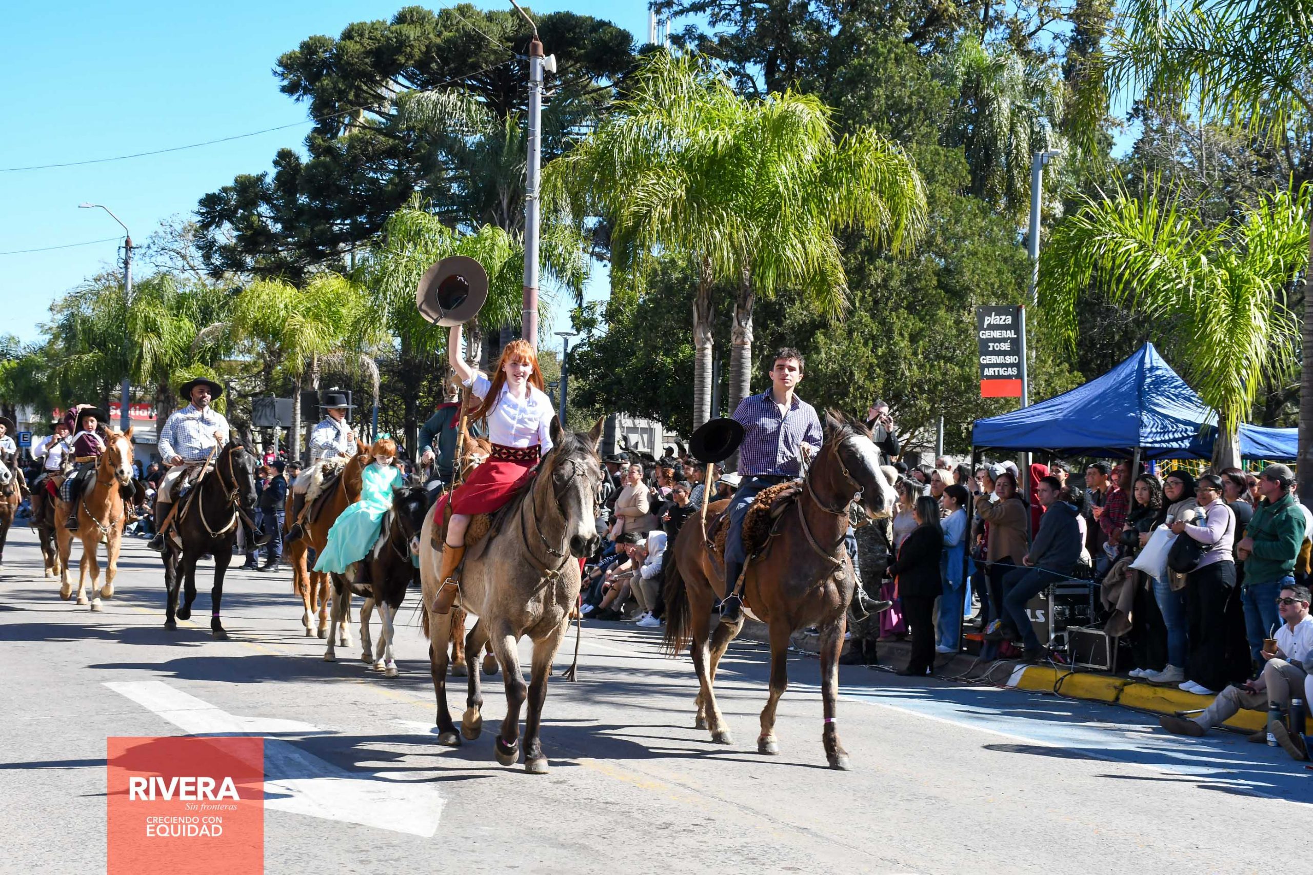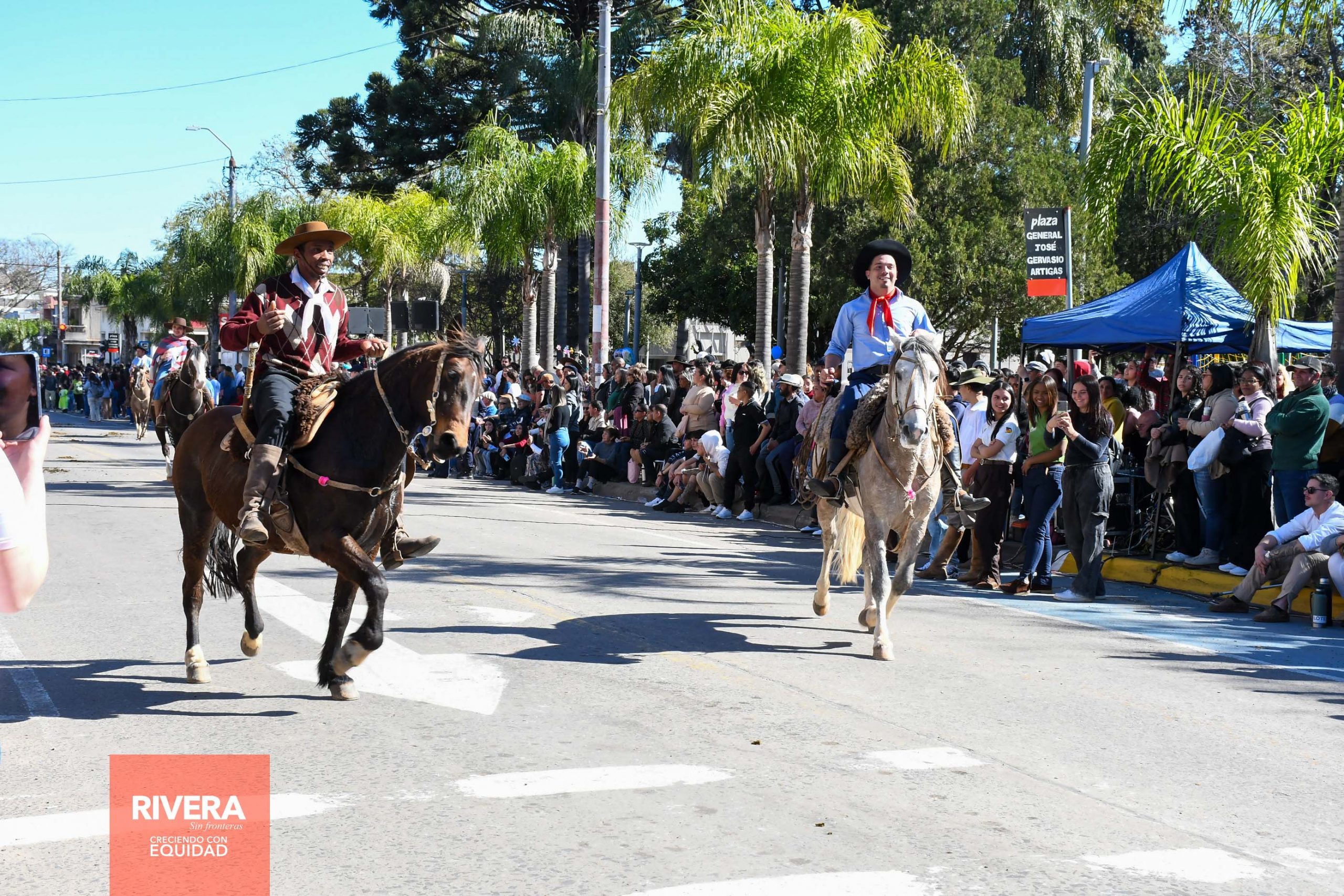 La actividad comenzó a las 09:30 horas con la concentración para el acto patrio en Plaza Artigas y se prolongó hasta las 17:00, momento en que el último jinete desfiló por la avenida Sarandí, cerrando así una conmemoración cargada de tradición, identidad y orgullo nacional.