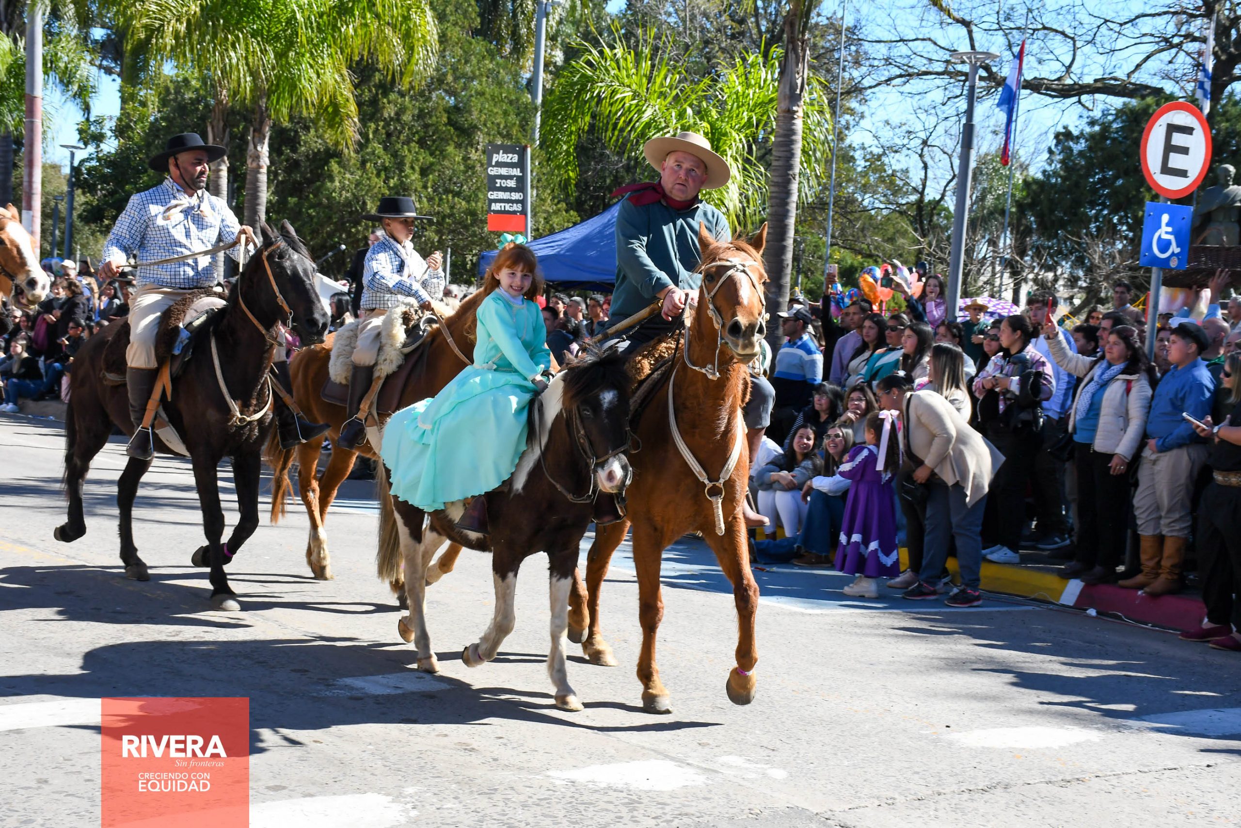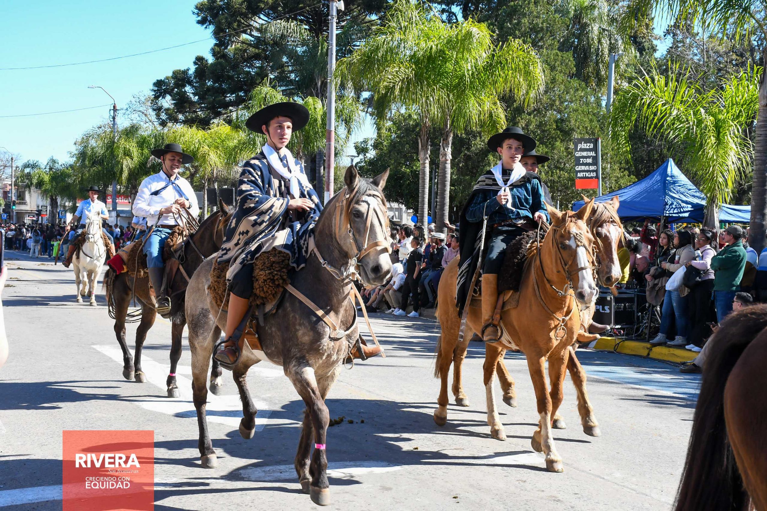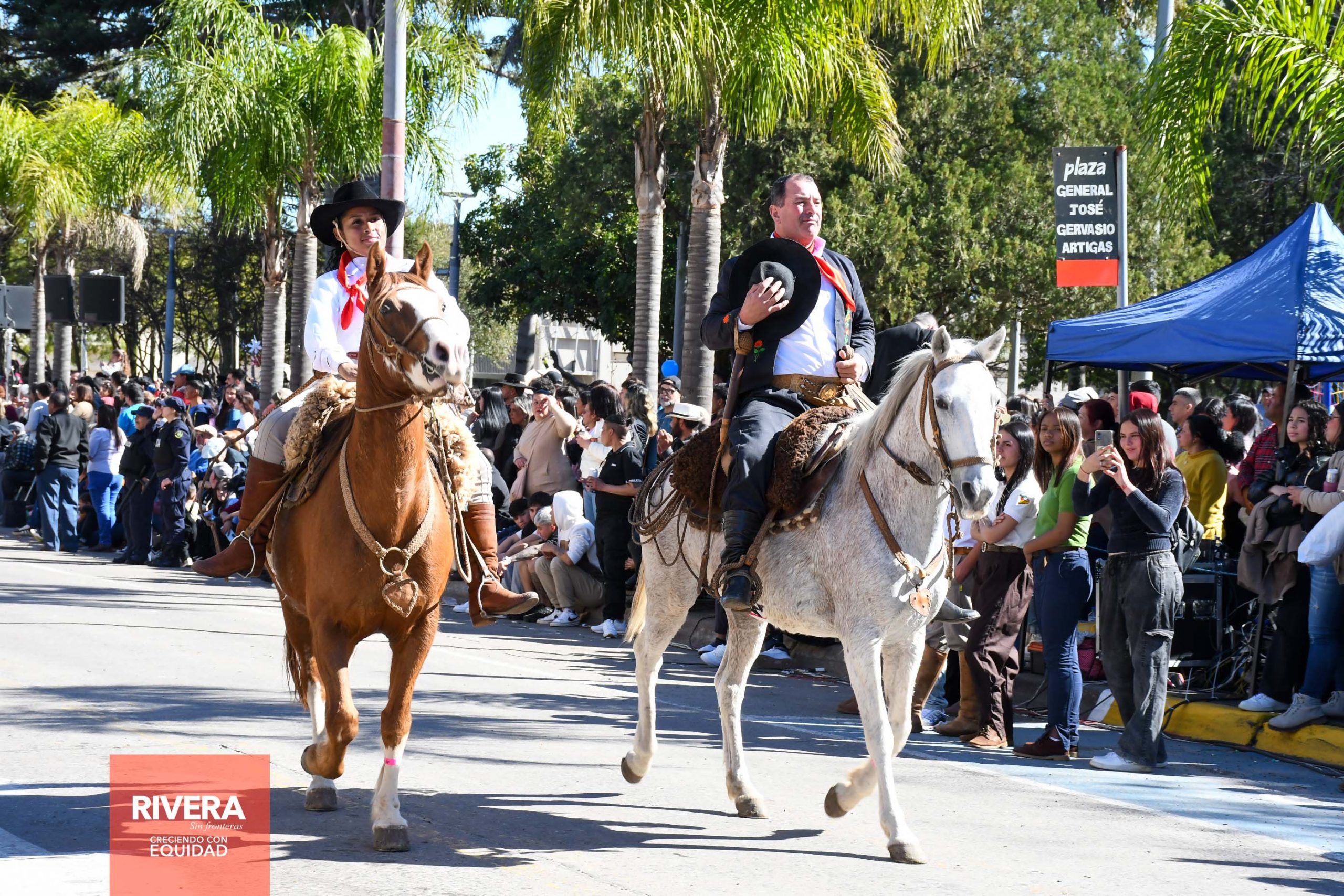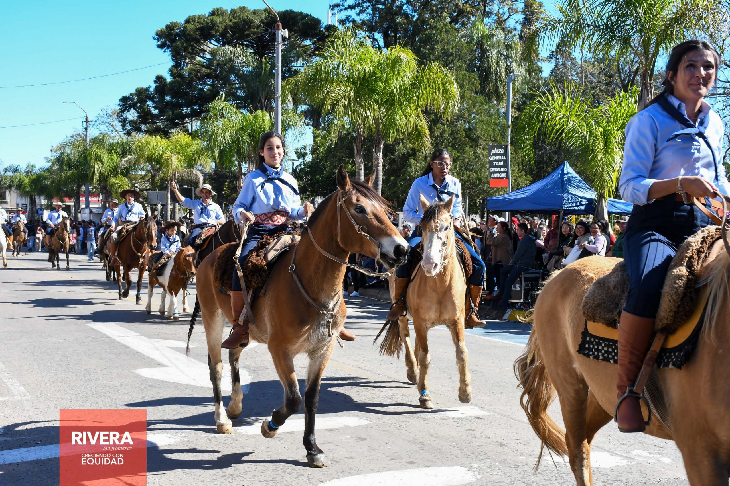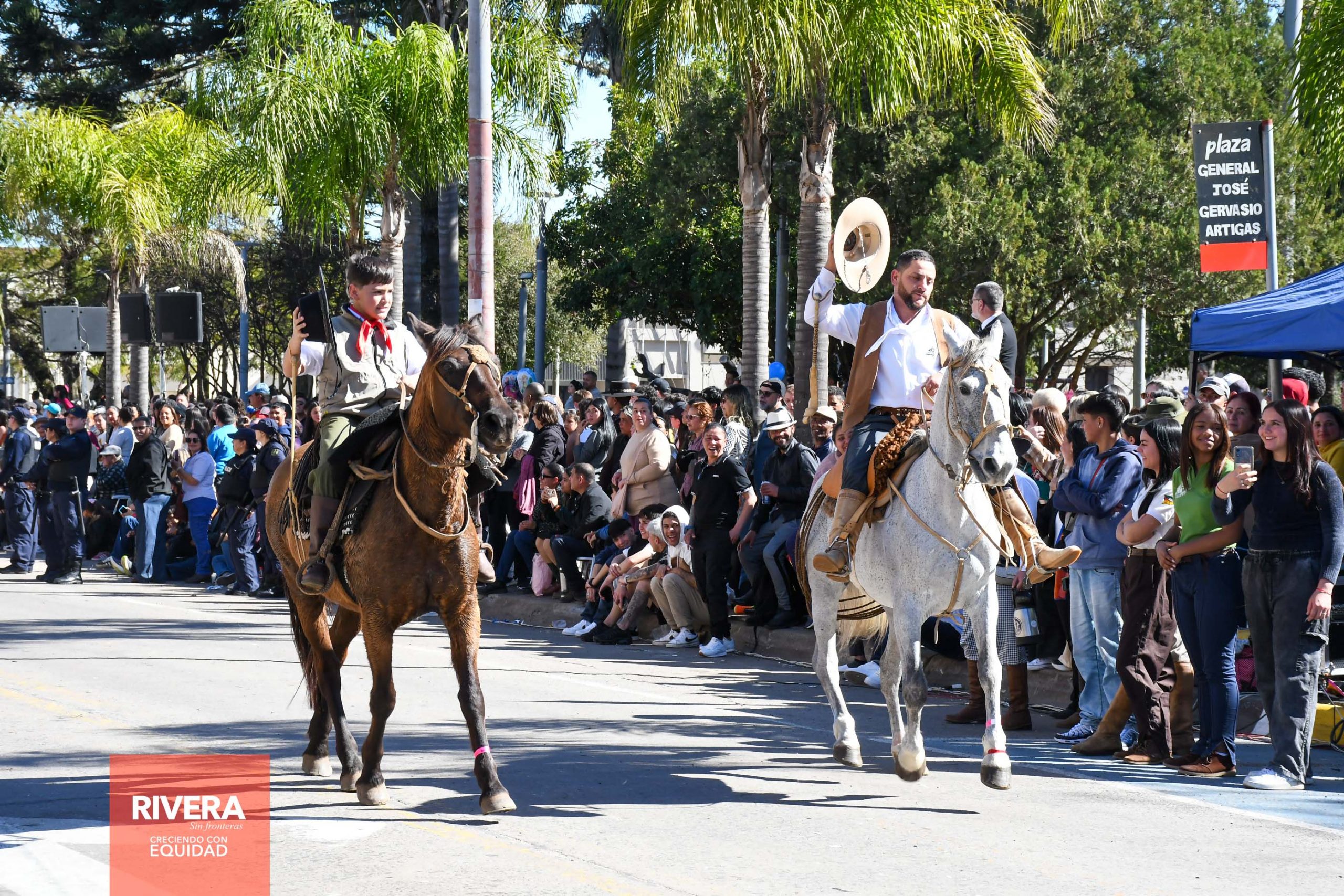 La actividad comenzó a las 09:30 horas con la concentración para el acto patrio en Plaza Artigas y se prolongó hasta las 17:00, momento en que el último jinete desfiló por la avenida Sarandí, cerrando así una conmemoración cargada de tradición, identidad y orgullo nacional.