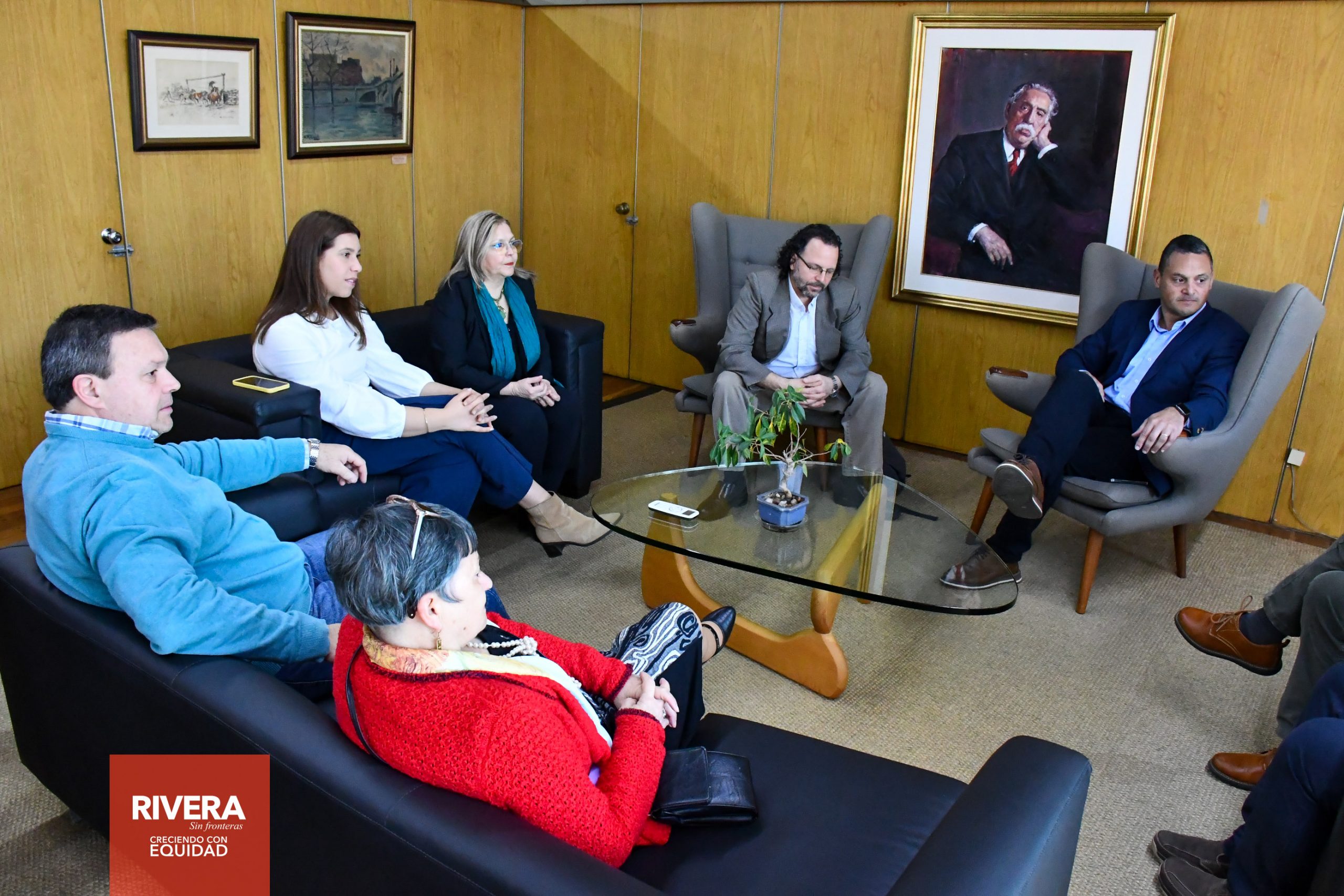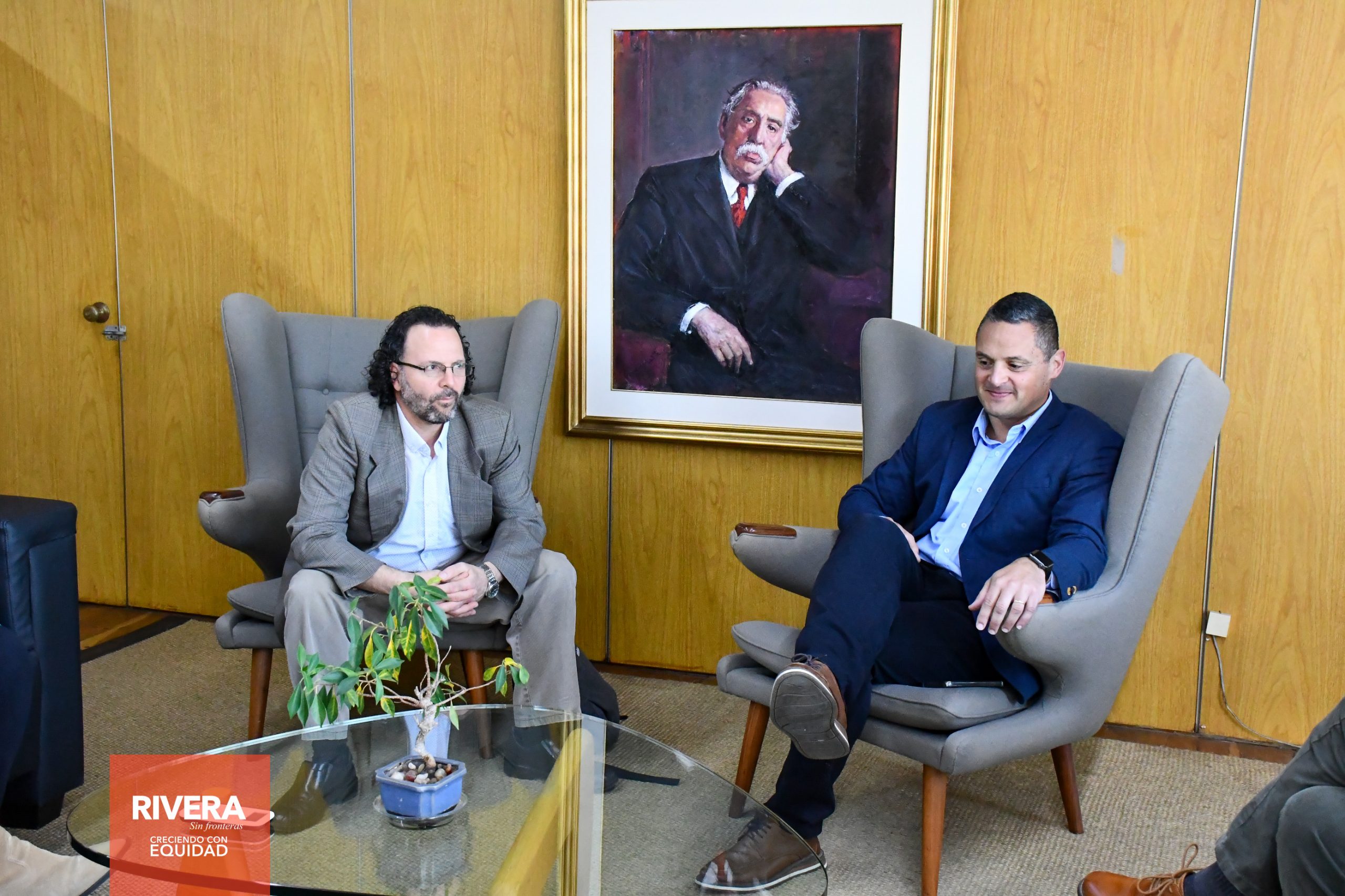 Previo a la ceremonia, el Rector de la Udelar, Dr. Héctor Cancela, mantuvo un encuentro con el Intendente Departamental (i), Arq. Martín García, acompañado por el Secretario General, Arq. José Mazzoni Gollardía. La visita reafirmó el compromiso conjunto de continuar fortaleciendo los vínculos institucionales y potenciar el desarrollo educativo, social y regional de Rivera.
