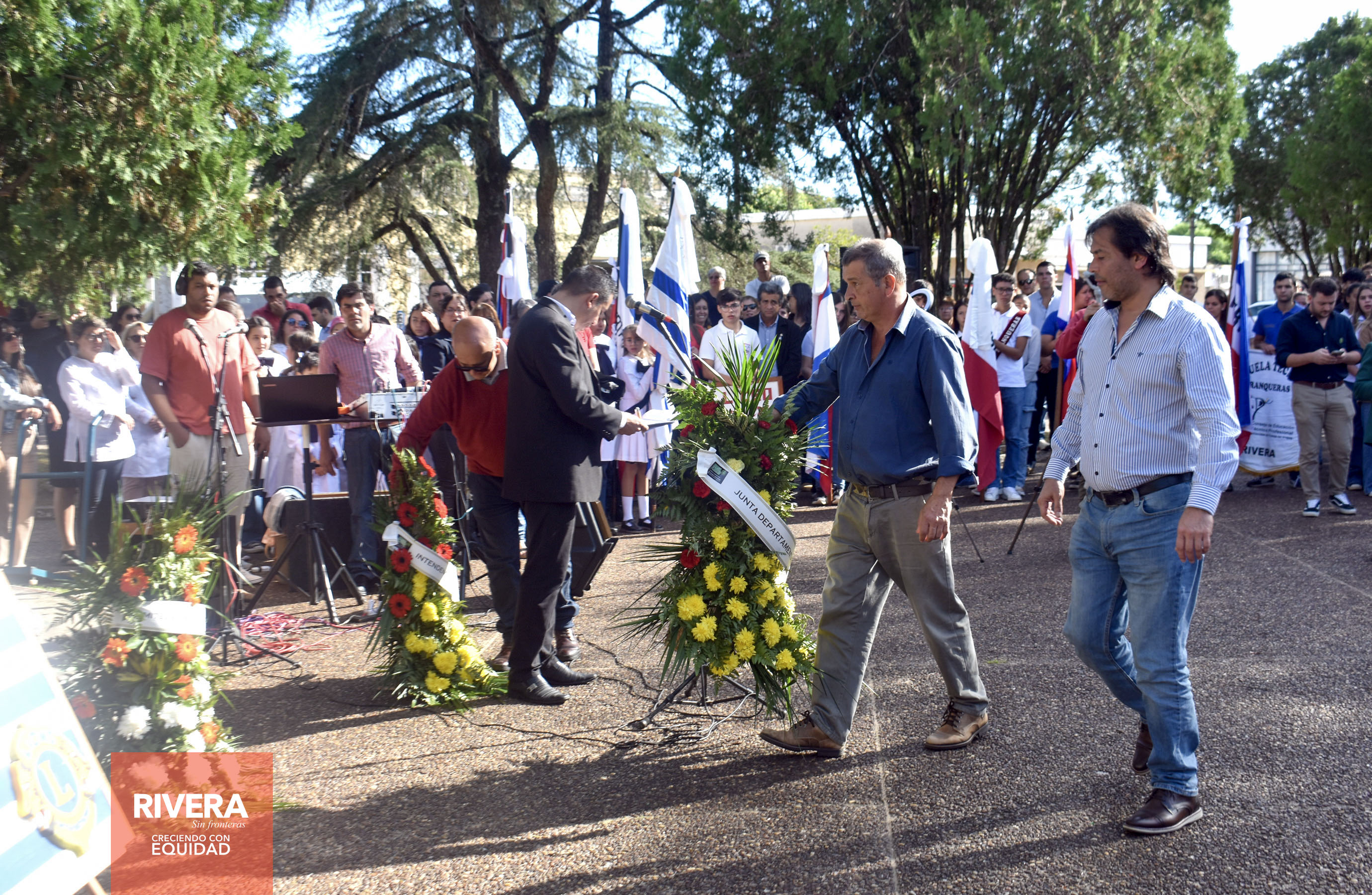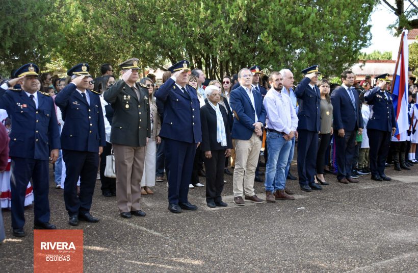 A la ceremonia concurrieron autoridades del gobierno departamental encabezadas por el intendente Cr. Richard Sander Darín, policiales, militares, de la educación, estudiantes y vecinos.