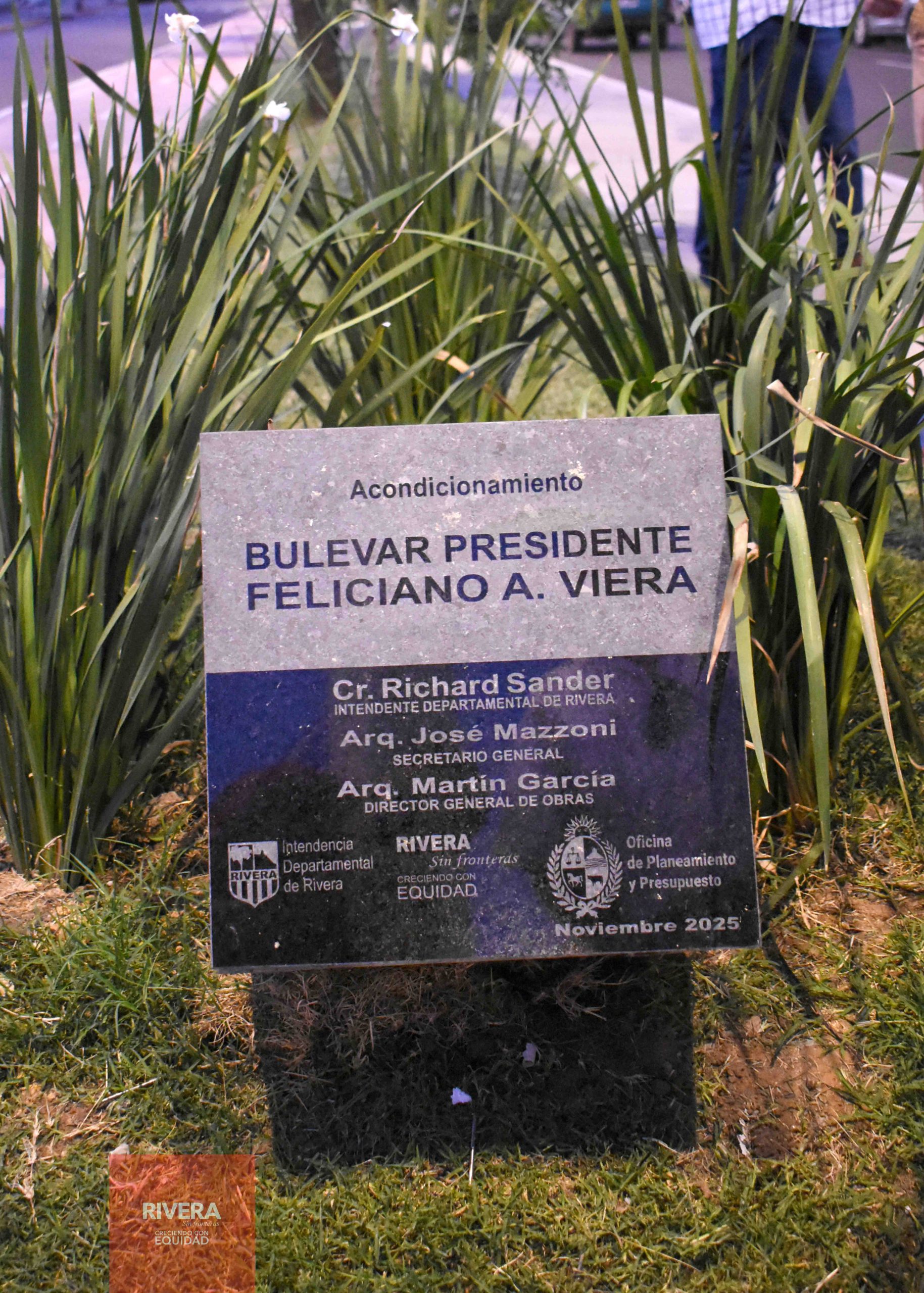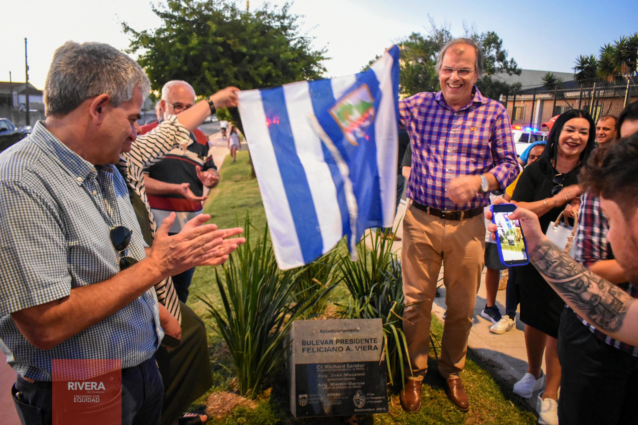 El Intendente Departamental de Rivera, Cr. Richard Sander Darín, encabezó el acto de entrega a la comunidad de las obras del Boulevard Presidente Feliciano A. Viera, una intervención urbana de relevancia que mejora sustancialmente la infraestructura, la accesibilidad y la calidad de vida de los vecinos de la zona.