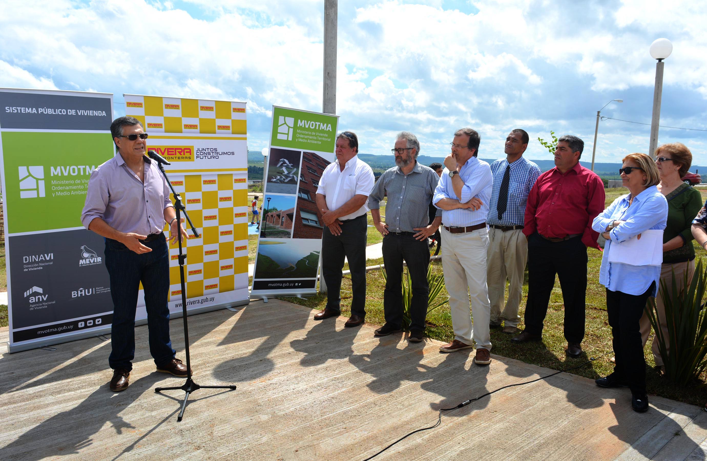 En horas de la tarde del día jueves 29 de noviembre, se realizó en barrio Bella Vista (ex Cerro del Estado), la ceremonia de entrega de 24 viviendas nuevas, a familias del barrio, en el marco del convenio suscripto entre la I.D.R y el M.V.O.T.M.A.Este importante acontecimiento conto con la presencia del Sr. Intendente Departamental, Dr. Marne Osorio, Secretario General de la IDR, Cr.Richard Sander, como así también varios Directores Generales de la IDR, Presidente y Secretario de la Junta Departamental, la Sra. Ministra de Vivienda , Arq. Eneida de León, autoridades nacionales, ediles y vecinos en general.