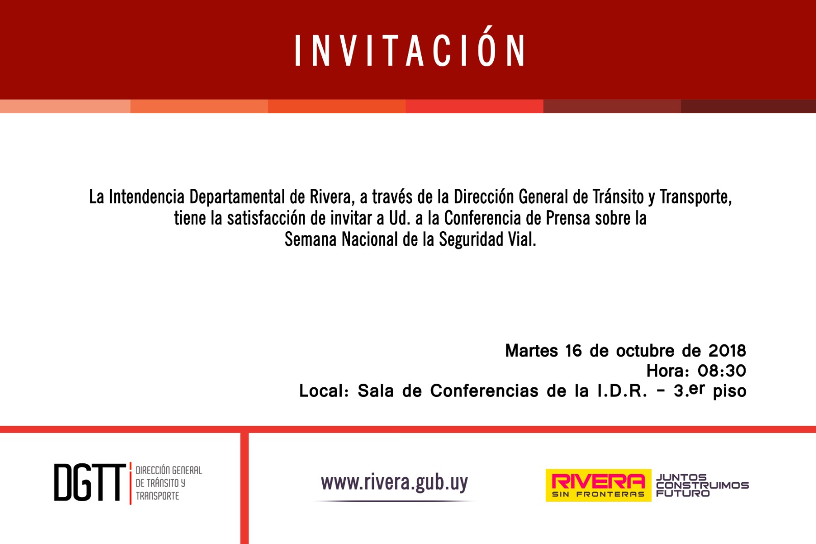 Martes 16 de Octubre a las 08:30 horas se realizará Conferencia de Prensa sobre la Semana Nacional de seguridad Vial en el salón del tercer piso de la Intendencia.