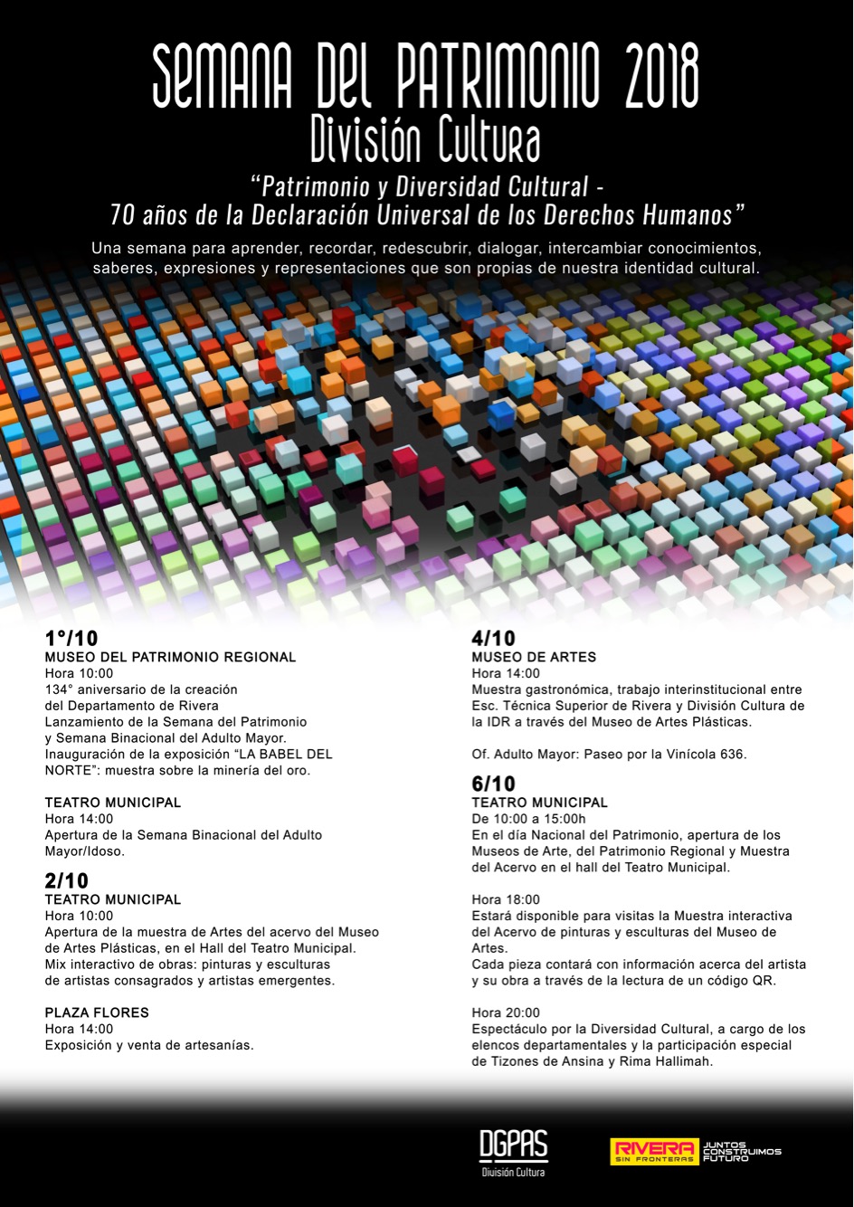 El día 6 de Octubre en el marco del “Día del Patrimonio”, se realizará en el Teatro Municipal de Rivera el evento “Diversidad Cultural”.