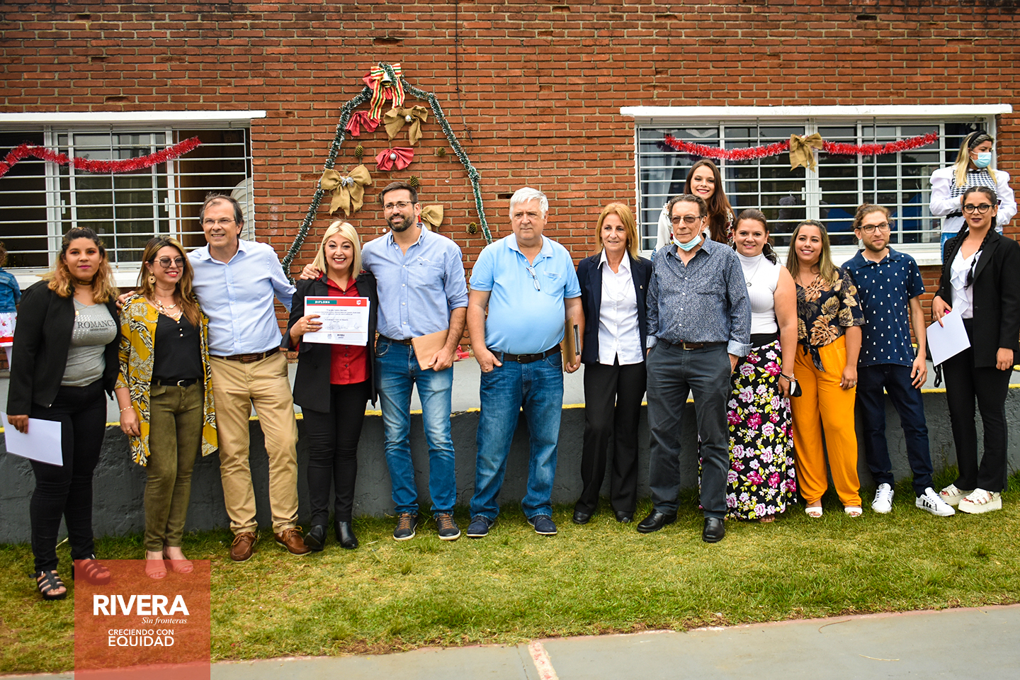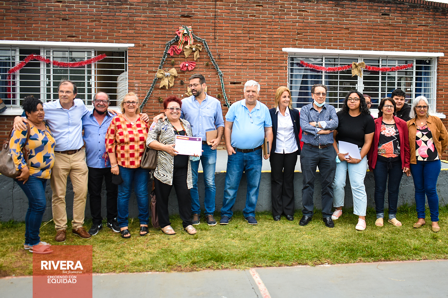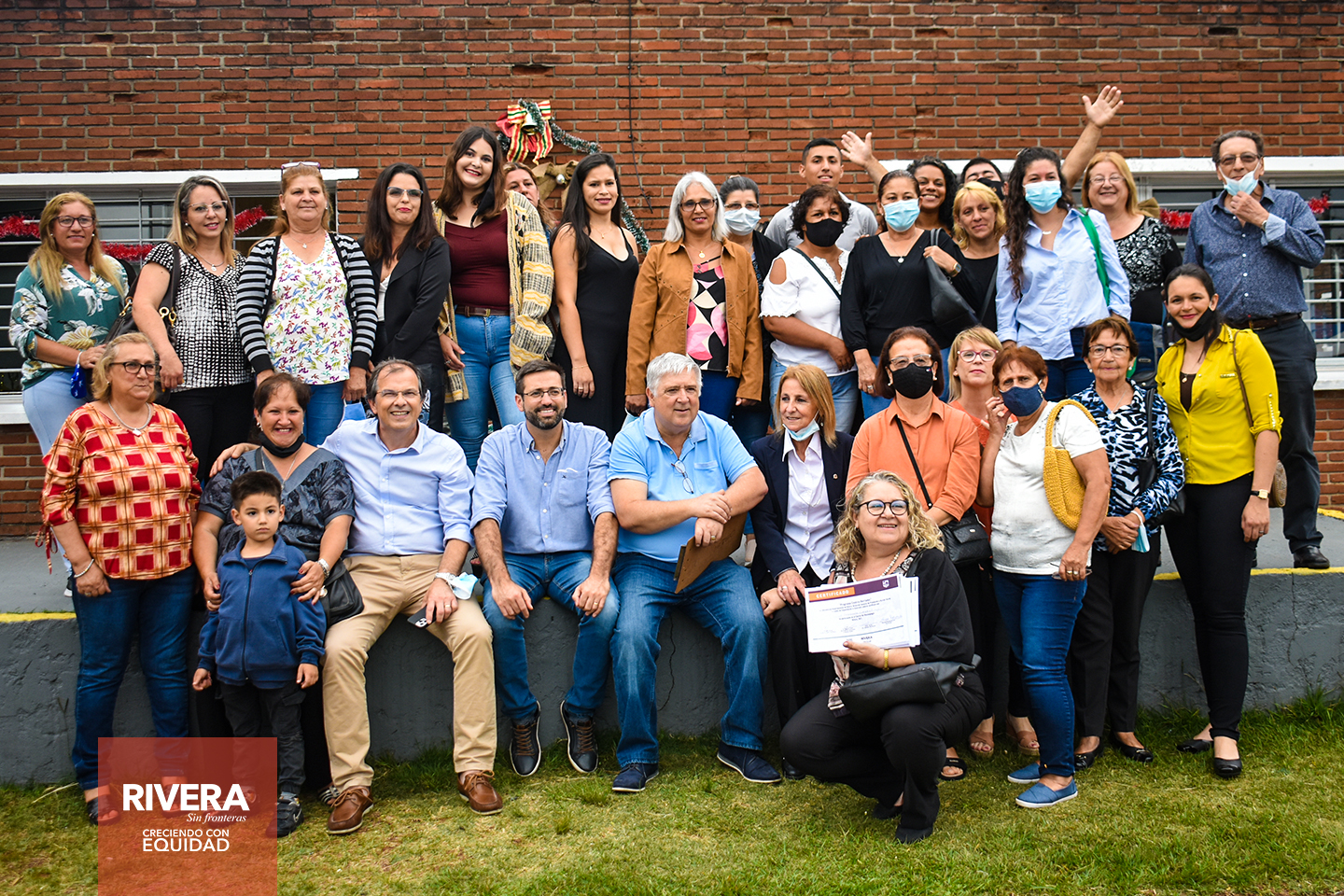 En la ceremonia de cierre de las actividades 2021, estuvieron presentes el intendente de Rivera, Cr. Richard Sander Darín, el director general de Promoción y Acción Social, Cr. Giovani Conti, el director división Territorial de los Centros Barriales, Oscar Farías y la directora de la Unidad de Asuntos Sociales y Comunitarios, Paula Nieves.