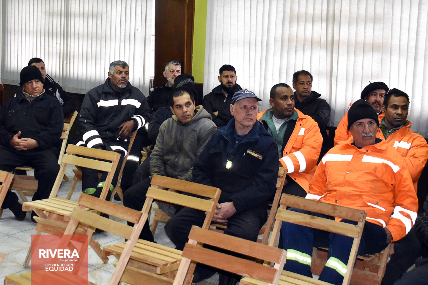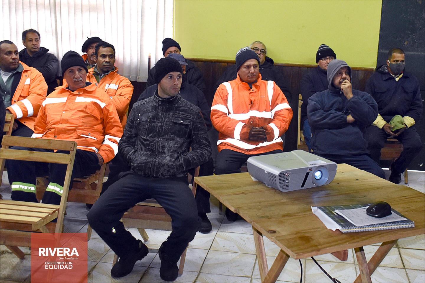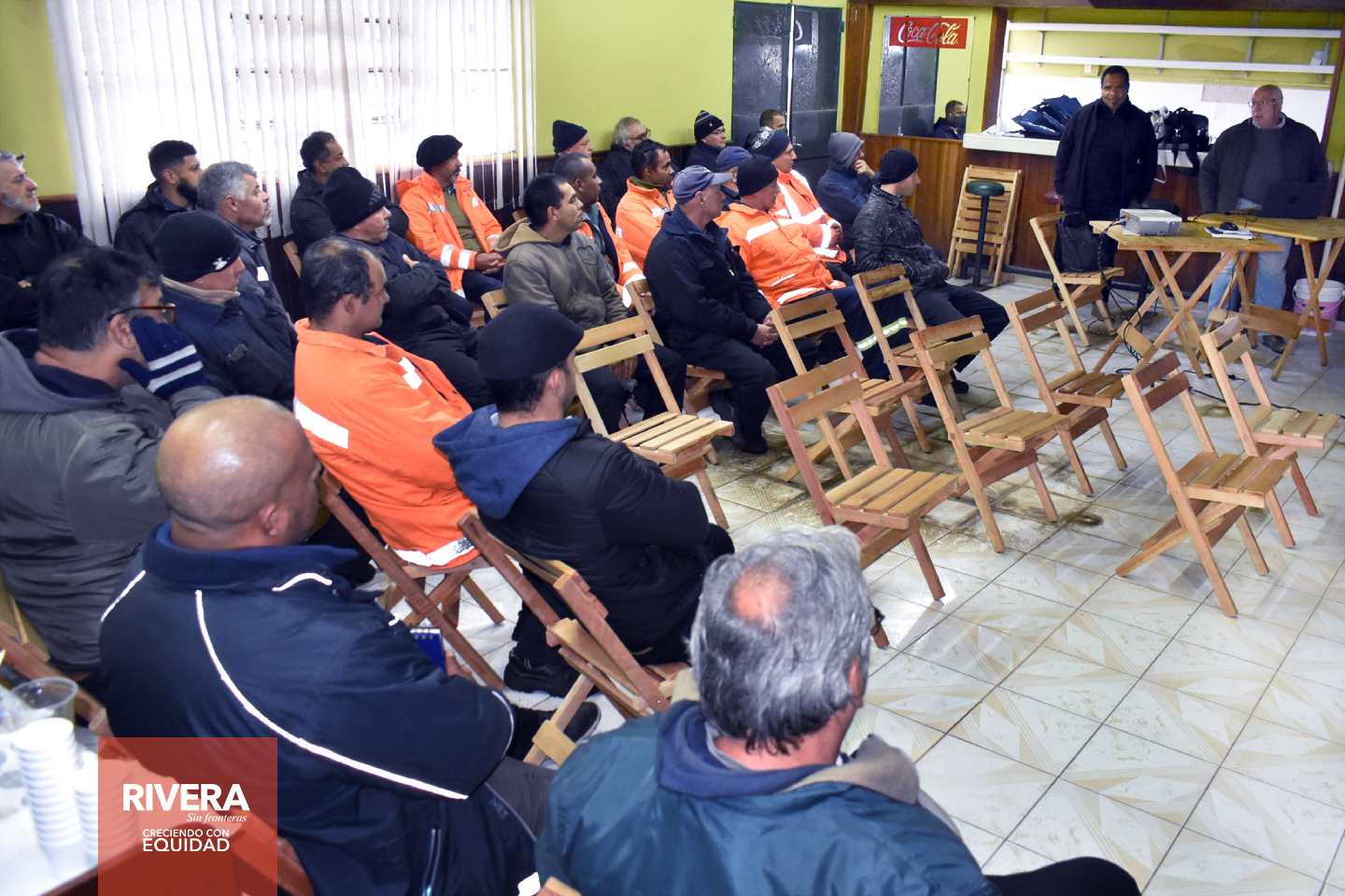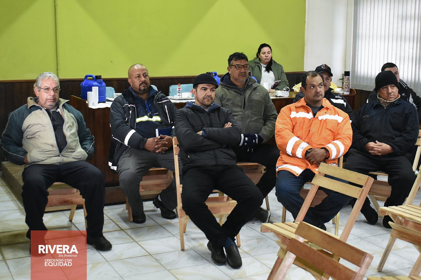 En la jornada del miércoles 18 de mayo, los funcionarios que trabajan en División Talleres del Corralón Municipal, recibieron una importante capacitación: uso y prácticas de diferentes lubricantes y fluidos, brindada por técnicos de ANCAP.