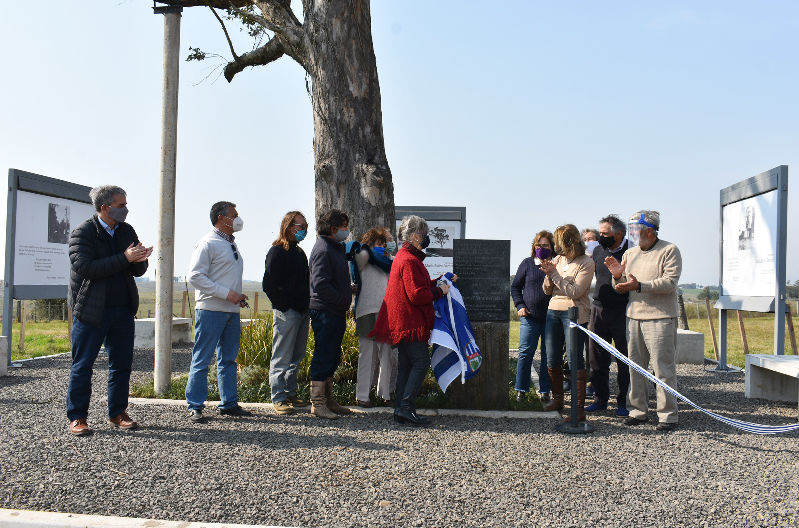 Al finalizar la parte oratoria, procedieron al corte de cinta y descubrimiento de un monolito inscripto con una estrofa del libro, dejando así oficialmente entregada a la comunidad las obras de la plazoleta.